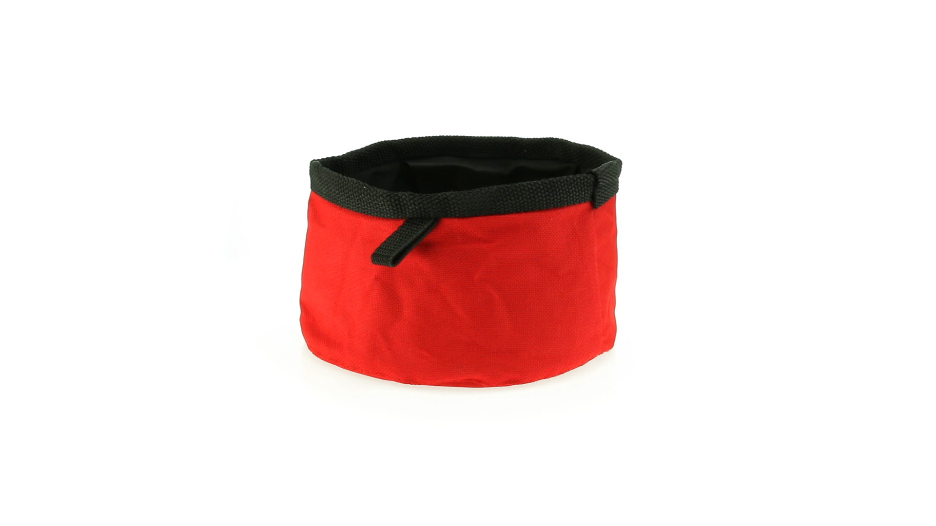 Faltbare Schüssel für Haustiere aus Polyester in lebendigen Farben. Mit Innenfutter aus Nylon und verstärkter Trageschlaufe.