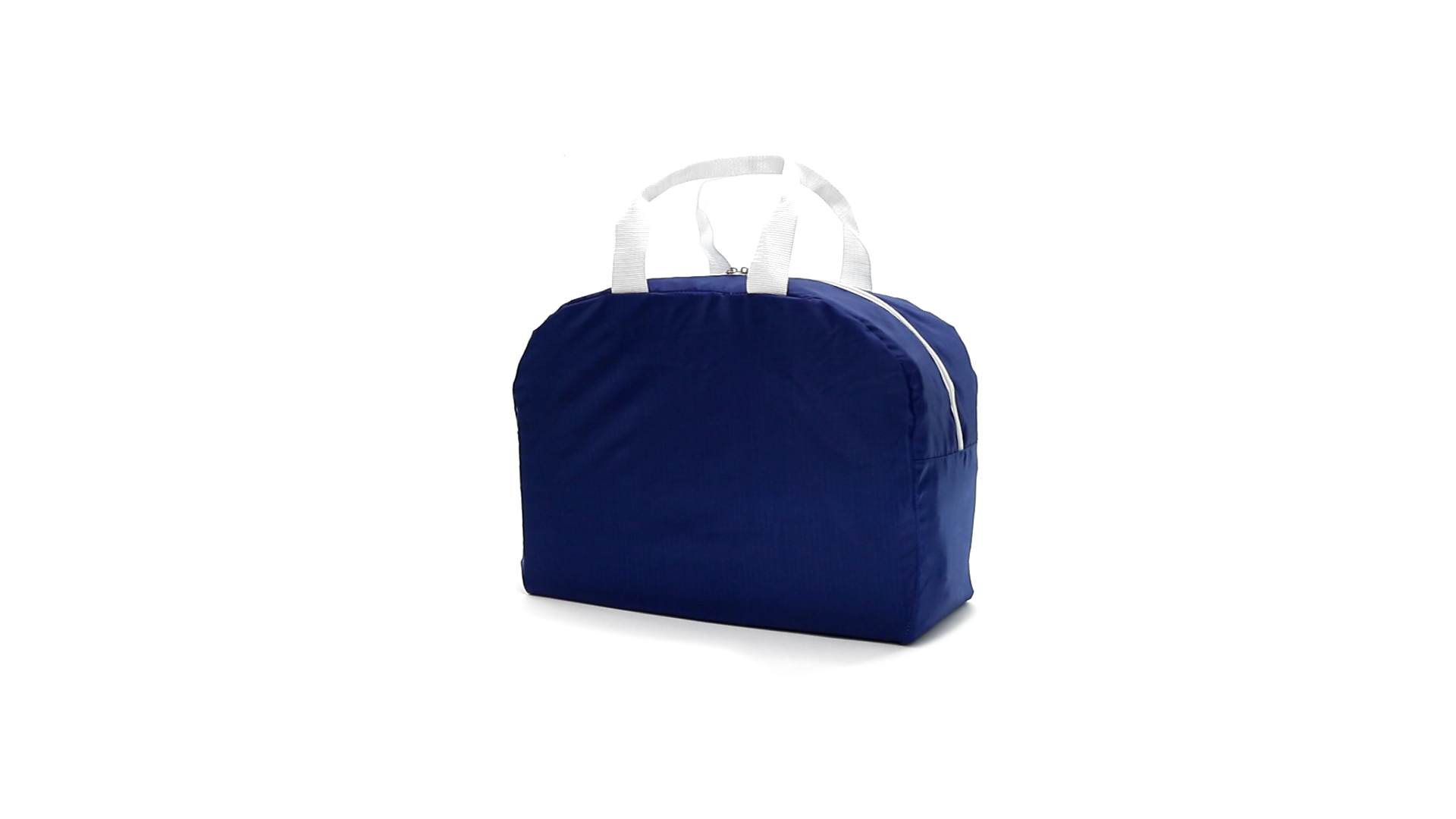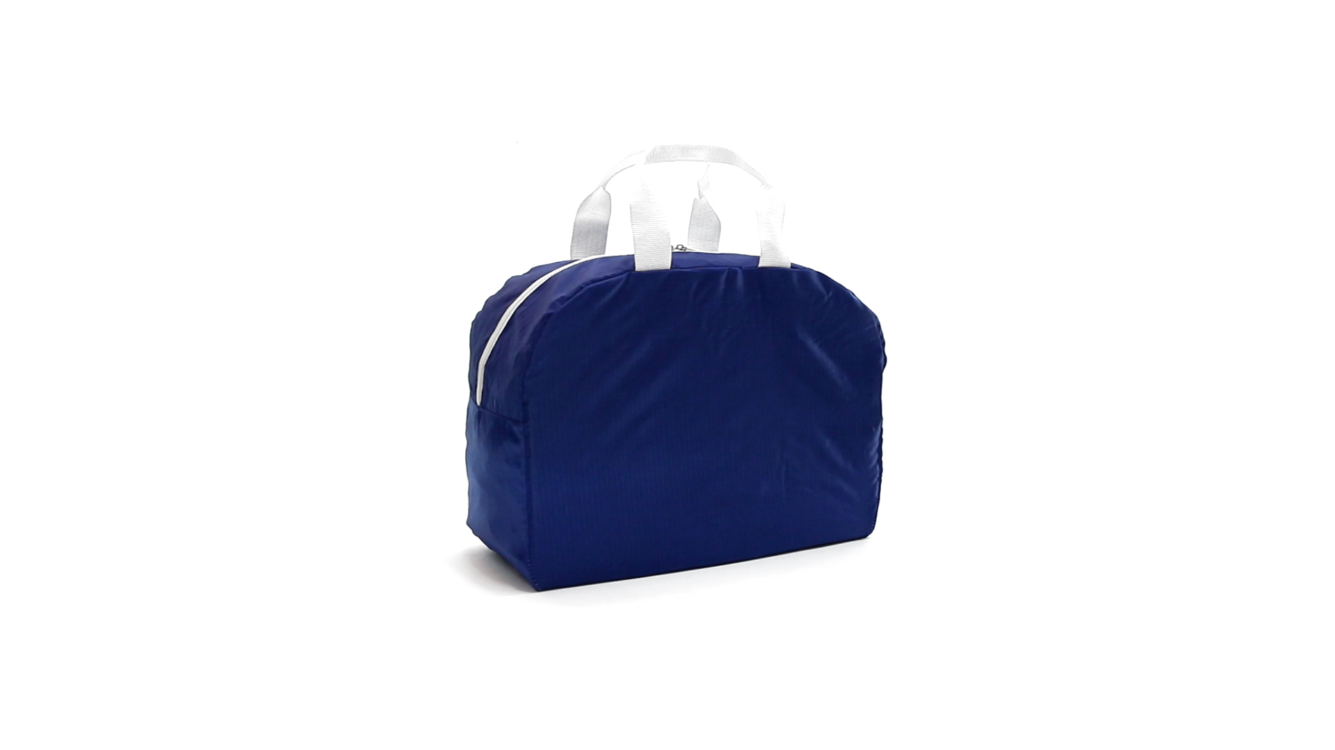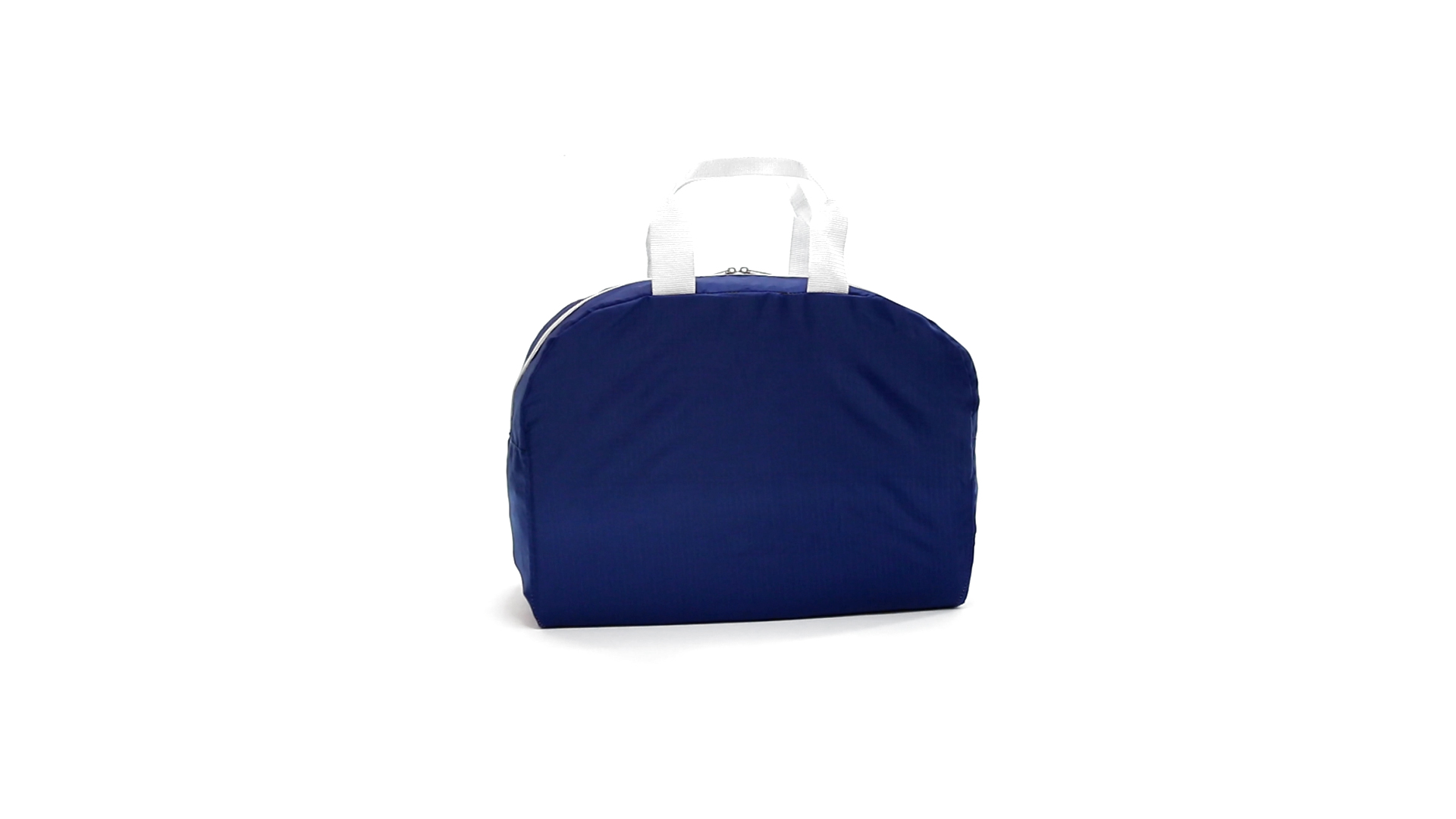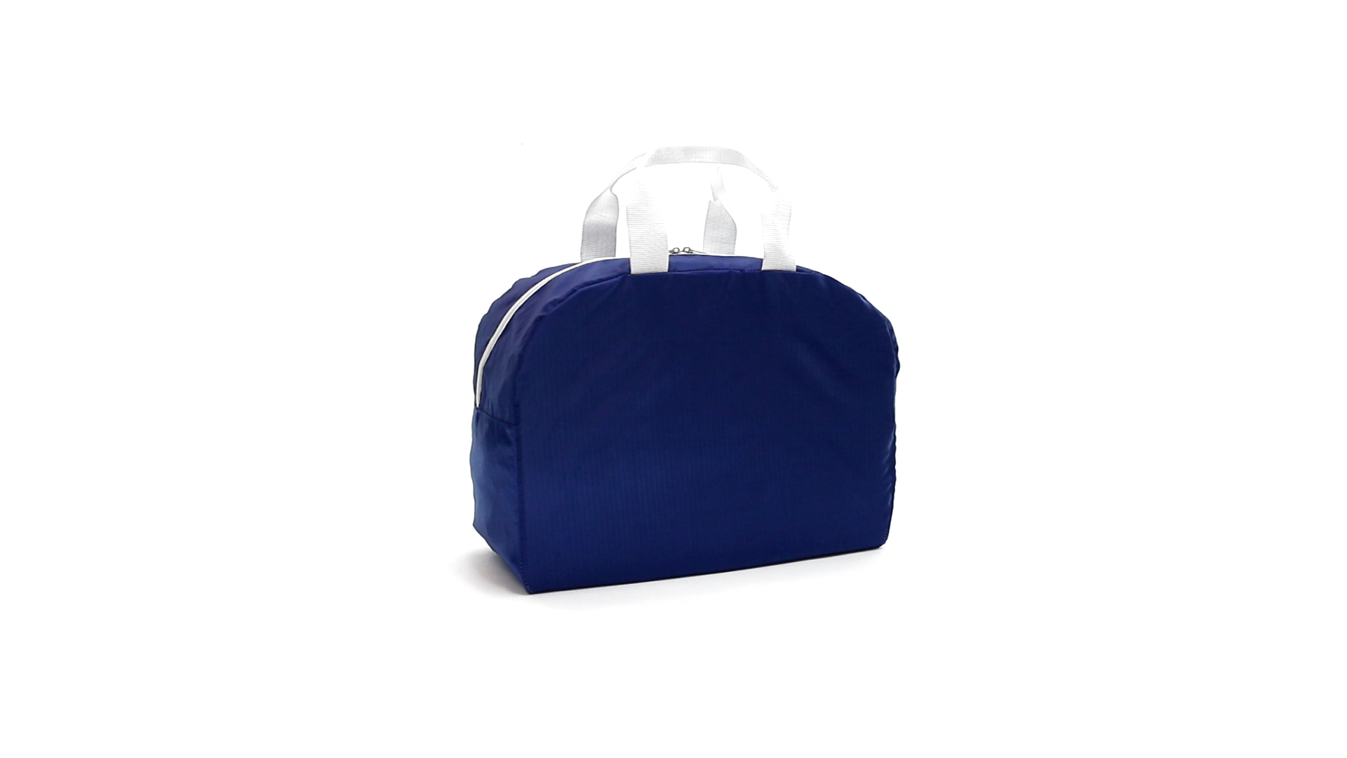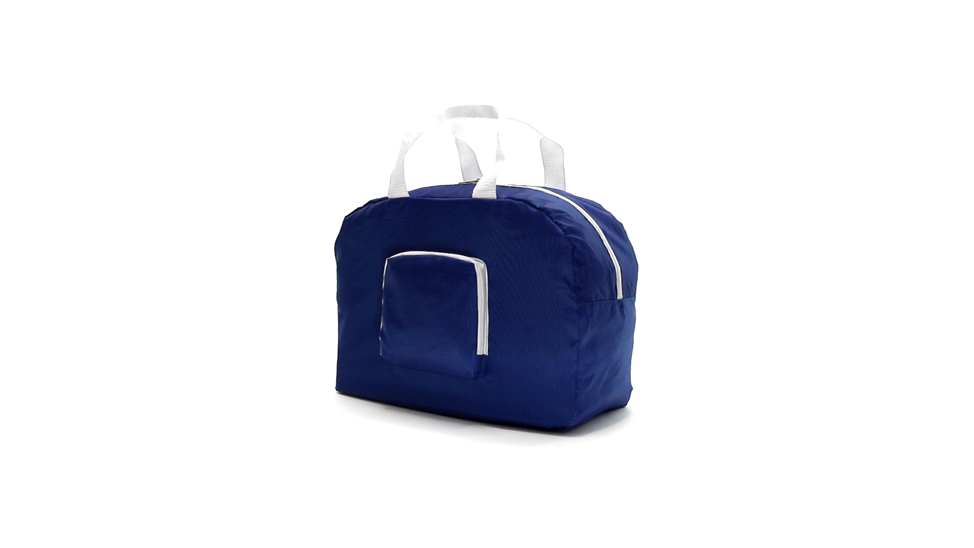 Faltbare, vielseitig verwendbare Tasche aus weichem Ripstop-Material mit zweifarbigem Design in lebendigen Farben. Mit robusten, farblich passenden Nylongriffen und Front- und Haupttaschen mit weissem Reissverschluss. Zusammenfaltbar auf kleine Grösse.