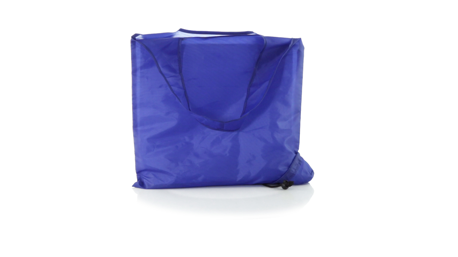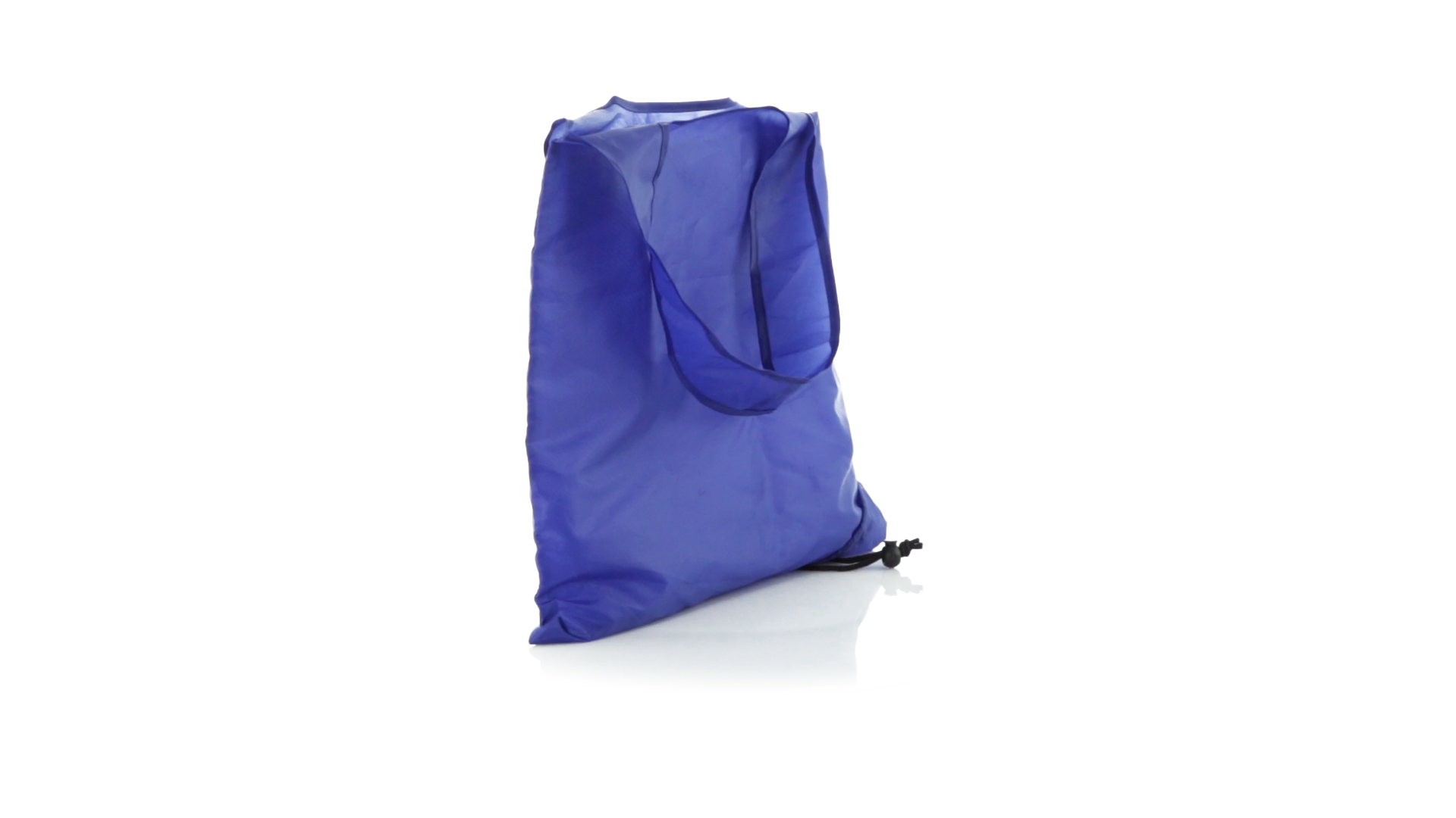 Faltbare Tasche aus weichem 190T Polyester. Mit bequemem Griff, farblich passendem Zugband und Kordelstopper für einfaches Verstauen.