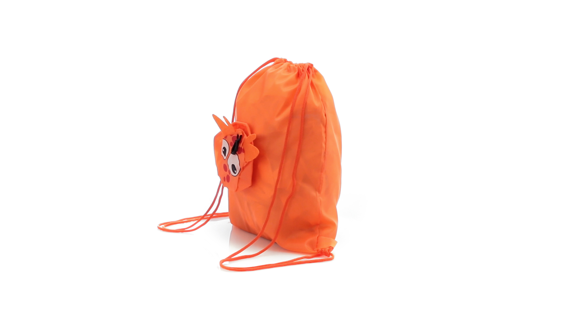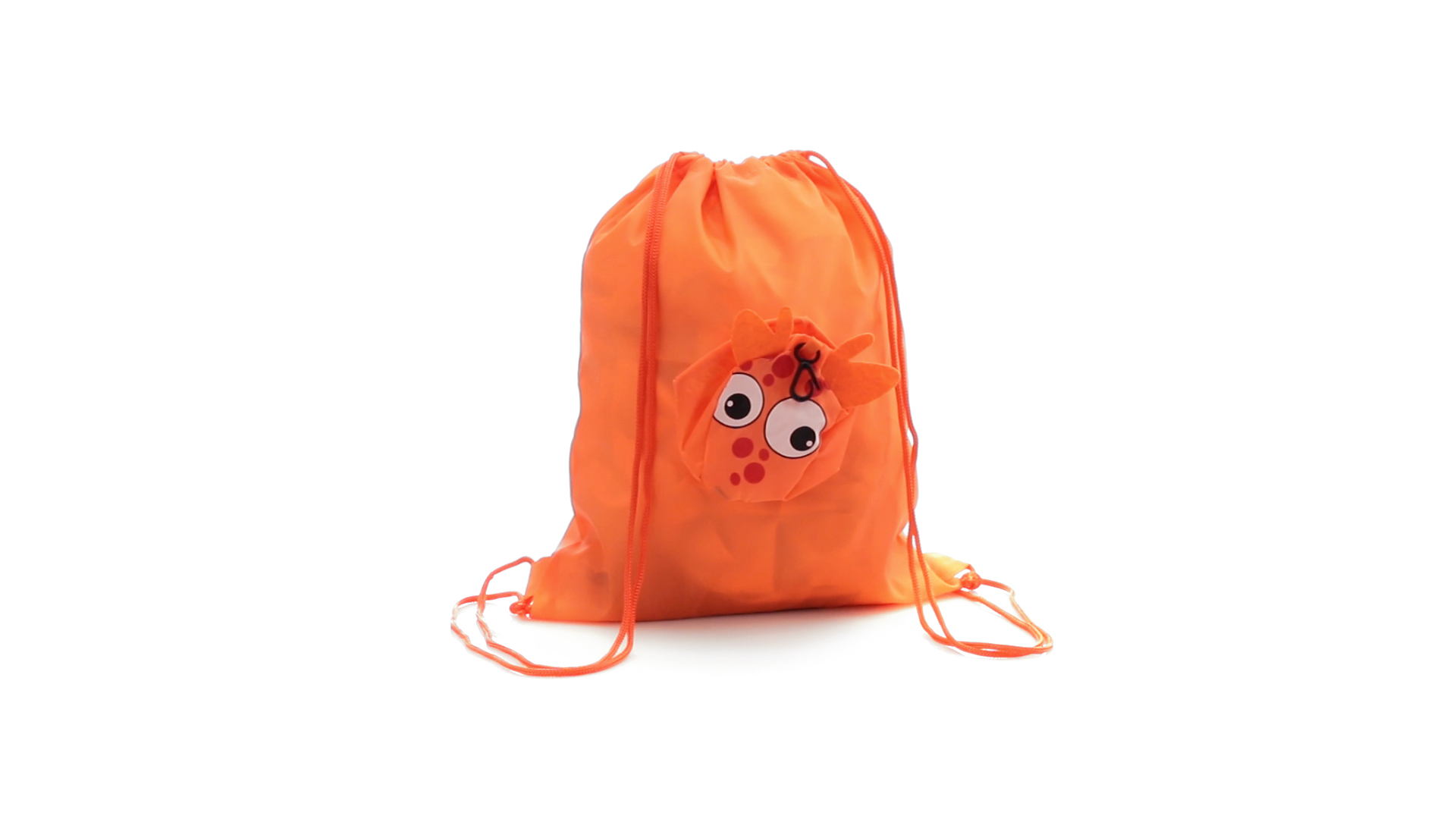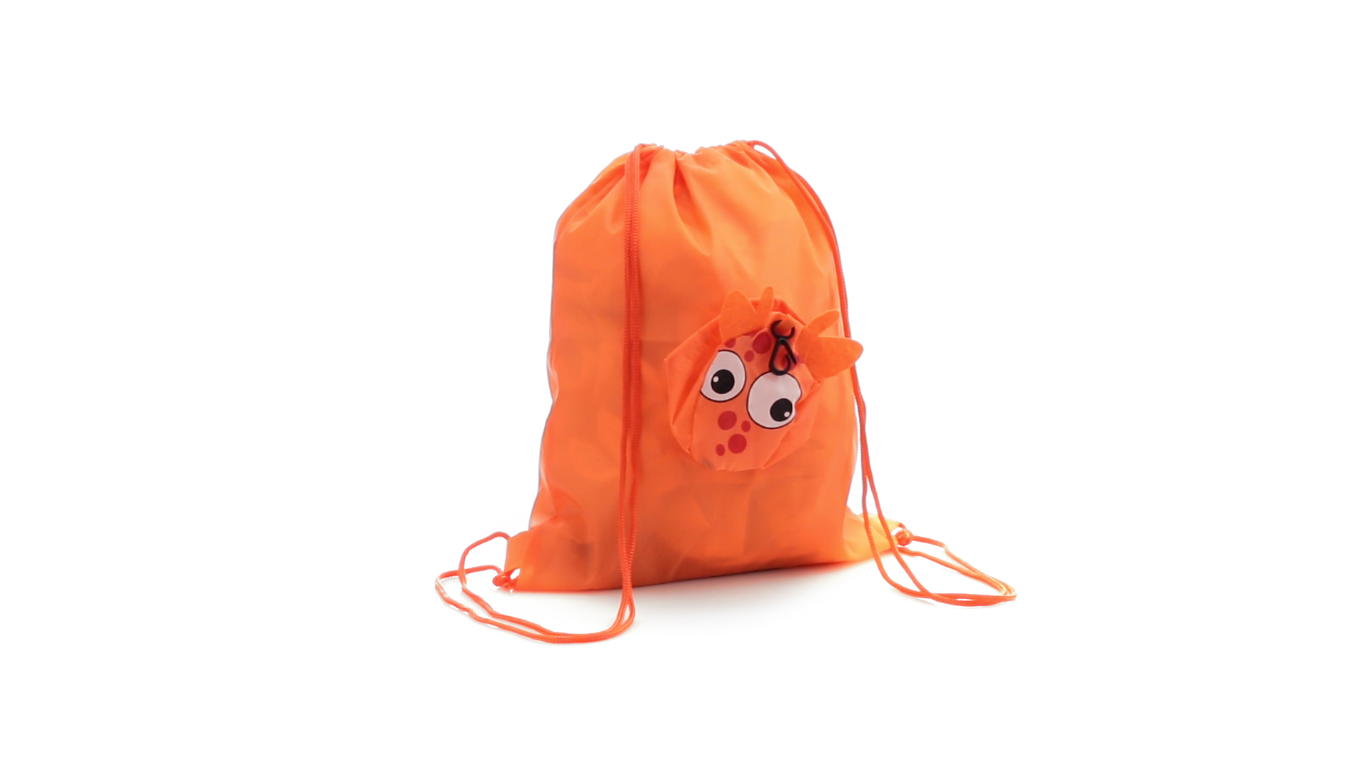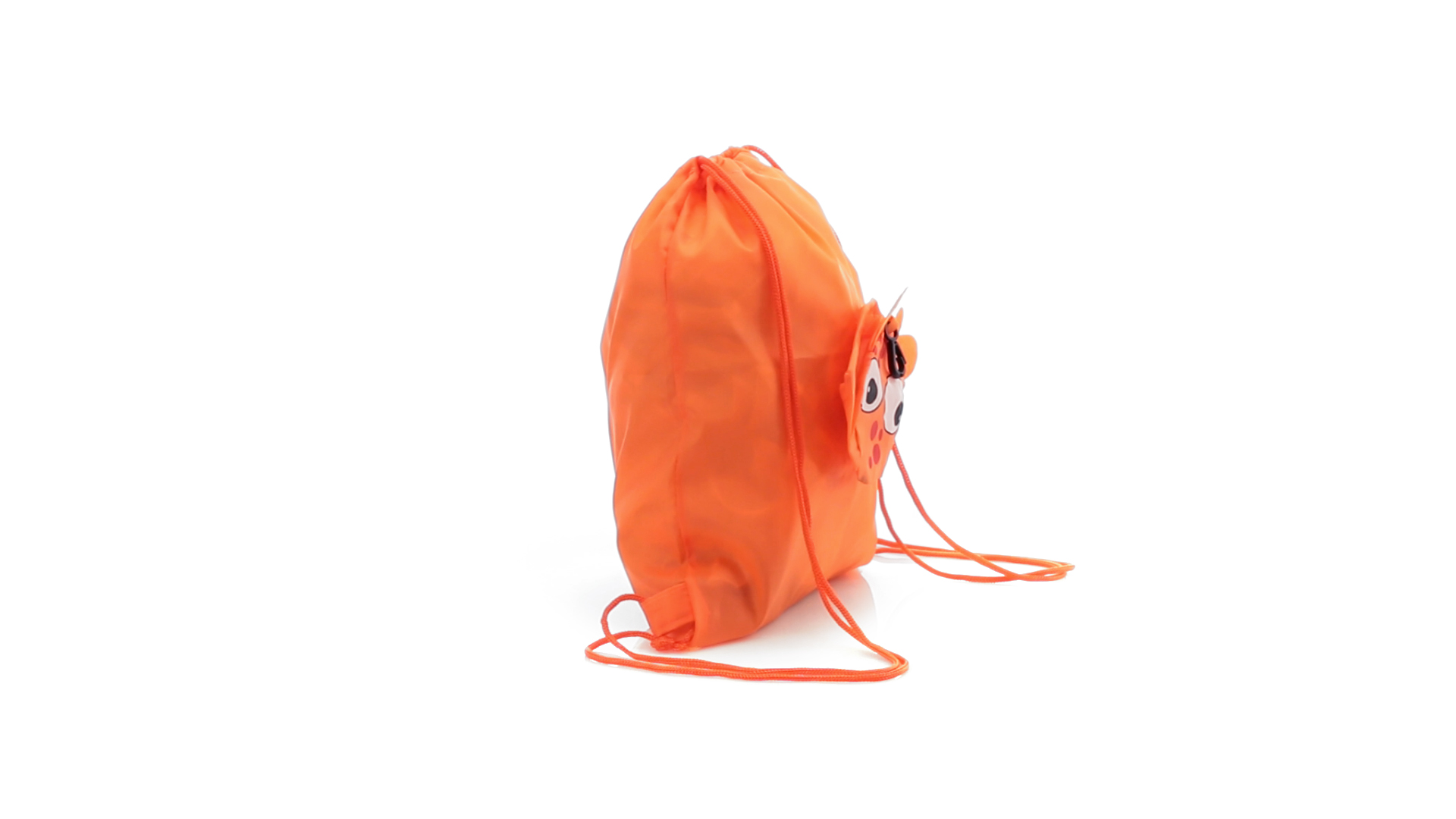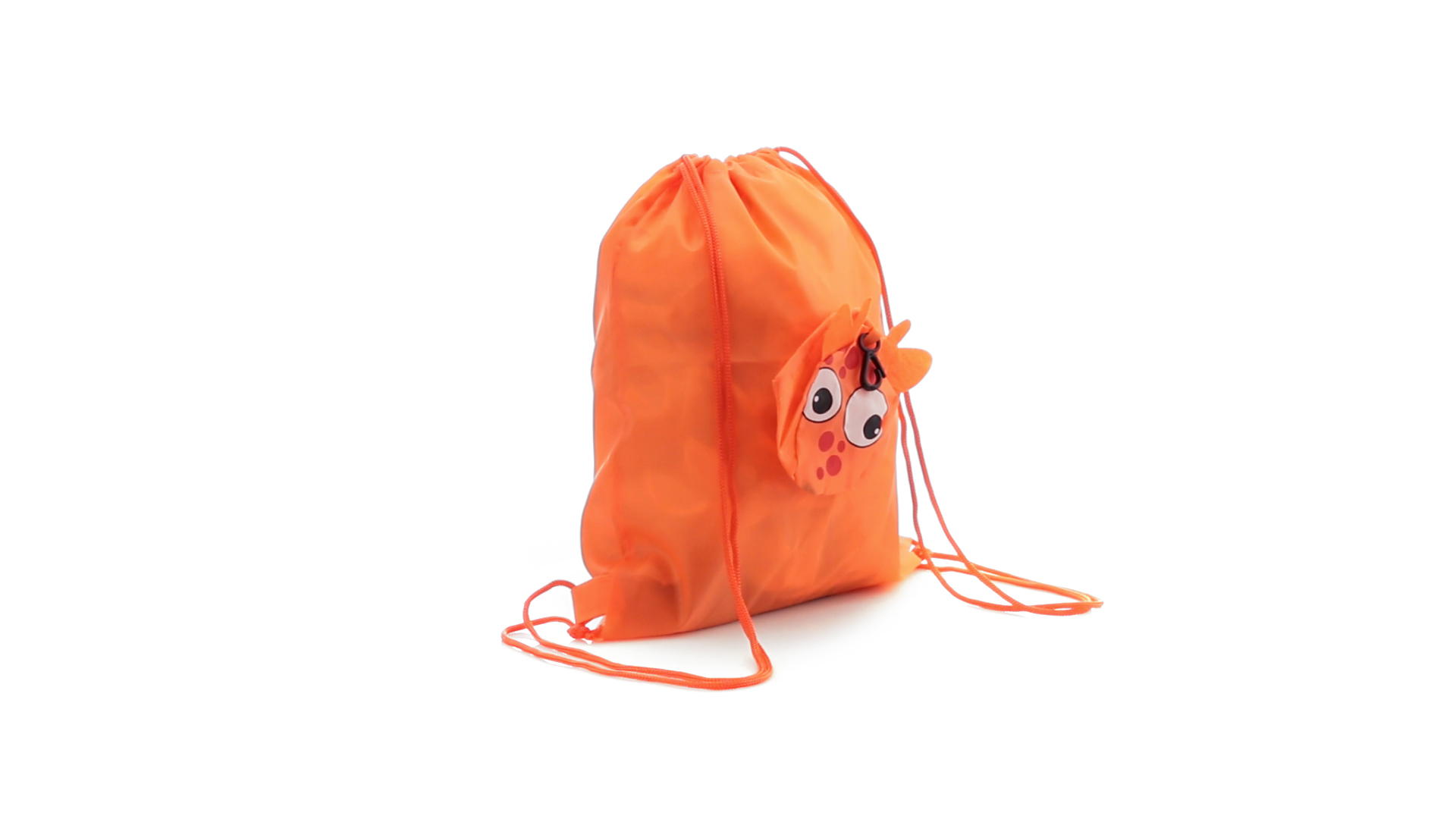 Faltbarer Rucksack mit Kordelzug aus 190T Polyester mit fröhlichem Tier-Design in verschiedenen lebendigen Farben. Mit Tragegriff, Zugbändern und farblich passenden Seitenverstärkungen. Verstaubar in integriertem Beutel in Tier-Form. mit farblich passender Trageschlaufe und Kordelstopper.
