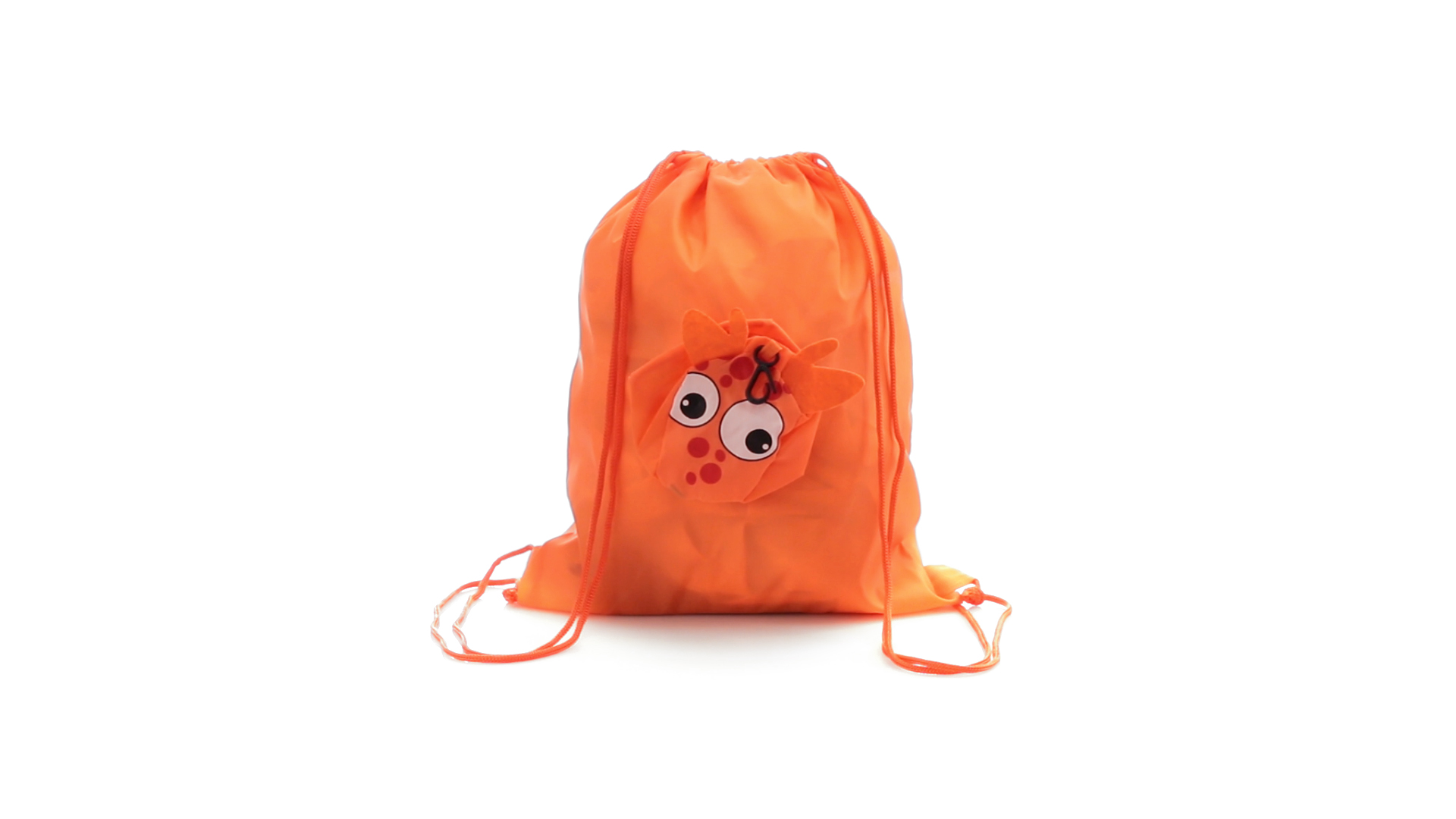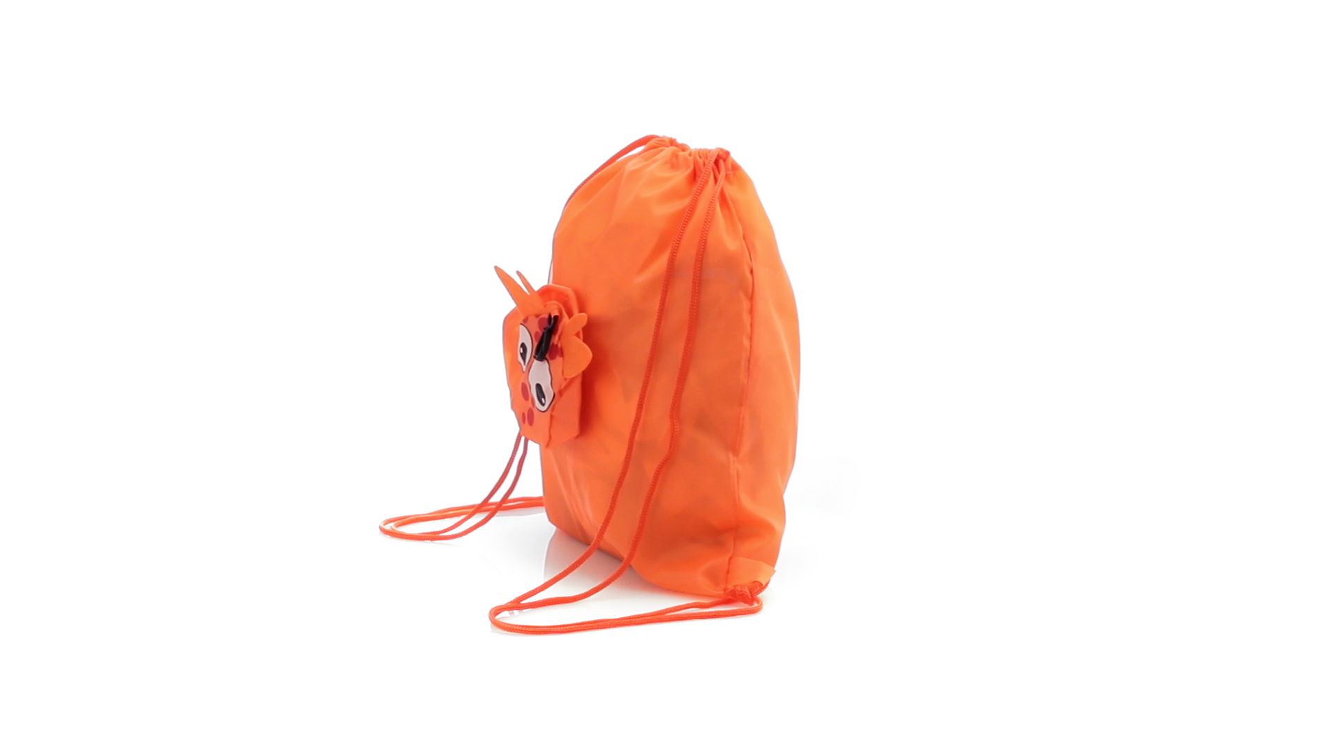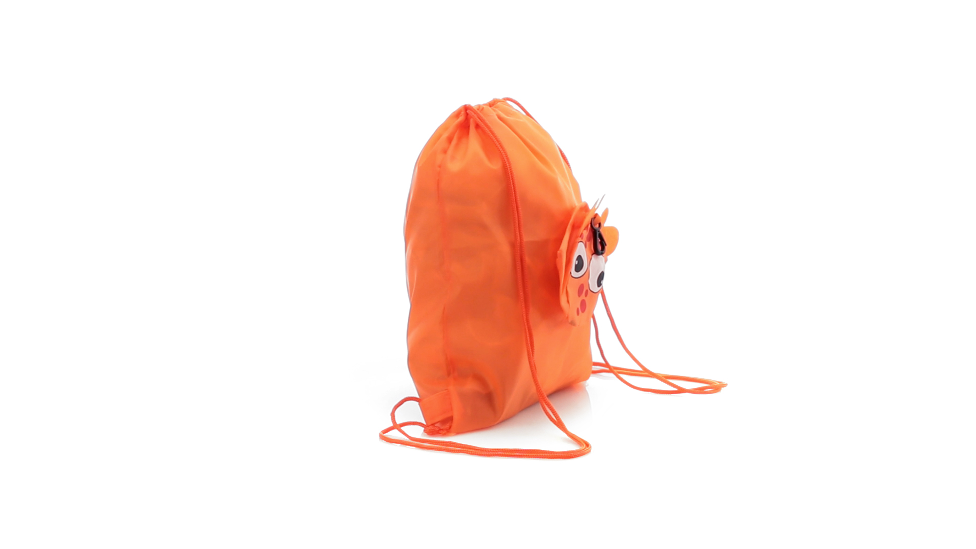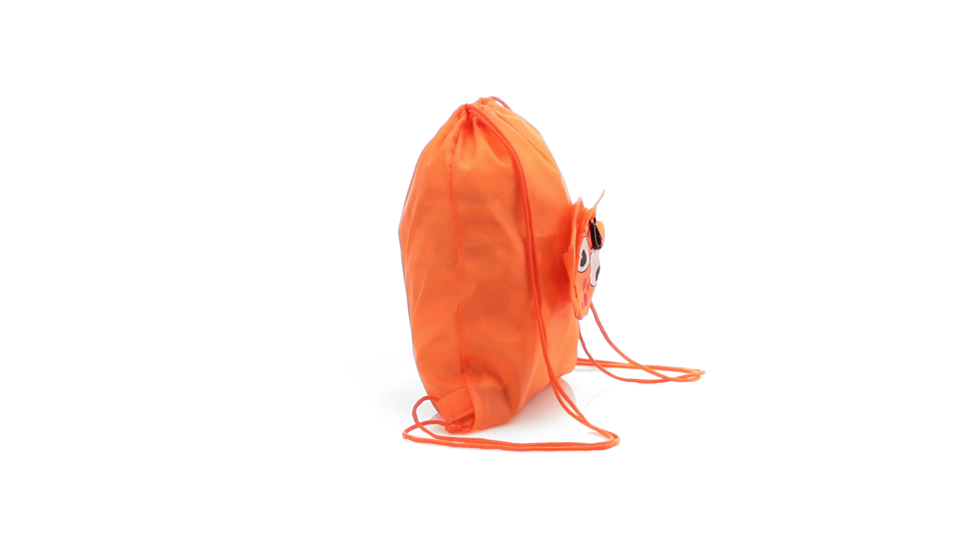Faltbarer Rucksack mit Kordelzug aus 190T Polyester mit fröhlichem Tier-Design in verschiedenen lebendigen Farben. Mit Tragegriff, Zugbändern und farblich passenden Seitenverstärkungen. Verstaubar in integriertem Beutel in Tier-Form. mit farblich passender Trageschlaufe und Kordelstopper.