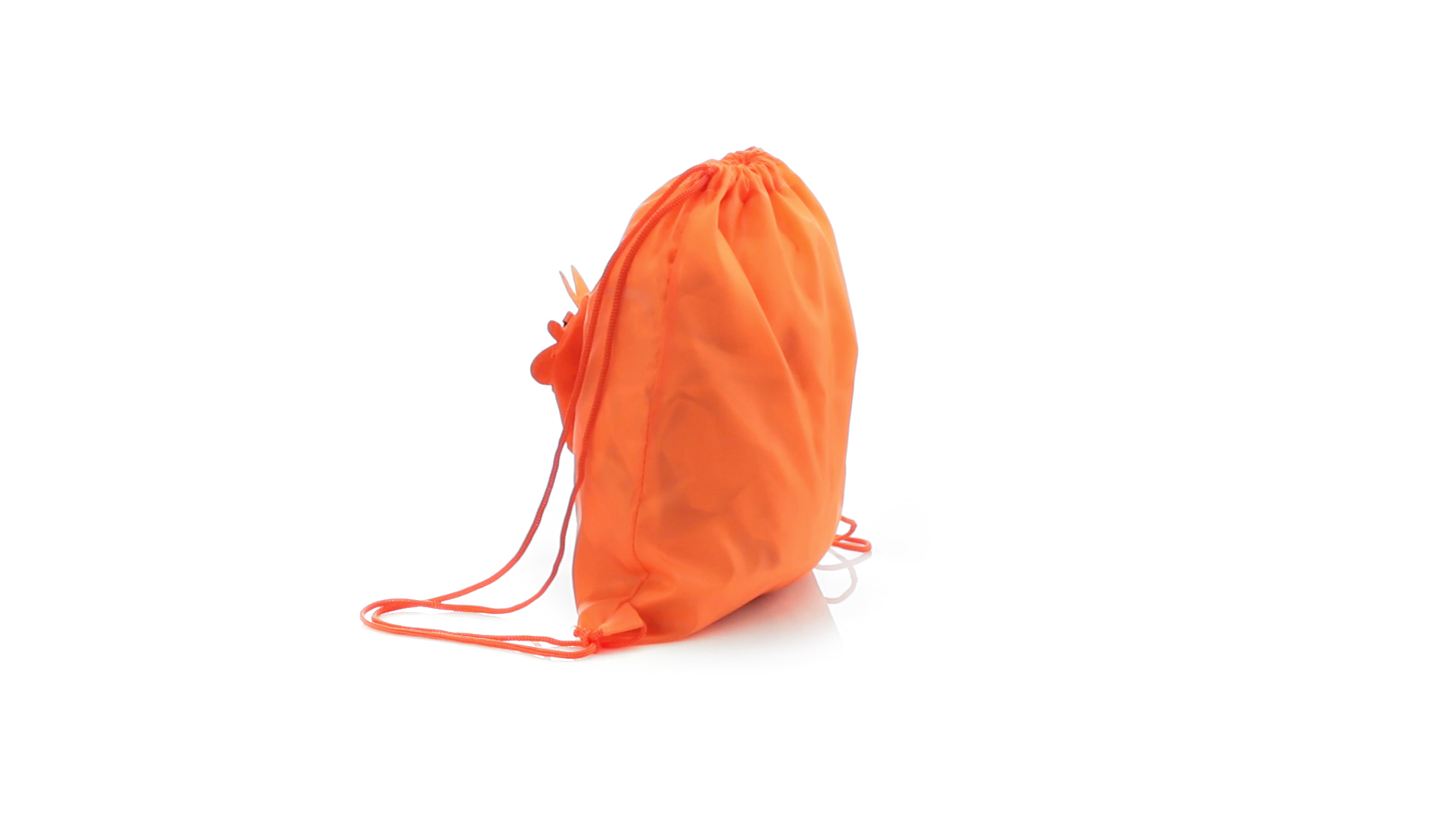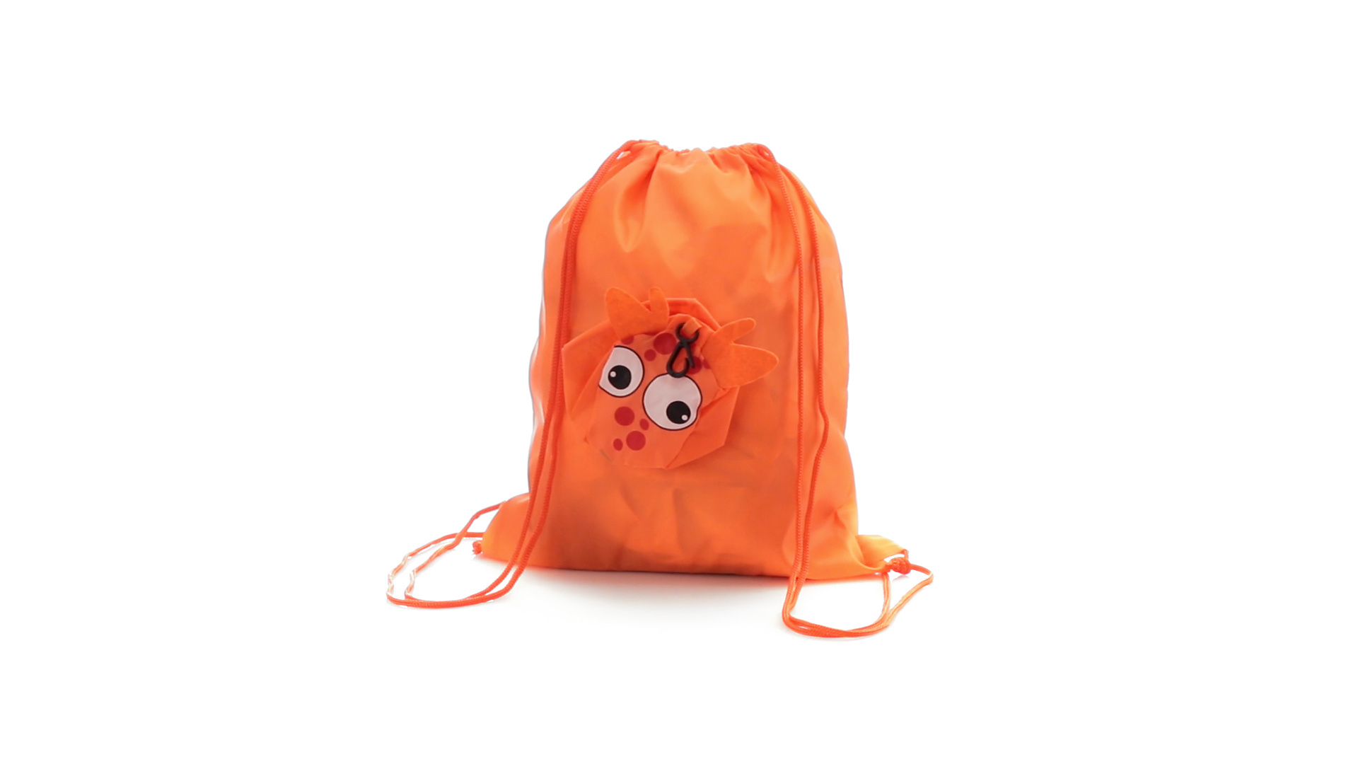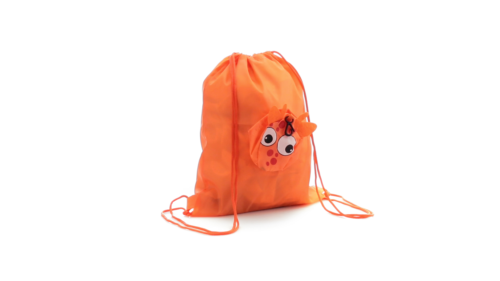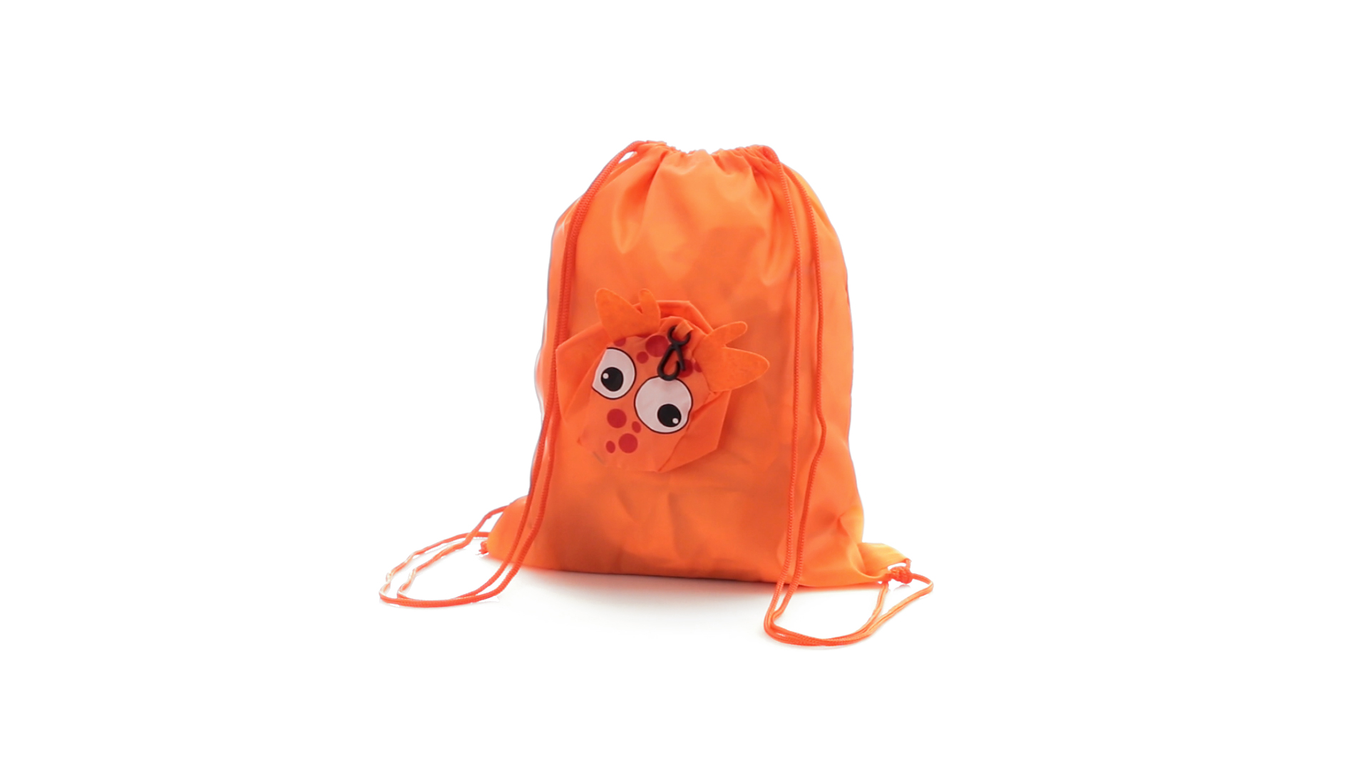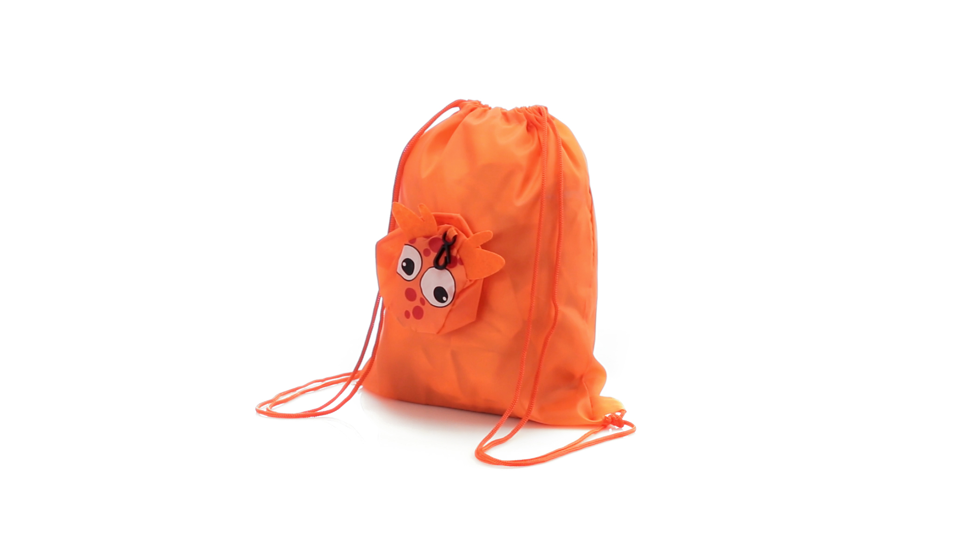 Faltbarer Rucksack mit Kordelzug aus 190T Polyester mit fröhlichem Tier-Design in verschiedenen lebendigen Farben. Mit Tragegriff, Zugbändern und farblich passenden Seitenverstärkungen. Verstaubar in integriertem Beutel in Tier-Form. mit farblich passender Trageschlaufe und Kordelstopper.