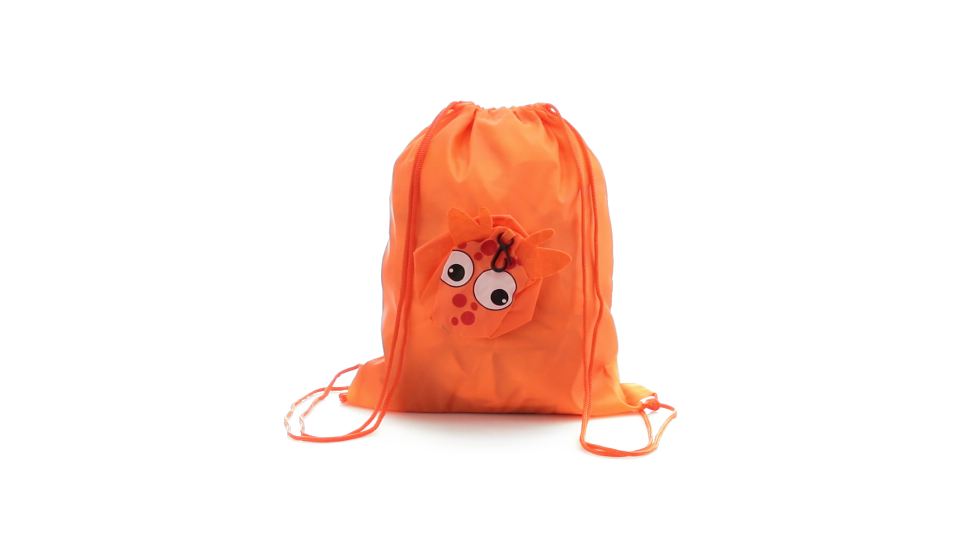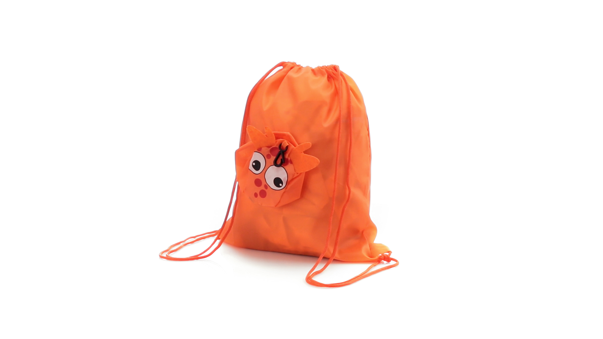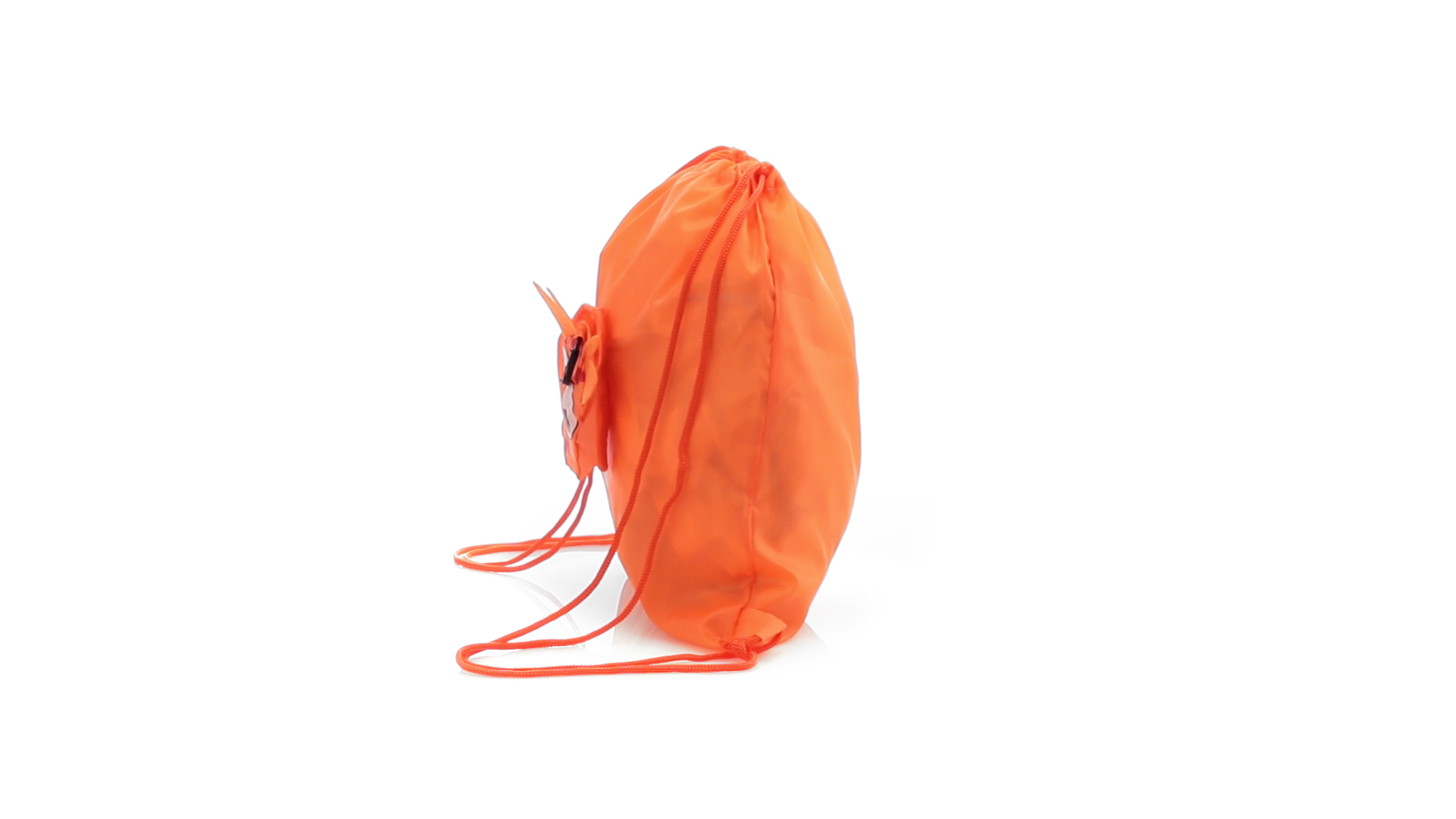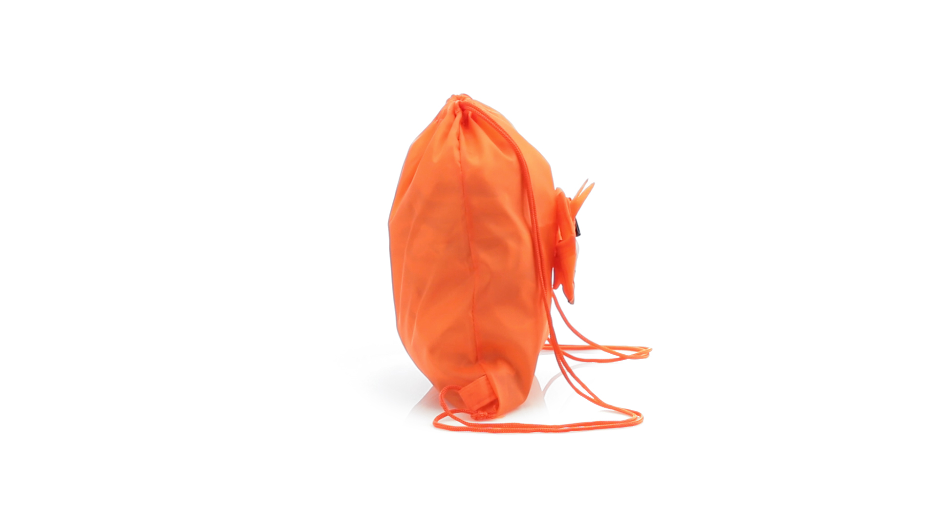 Faltbarer Rucksack mit Kordelzug aus 190T Polyester mit fröhlichem Tier-Design in verschiedenen lebendigen Farben. Mit Tragegriff, Zugbändern und farblich passenden Seitenverstärkungen. Verstaubar in integriertem Beutel in Tier-Form. mit farblich passender Trageschlaufe und Kordelstopper.