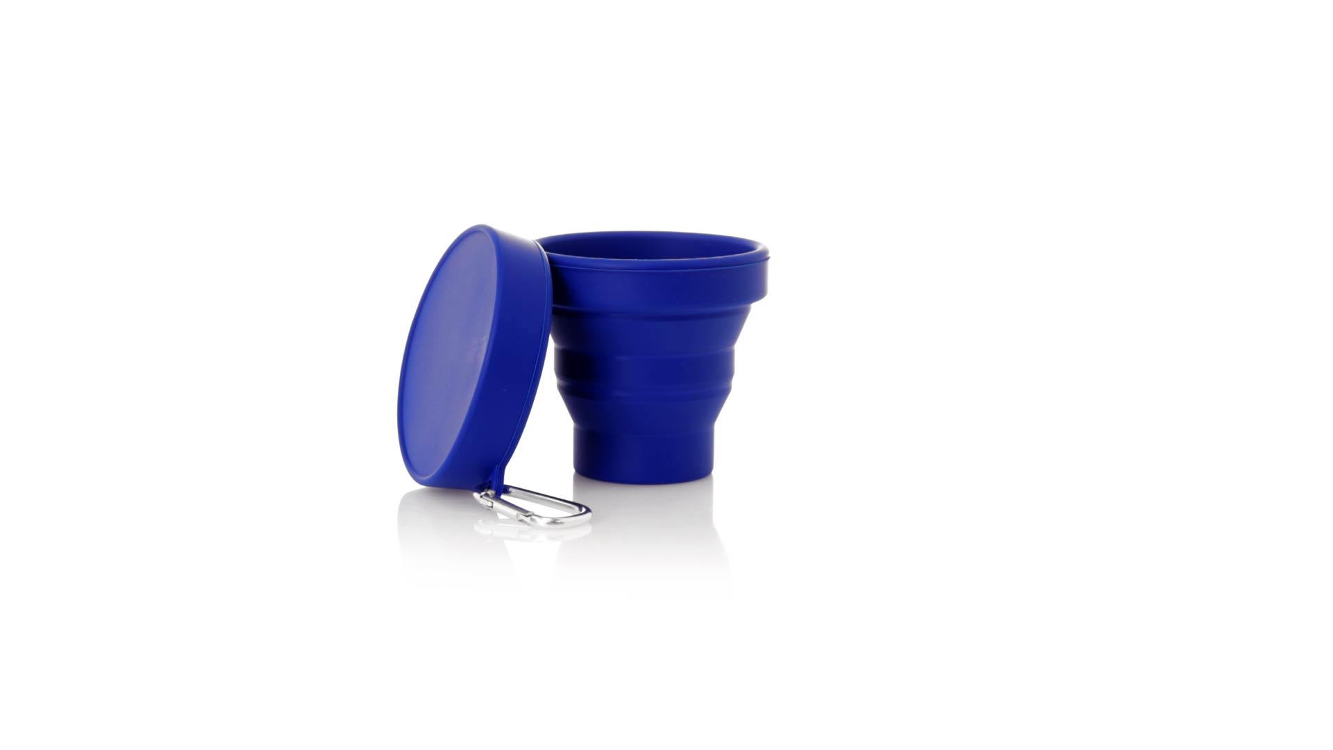 Faltbarer Becher mit einem Fassungsvermögen von 160 ml. Aus hochwertigem Silikon mit passendem Deckel. Mit einem flexiblen, matten Gehäuse kann dieser Becher zur einfachen und bequemen Aufbewahrung zusammengeklappt werden. Inklusive Metallkarabiner zum einfachen Tragen. BPA-frei und in verschiedenen Farben erhältlich. Präsentiert in einer Kraft-Design-Box.