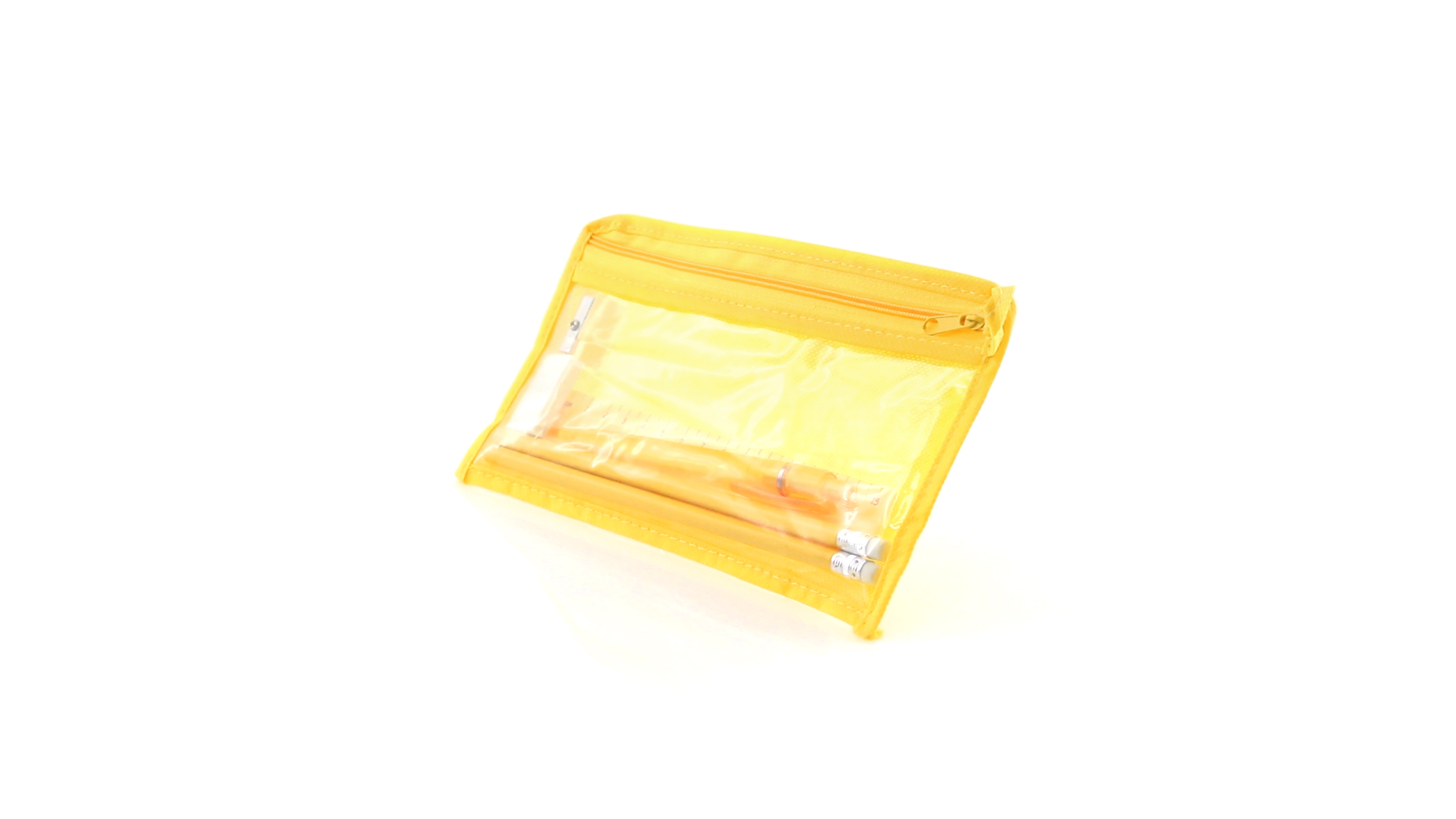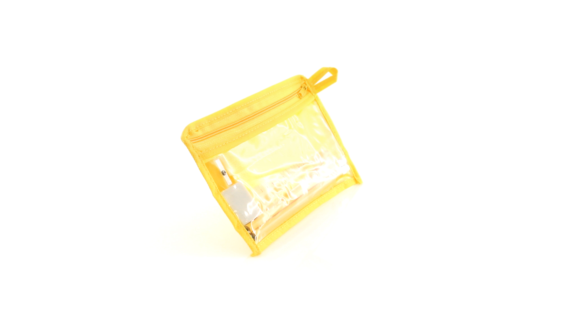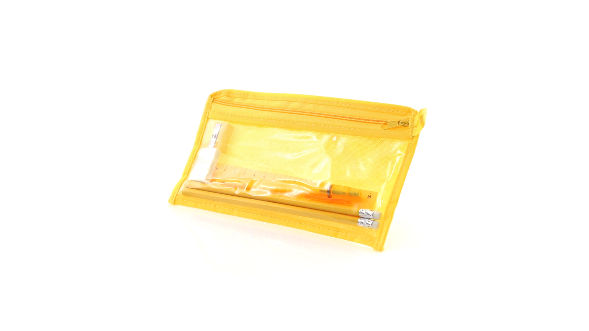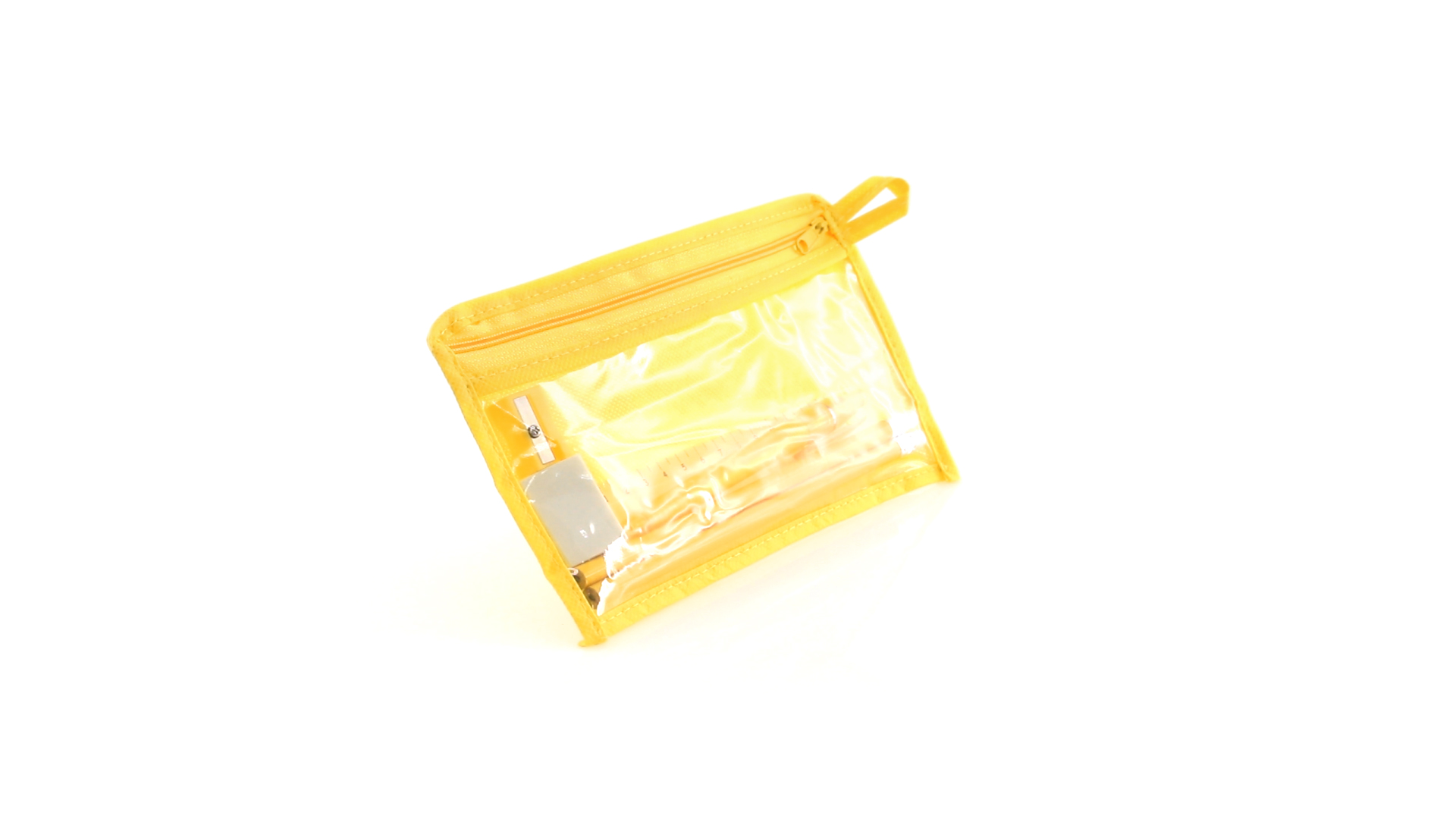 7-teiliges-Set in einem Non-Woven-Etui aus Faservlies in kräftigen Farben und mit einer transparenten PVC-Front. Enthält 2 Holz-Bleistifte mit zylindrischem Körper und integriertem Radiergummi sowie einen Kugelschreiber, Anspitzer, 15 cm langes Lineal und Radiergummi. Mit bequemem und farblich passendem Tragegriff.