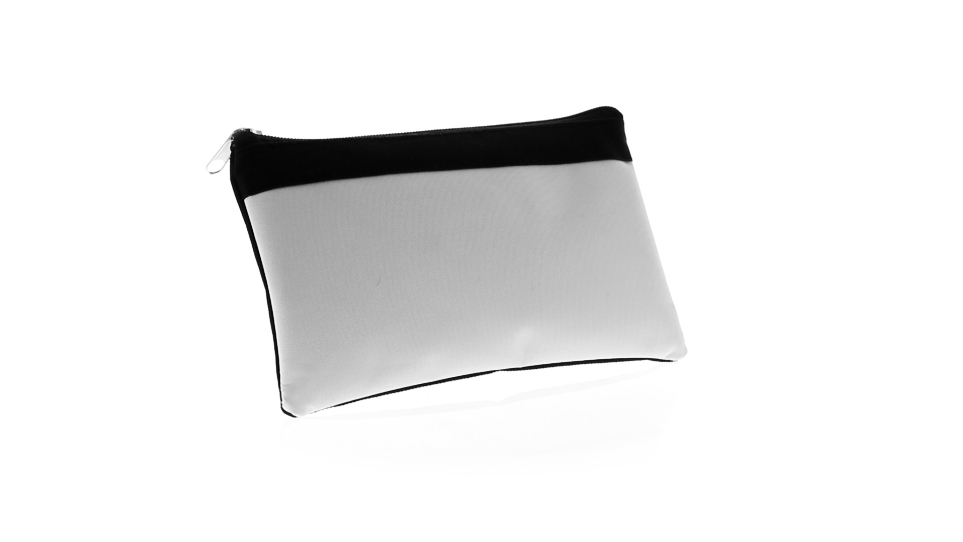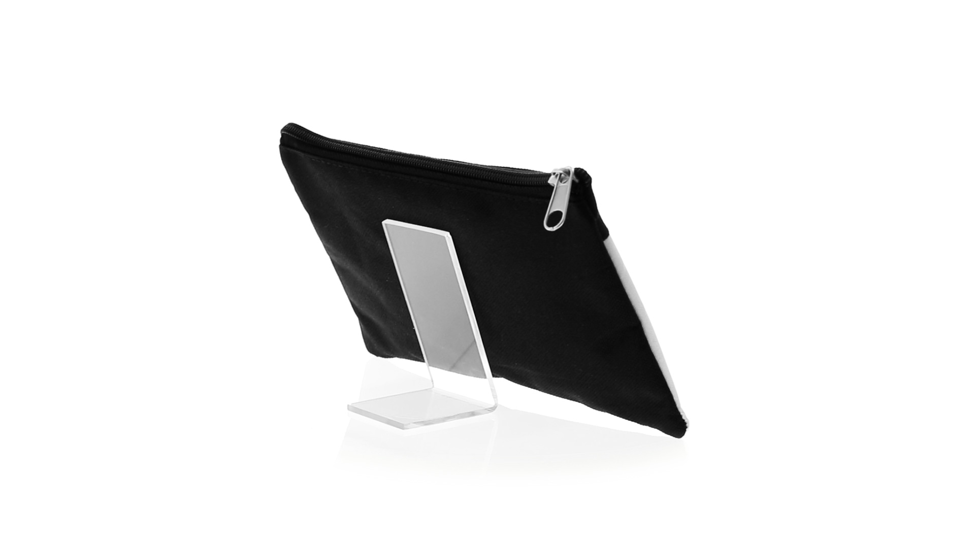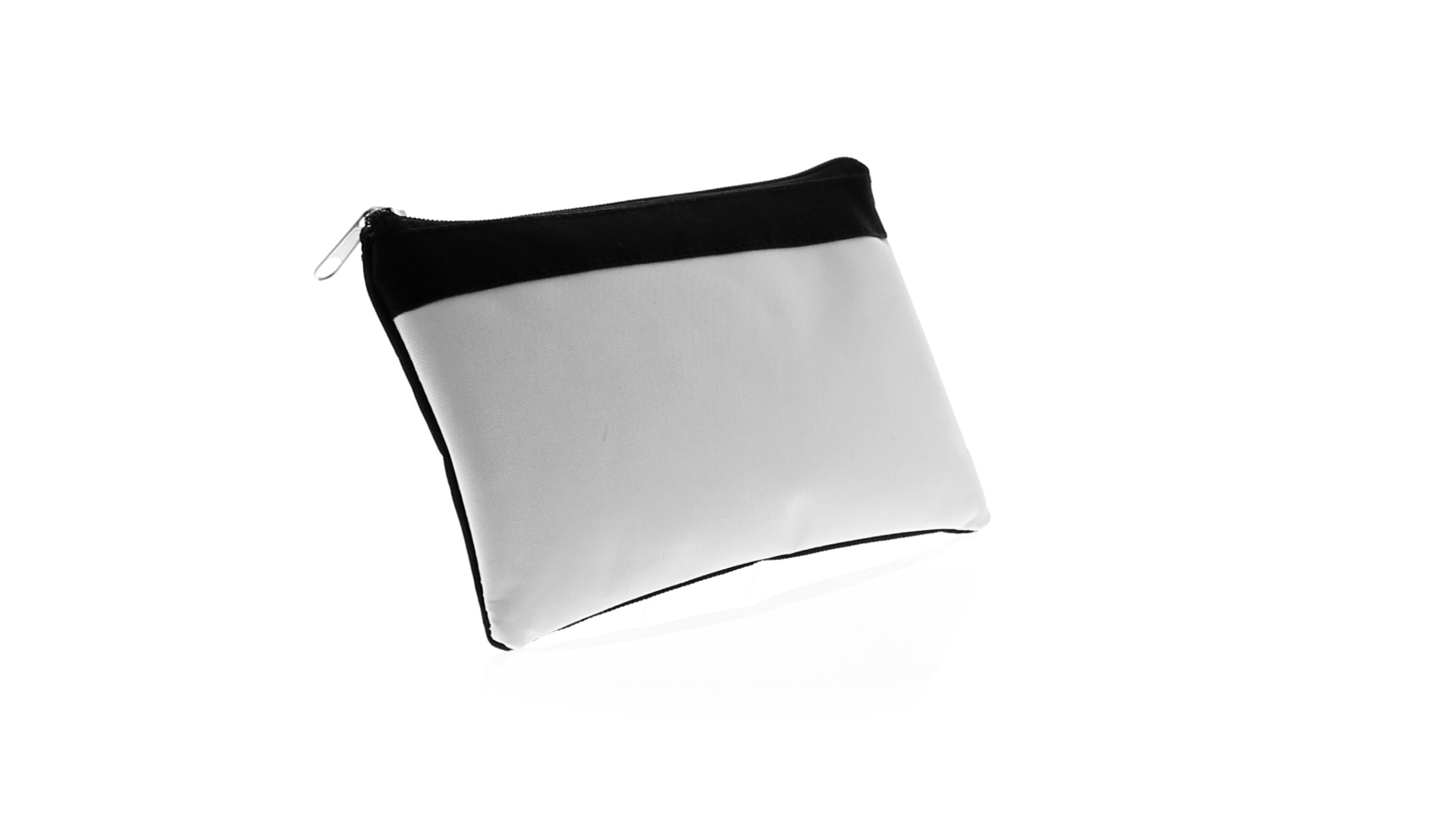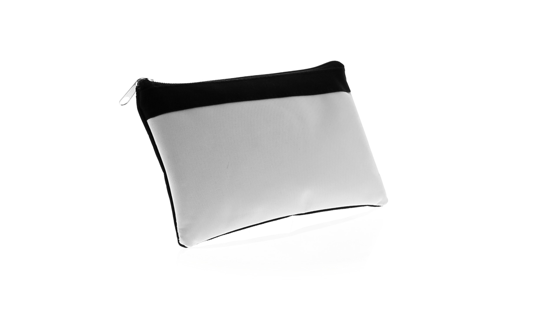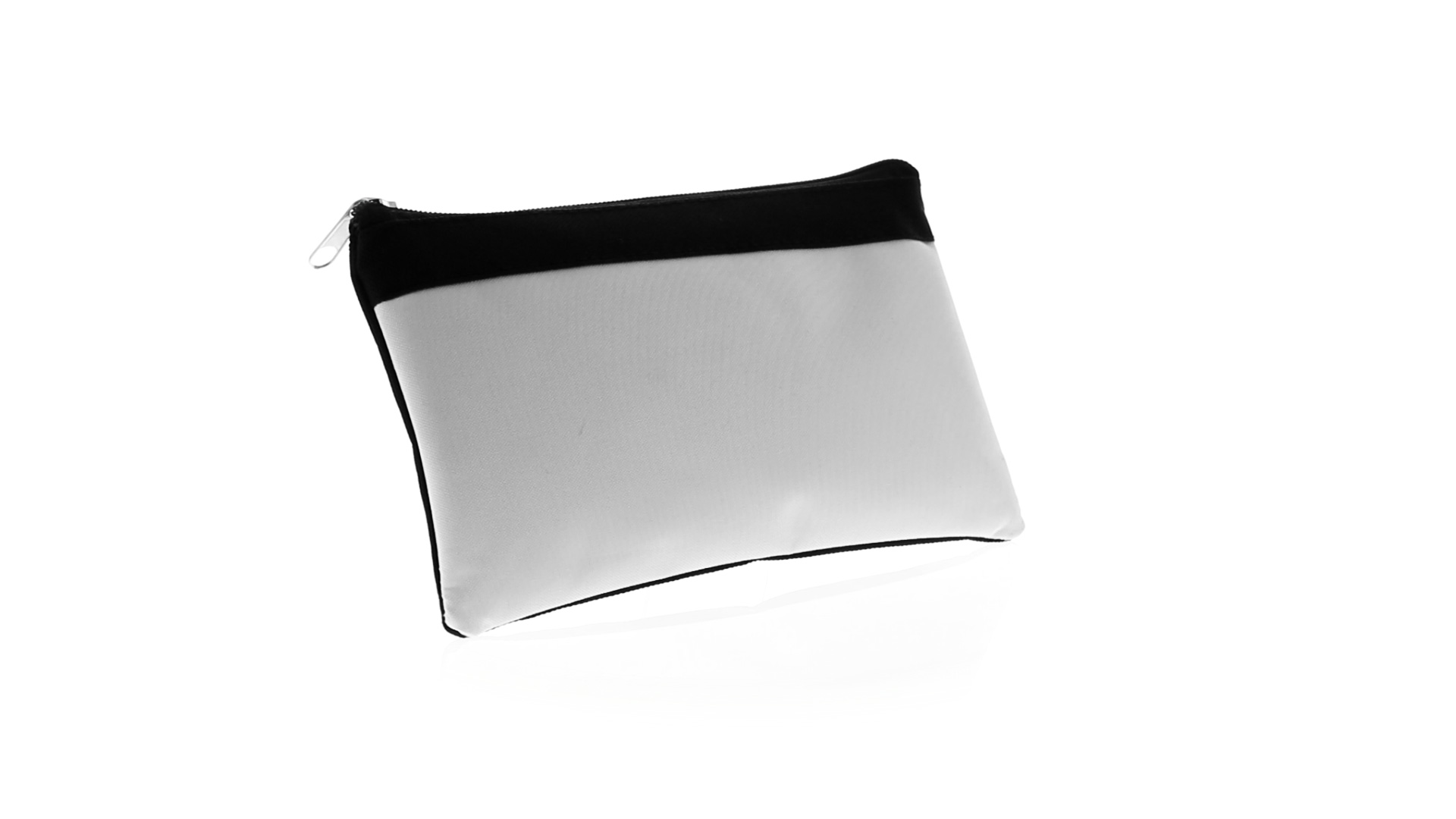 Etui aus elegantem 600D Polyester in einer Schwarz/Weiss-Kombination. Hauptfach mit Reissverschluss.