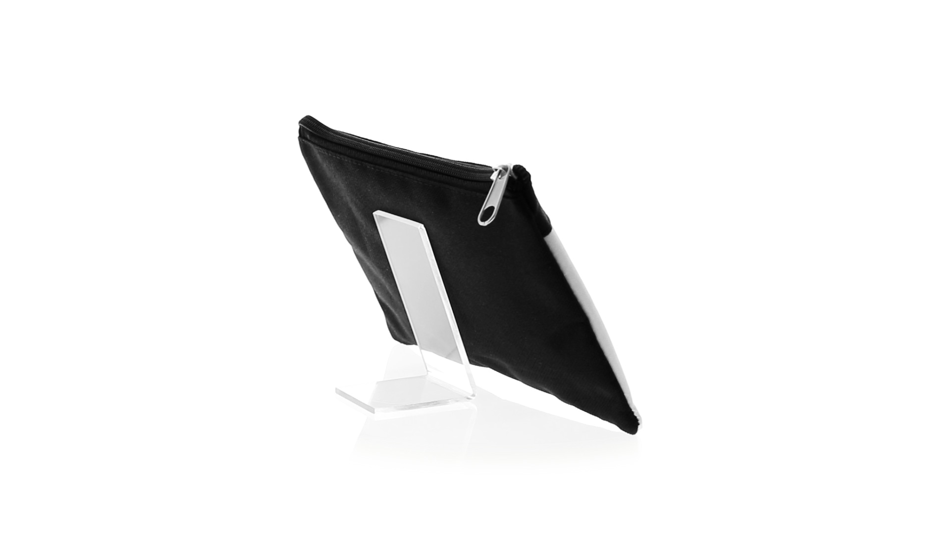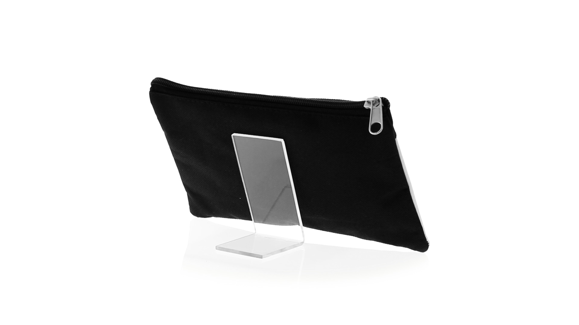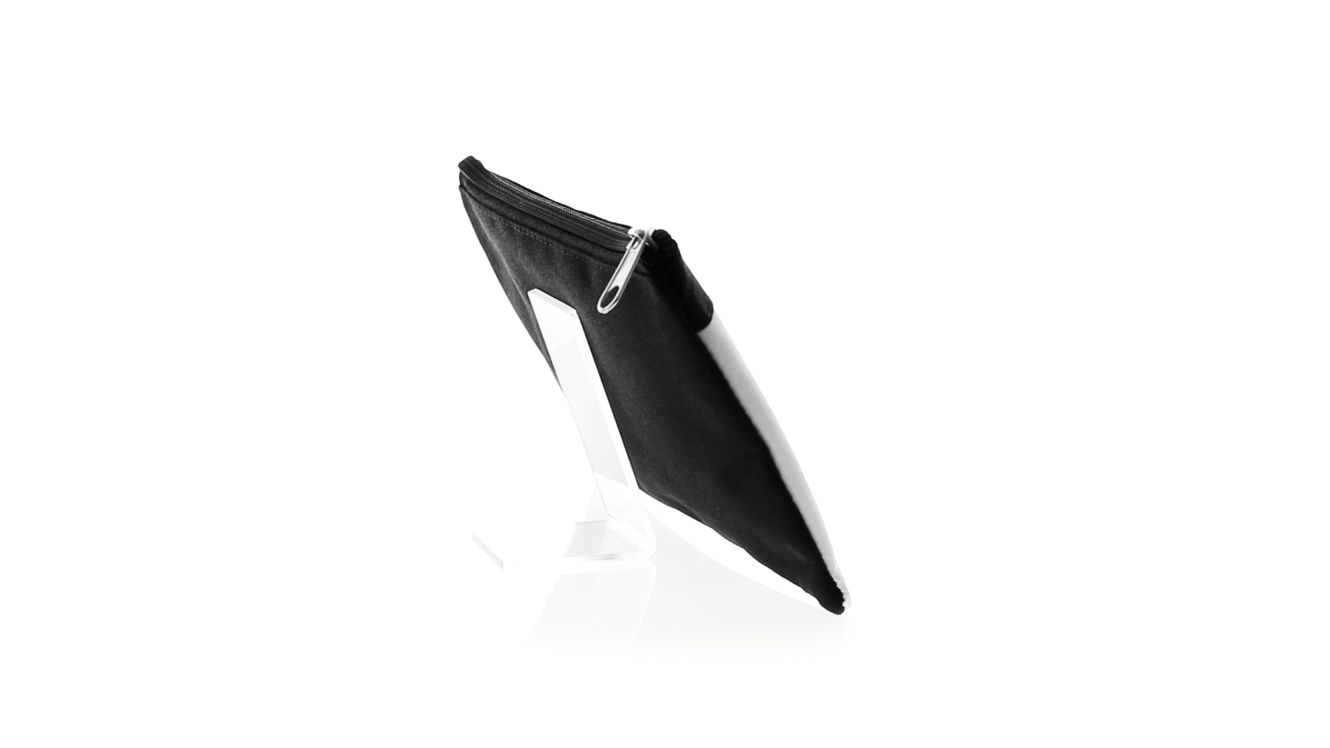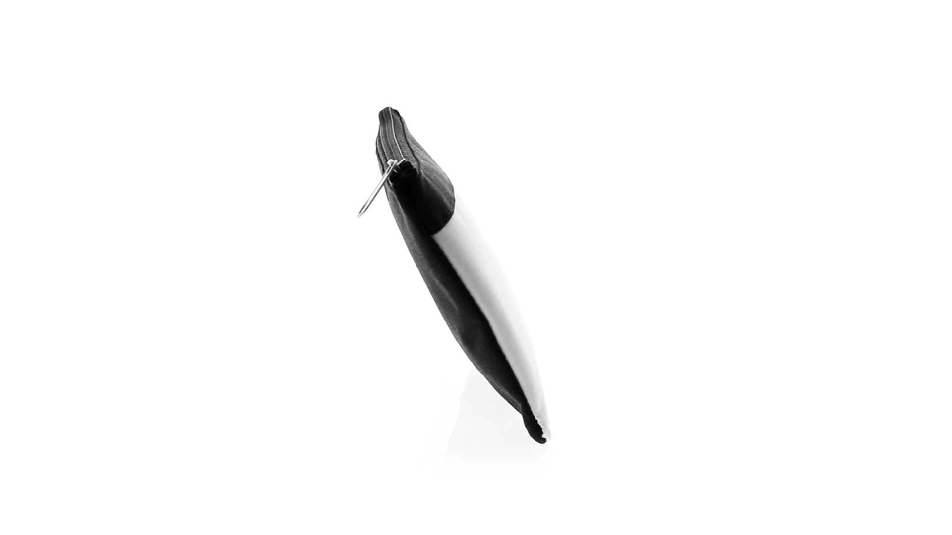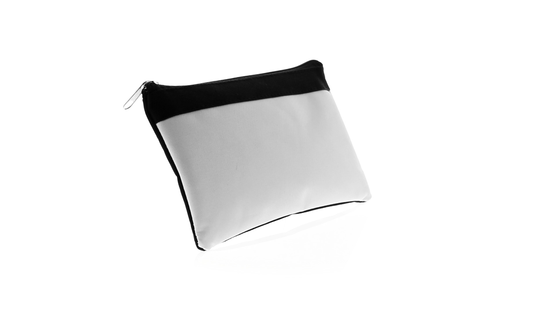 Etui aus elegantem 600D Polyester in einer Schwarz/Weiss-Kombination. Hauptfach mit Reissverschluss.