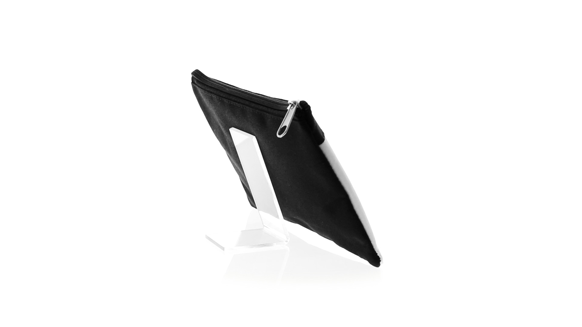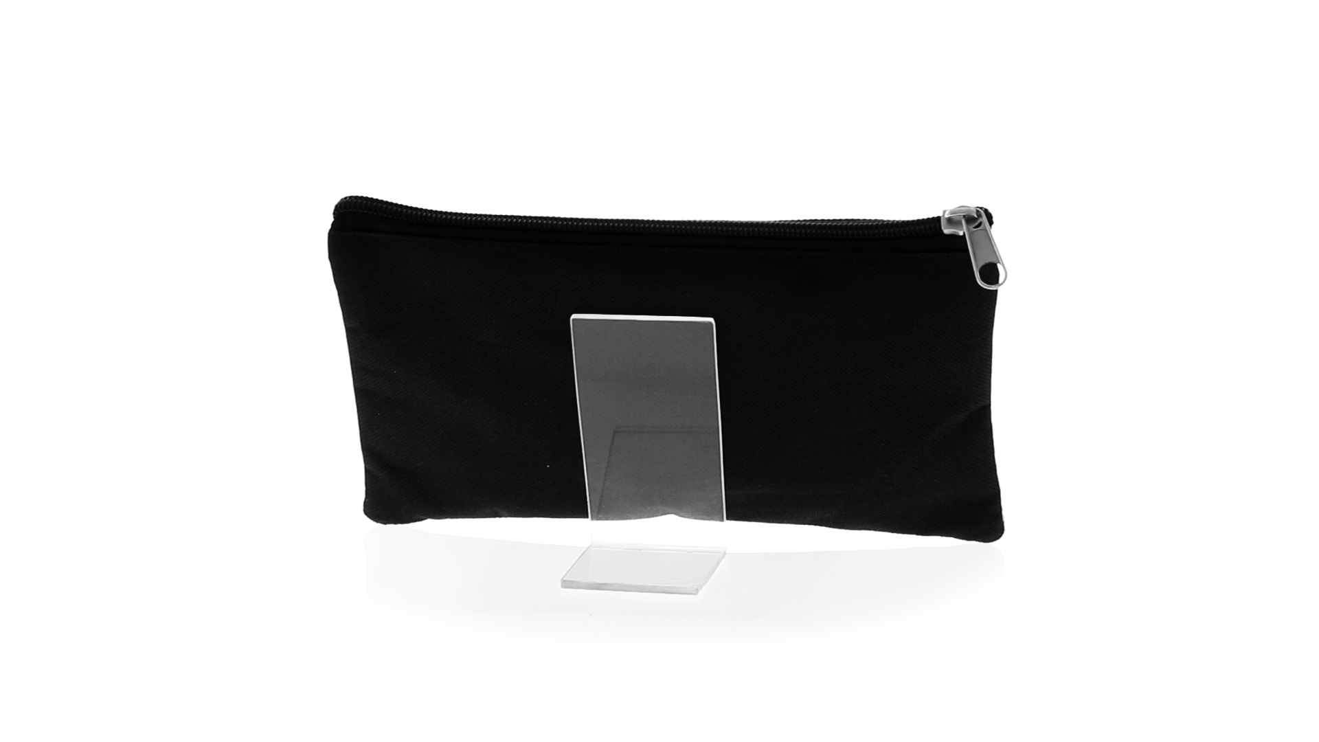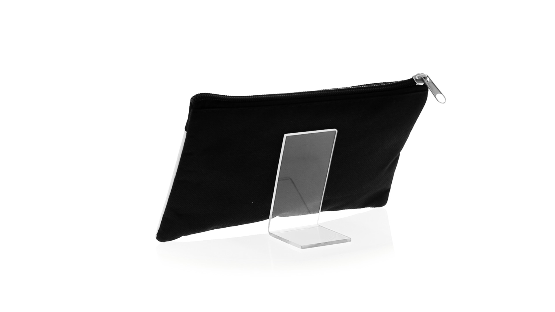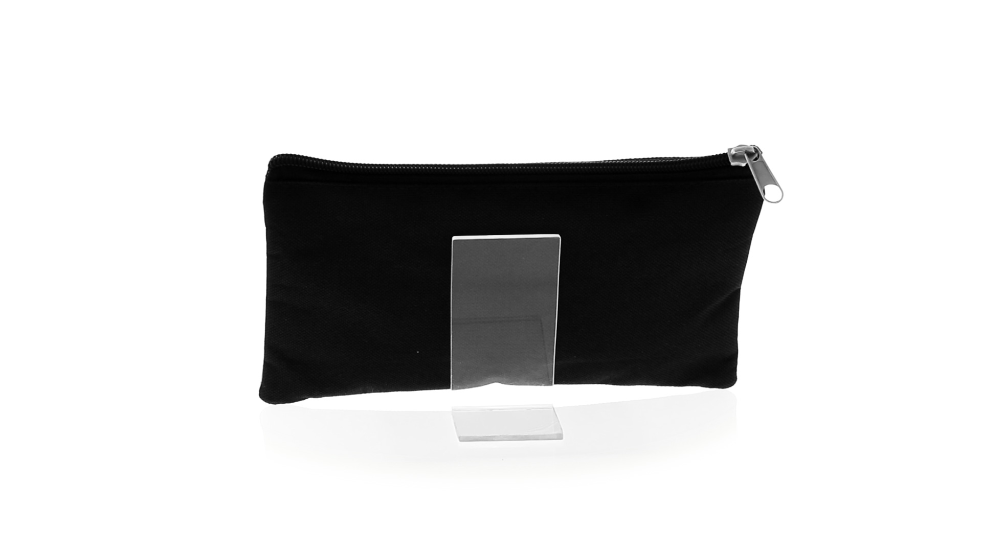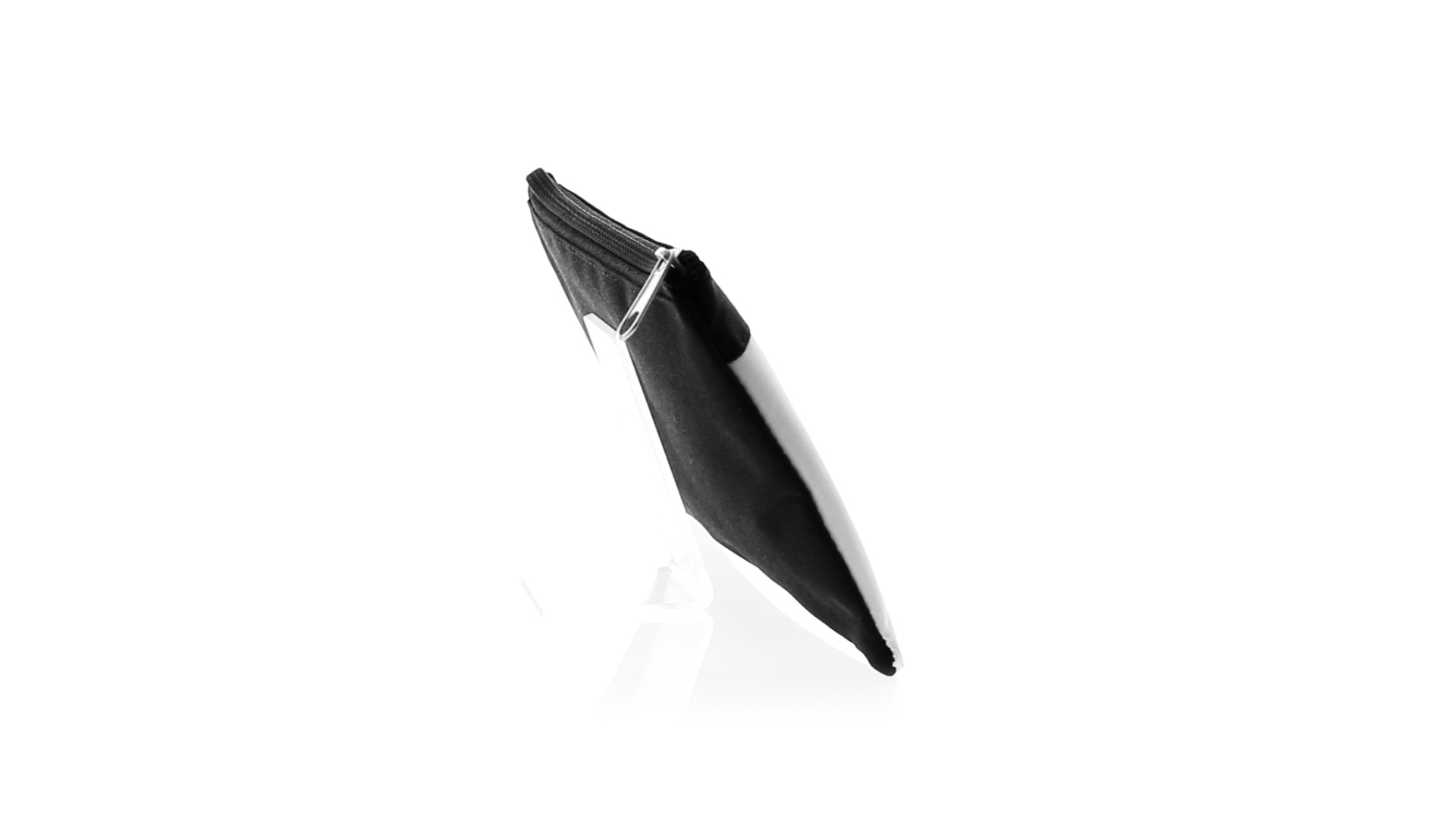 Etui aus elegantem 600D Polyester in einer Schwarz/Weiss-Kombination. Hauptfach mit Reissverschluss.