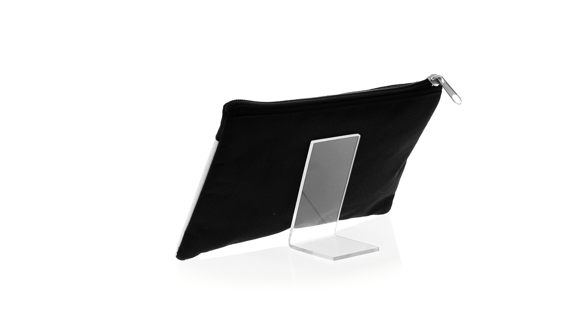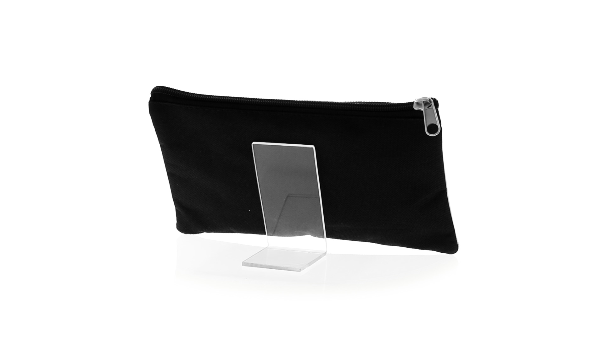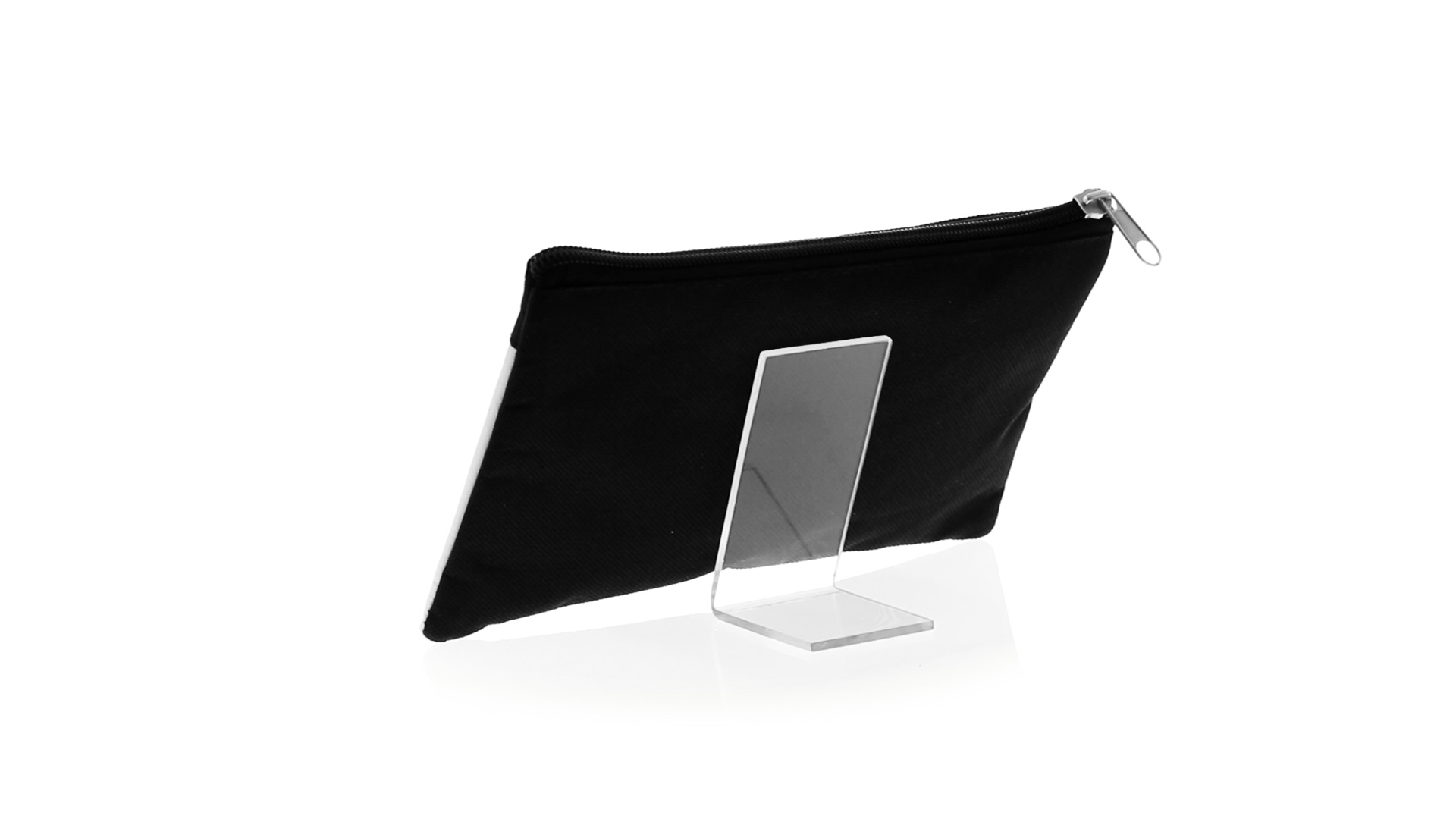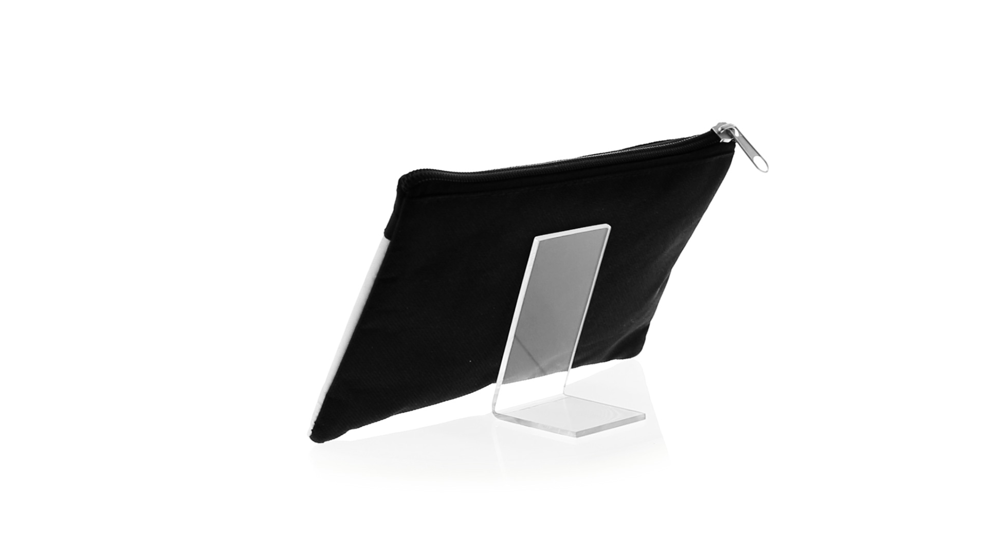 Etui aus elegantem 600D Polyester in einer Schwarz/Weiss-Kombination. Hauptfach mit Reissverschluss.