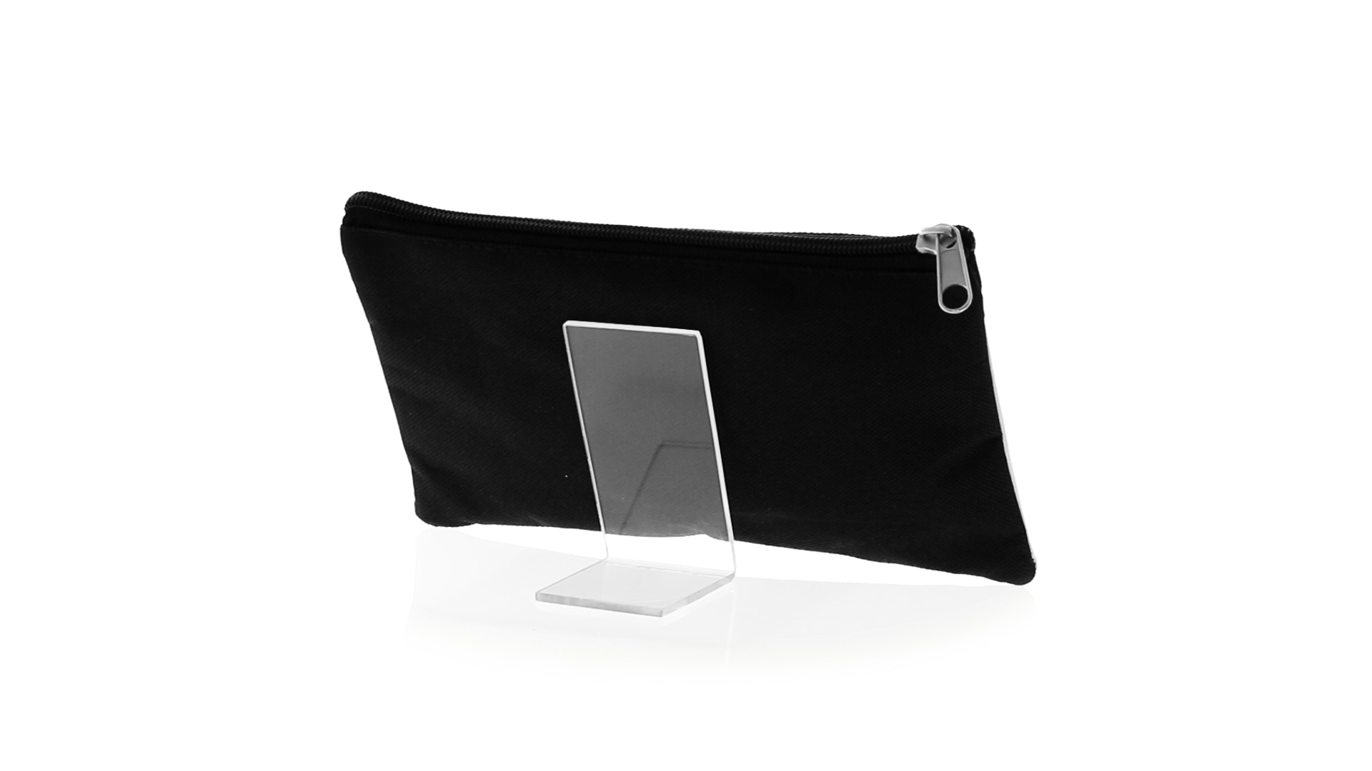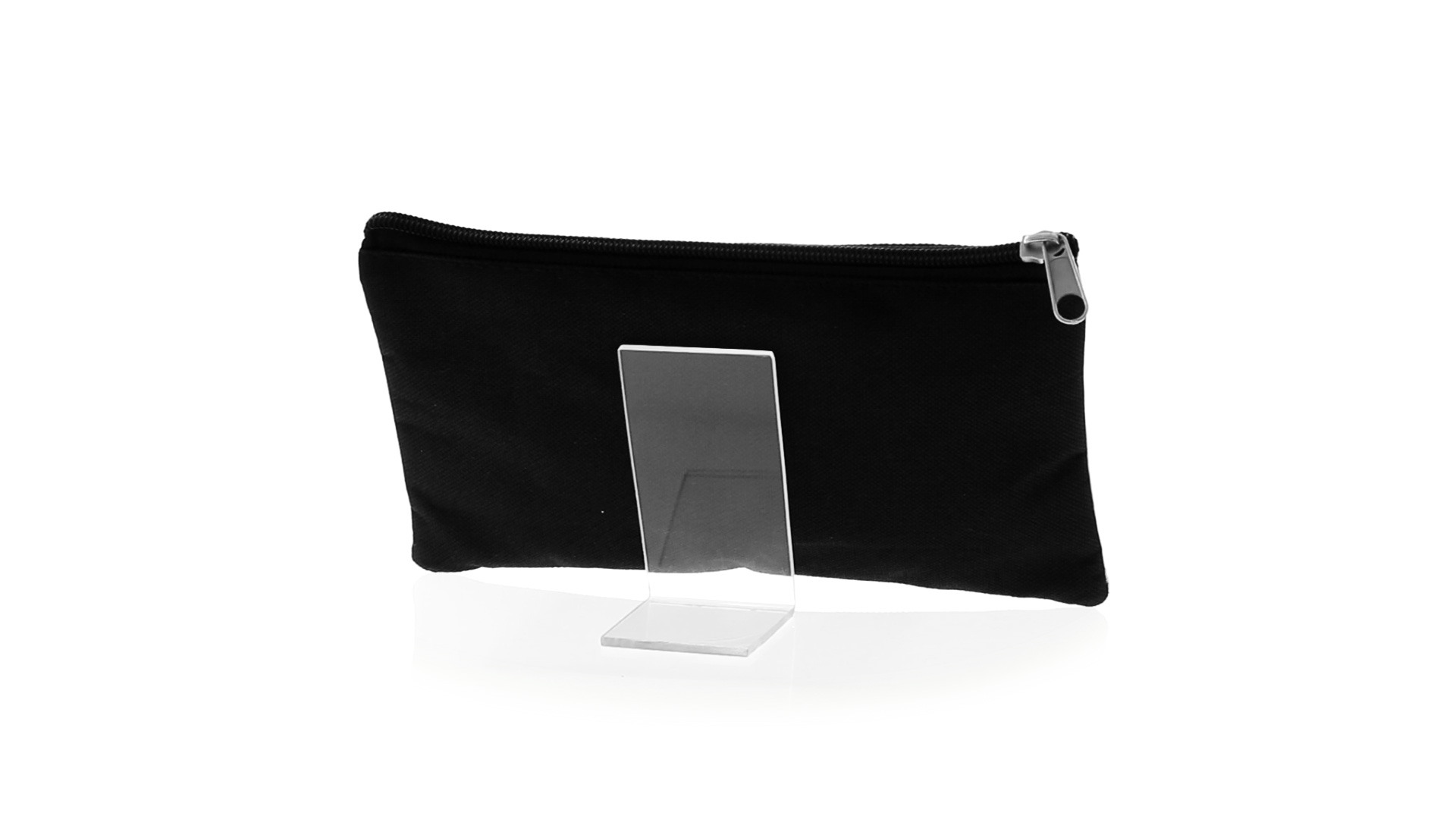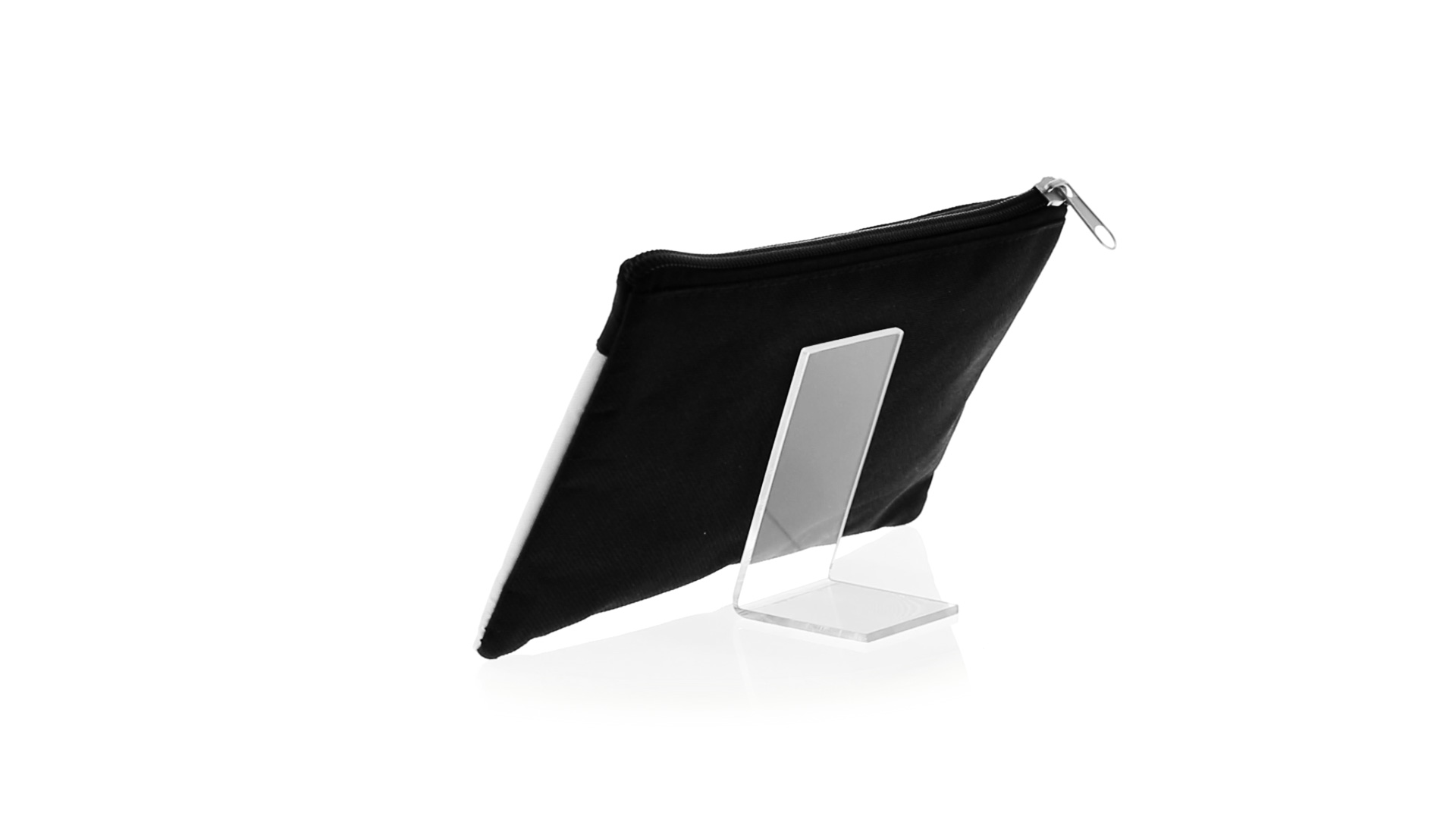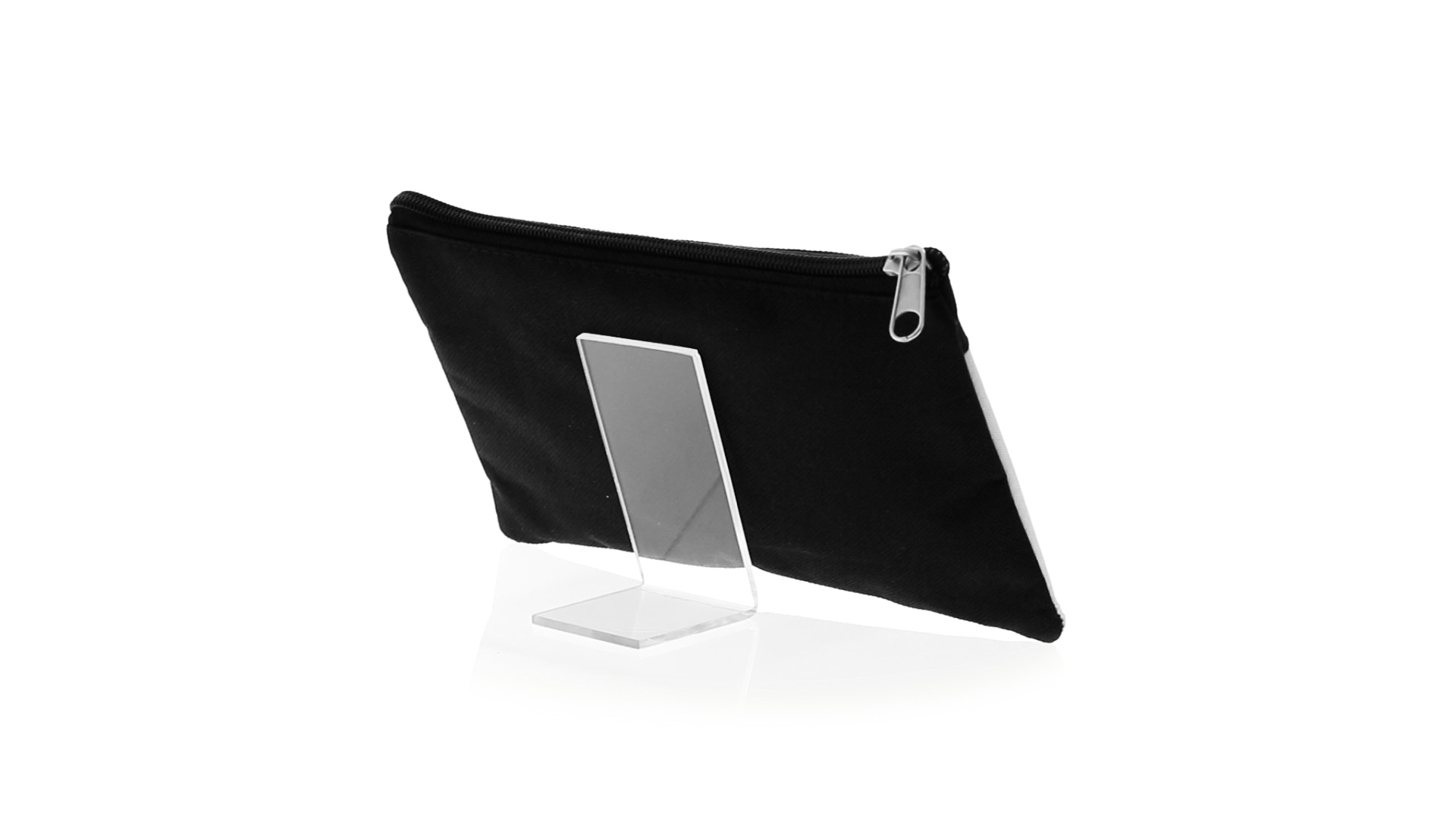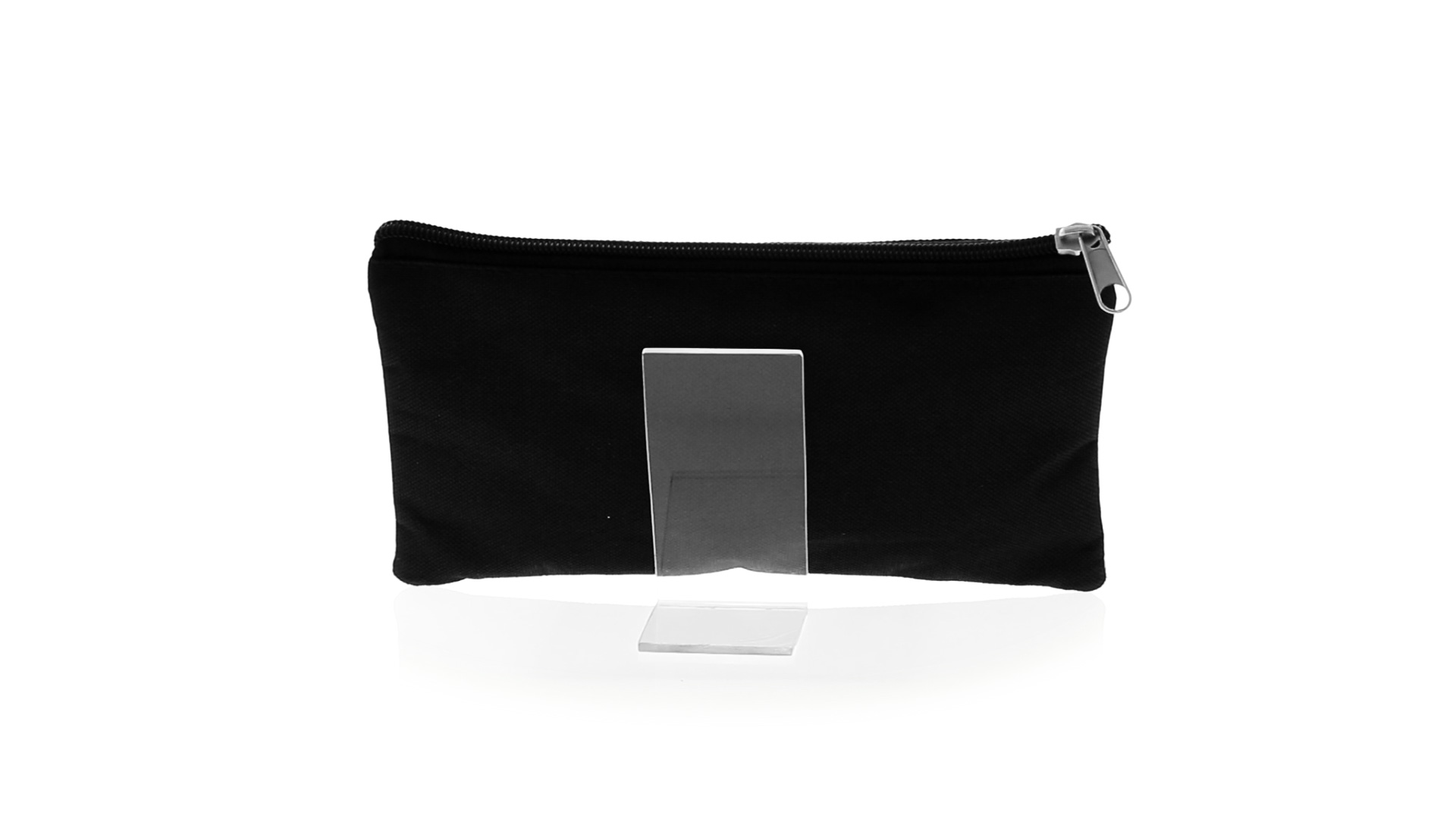 Etui aus elegantem 600D Polyester in einer Schwarz/Weiss-Kombination. Hauptfach mit Reissverschluss.