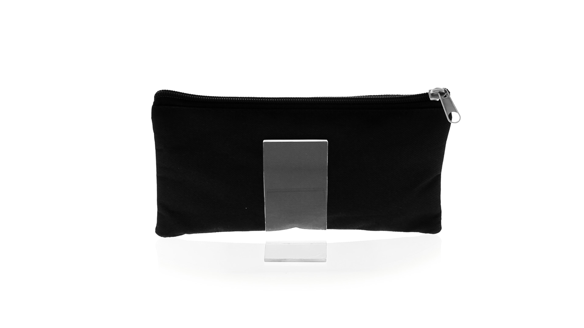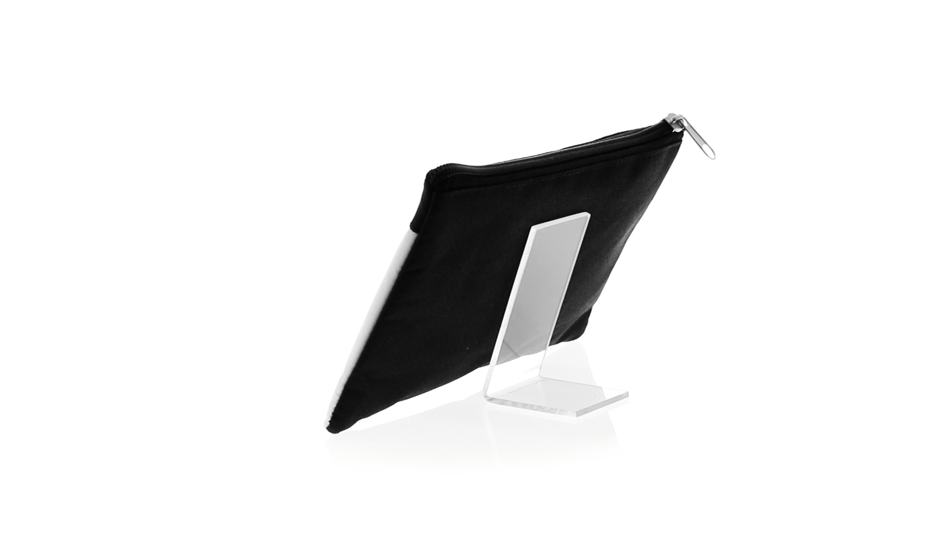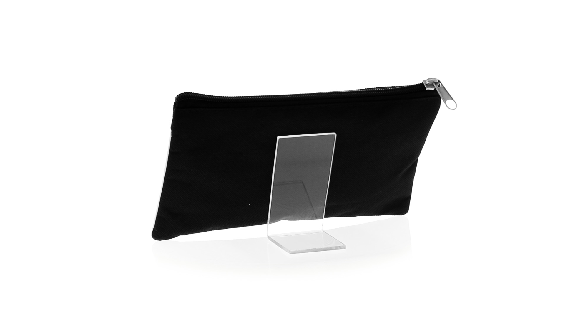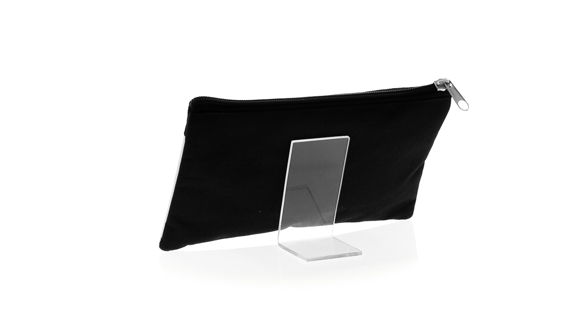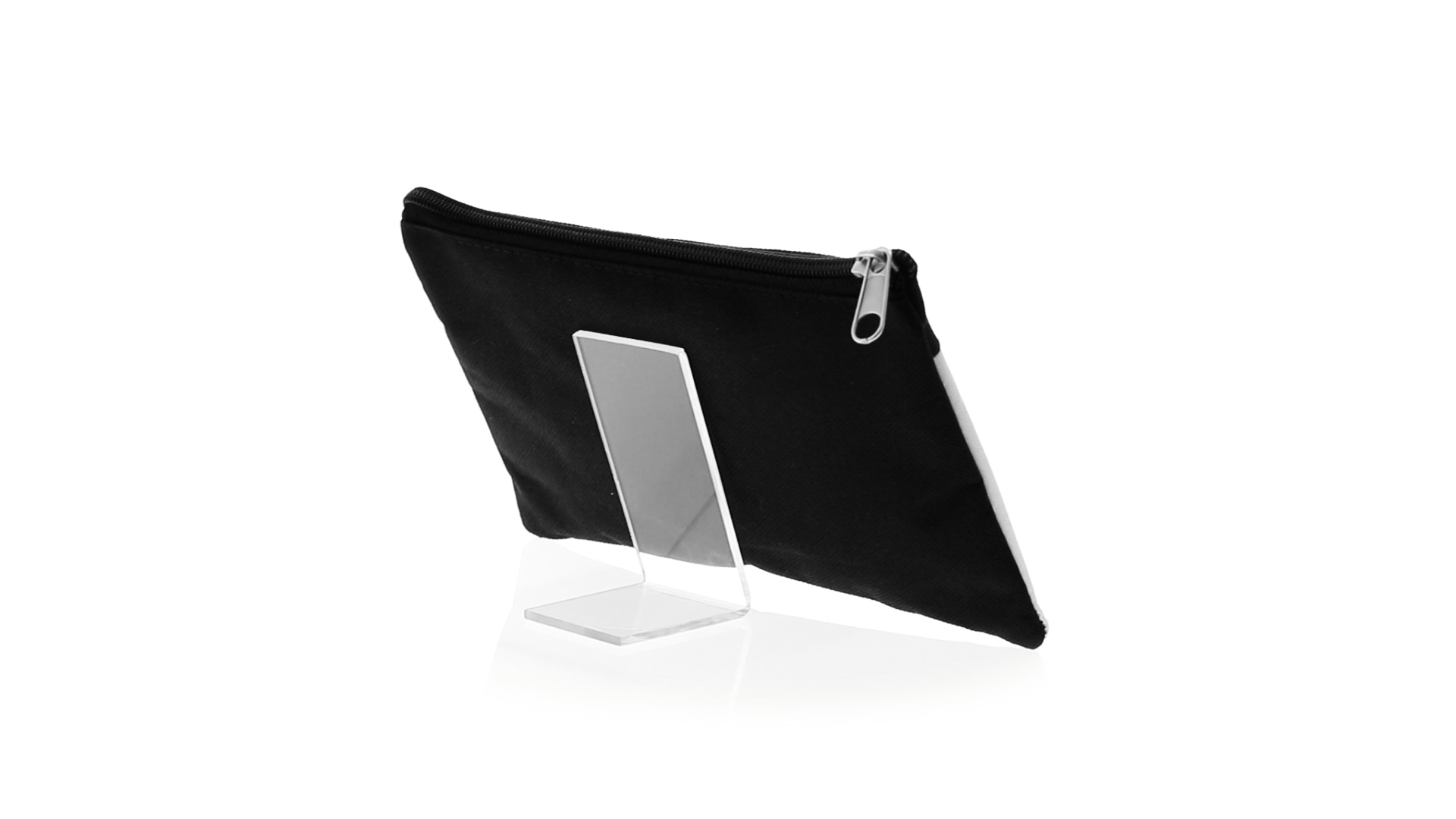 Etui aus elegantem 600D Polyester in einer Schwarz/Weiss-Kombination. Hauptfach mit Reissverschluss.