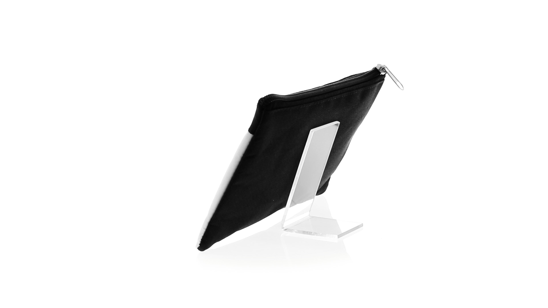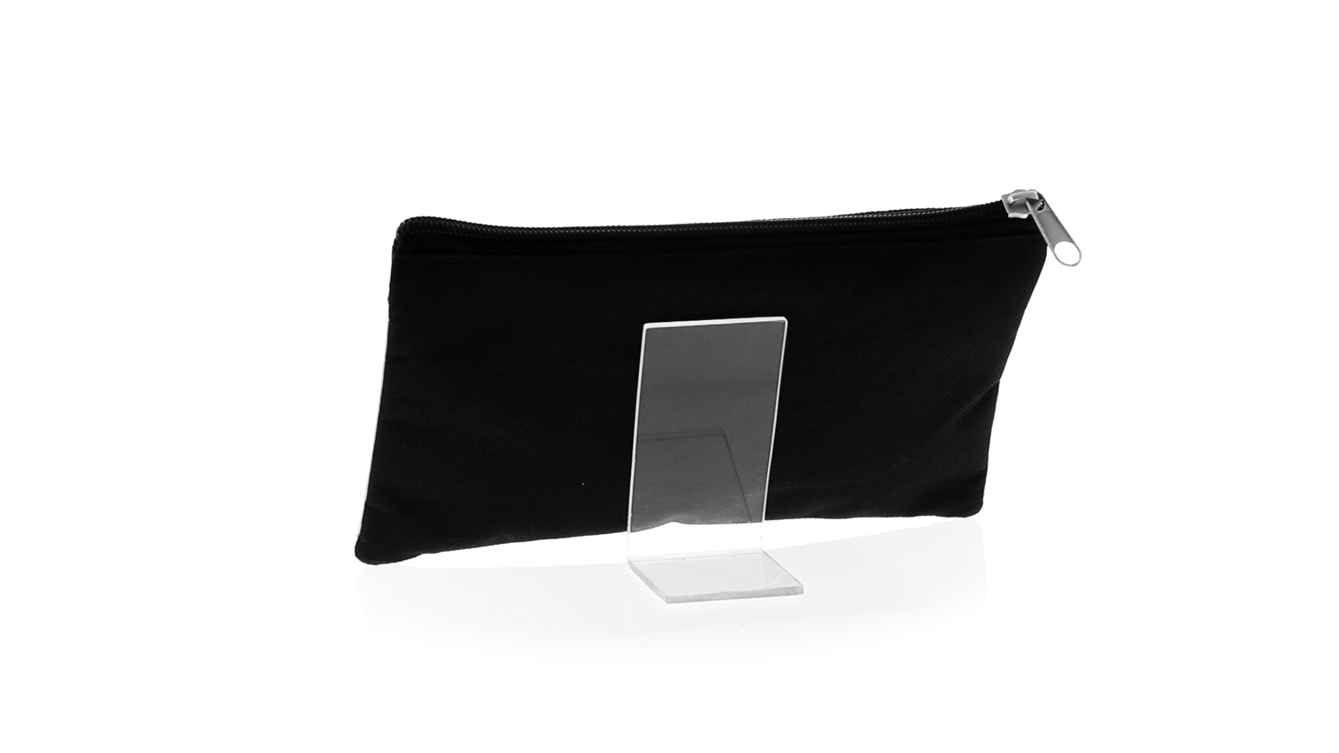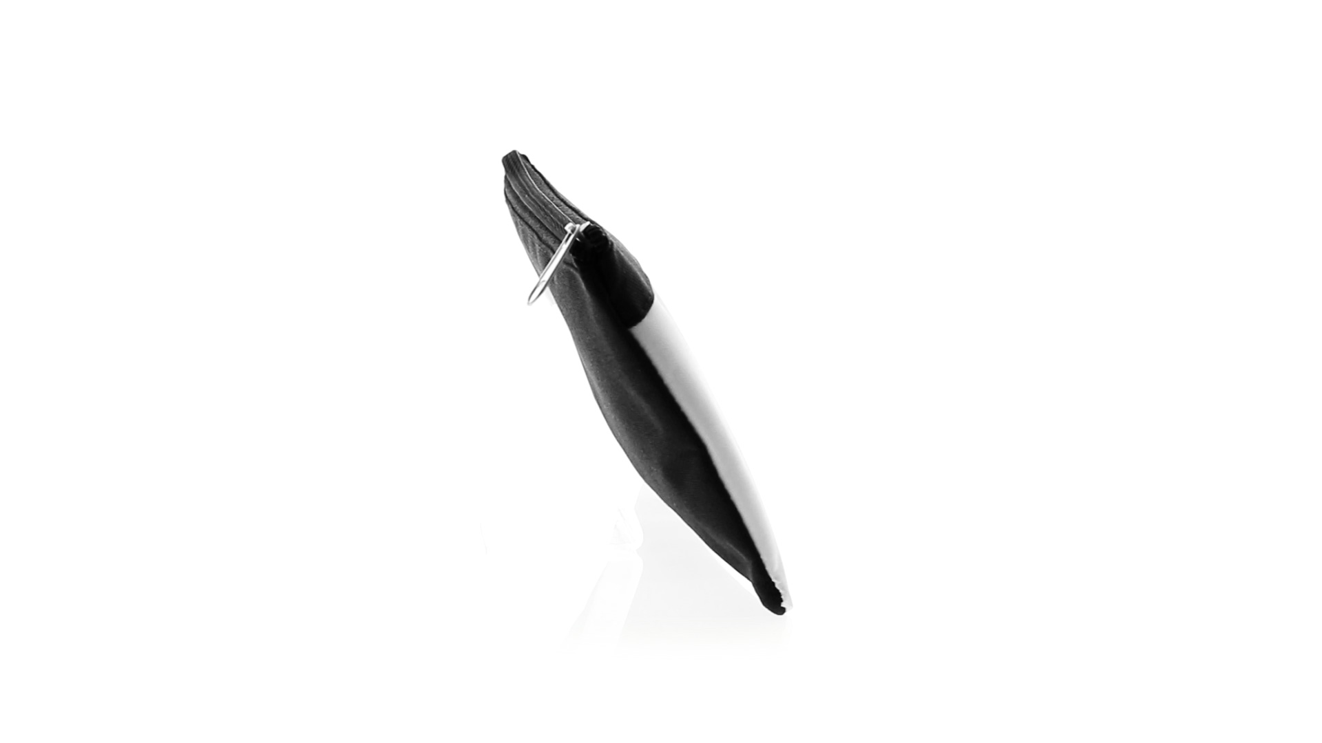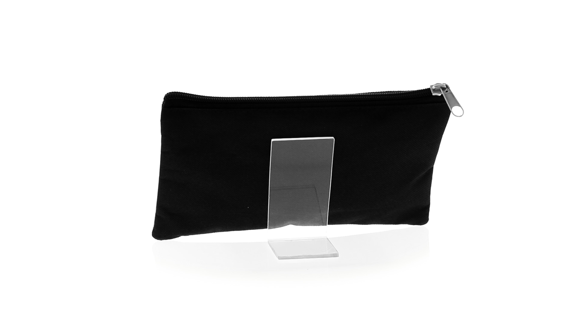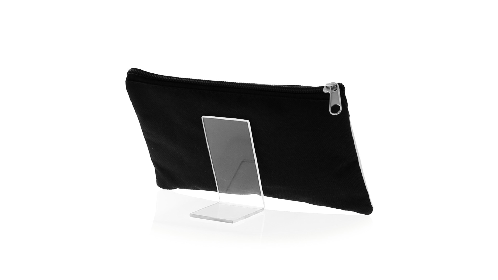 Etui aus elegantem 600D Polyester in einer Schwarz/Weiss-Kombination. Hauptfach mit Reissverschluss.
