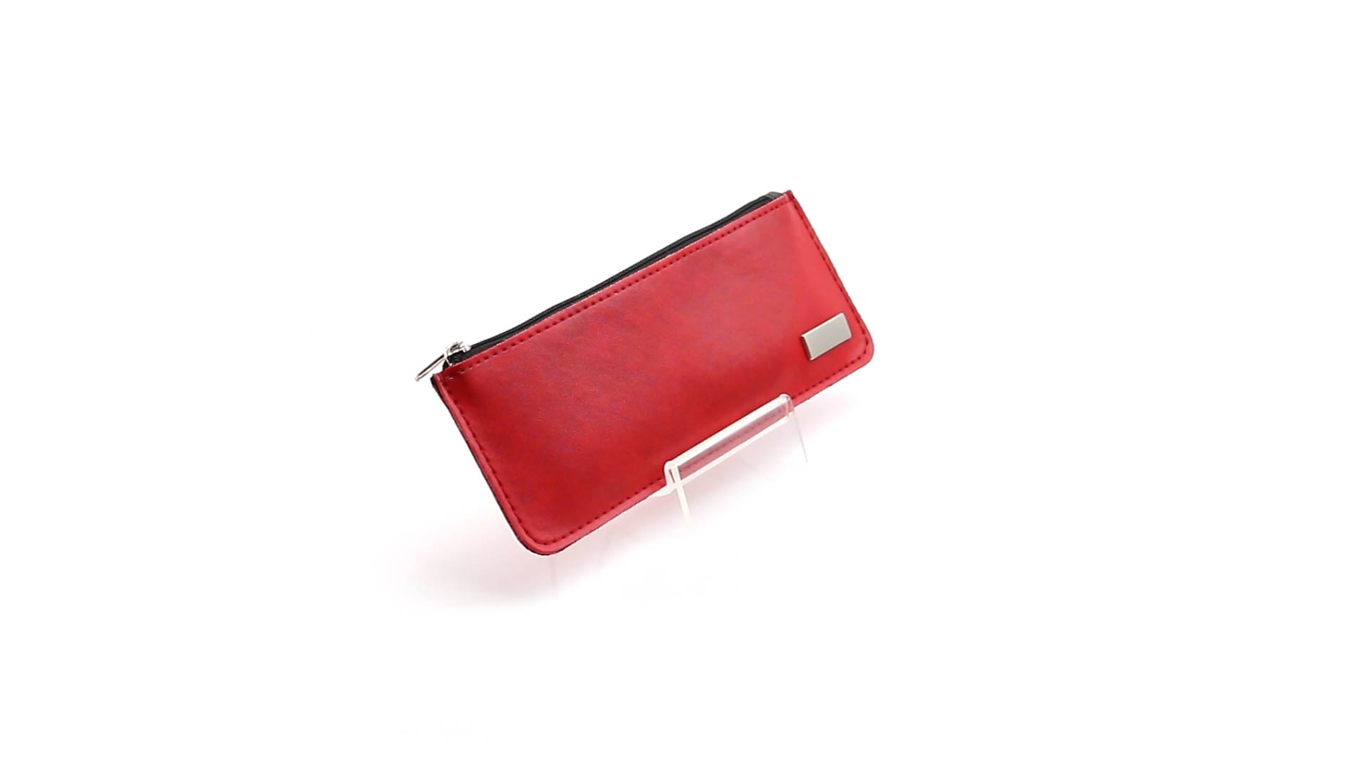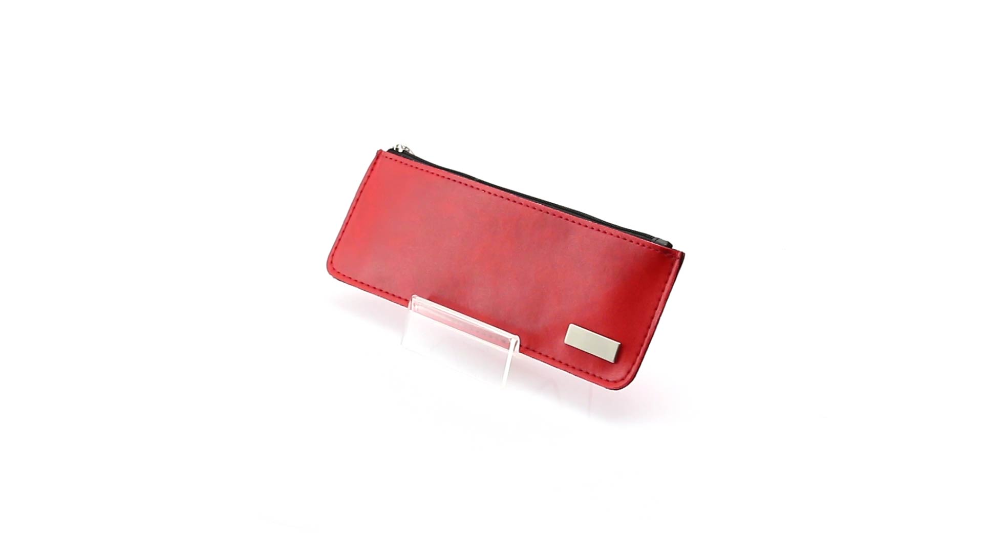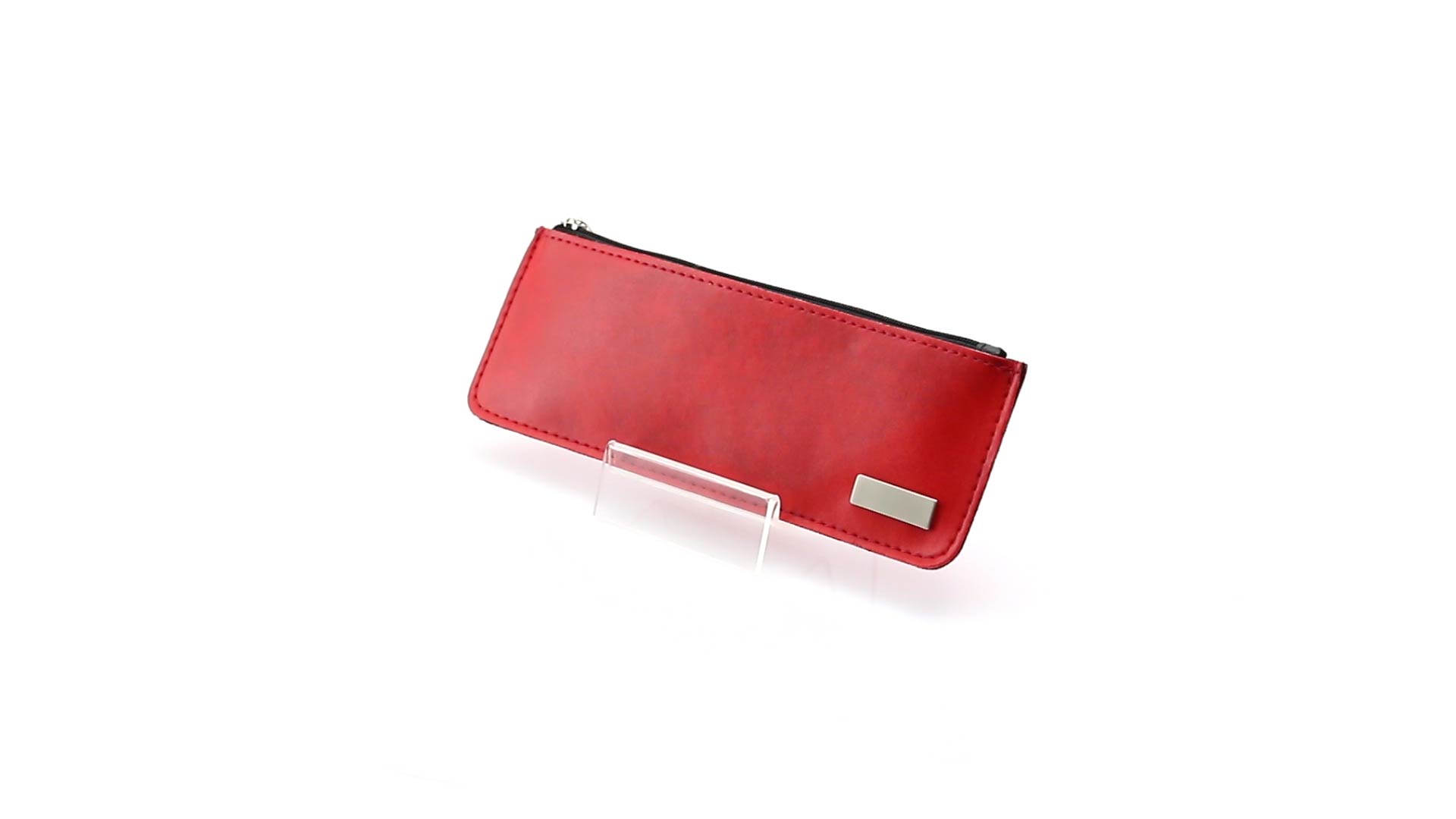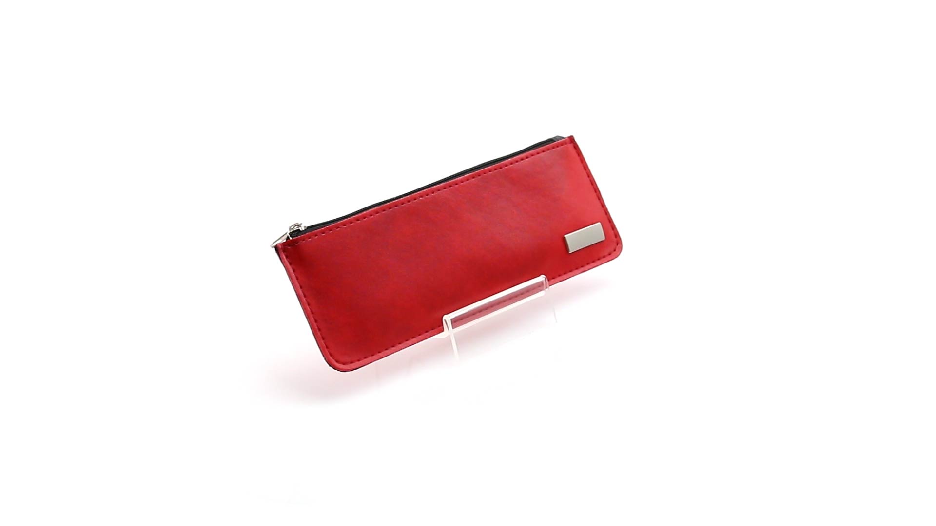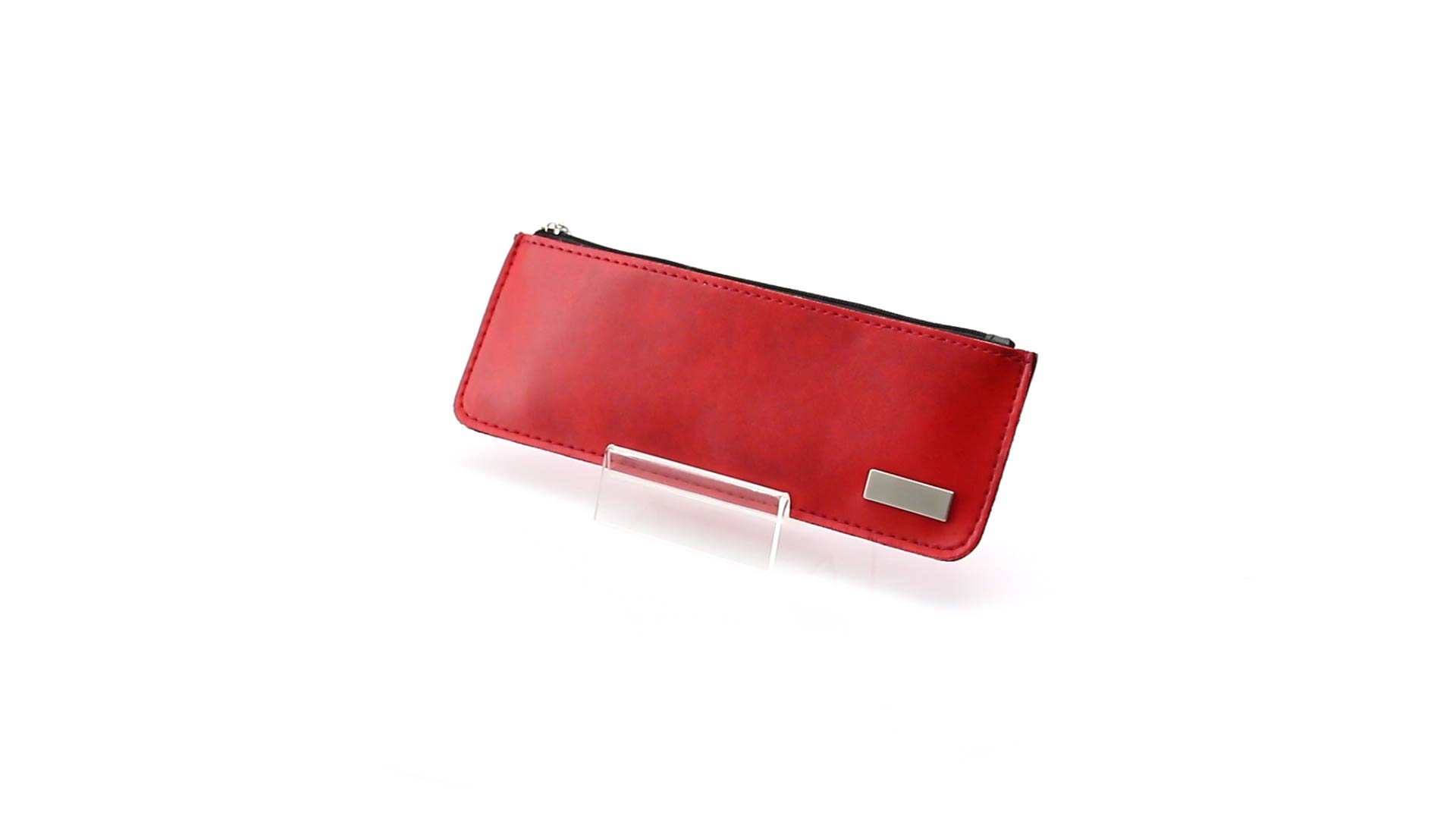 Etui mit Reissverschluss aus weichem Kunstleder mit verstärkten Nähten und kleiner Metall-Druckfläche - speziell entworfen für den Laserdruck.