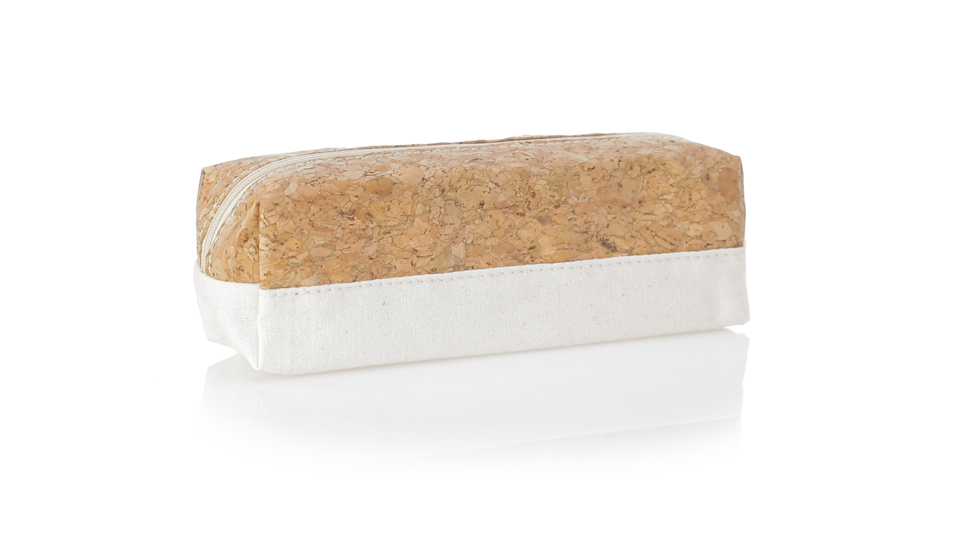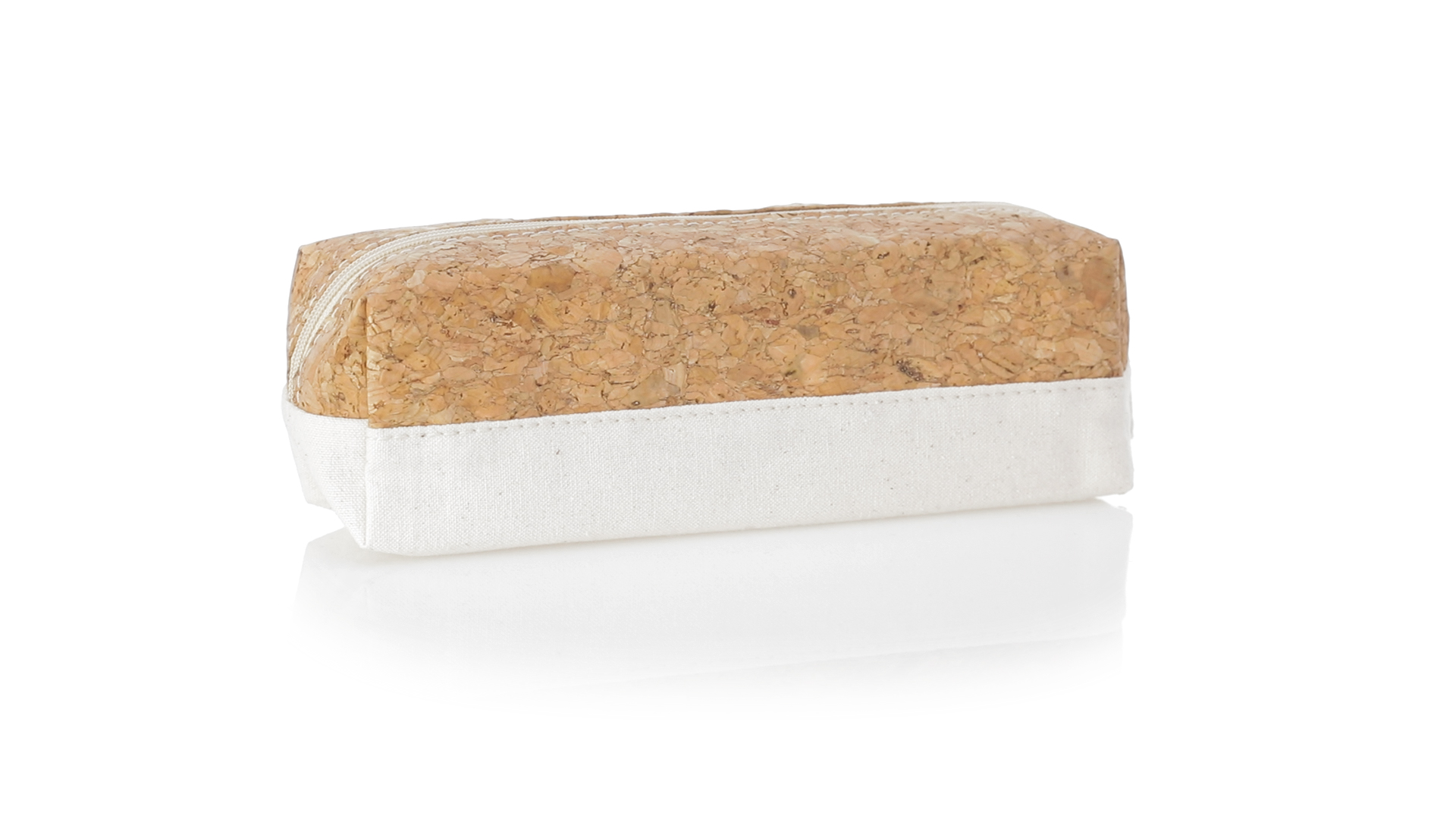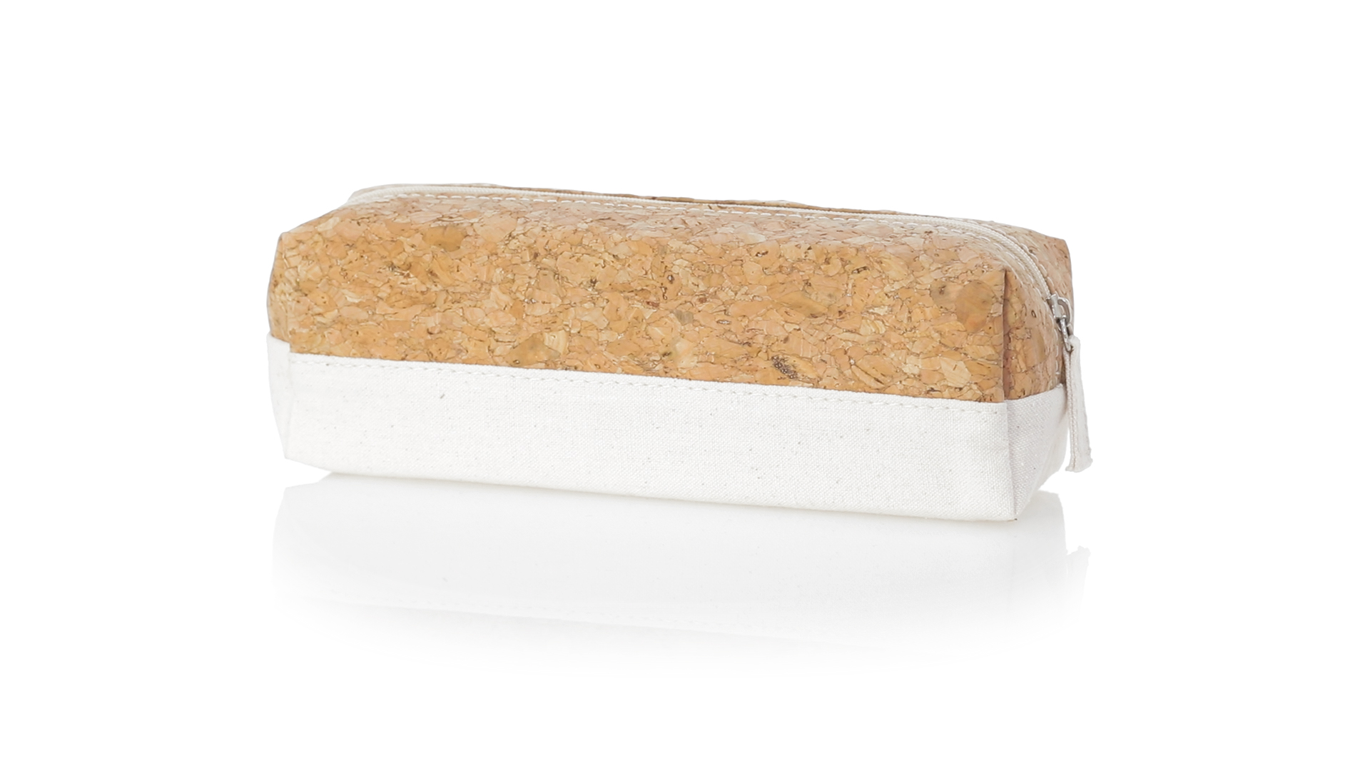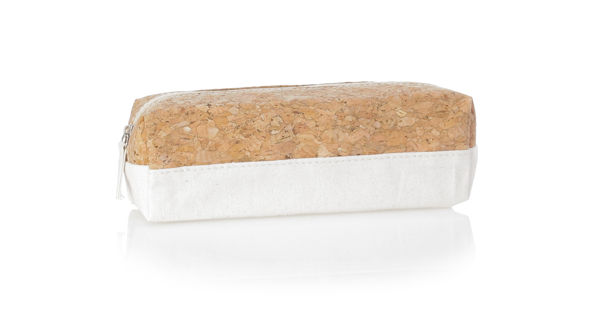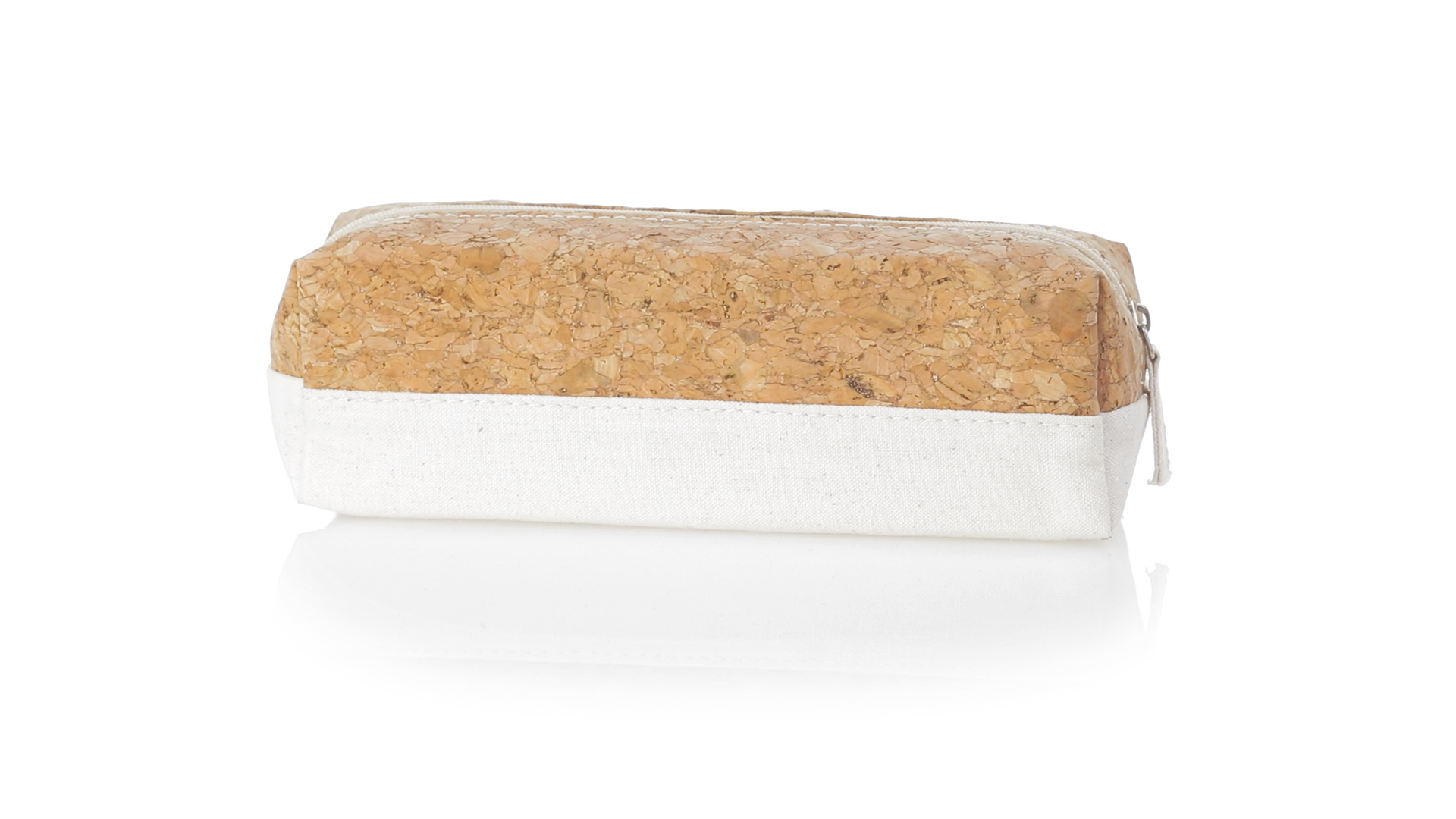 Nature Line Etui aus einer Kombination von Naturkork und Rohbaumwolle. Mit Reissverschluss und passendem Baumwollgriff.