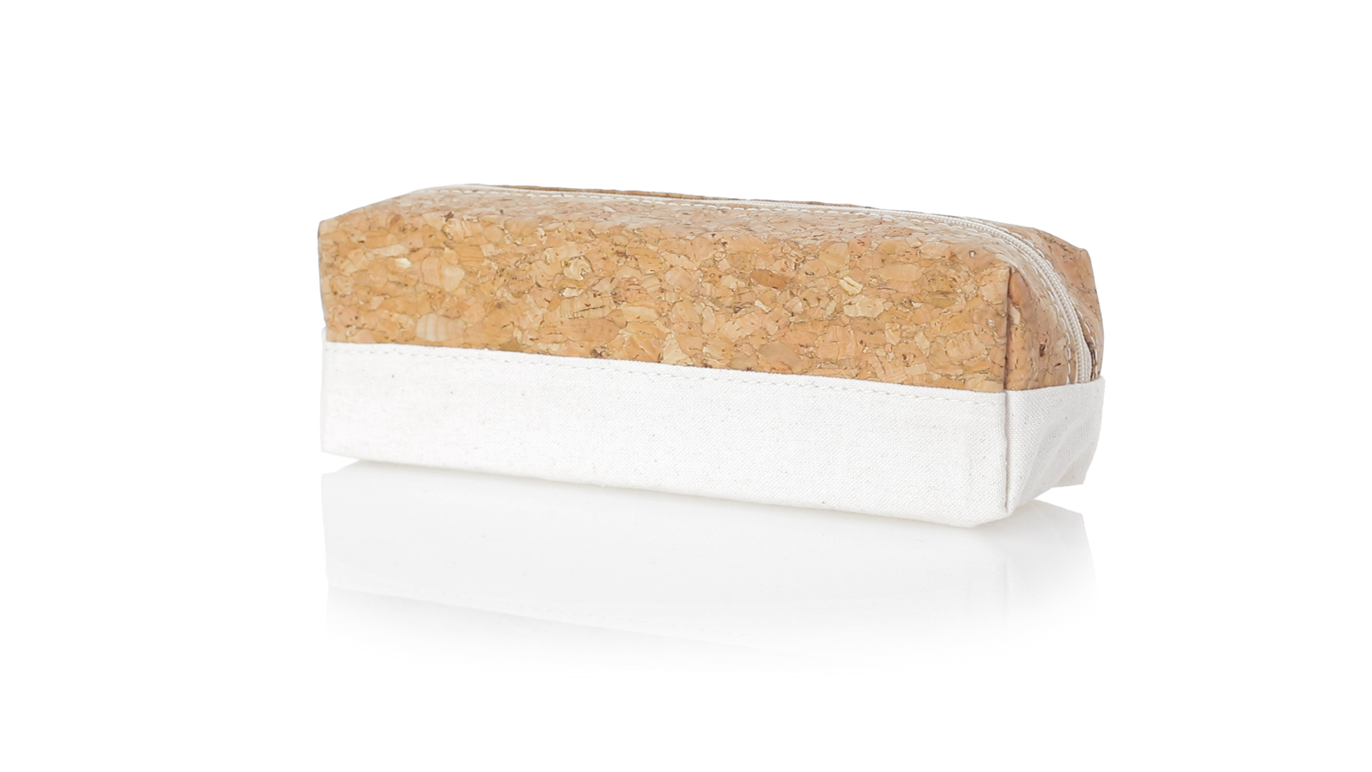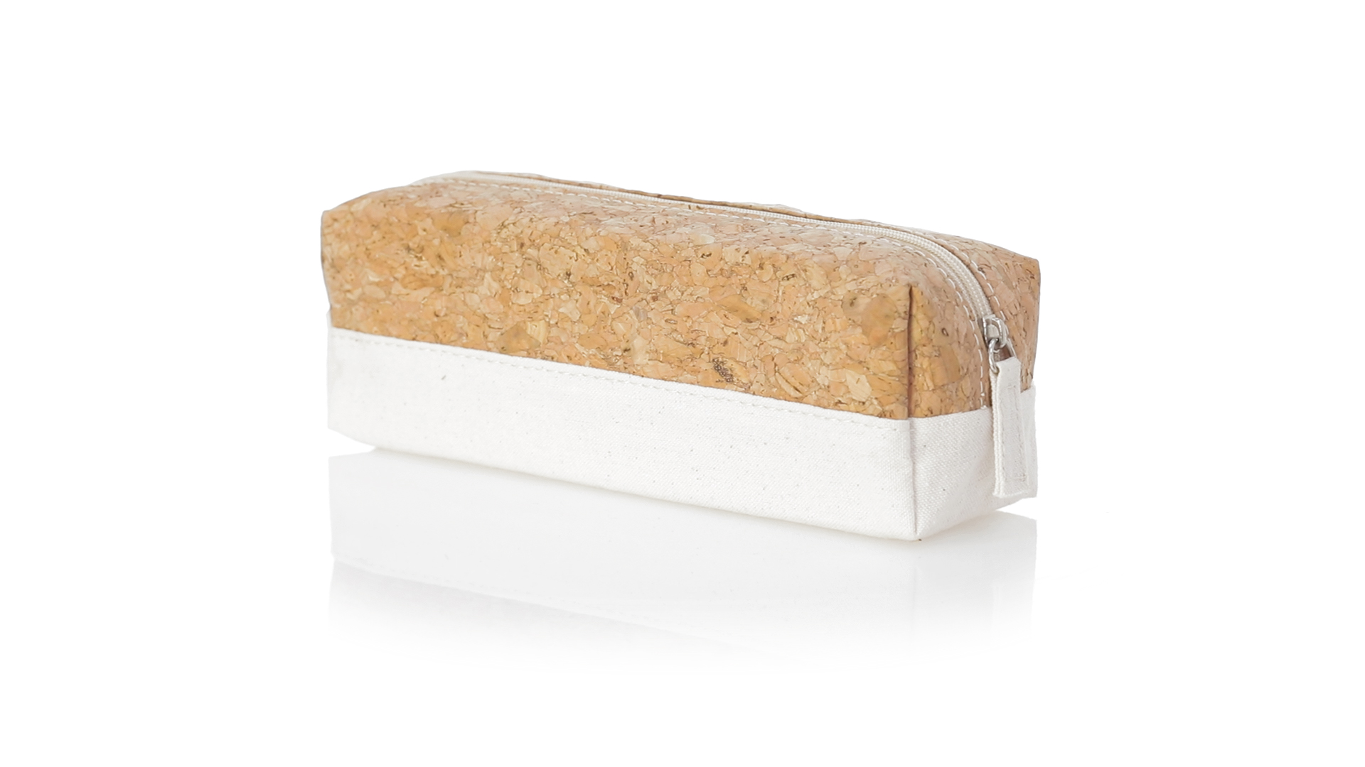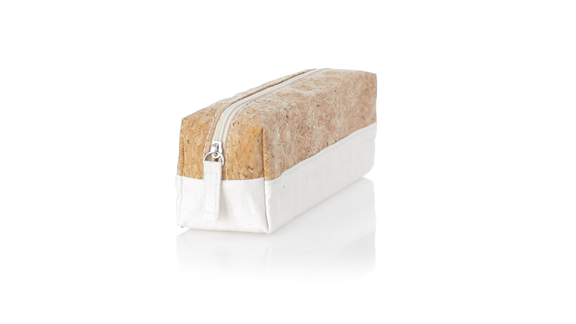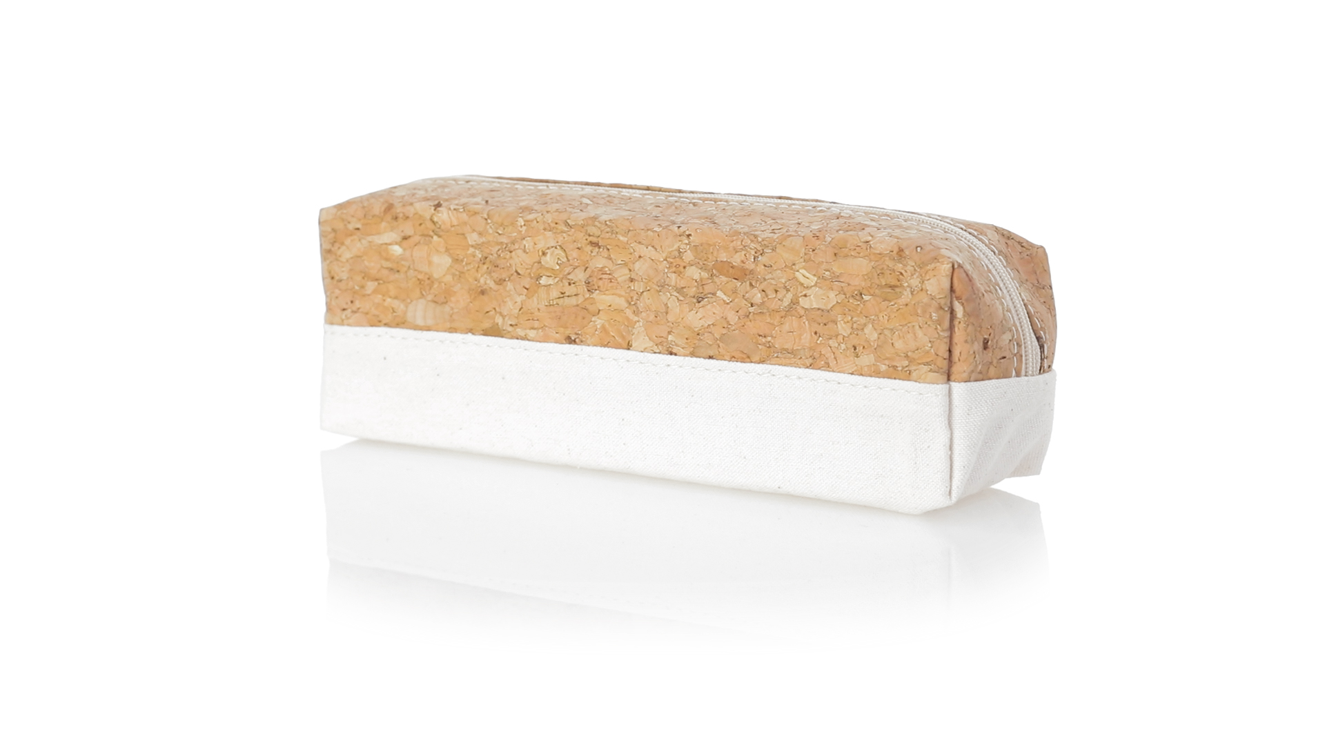 Nature Line Etui aus einer Kombination von Naturkork und Rohbaumwolle. Mit Reissverschluss und passendem Baumwollgriff.