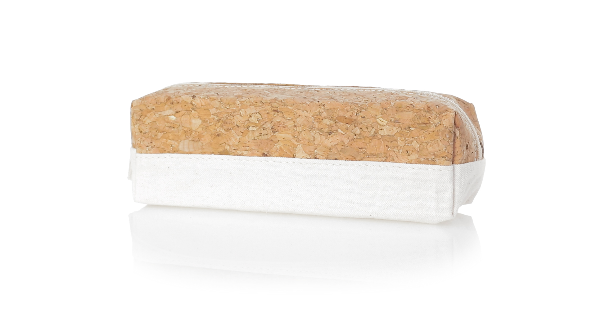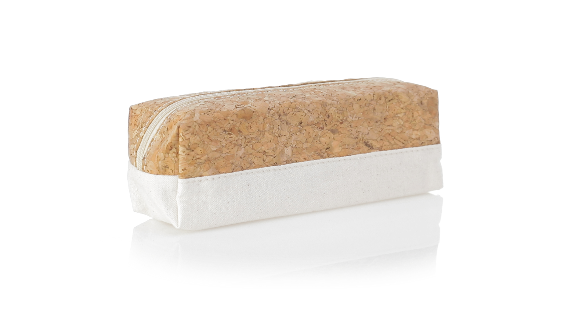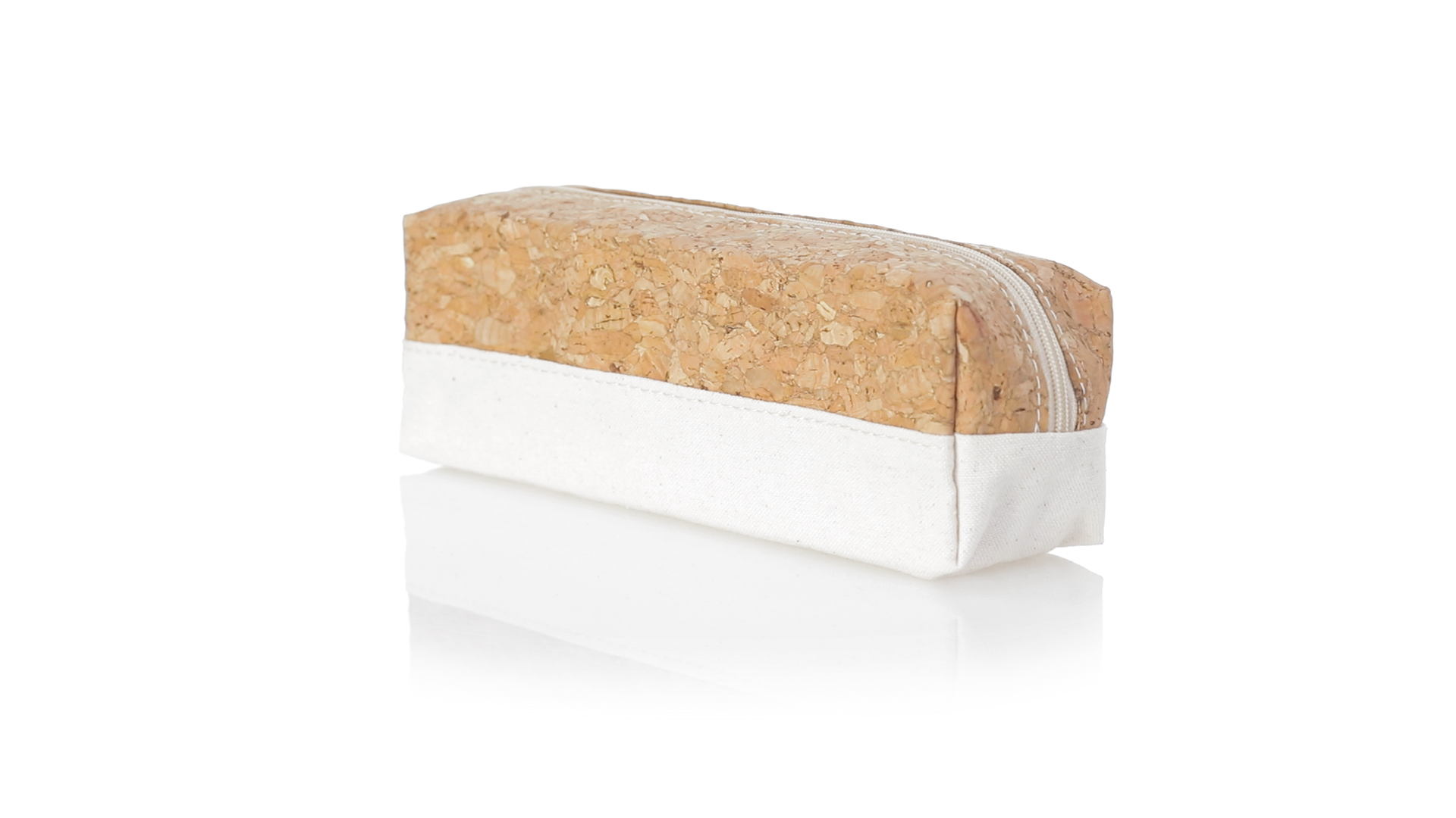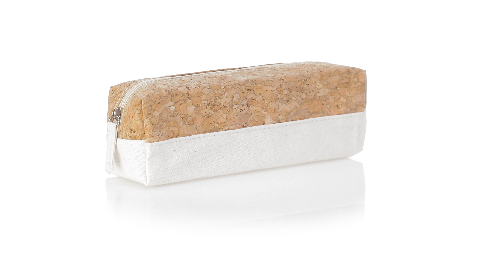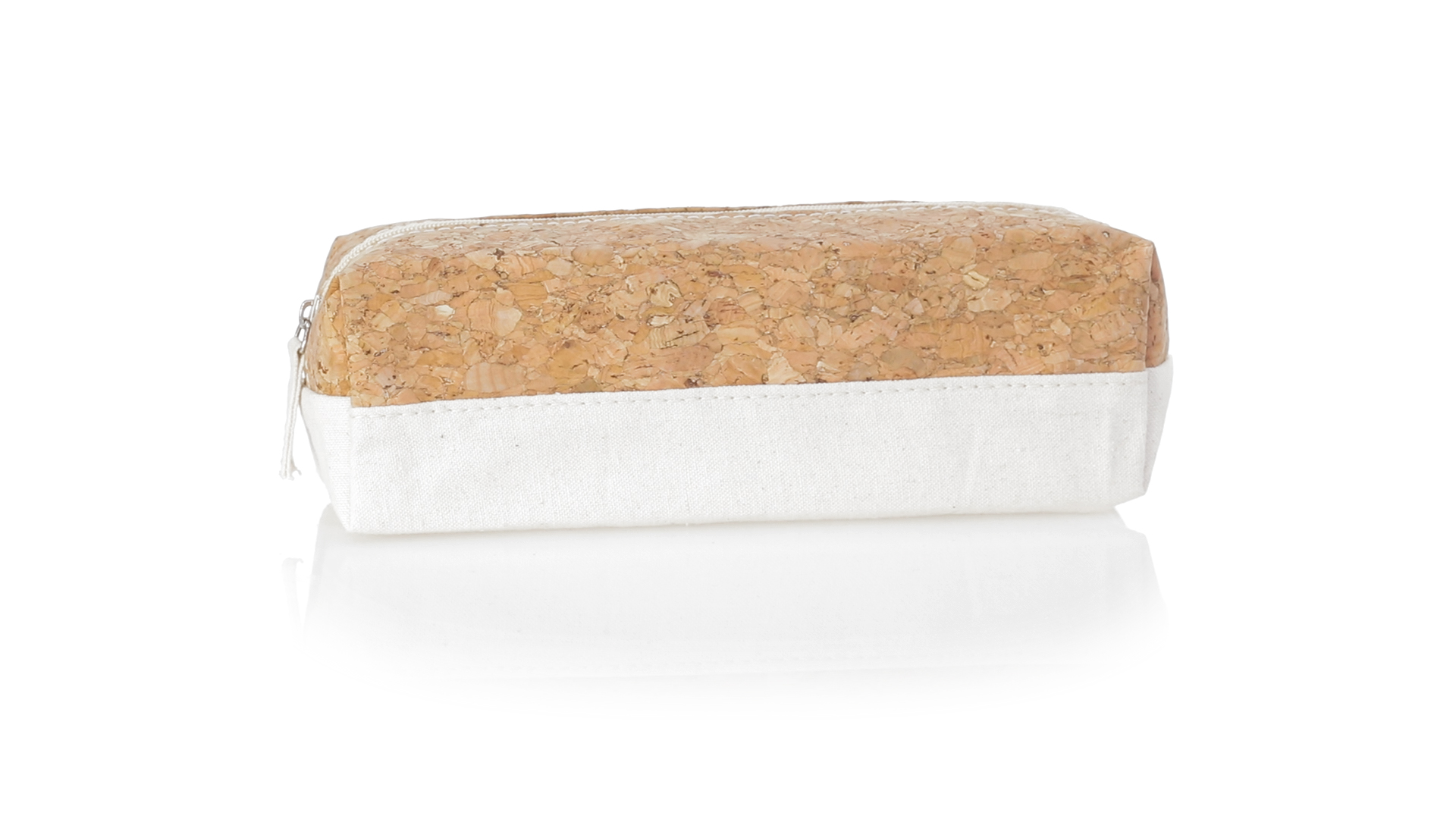 Nature Line Etui aus einer Kombination von Naturkork und Rohbaumwolle. Mit Reissverschluss und passendem Baumwollgriff.