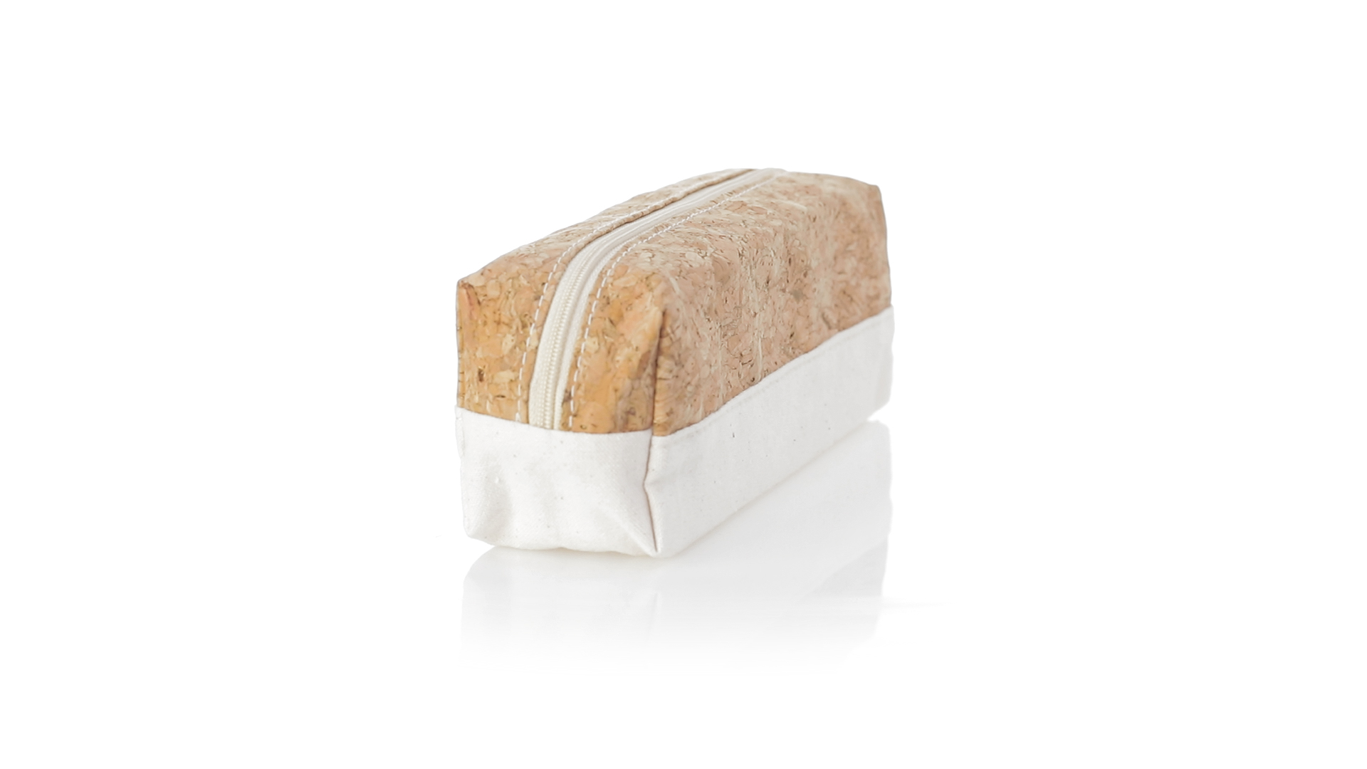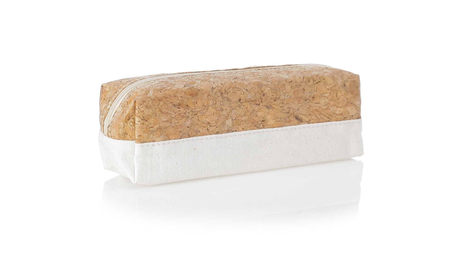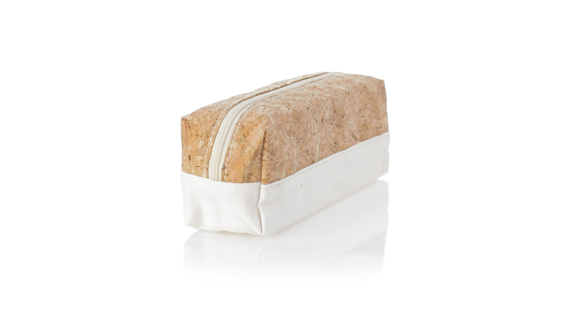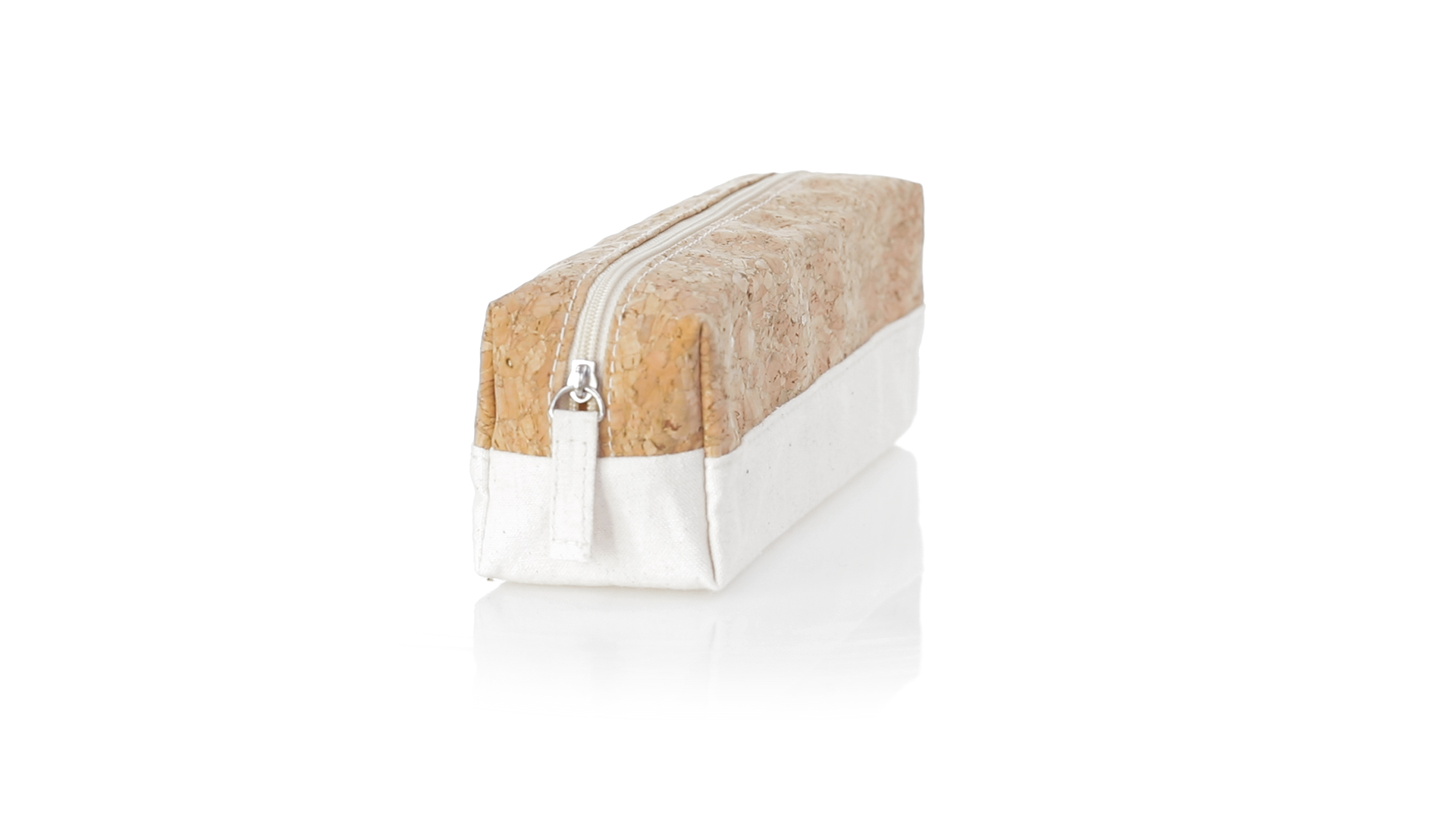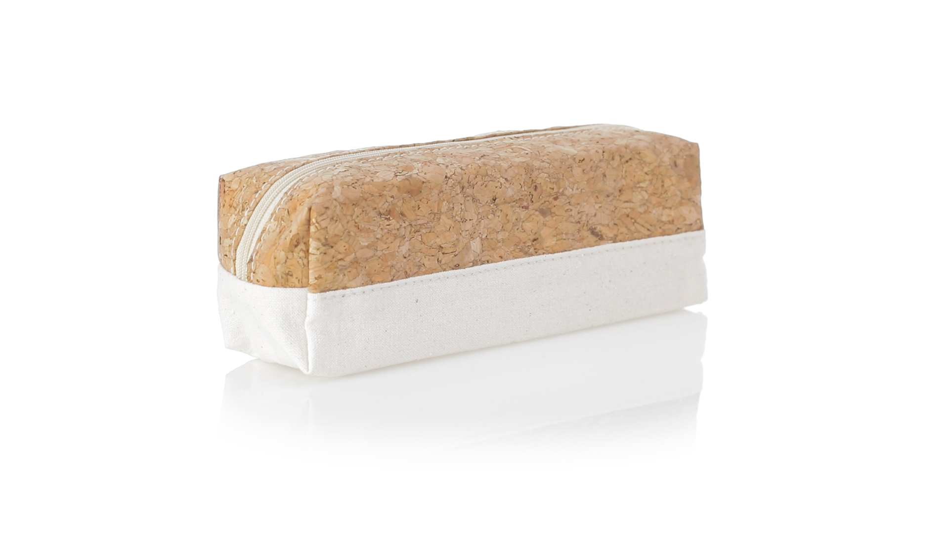 Nature Line Etui aus einer Kombination von Naturkork und Rohbaumwolle. Mit Reissverschluss und passendem Baumwollgriff.