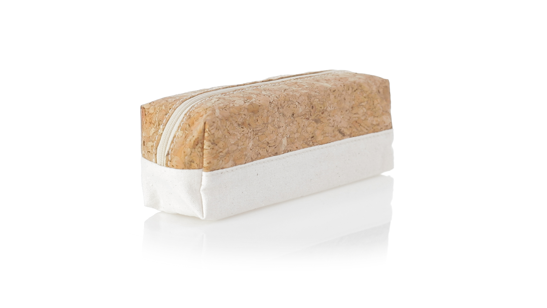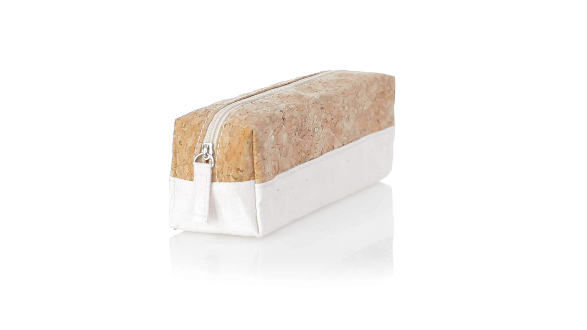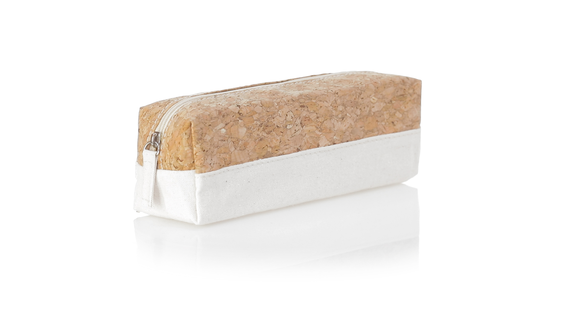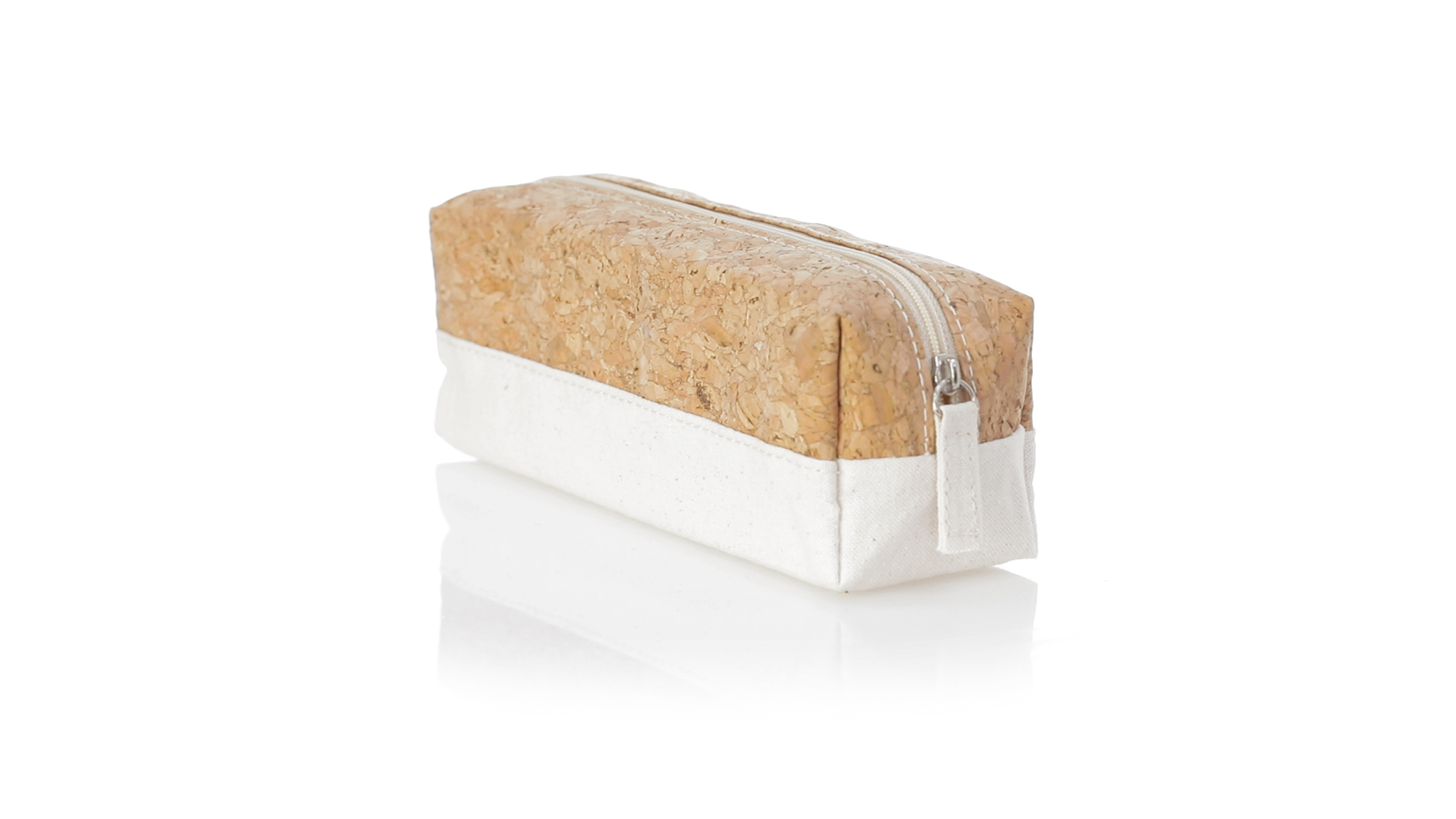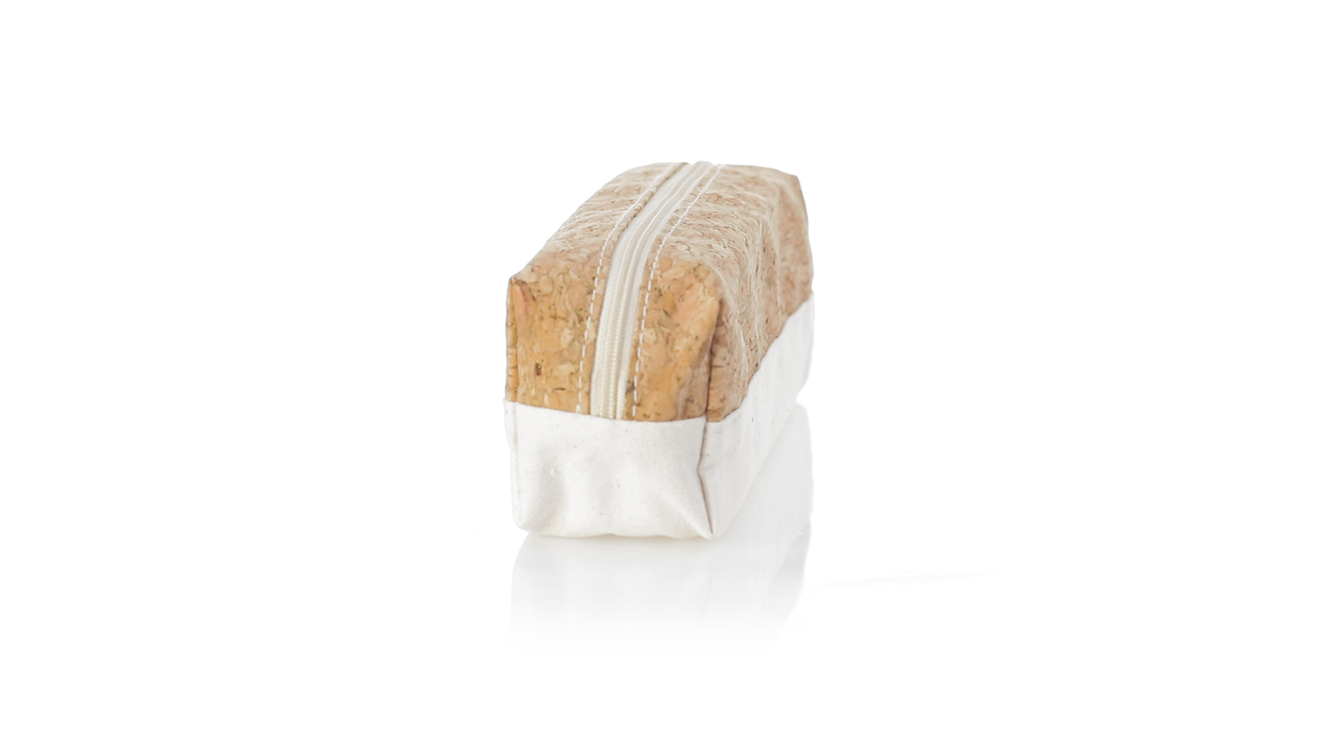 Nature Line Etui aus einer Kombination von Naturkork und Rohbaumwolle. Mit Reissverschluss und passendem Baumwollgriff.