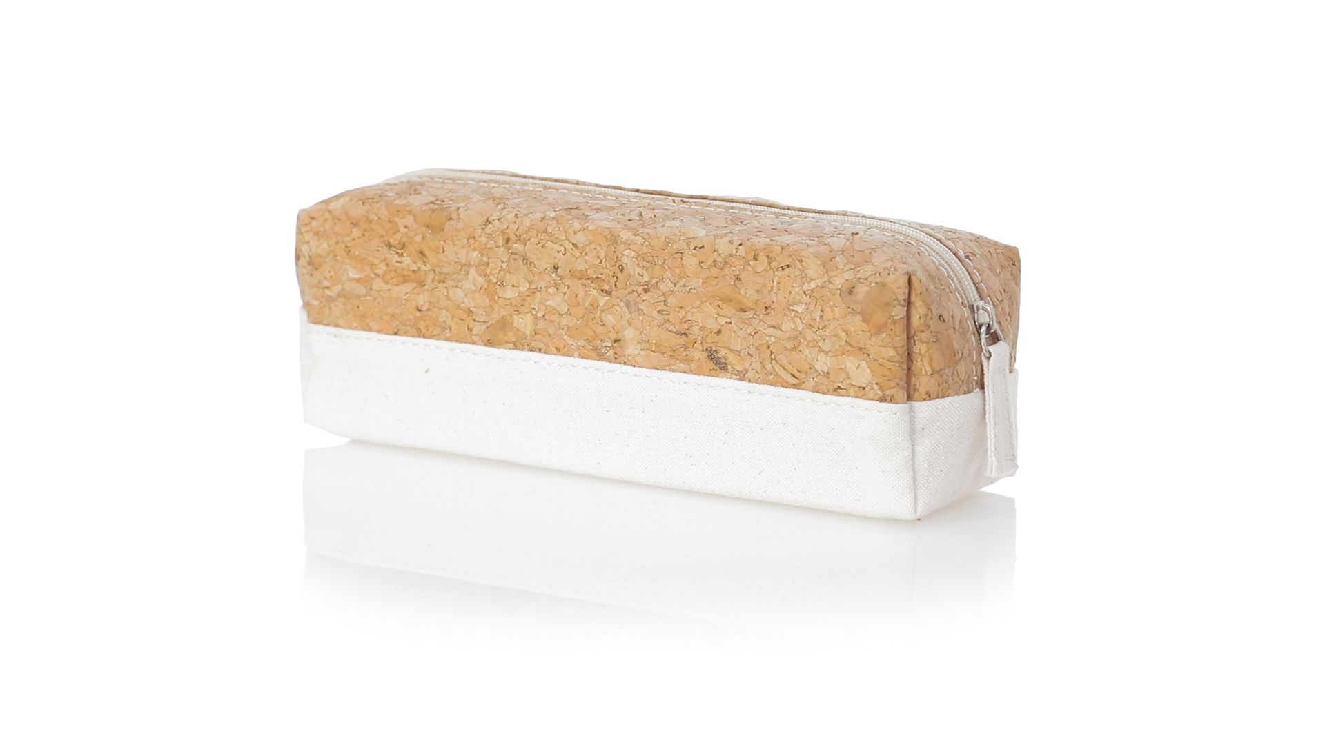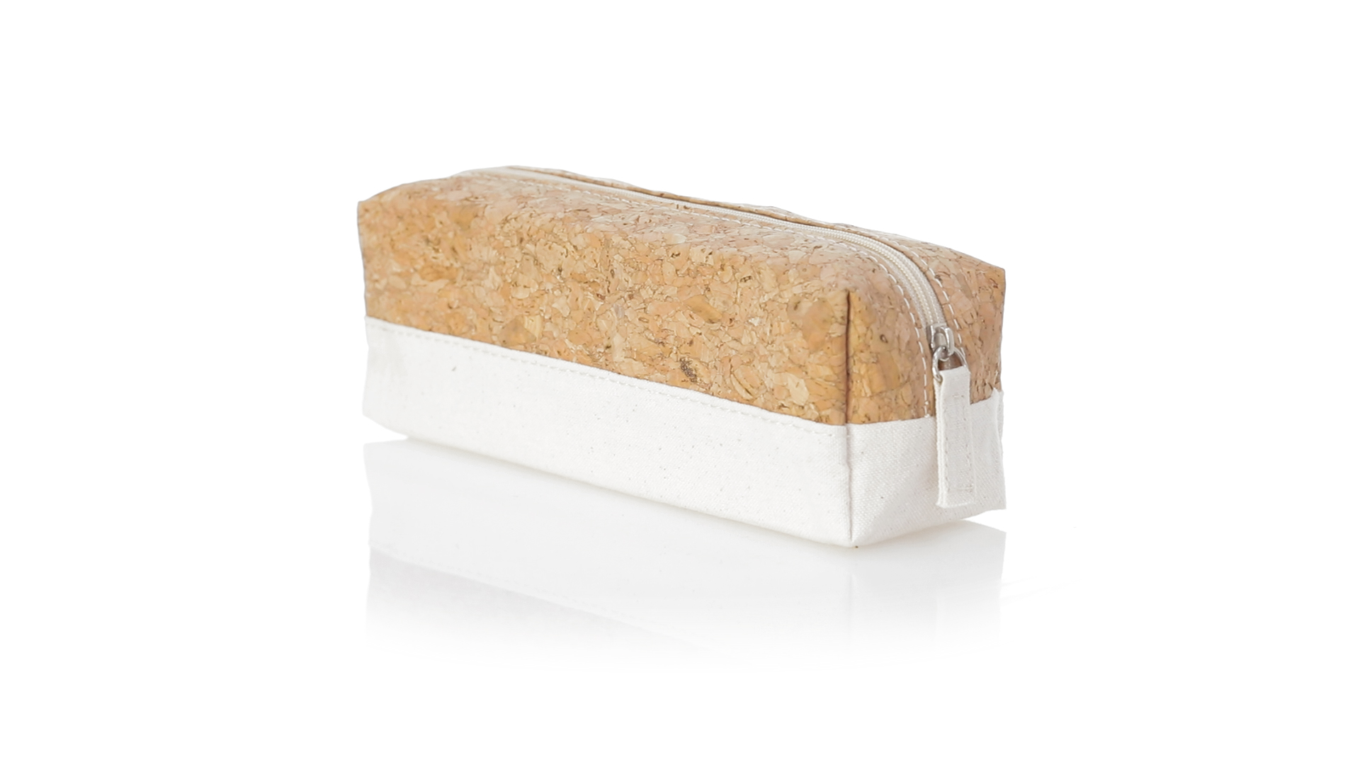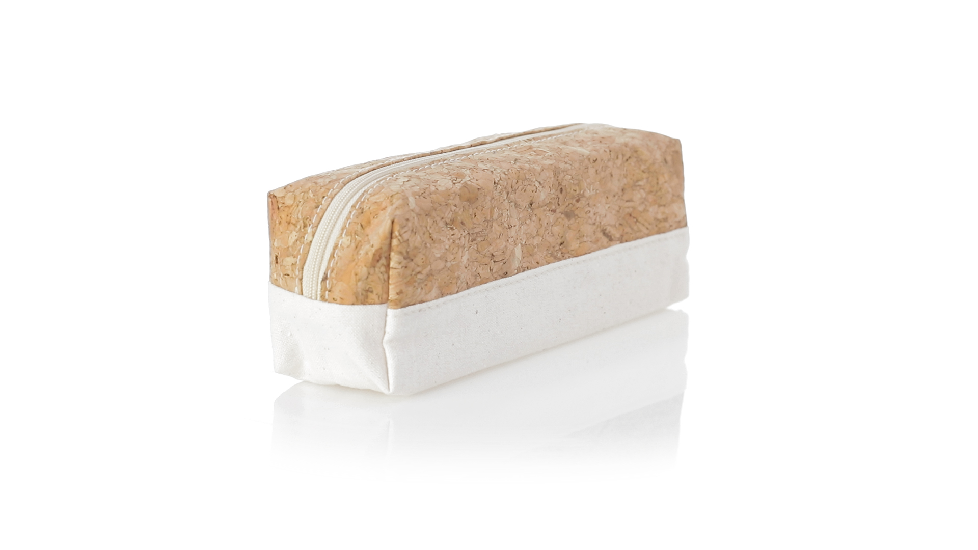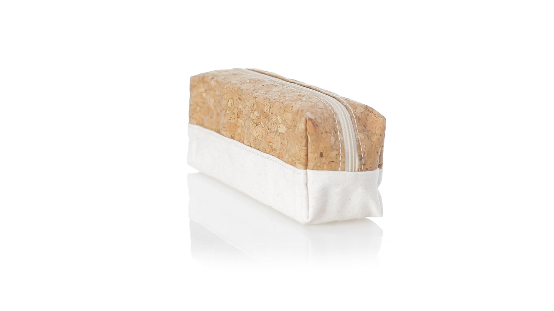 Nature Line Etui aus einer Kombination von Naturkork und Rohbaumwolle. Mit Reissverschluss und passendem Baumwollgriff.