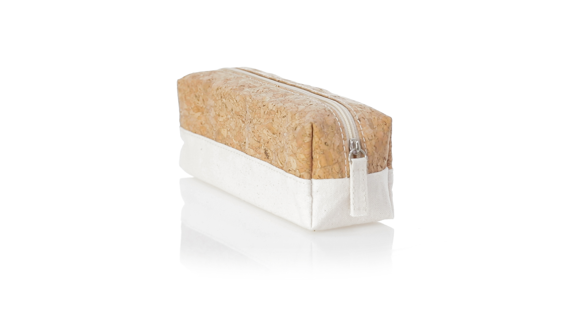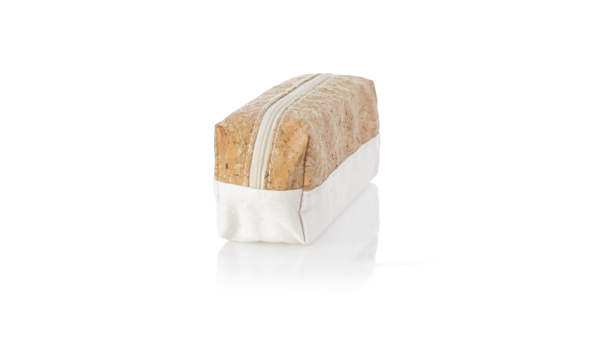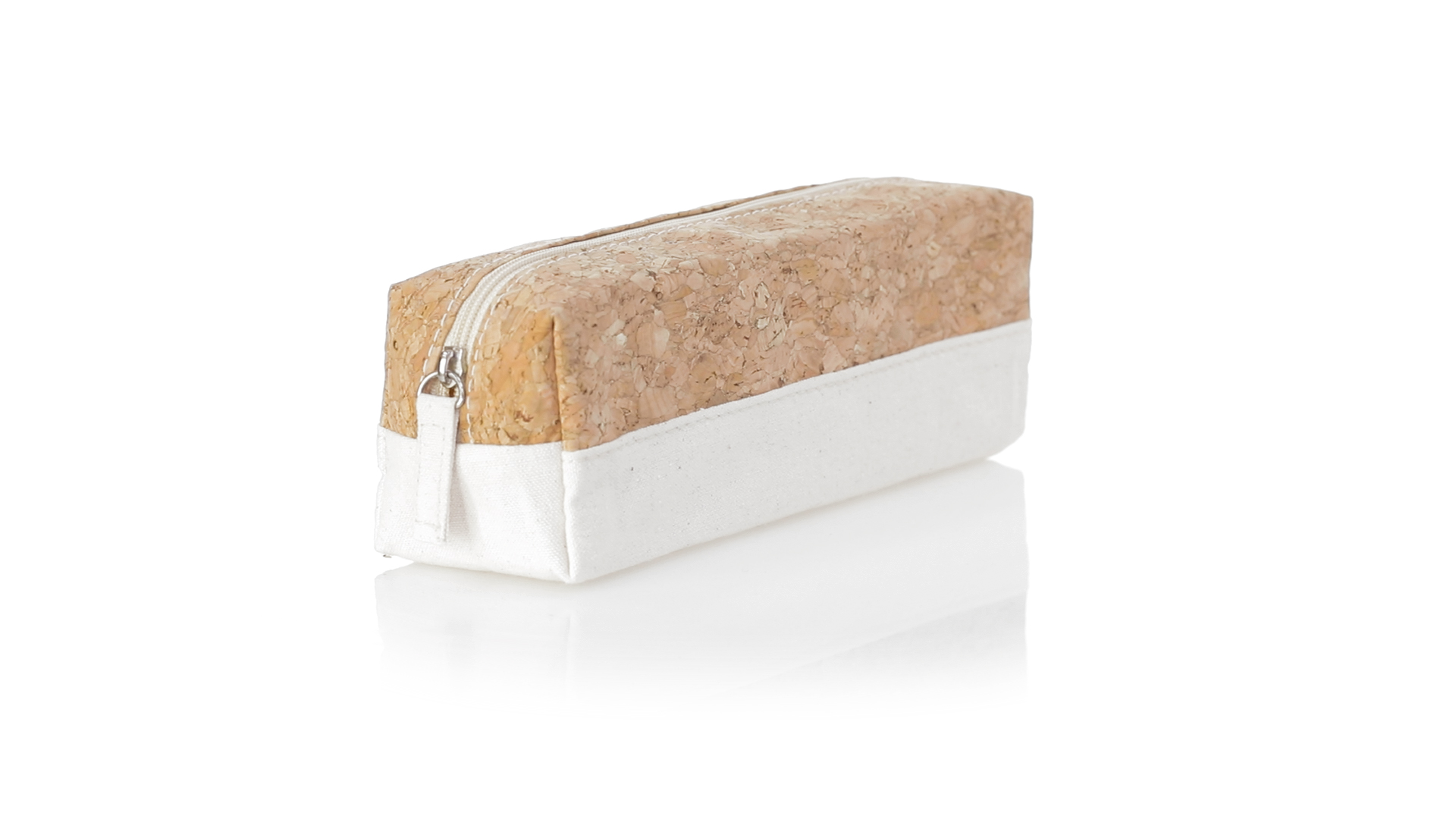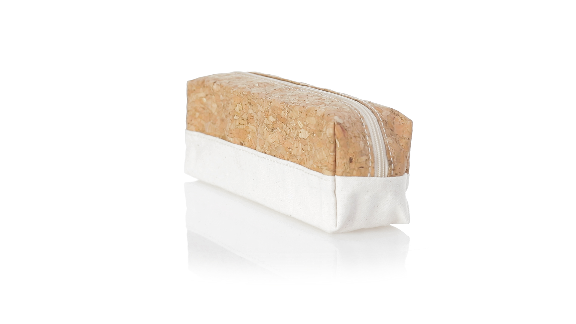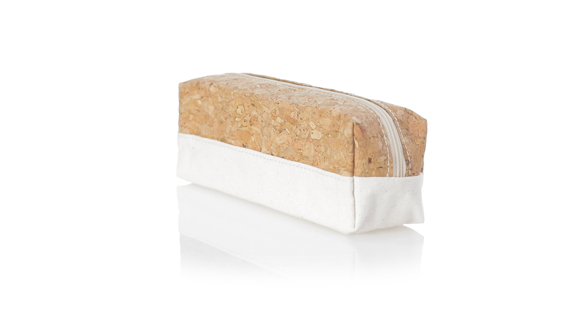 Nature Line Etui aus einer Kombination von Naturkork und Rohbaumwolle. Mit Reissverschluss und passendem Baumwollgriff.