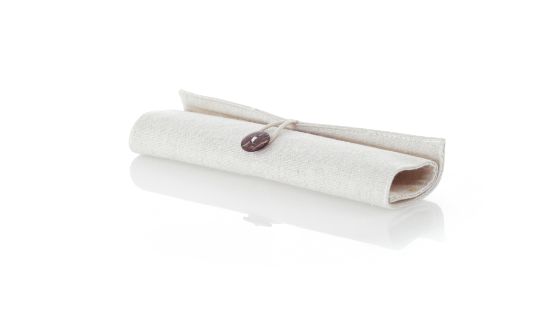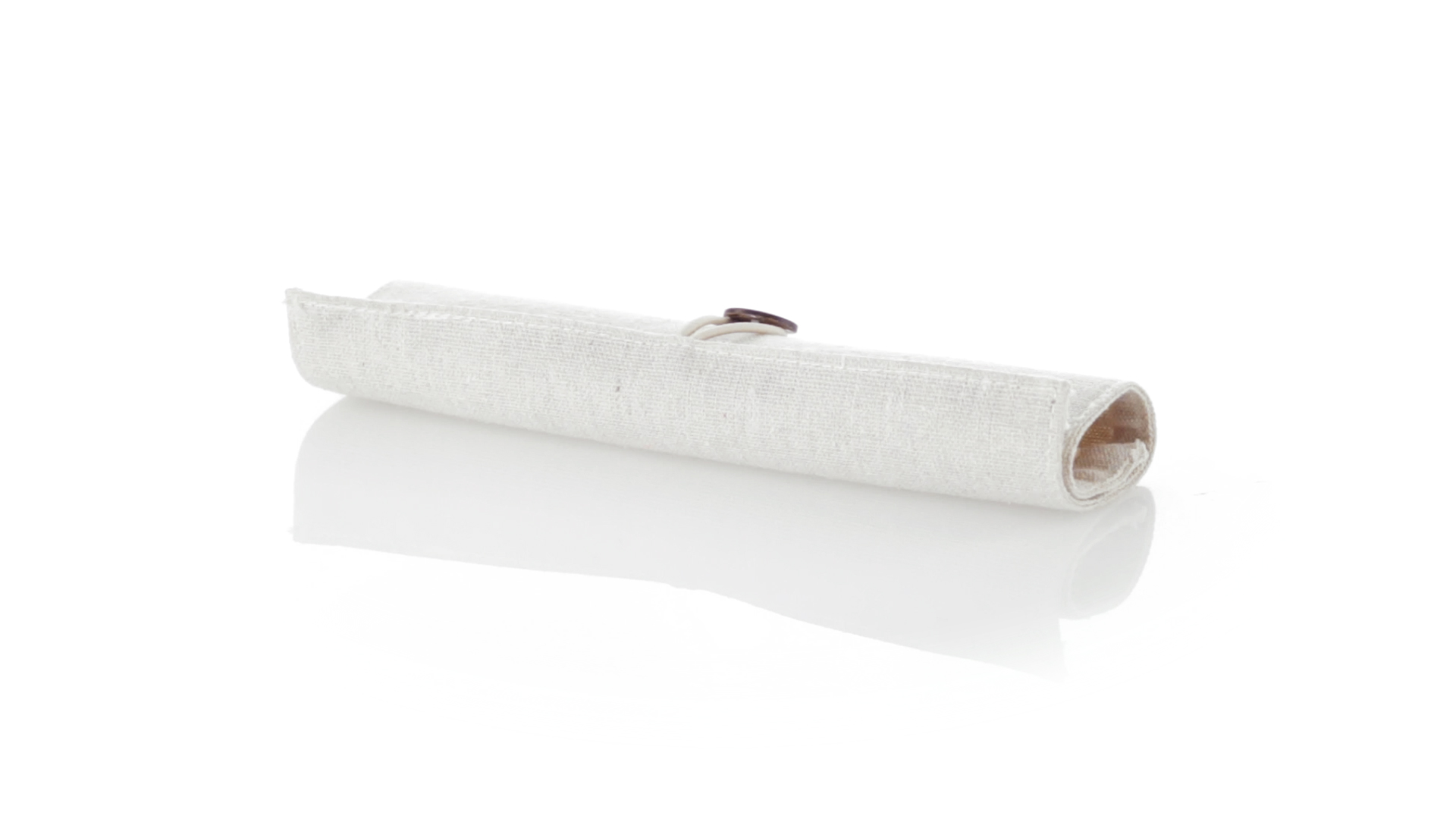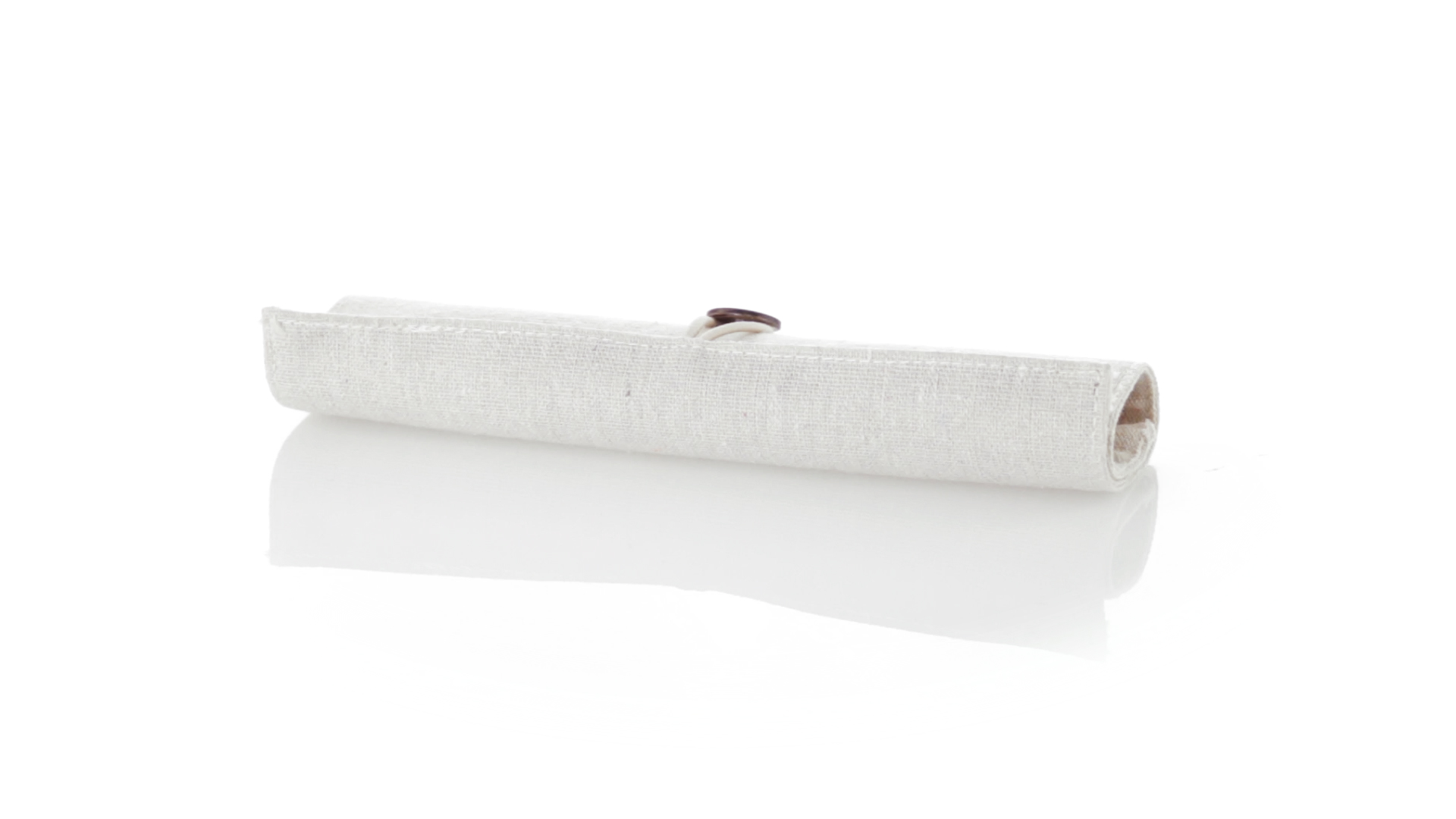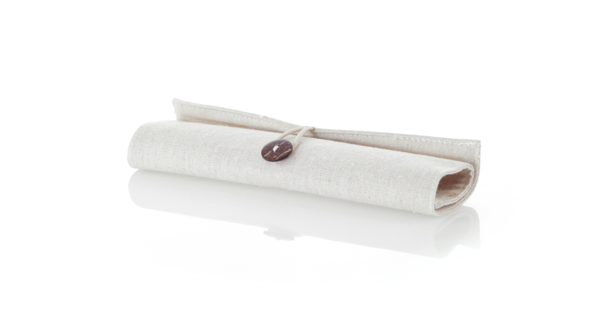Originelles Etui der Linie Nature aus Baumwolle und Jutefasern. Mit elegantem Knopfverschluss. Enthält Zubehör in Naturfarbe: Radiergummi, Anspitzer, Kugelschreiber aus Recyclingkarton, Holzbleistift und Holzlineal.