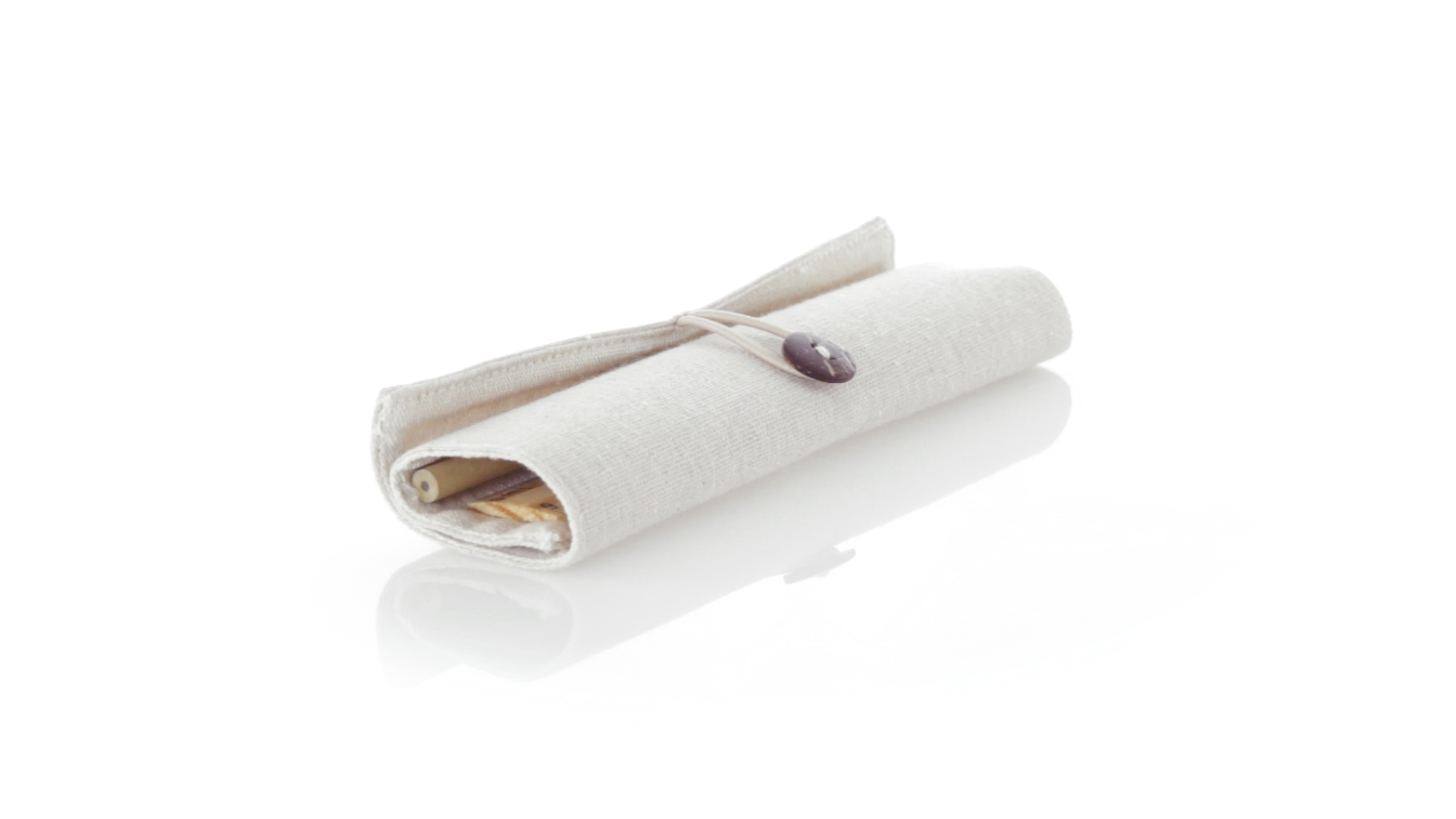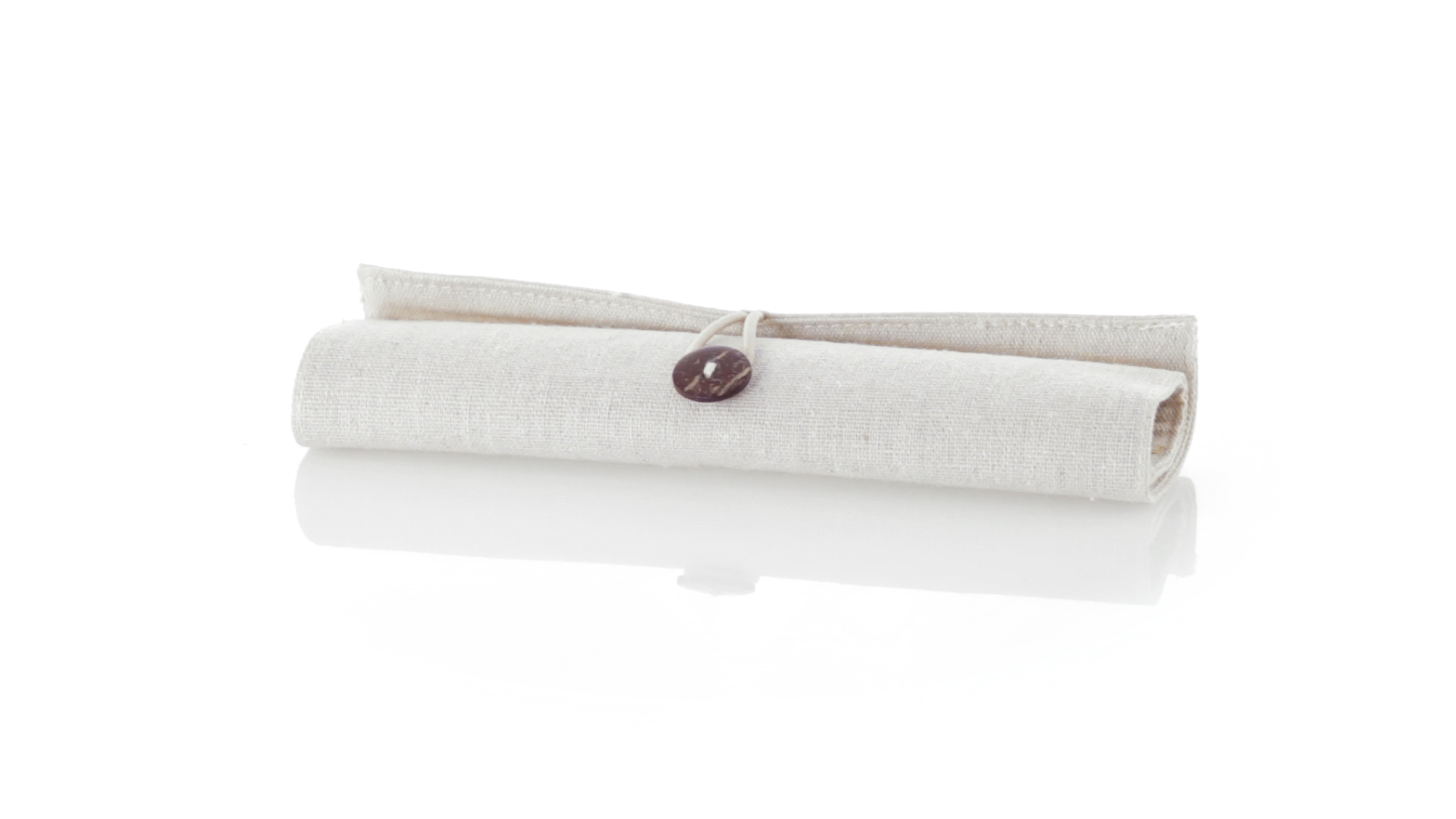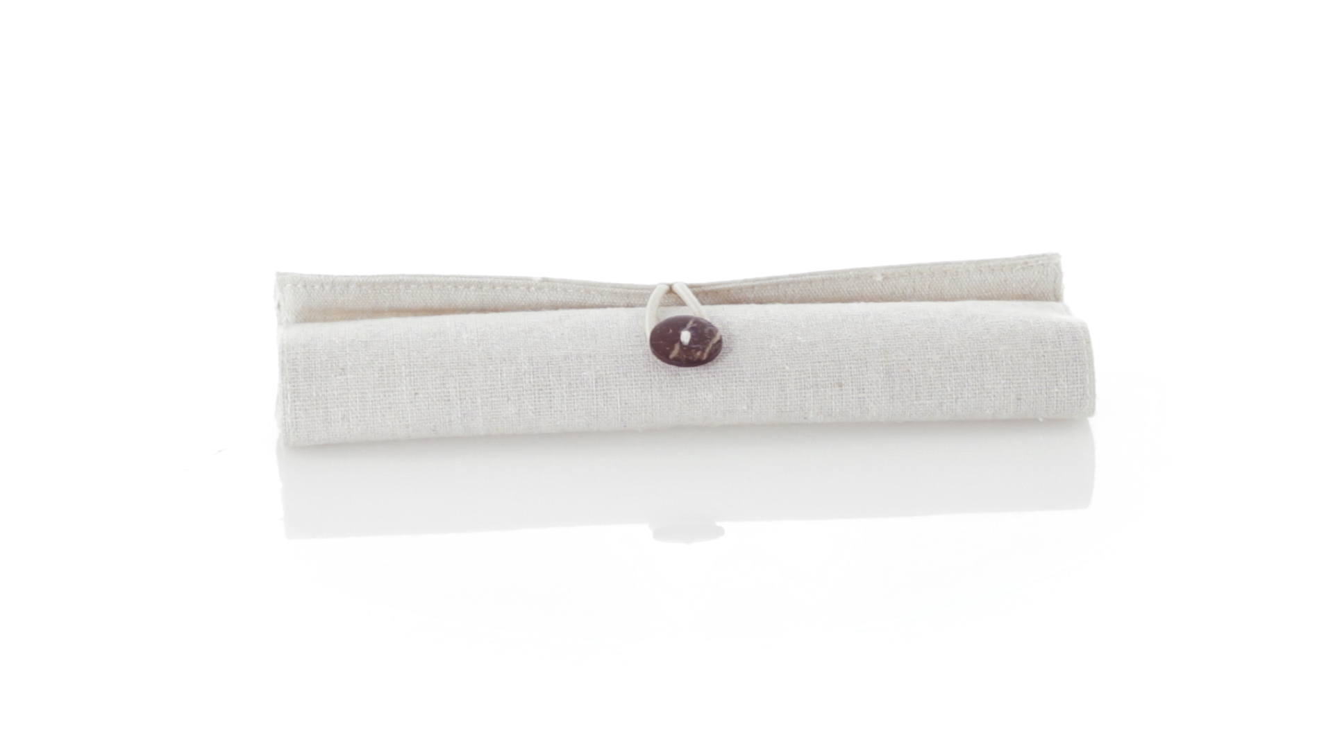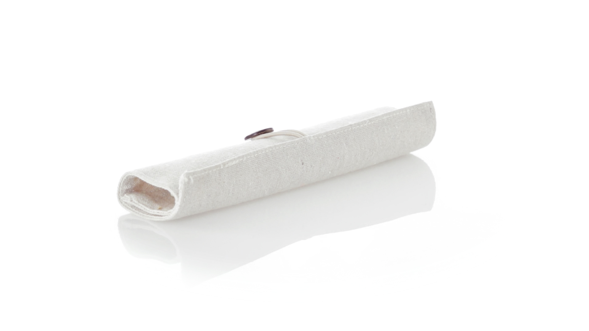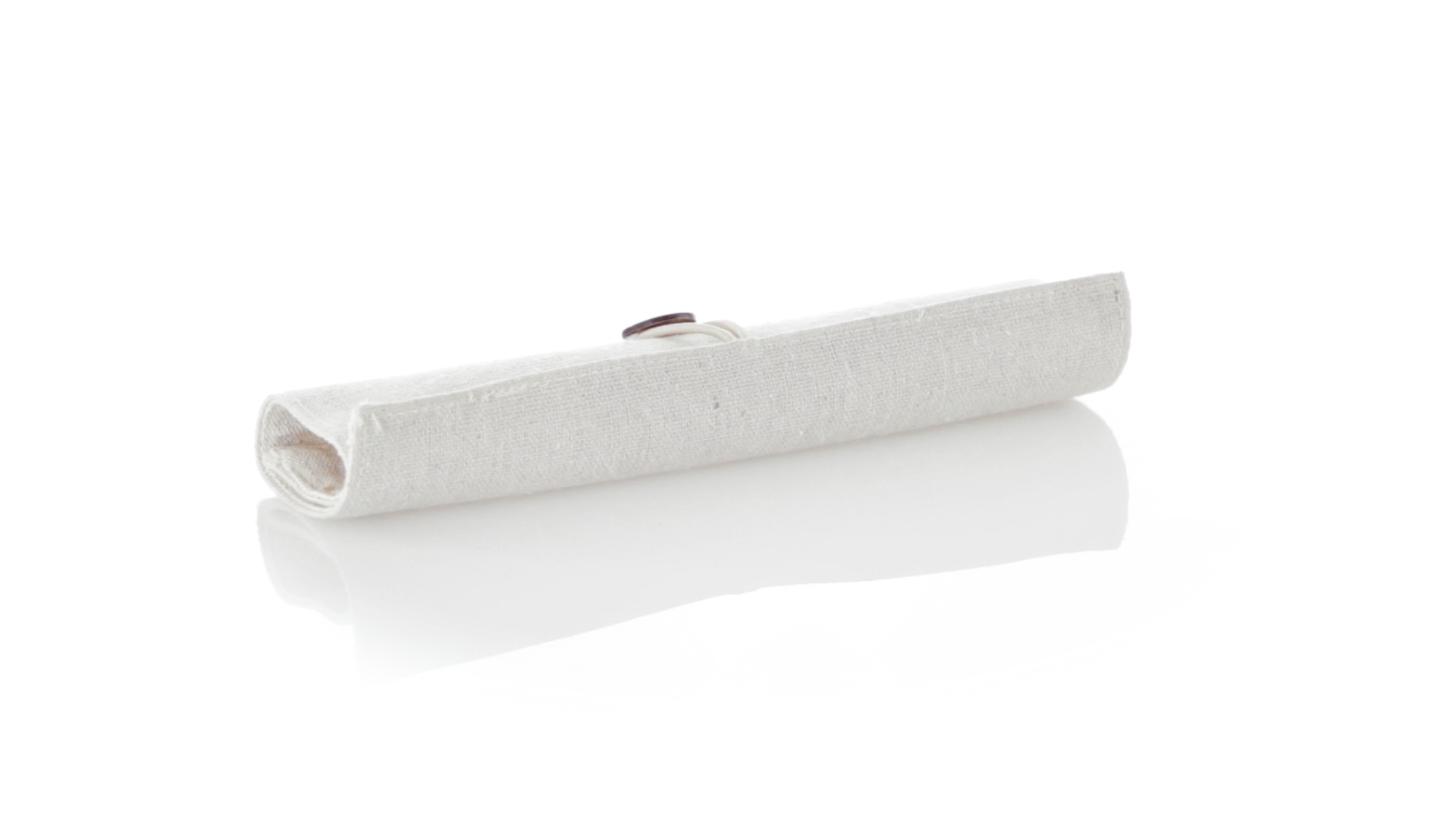Originelles Etui der Linie Nature aus Baumwolle und Jutefasern. Mit elegantem Knopfverschluss. Enthält Zubehör in Naturfarbe: Radiergummi, Anspitzer, Kugelschreiber aus Recyclingkarton, Holzbleistift und Holzlineal.