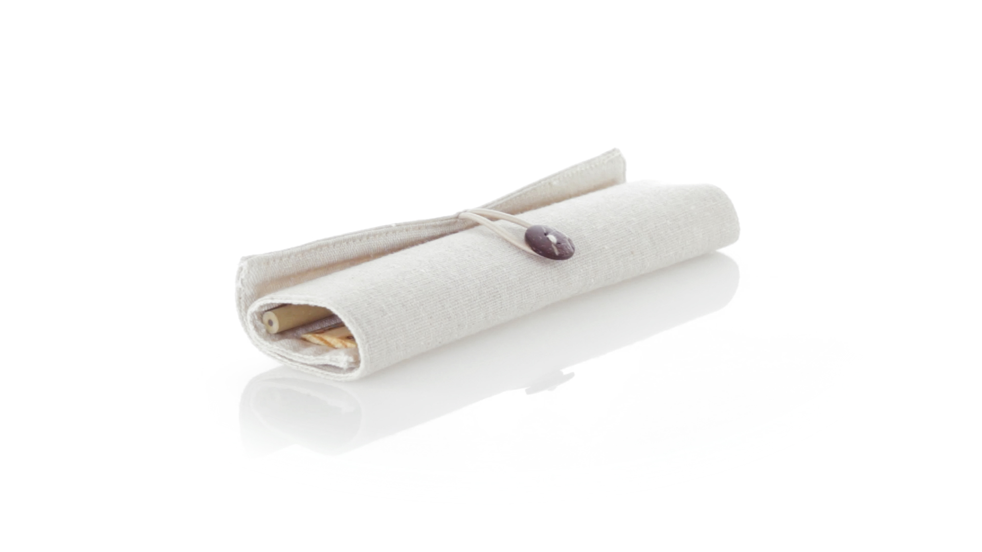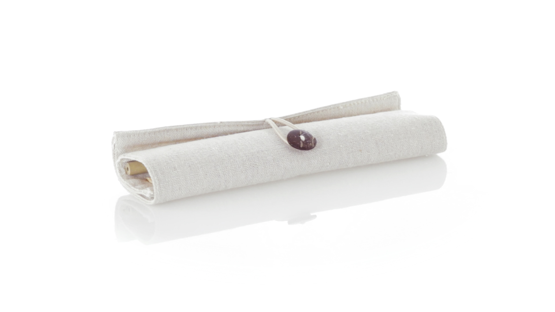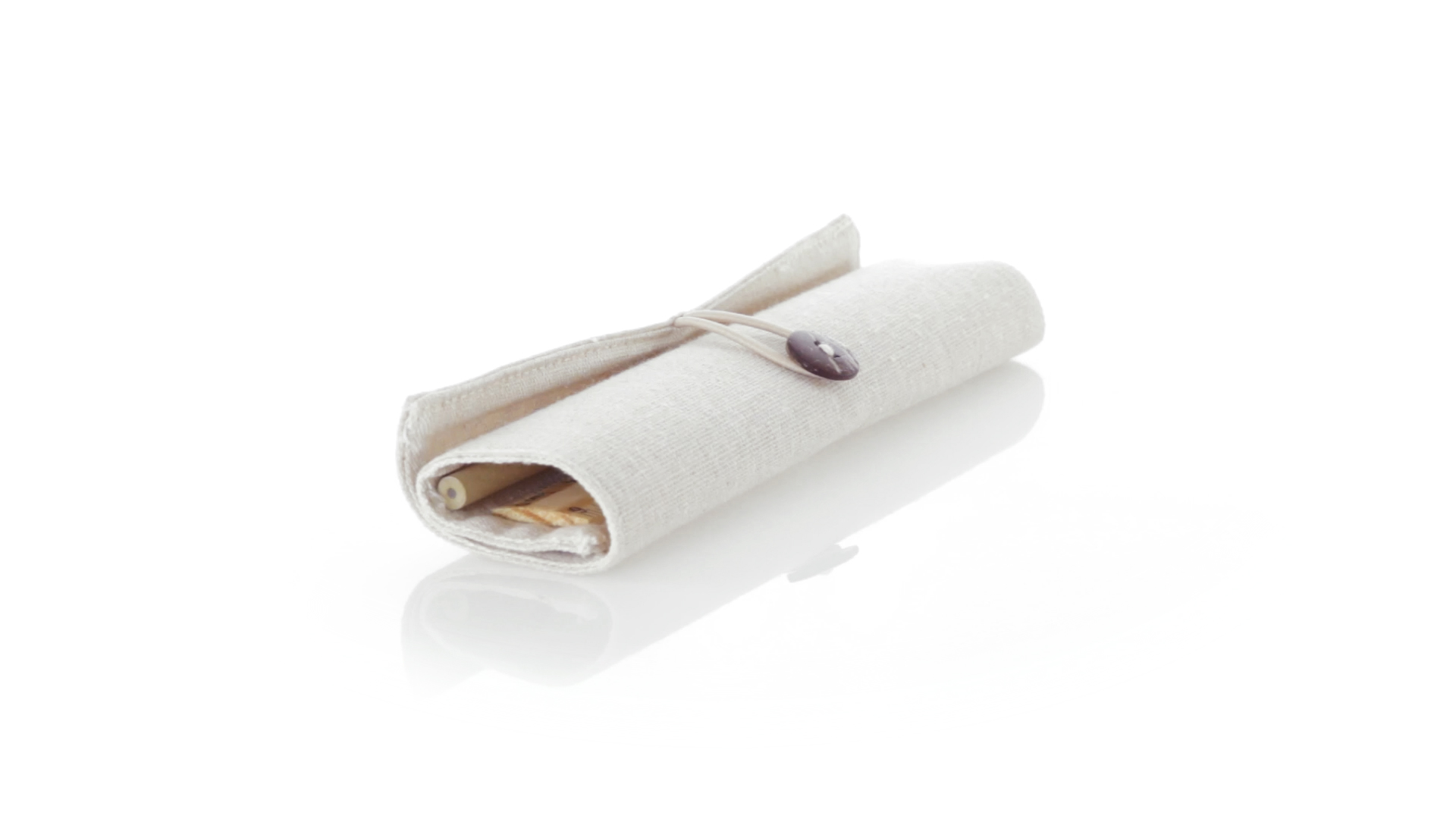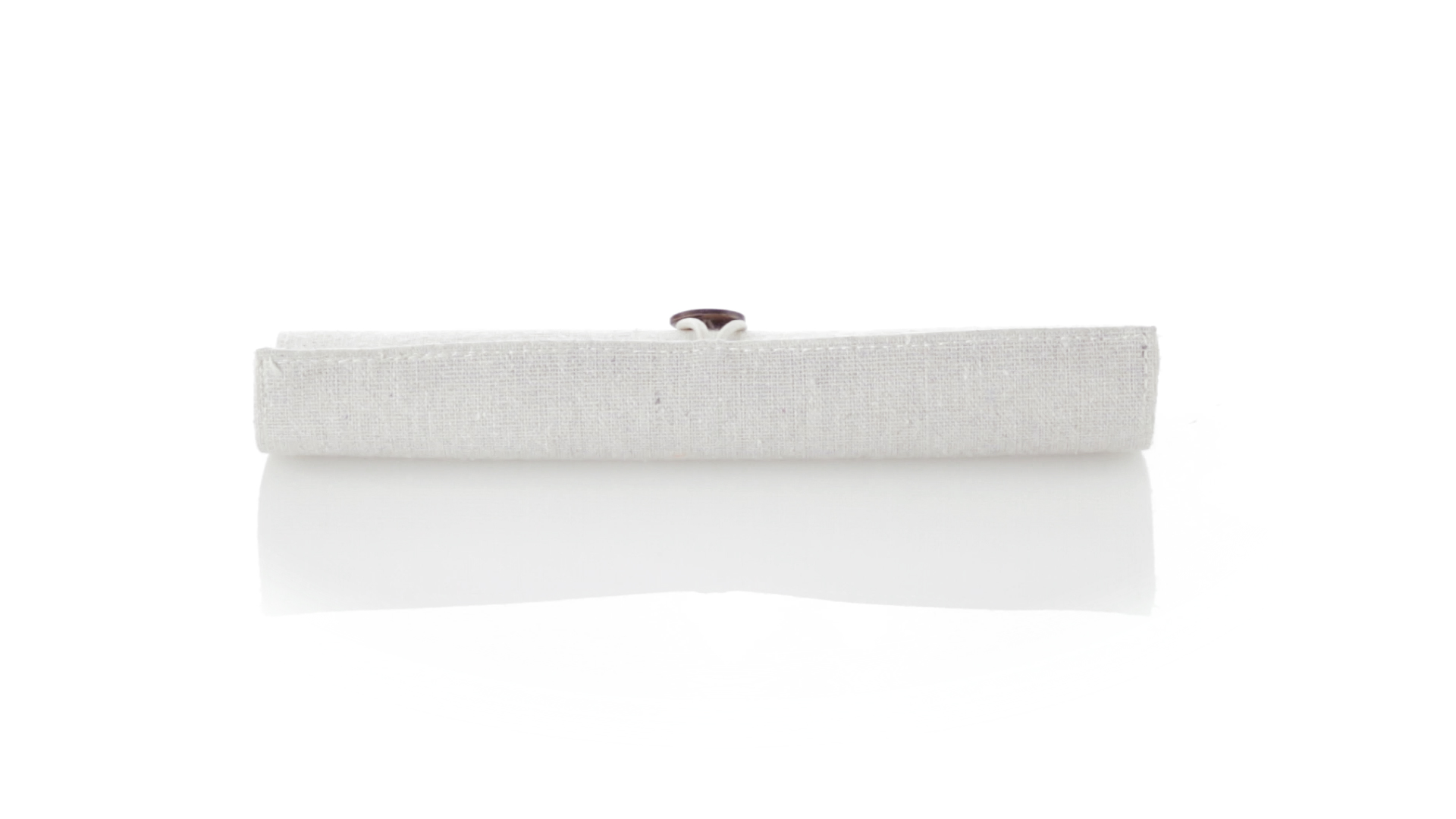 Originelles Etui der Linie Nature aus Baumwolle und Jutefasern. Mit elegantem Knopfverschluss. Enthält Zubehör in Naturfarbe: Radiergummi, Anspitzer, Kugelschreiber aus Recyclingkarton, Holzbleistift und Holzlineal.