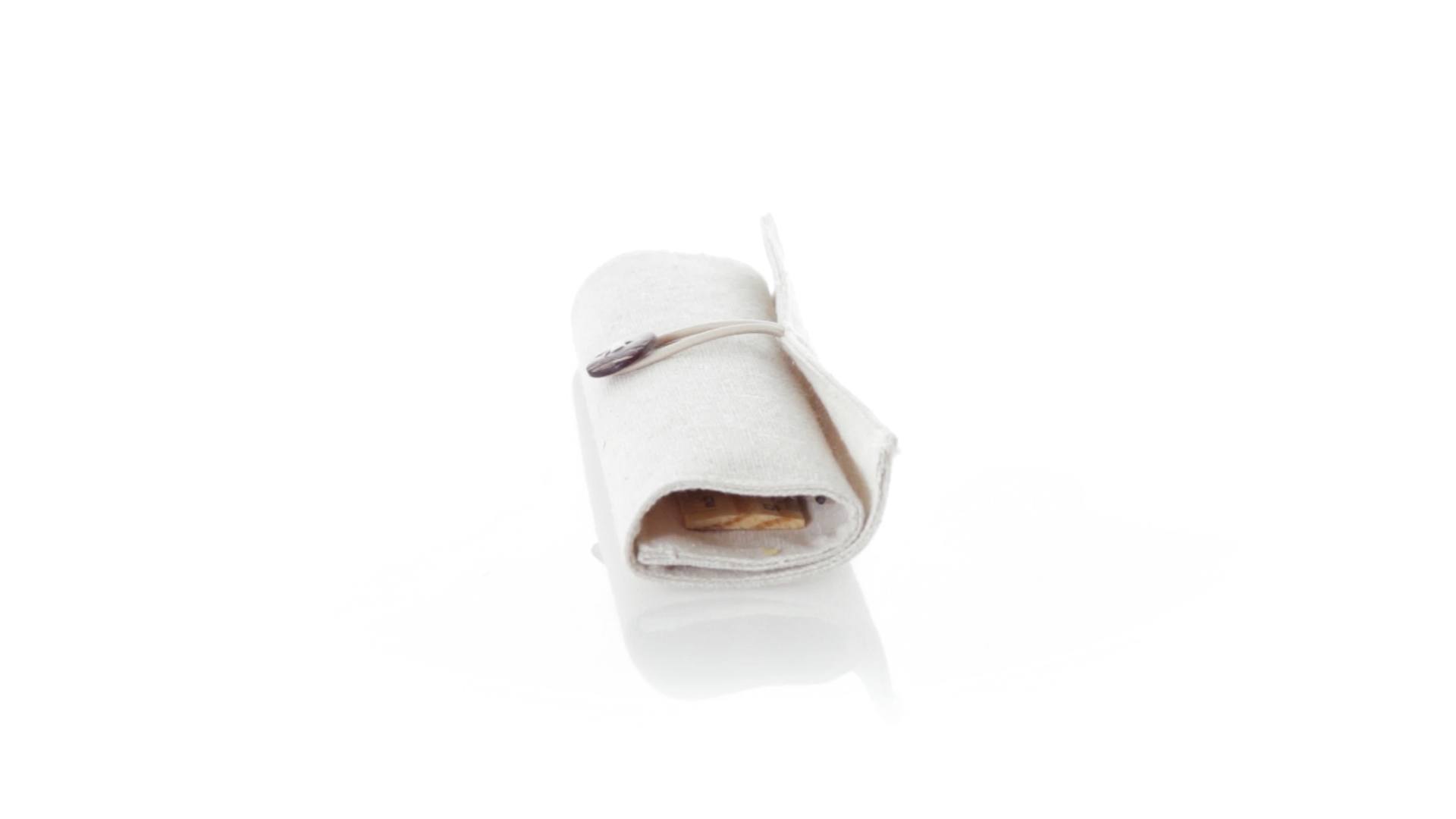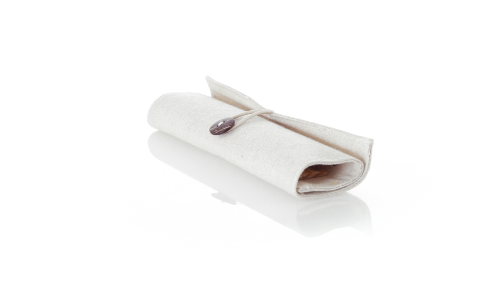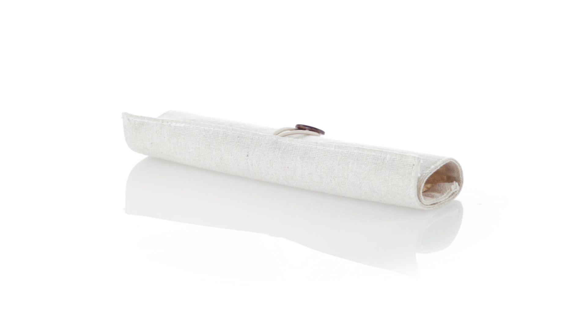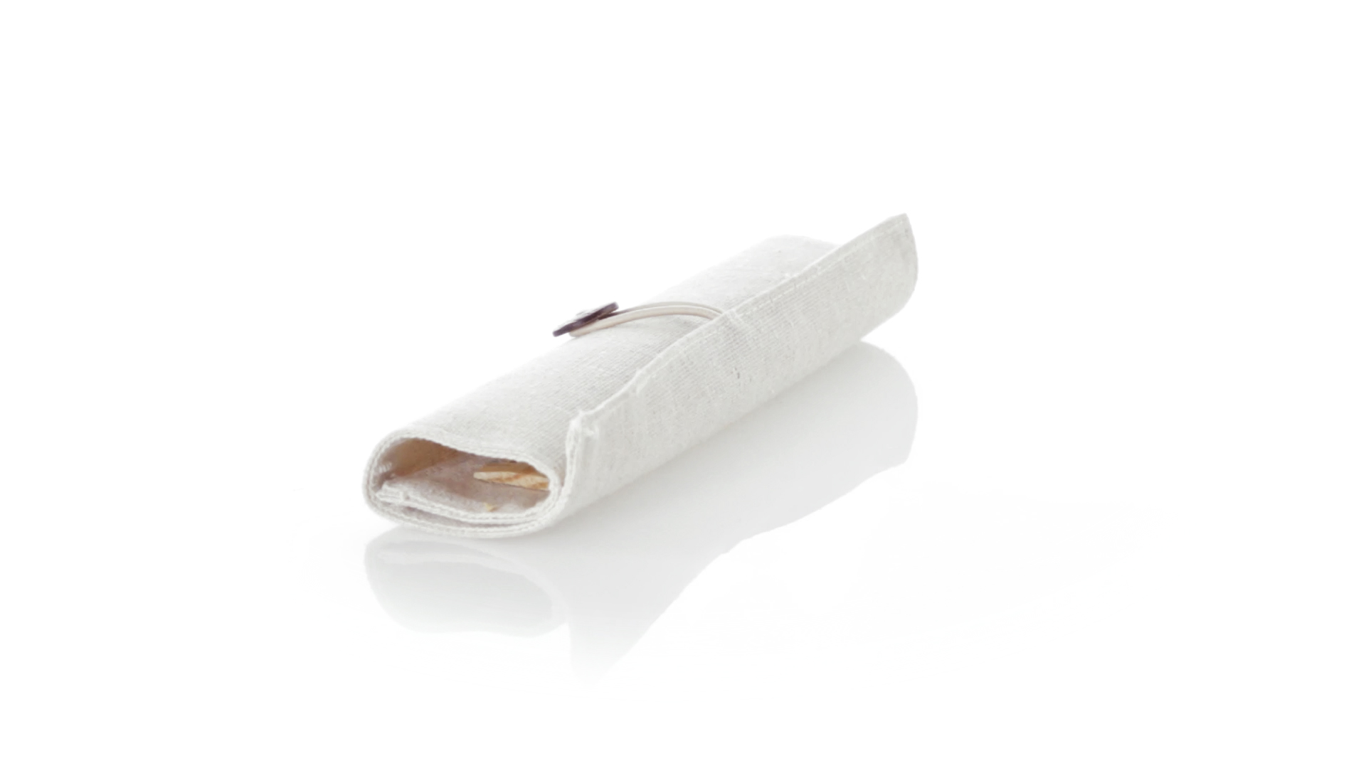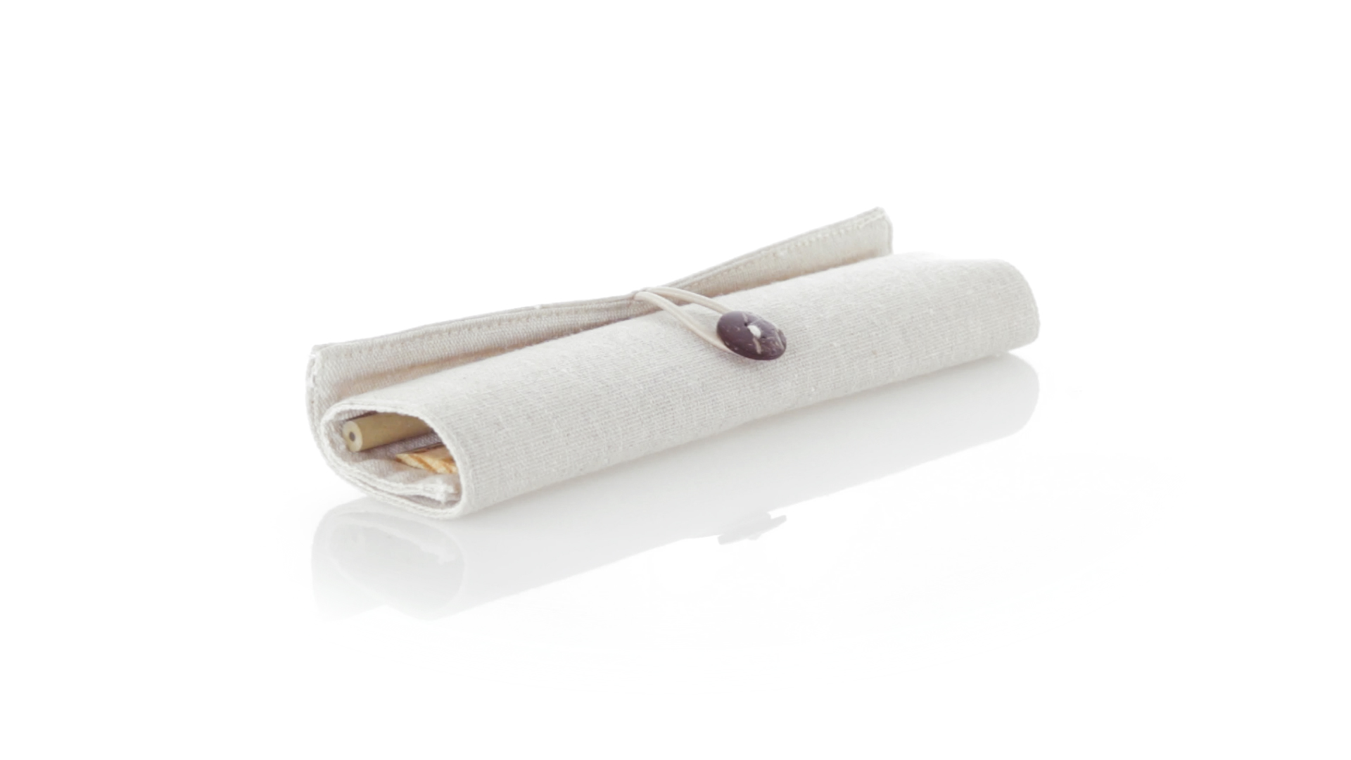 Originelles Etui der Linie Nature aus Baumwolle und Jutefasern. Mit elegantem Knopfverschluss. Enthält Zubehör in Naturfarbe: Radiergummi, Anspitzer, Kugelschreiber aus Recyclingkarton, Holzbleistift und Holzlineal.