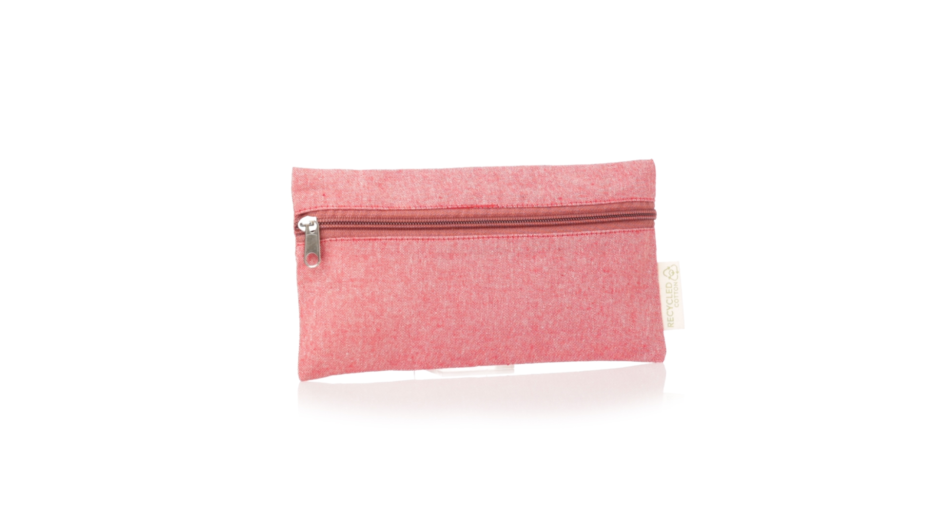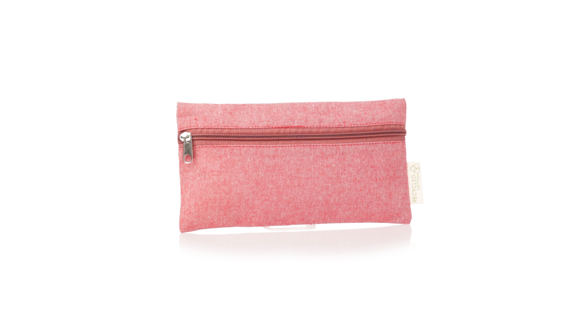 Linie Natur Federmäppchen aus recycelter Baumwolle. Hauptfach mit Reissverschluss und Recycled Cotton Etikett. Erhältlich in einer breiten Palette von Farben.