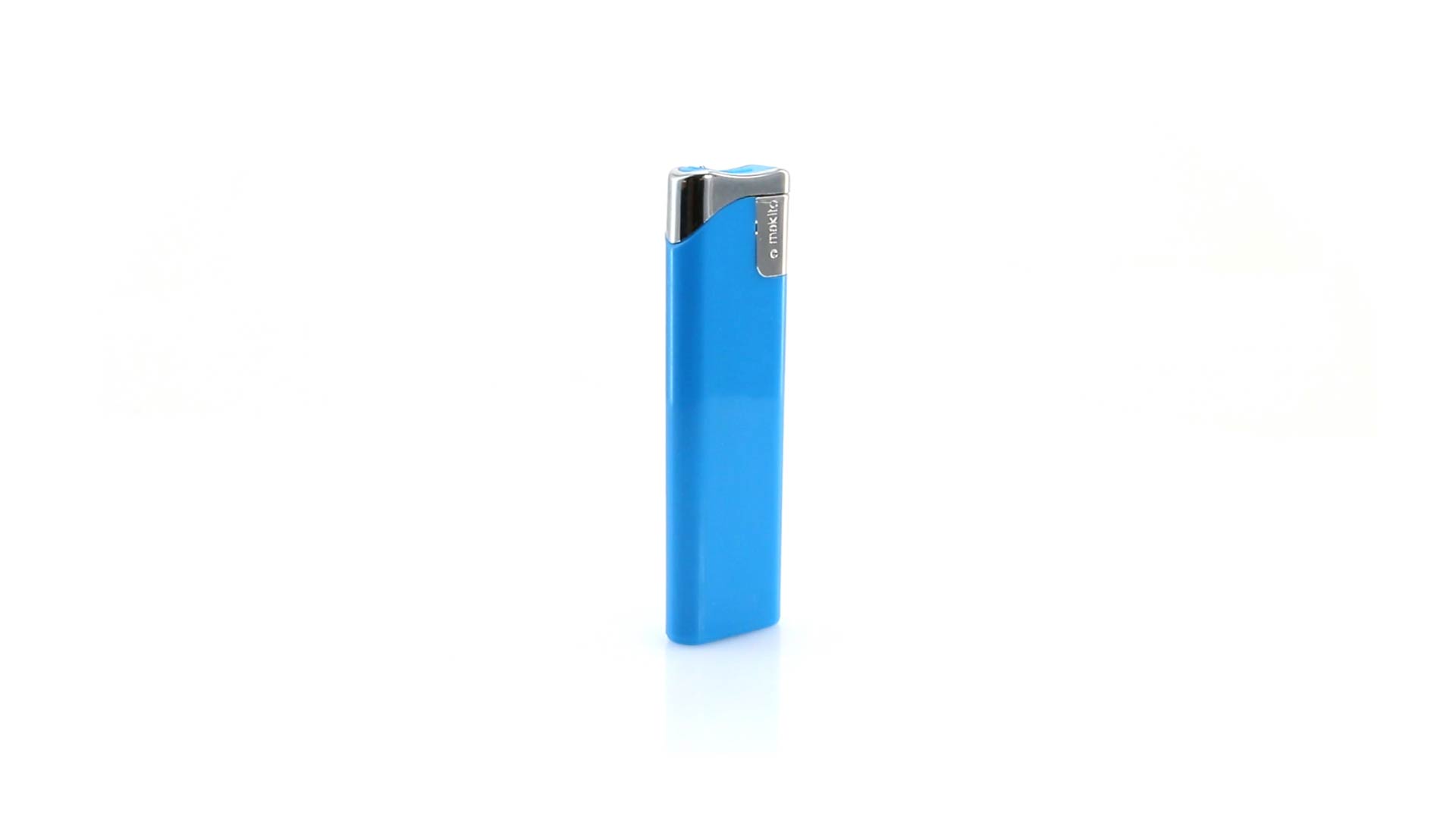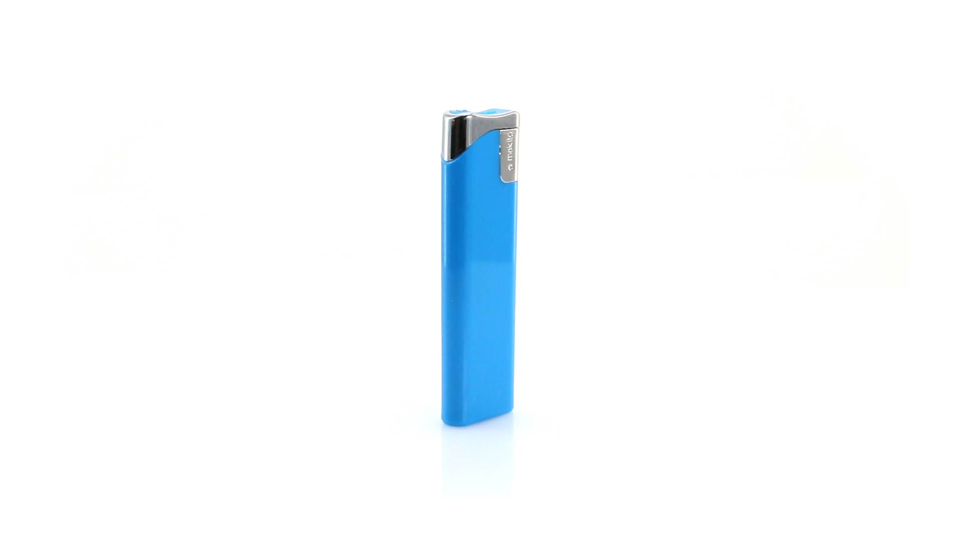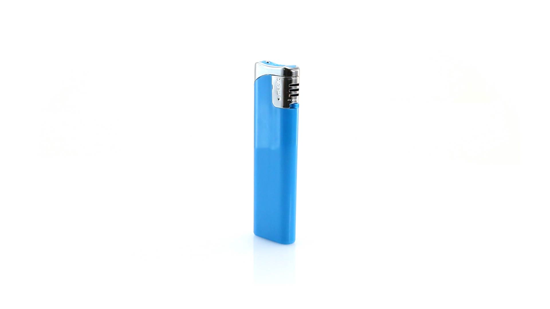 Wiederbefüllbares Gasfeuerzeug mit elektrischem Mechanismus in einer Vielzahl von lebendigen Neonfarben. Mit Flammenregler und Kinderschutz. Verpackt in Schachteln zu 50 Stück in verschiedenen Farben.