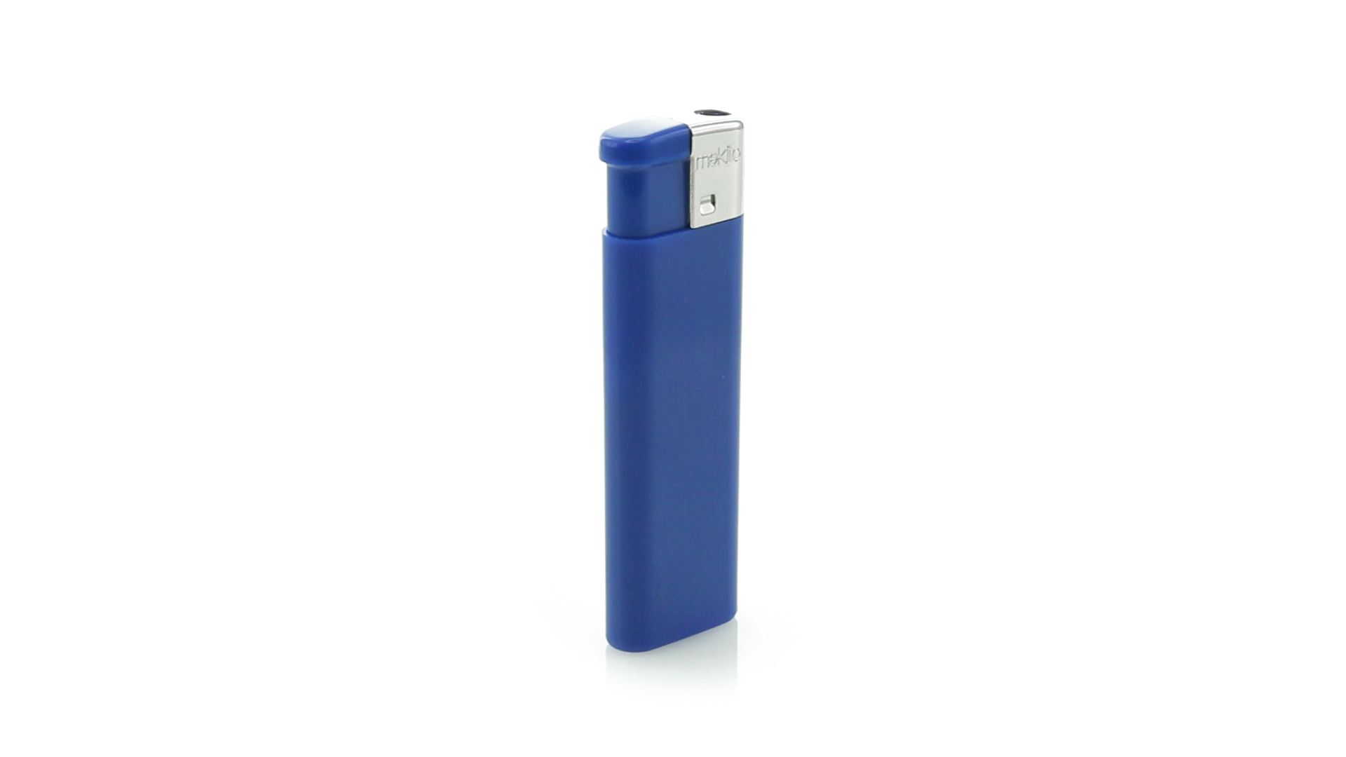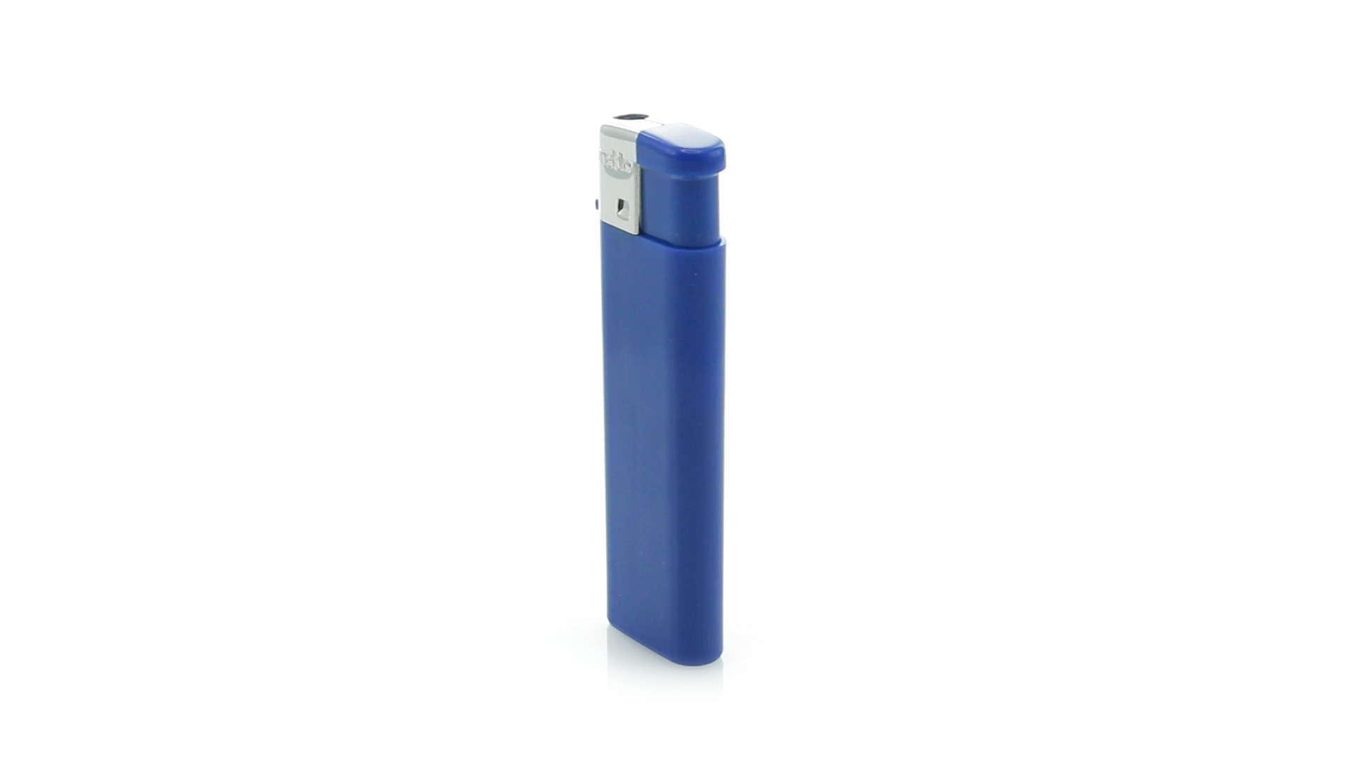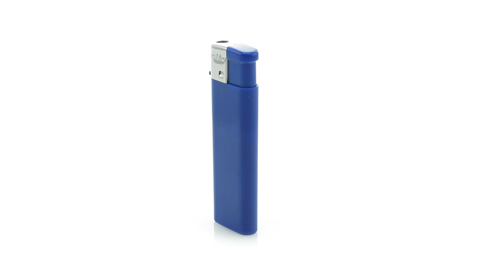 Wiederbefüllbares Gasfeuerzeug mit elektrischem Mechanismus in einer Vielzahl von kräftigen Farben. Mit Flammenregler und Kinderschutz.