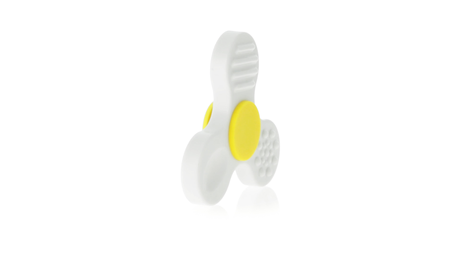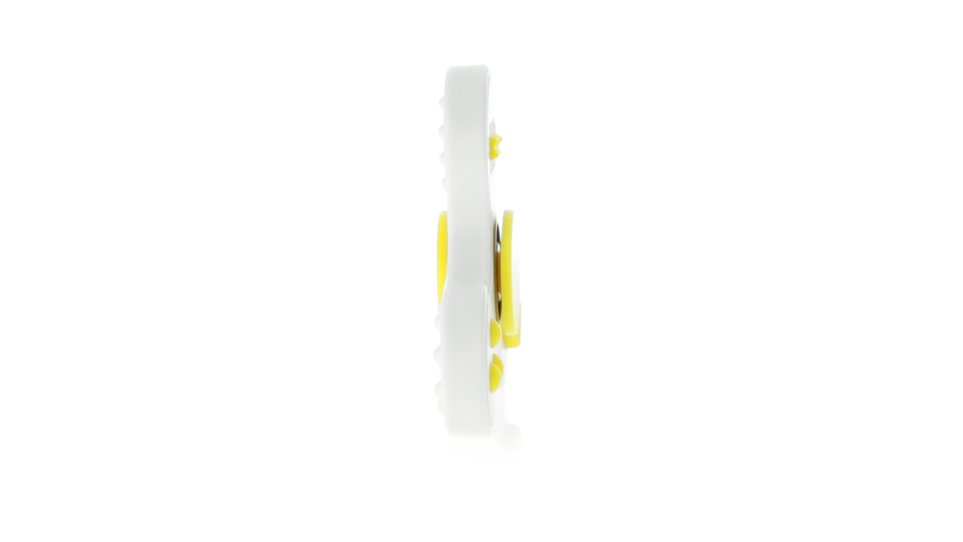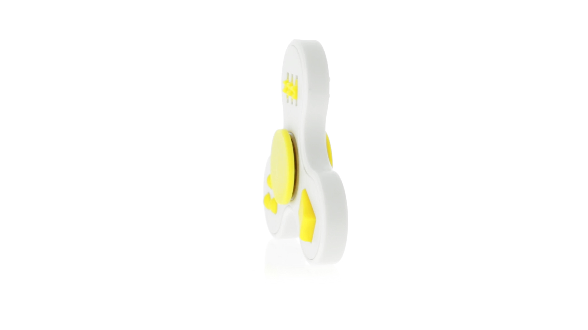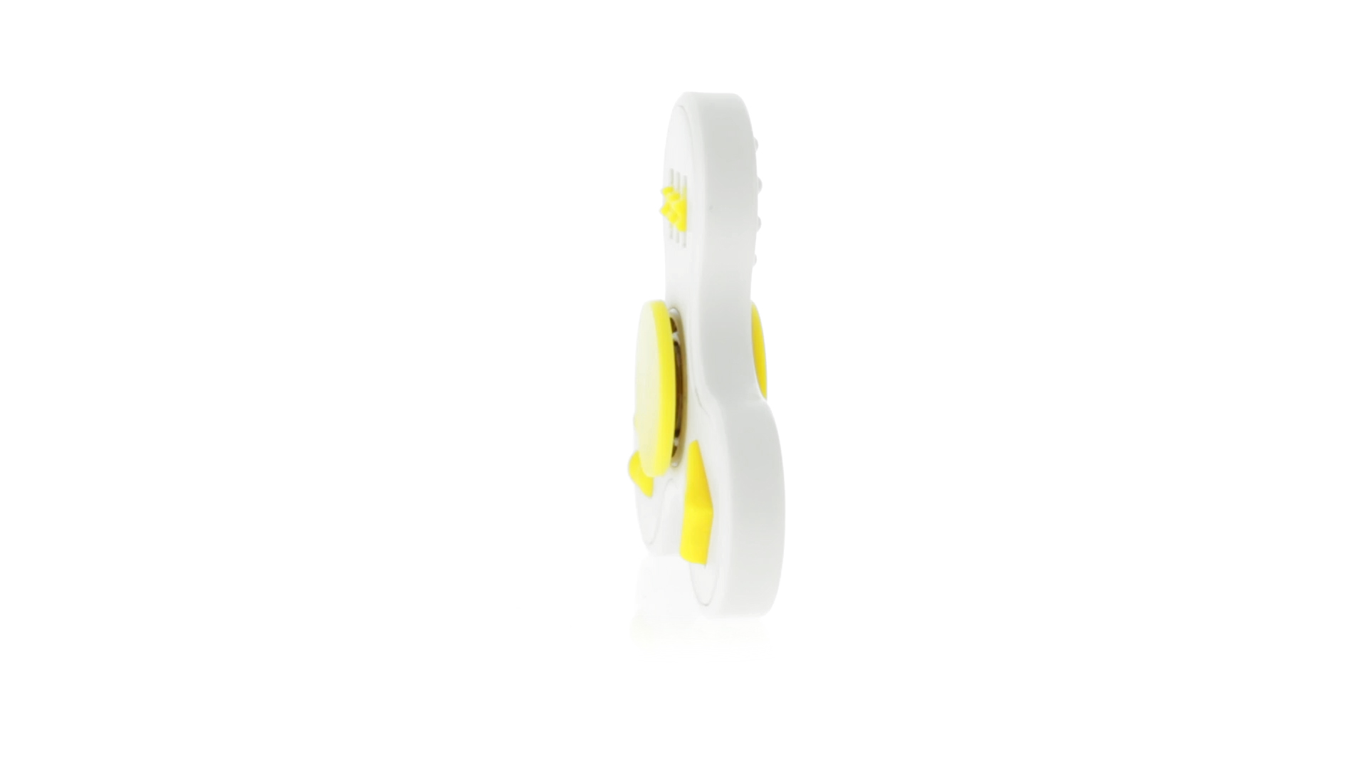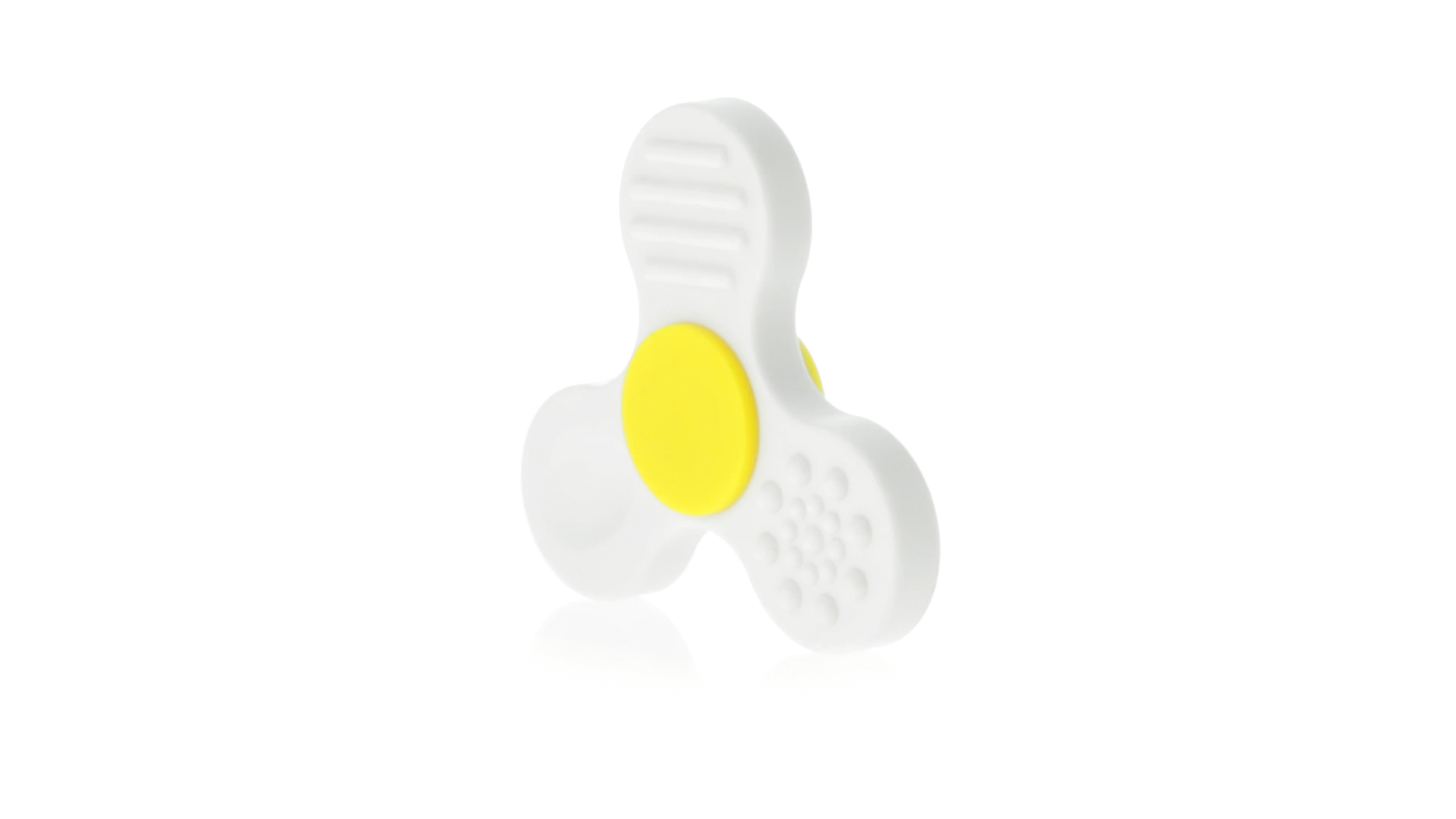 Fidget-Spinner mit vielen verschiedenen Knöpfen zur Entspannung. Gehäuse in Weiss mit Kontrastdetails in verschiedenen kräftigen Farben.
