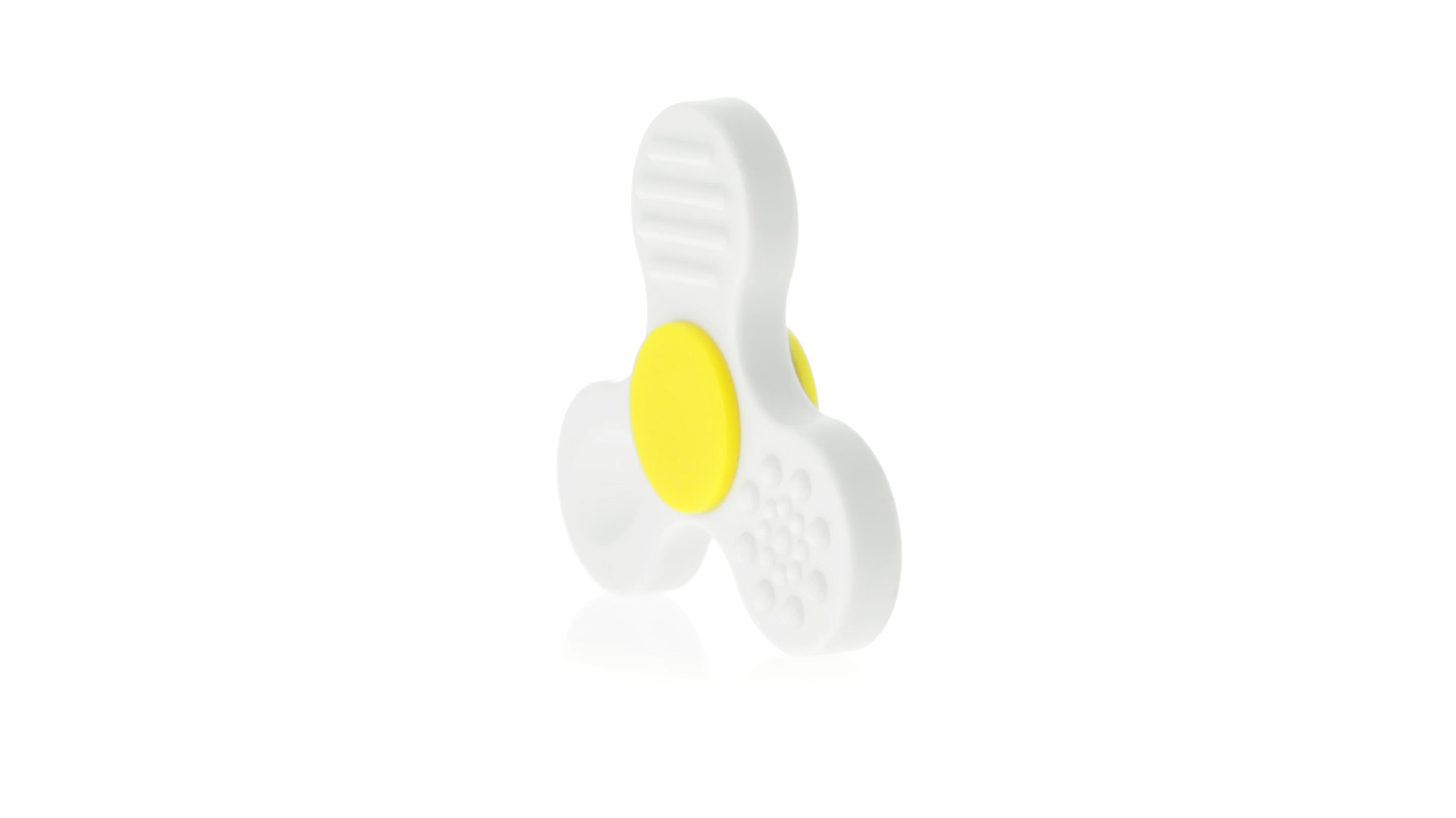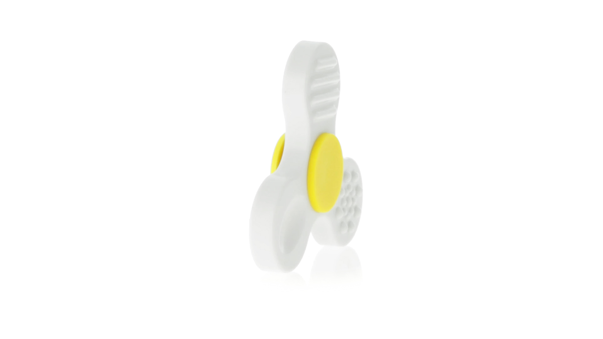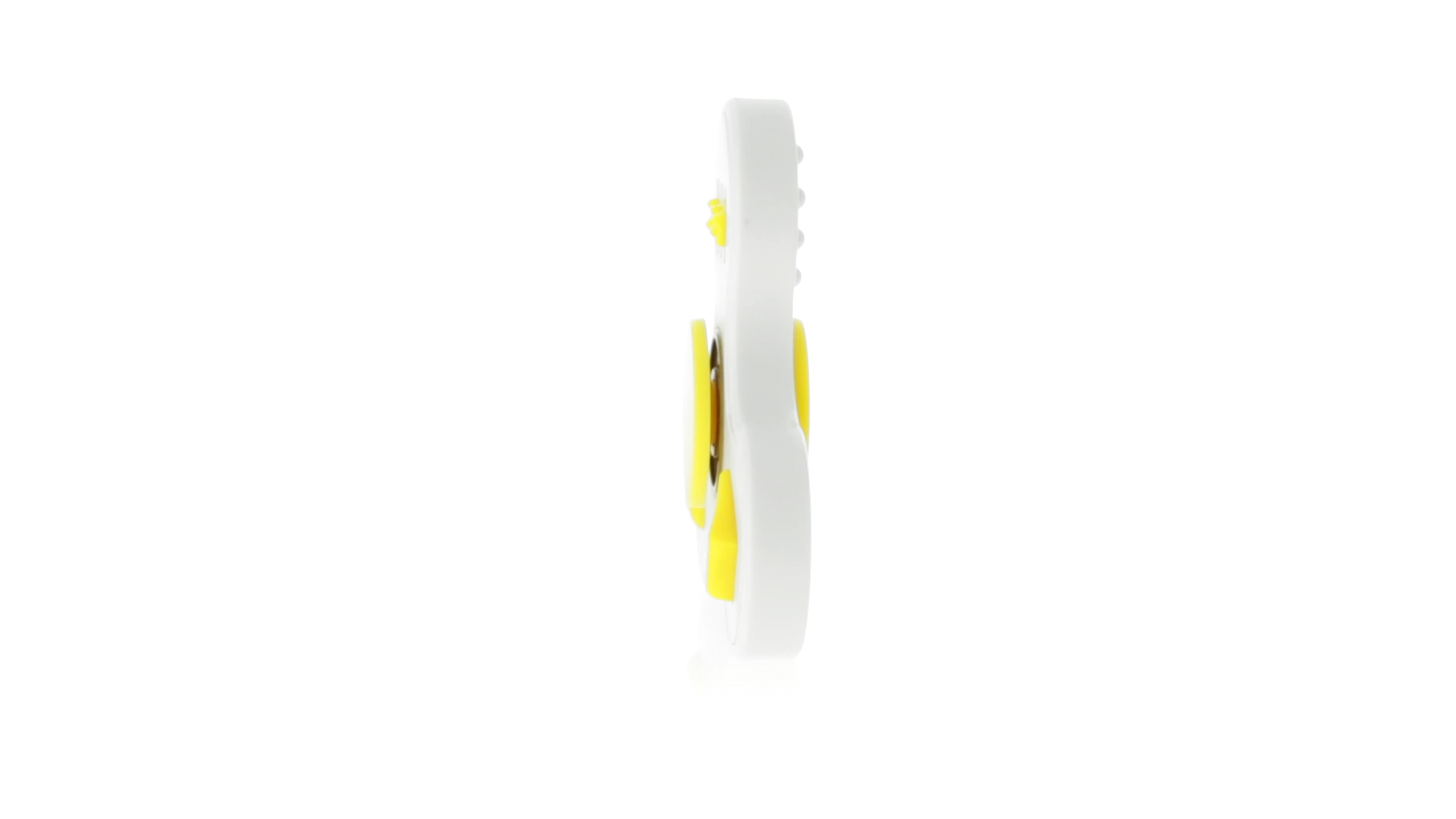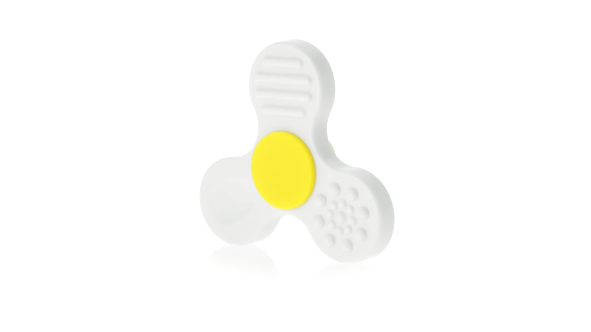 Fidget-Spinner mit vielen verschiedenen Knöpfen zur Entspannung. Gehäuse in Weiss mit Kontrastdetails in verschiedenen kräftigen Farben.