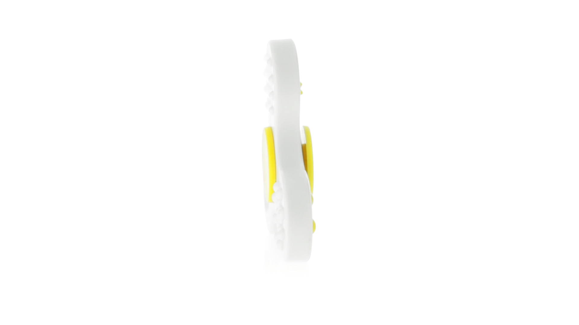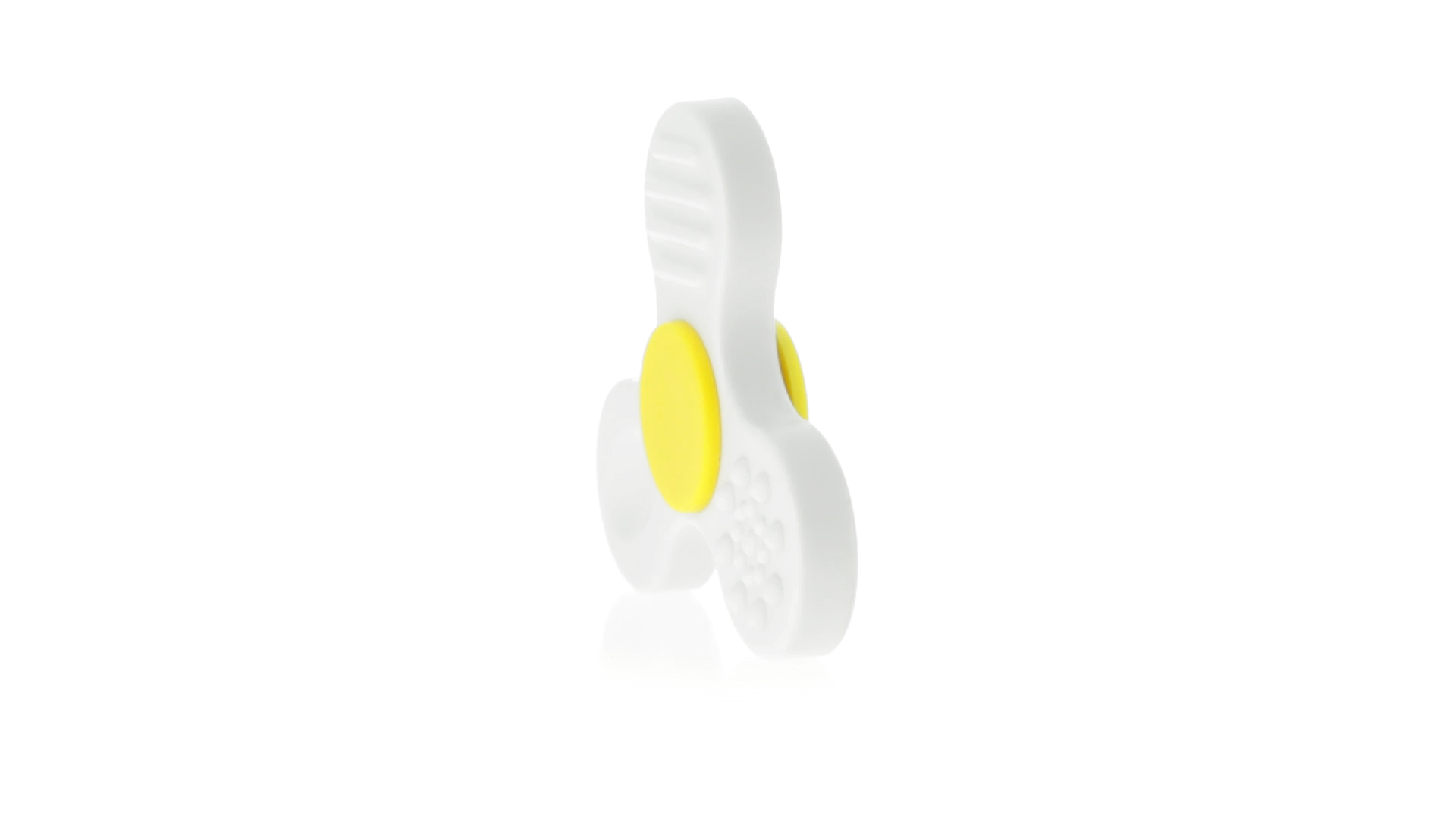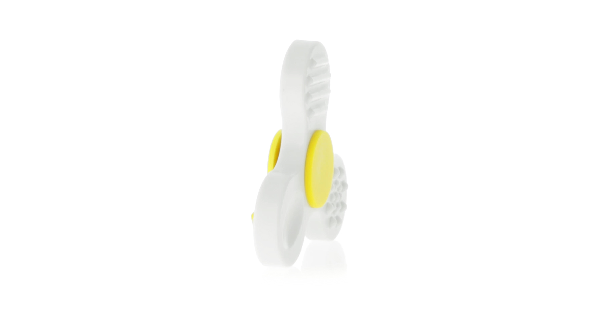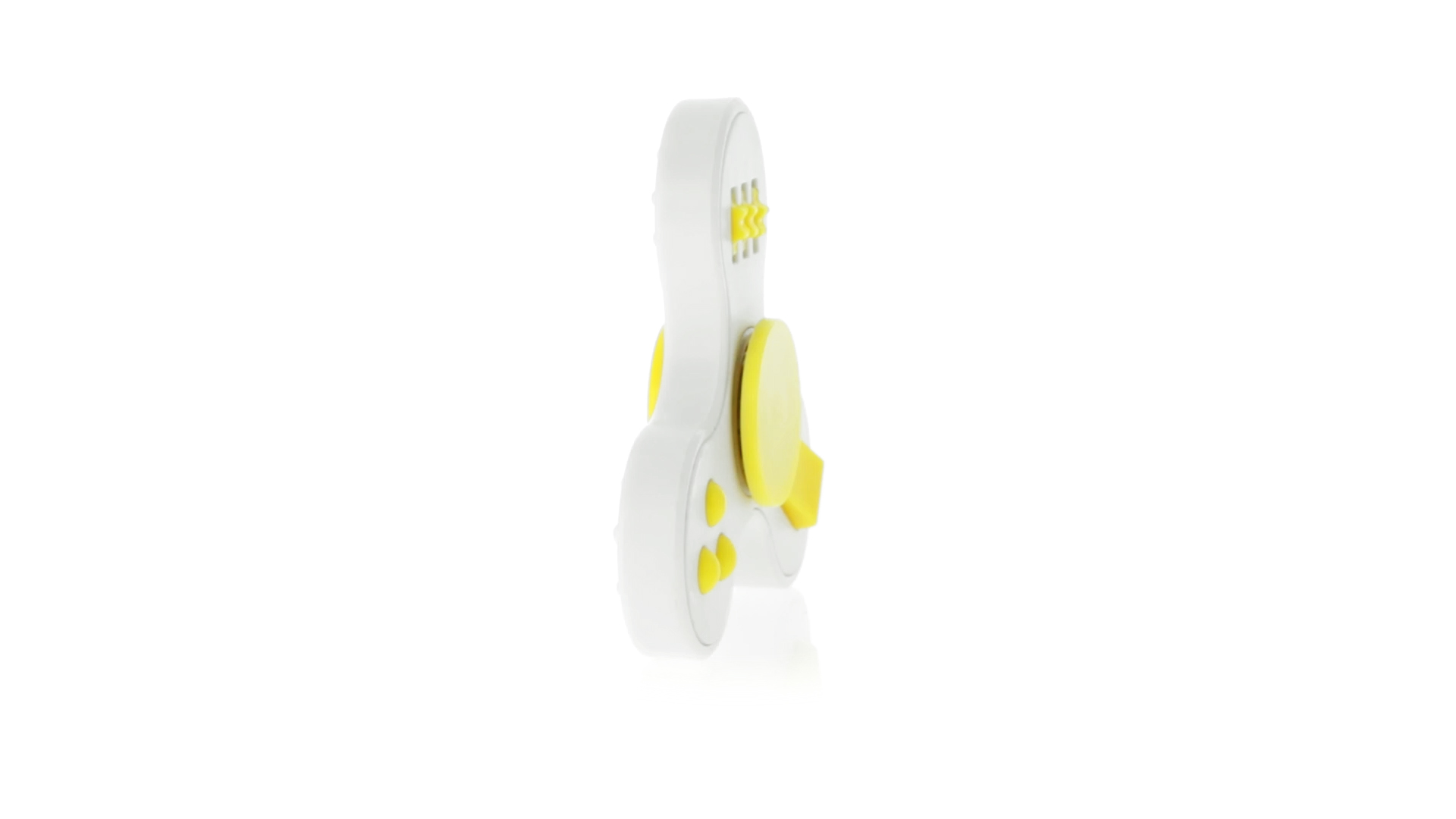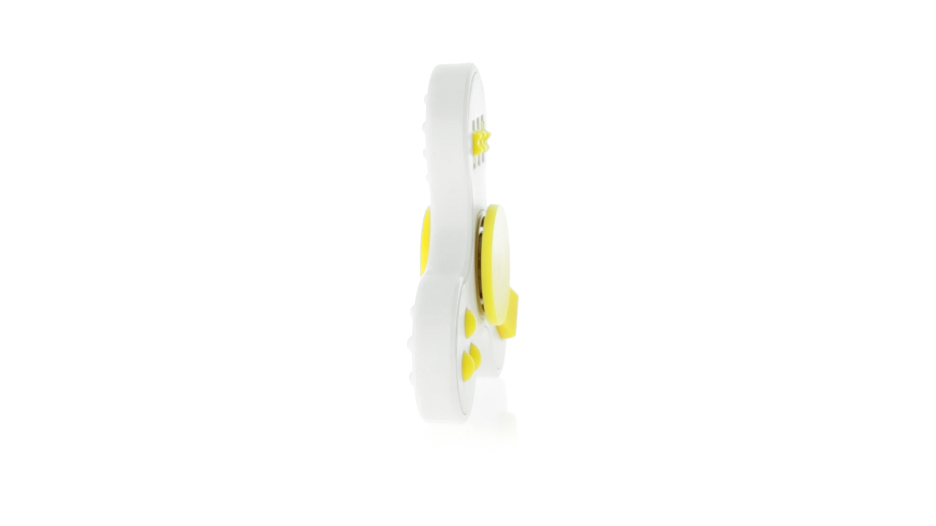 Fidget-Spinner mit vielen verschiedenen Knöpfen zur Entspannung. Gehäuse in Weiss mit Kontrastdetails in verschiedenen kräftigen Farben.