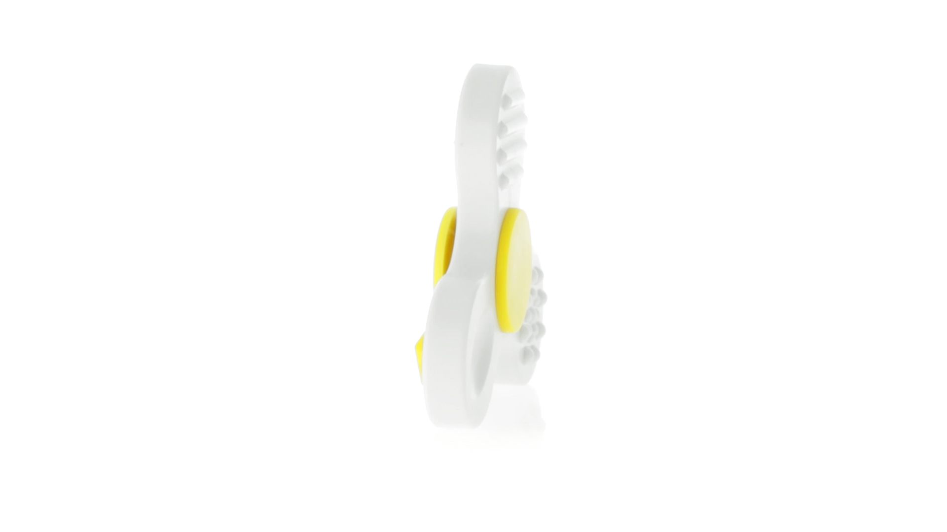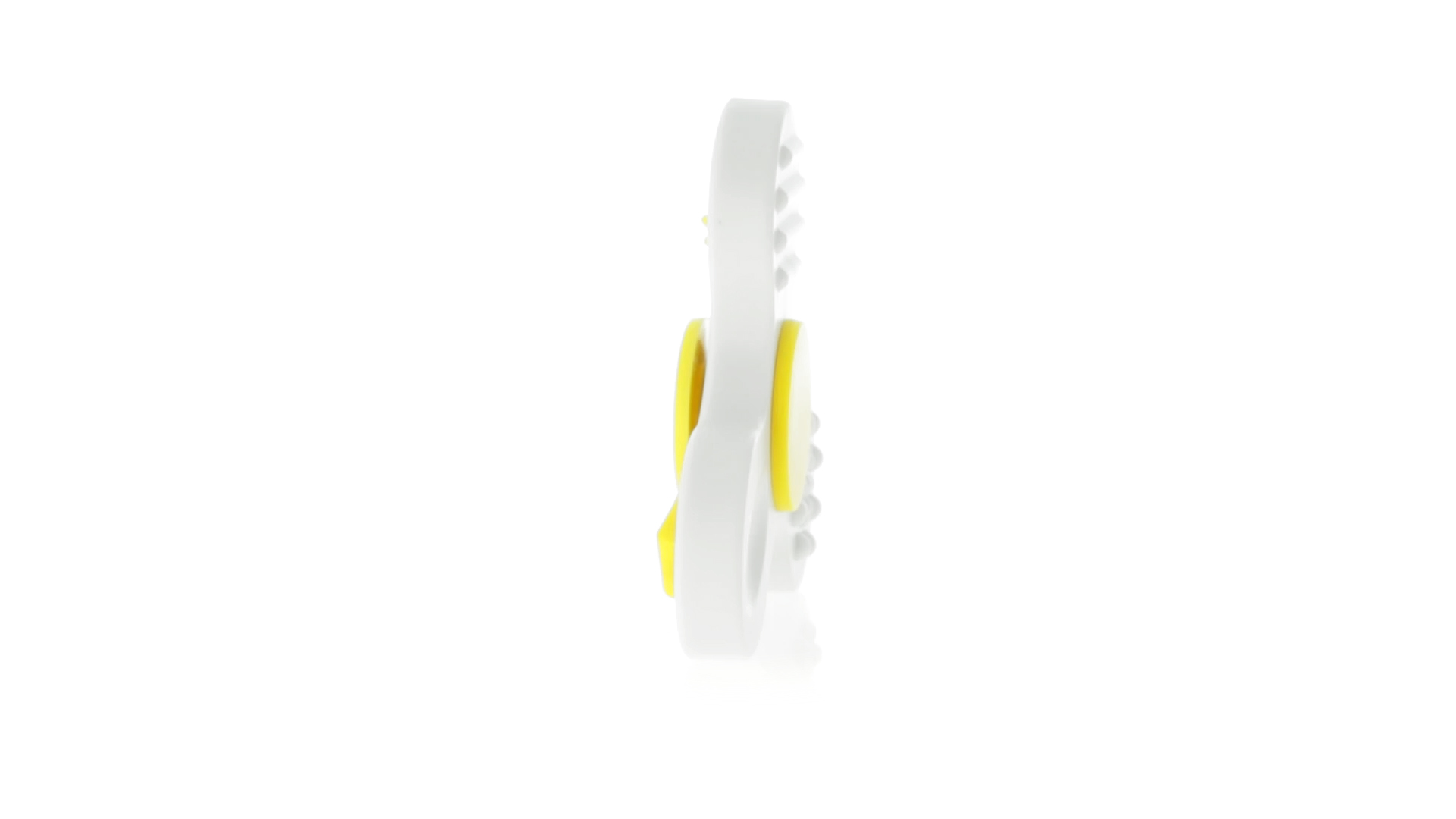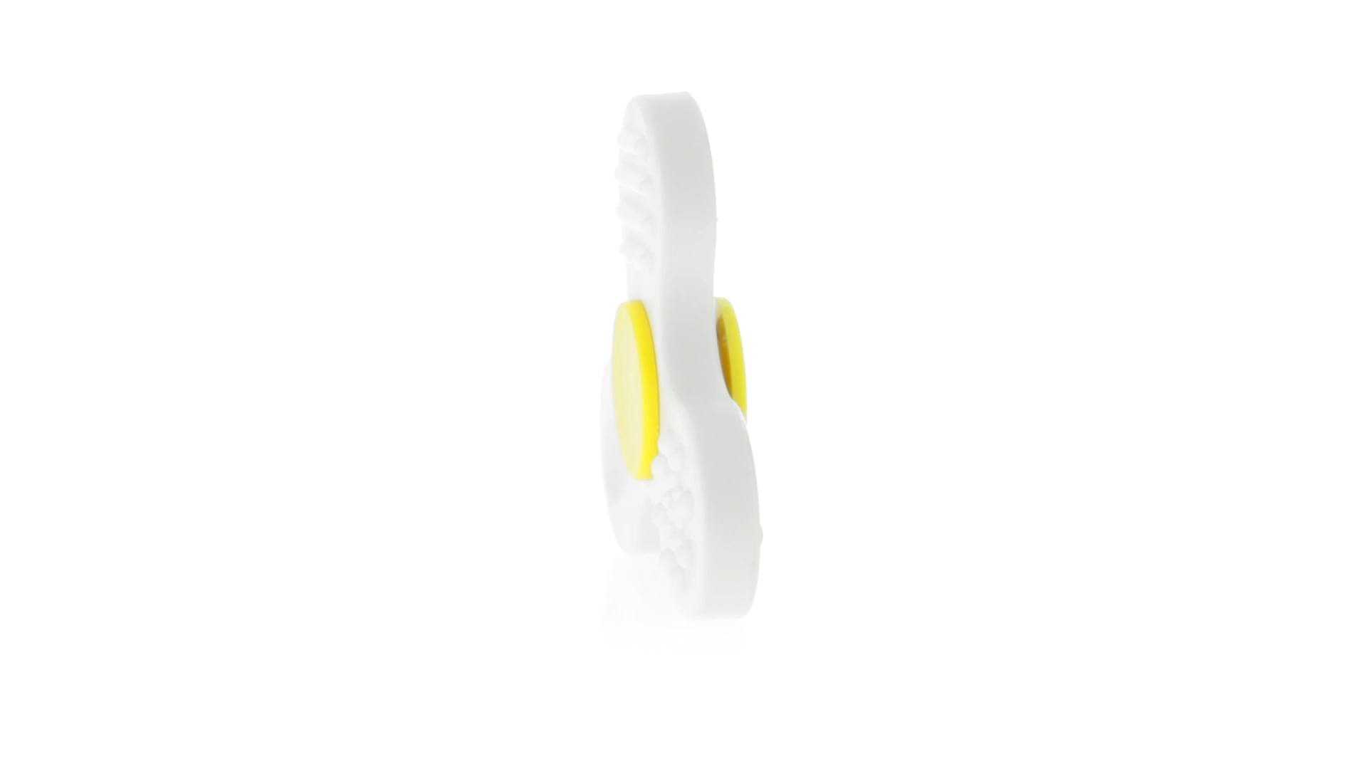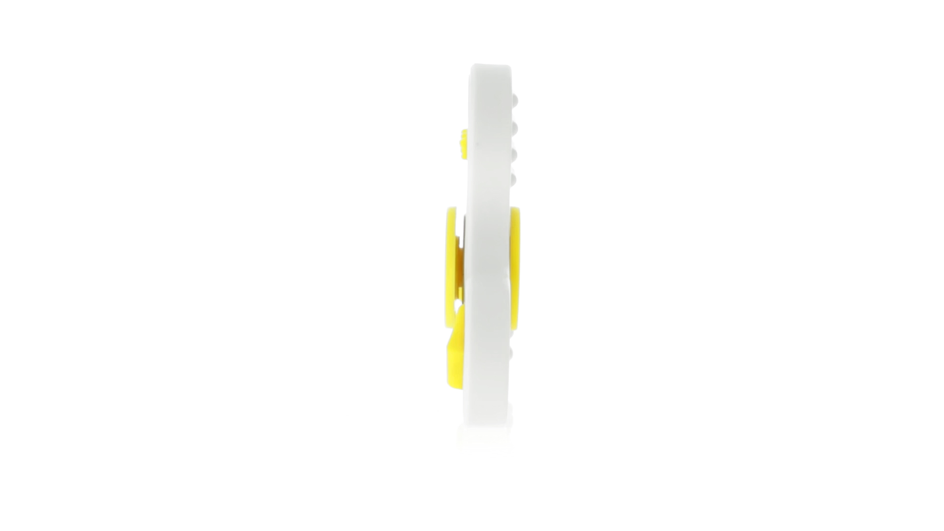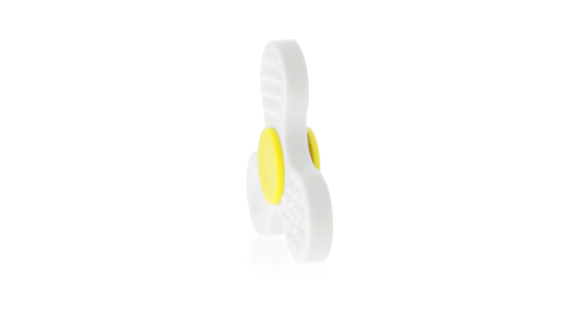 Fidget-Spinner mit vielen verschiedenen Knöpfen zur Entspannung. Gehäuse in Weiss mit Kontrastdetails in verschiedenen kräftigen Farben.