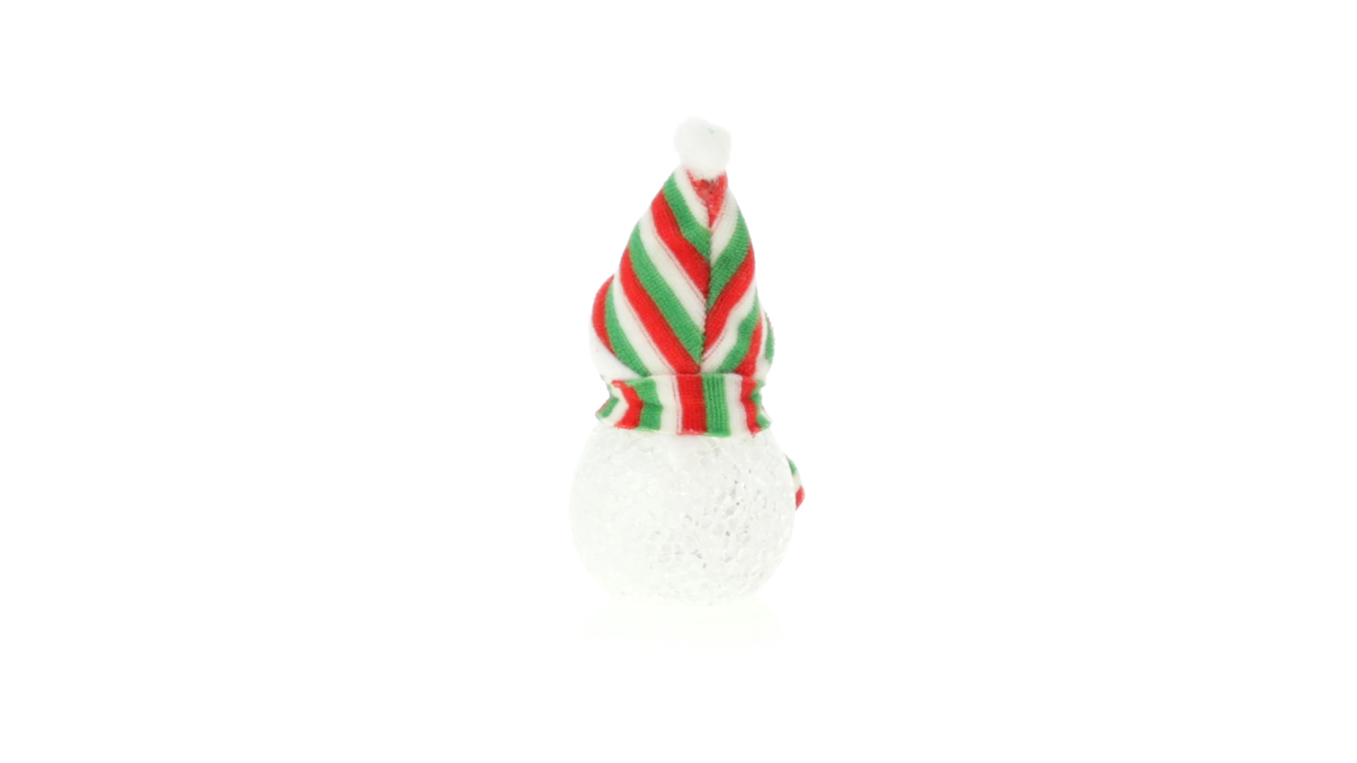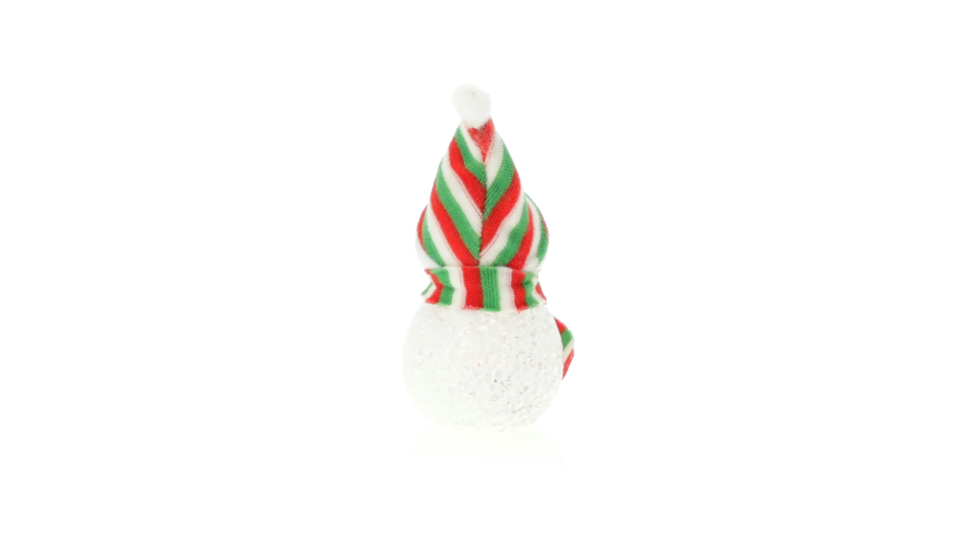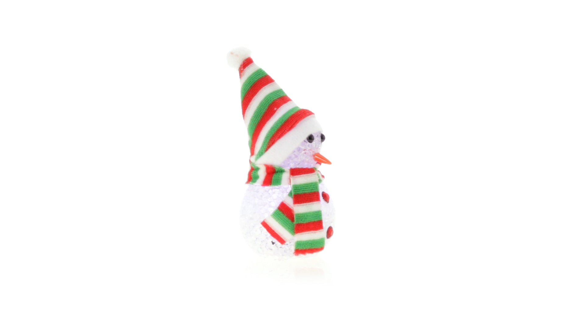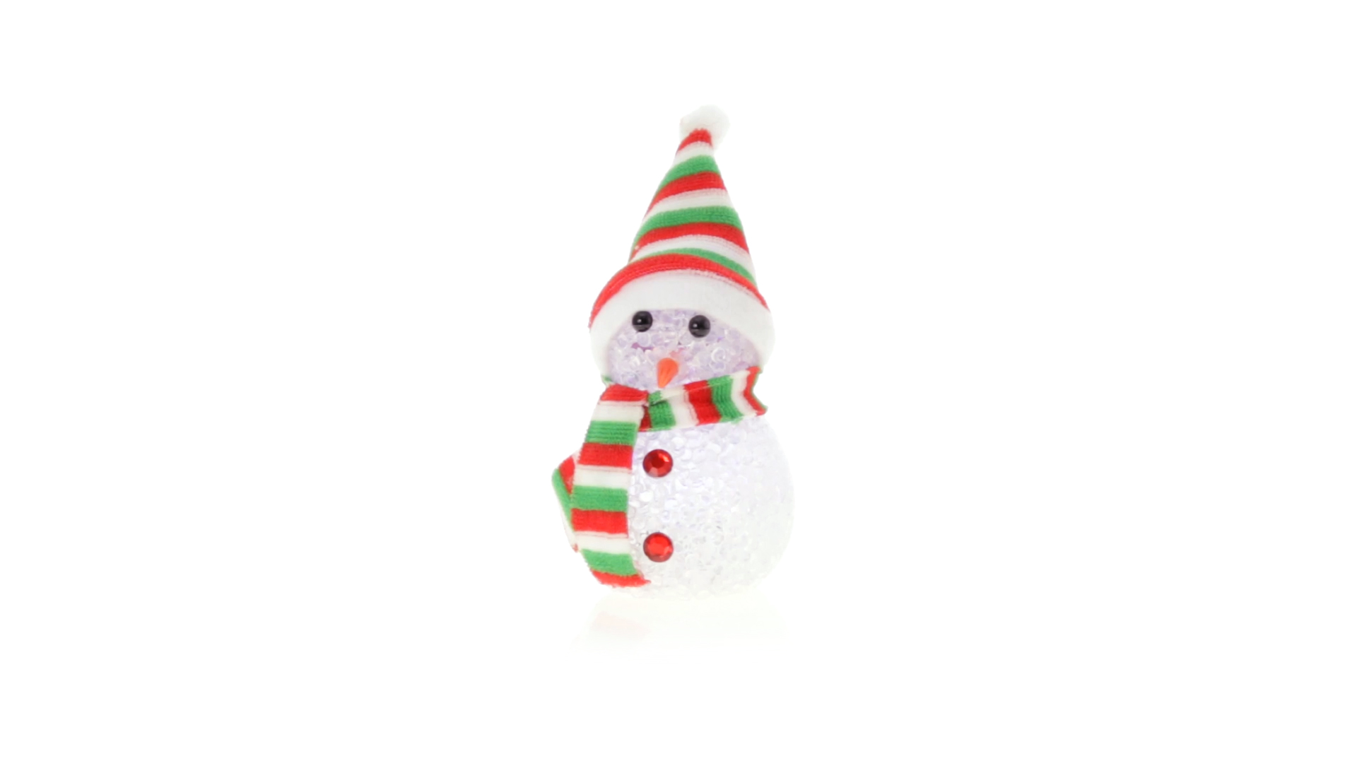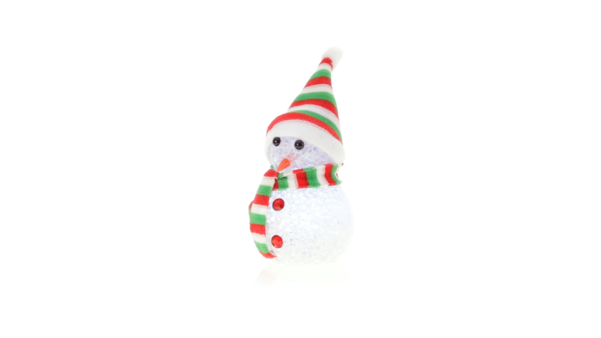 Schneemann-Weihnachtsfigur mit mehrfarbigem LED-Licht im Inneren. 3 Knopfzellen inklusive. Präsentiert in einer individuellen Designbox.