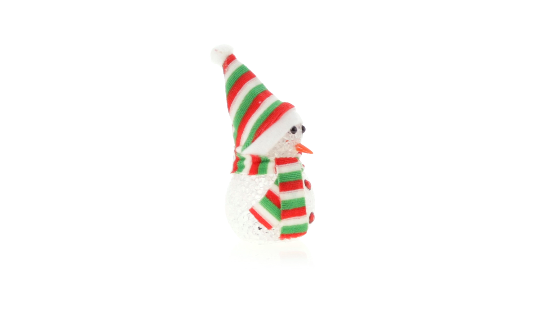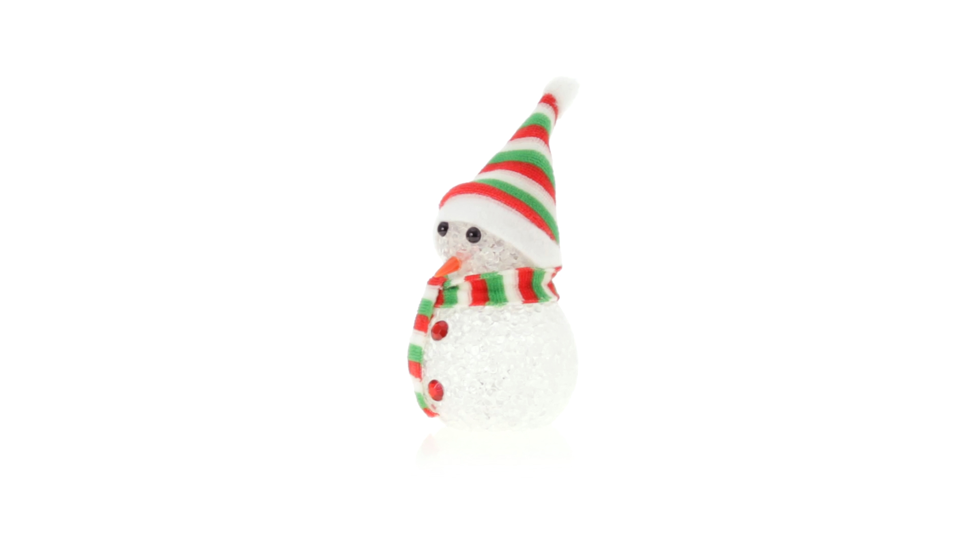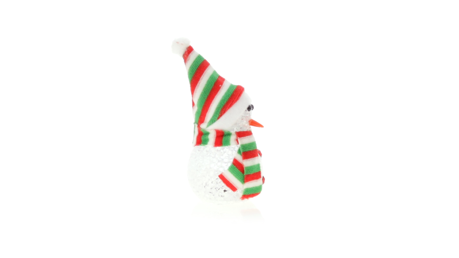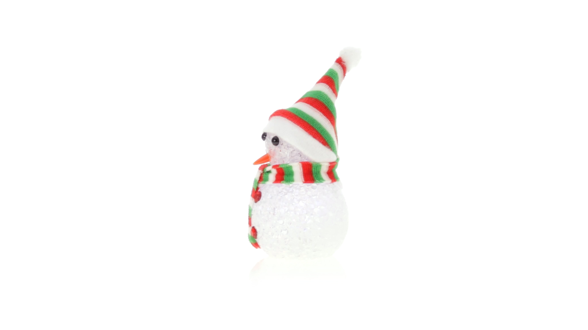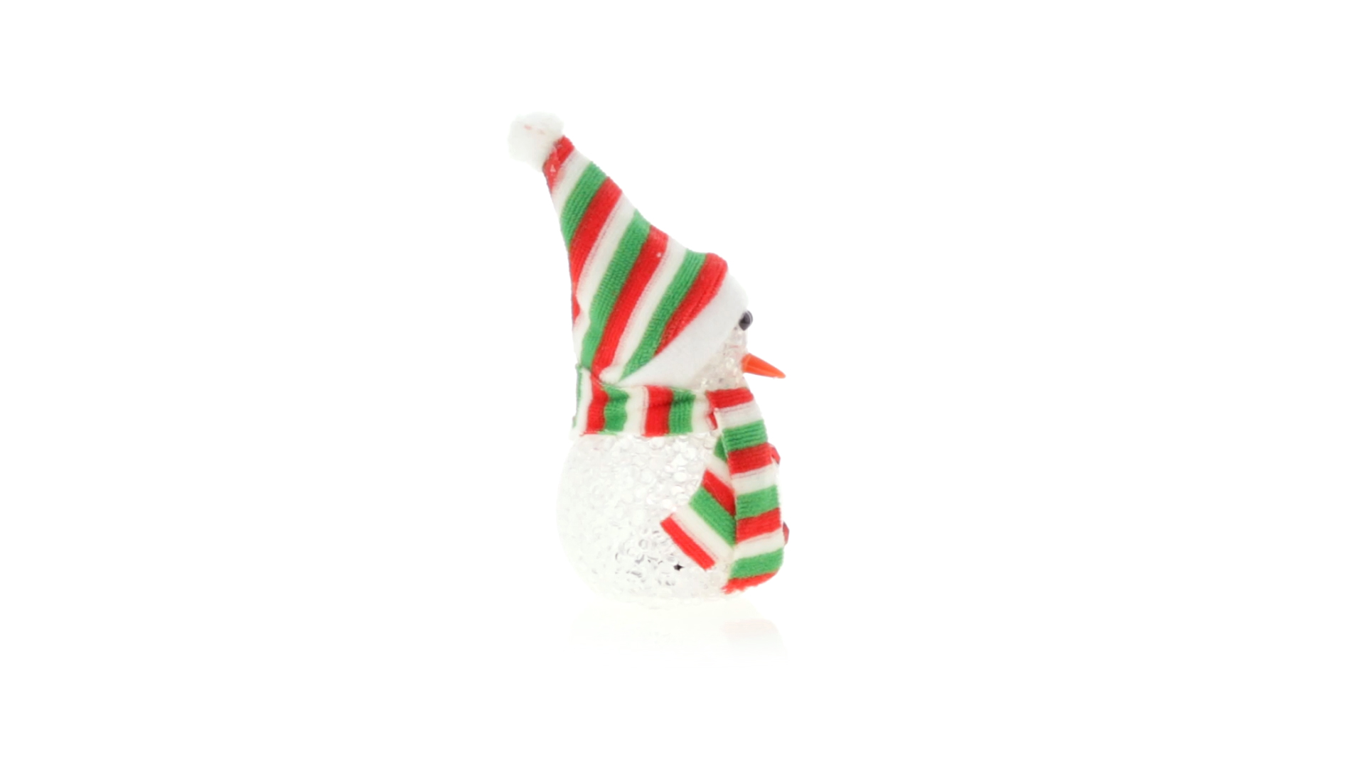Schneemann-Weihnachtsfigur mit mehrfarbigem LED-Licht im Inneren. 3 Knopfzellen inklusive. Präsentiert in einer individuellen Designbox.