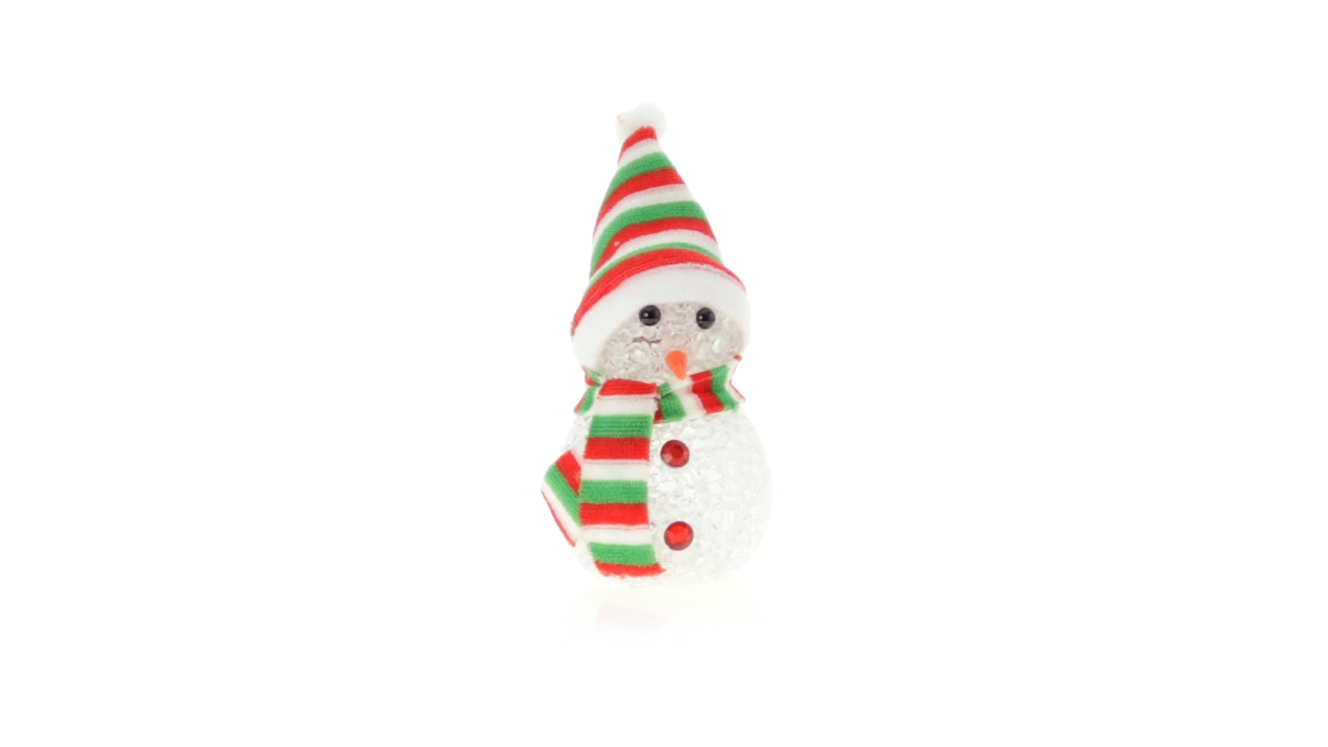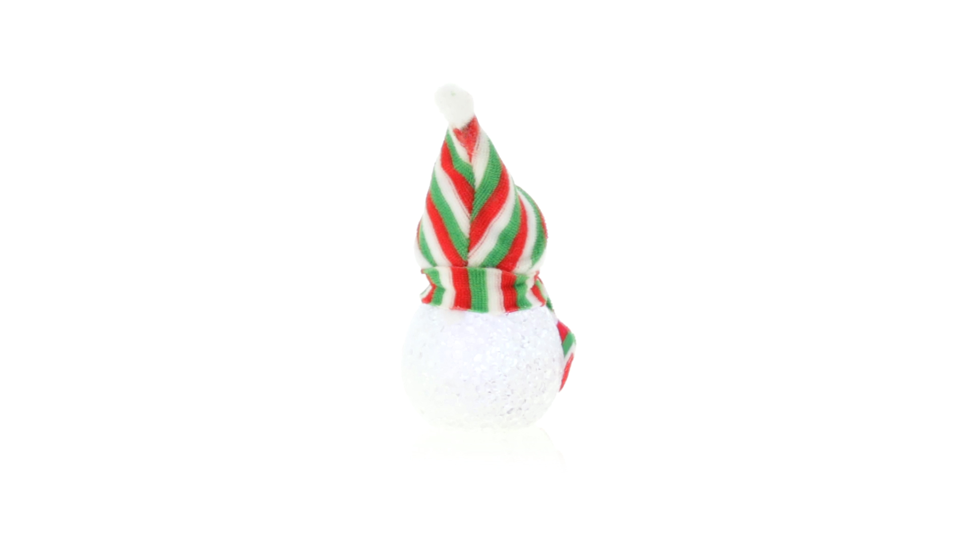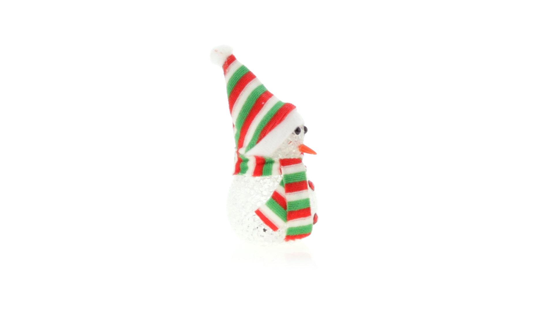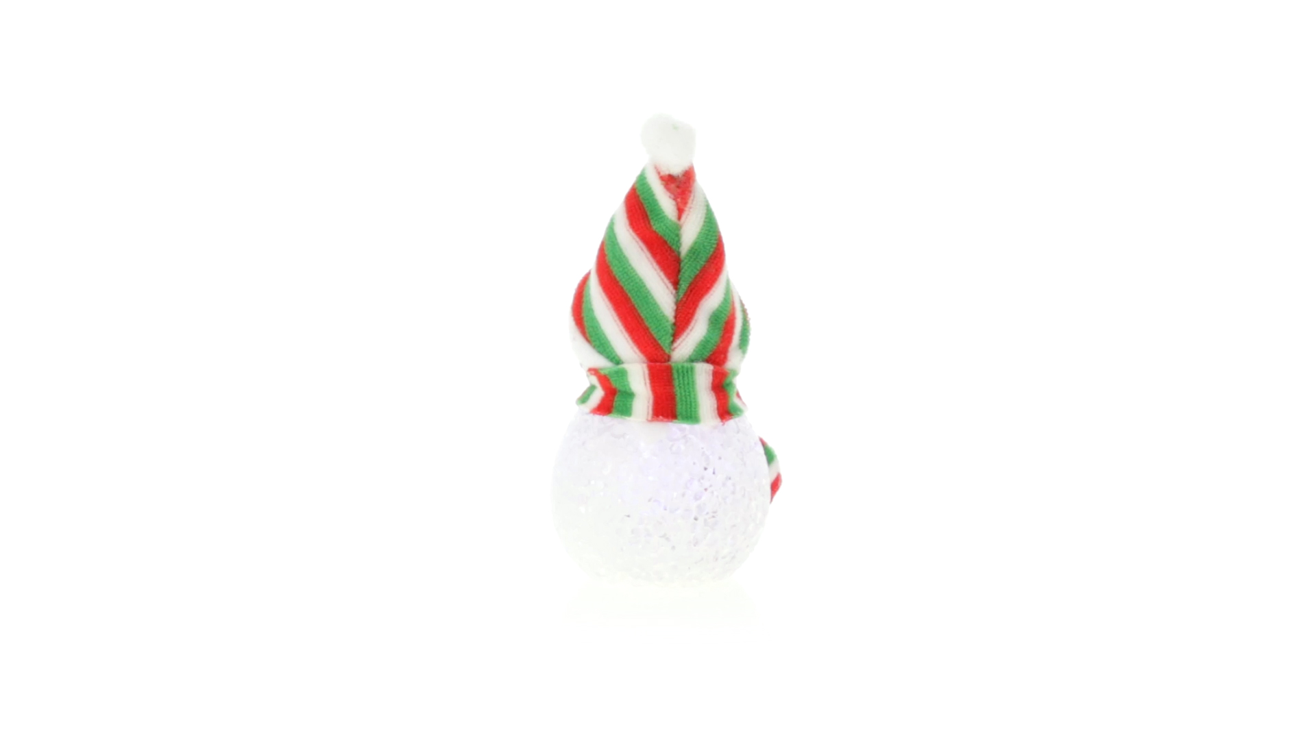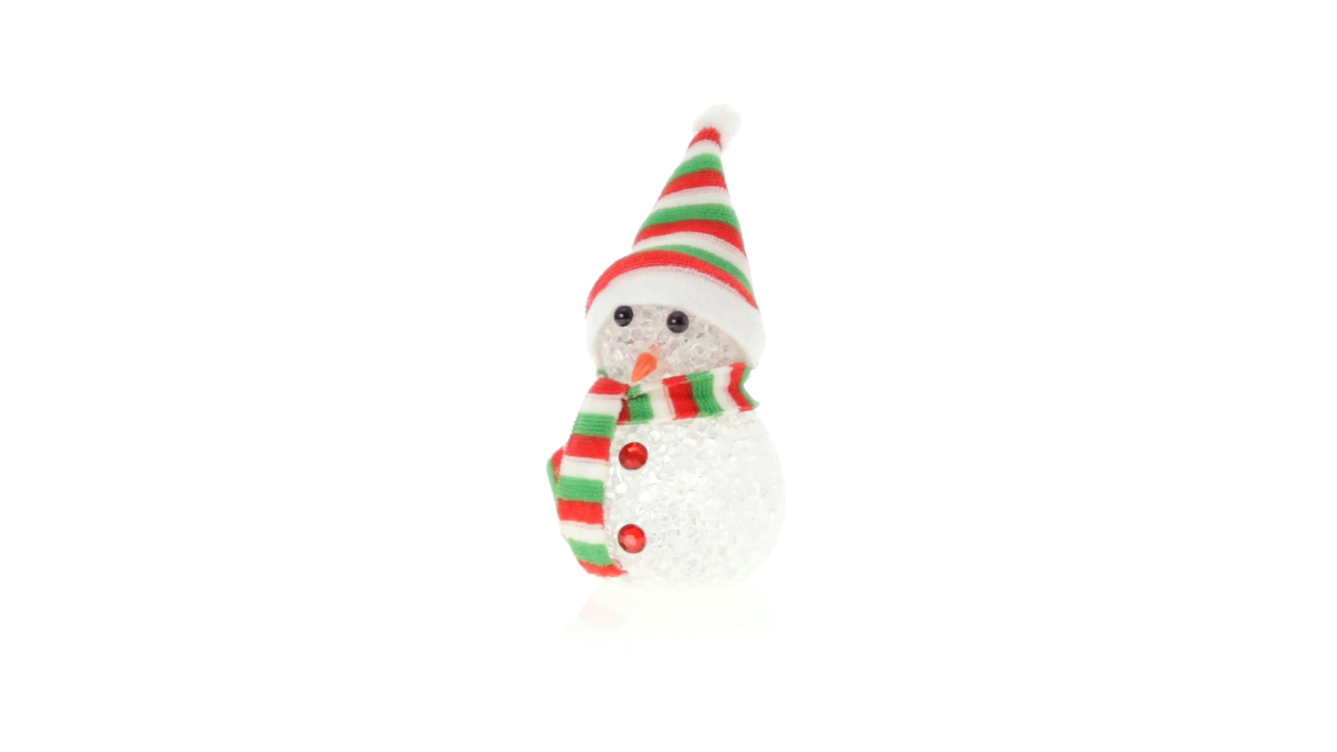 Schneemann-Weihnachtsfigur mit mehrfarbigem LED-Licht im Inneren. 3 Knopfzellen inklusive. Präsentiert in einer individuellen Designbox.