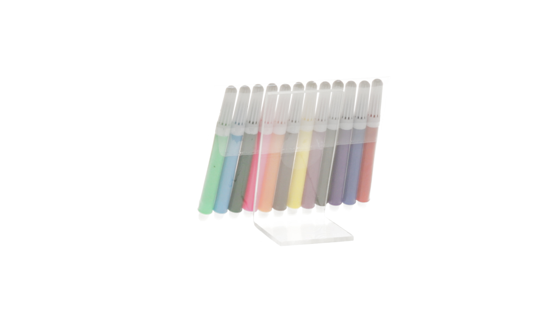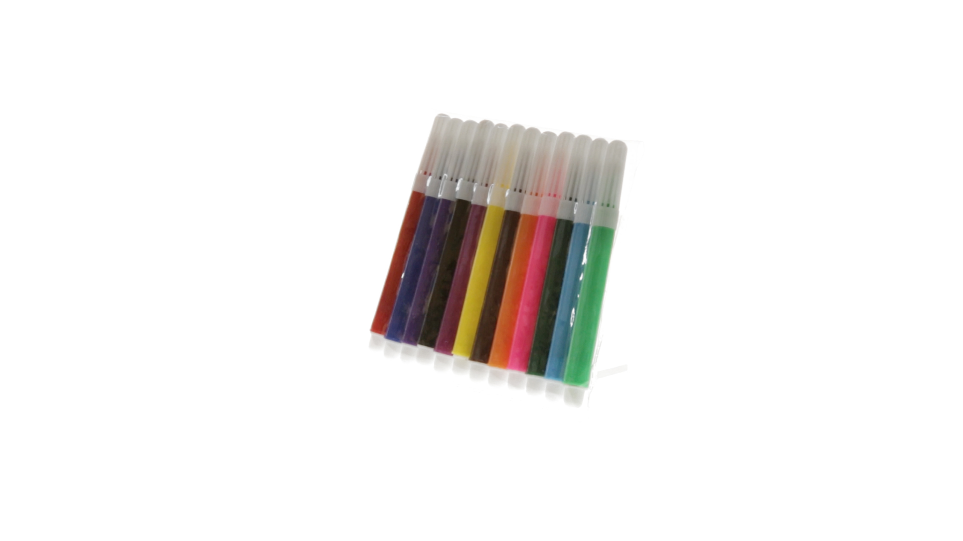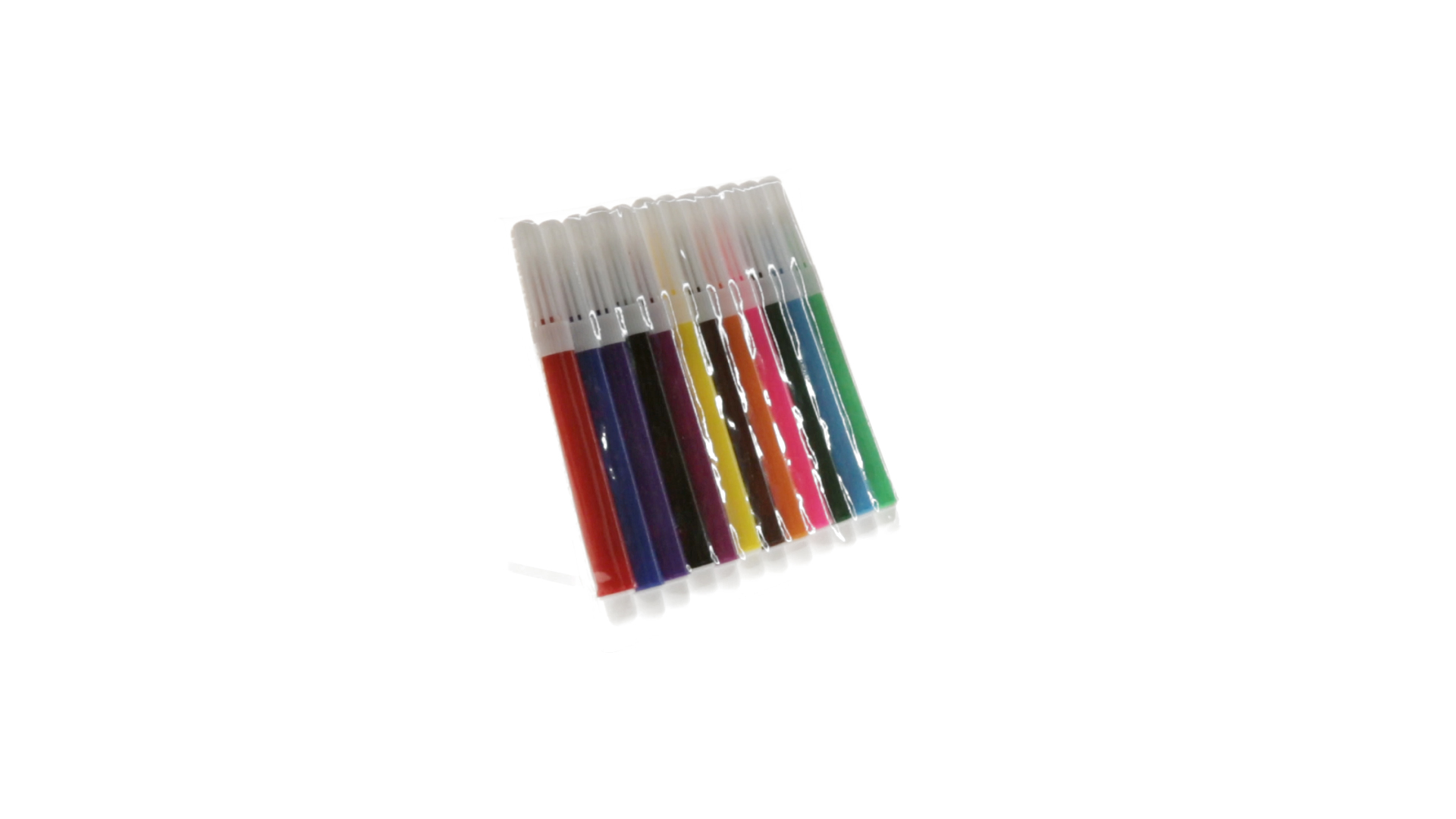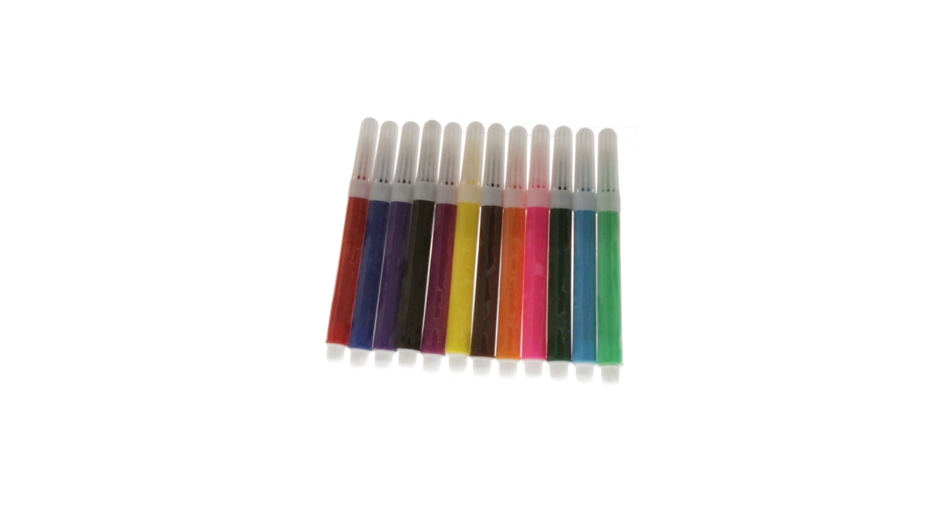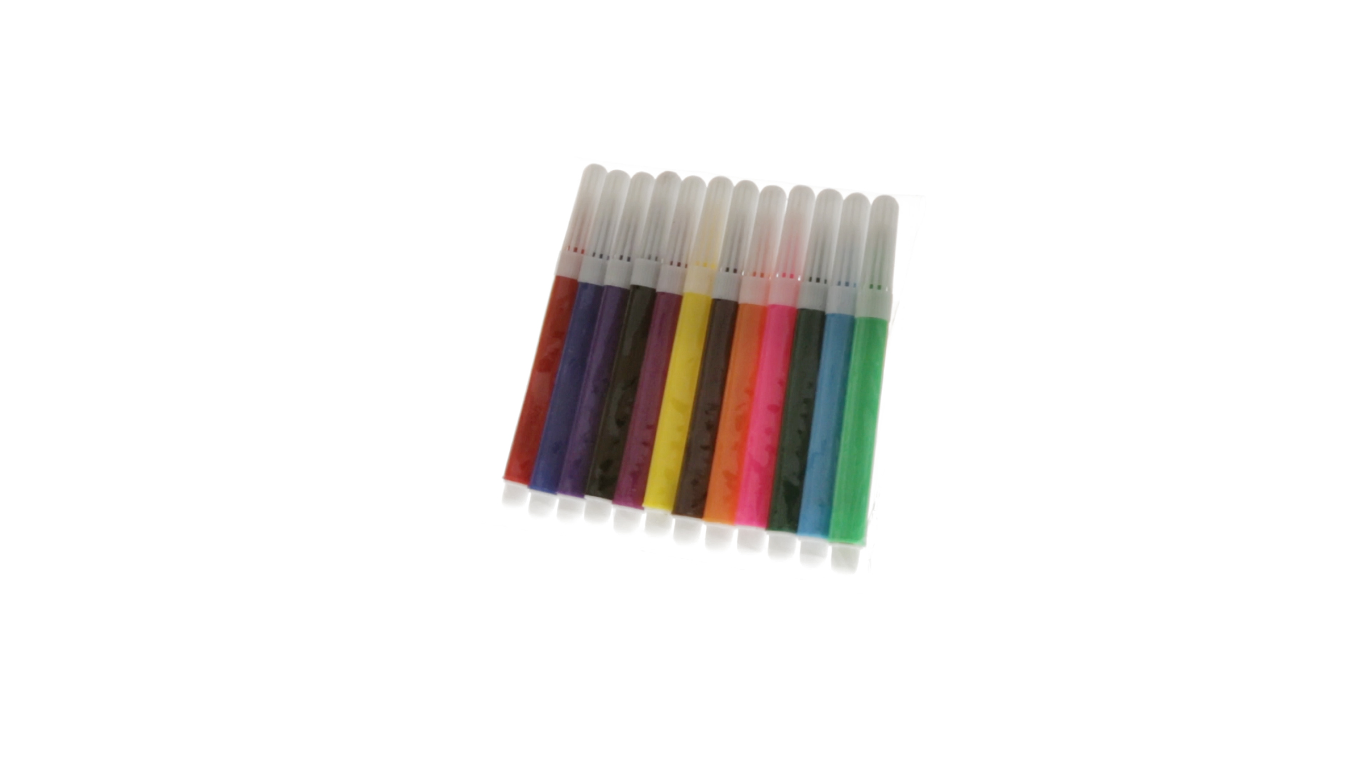 Set aus 12 Filzstiften in vielen verschiedenen Farben. Präsentiert in einer transparenten PVC-Schachtel.