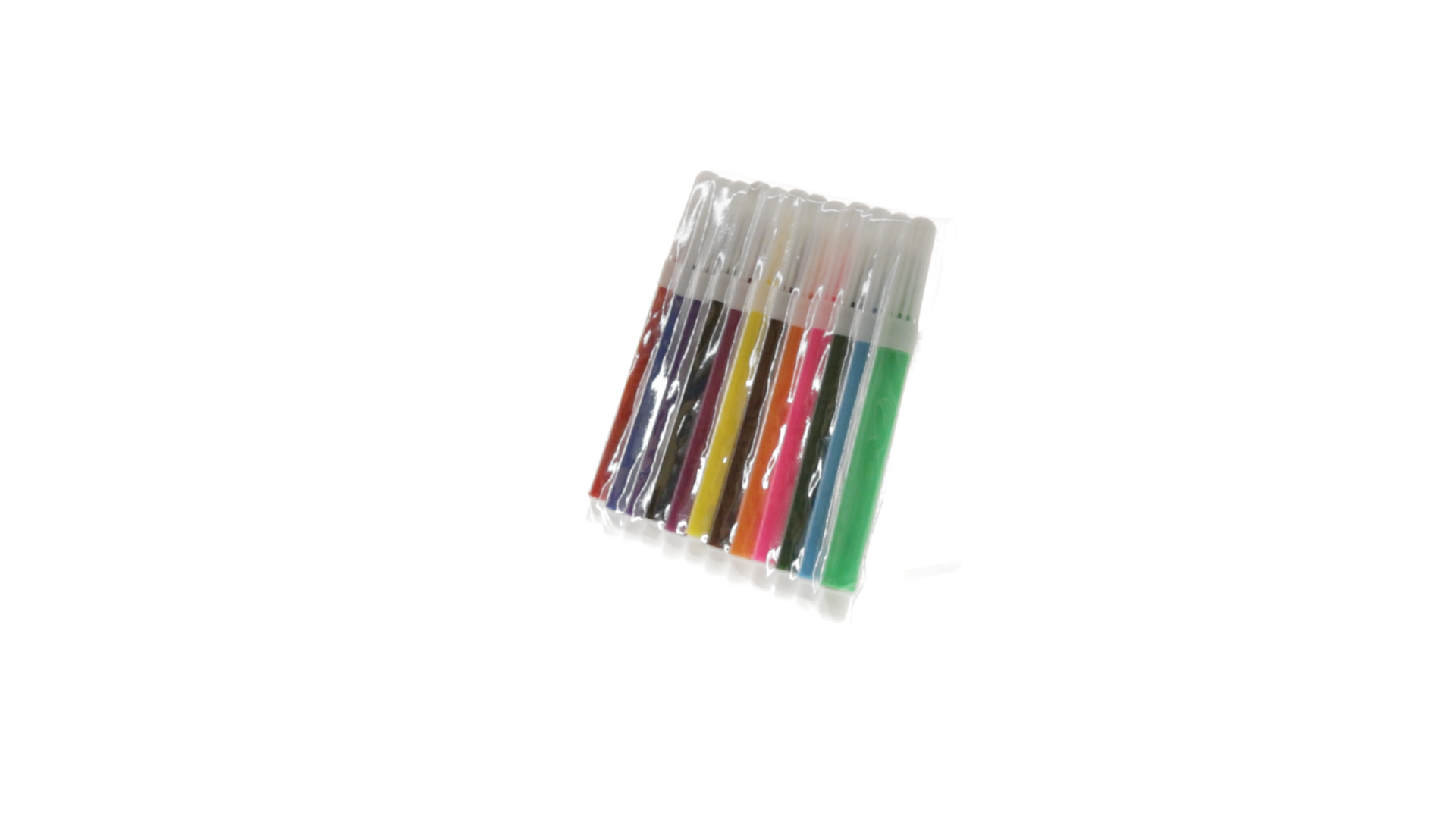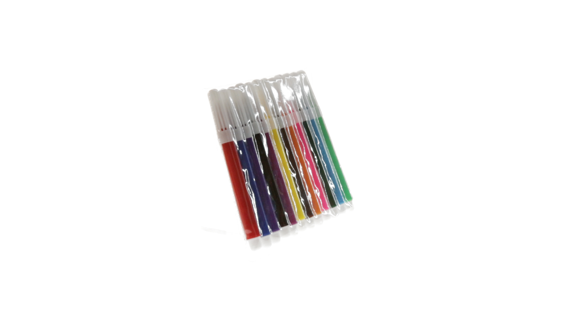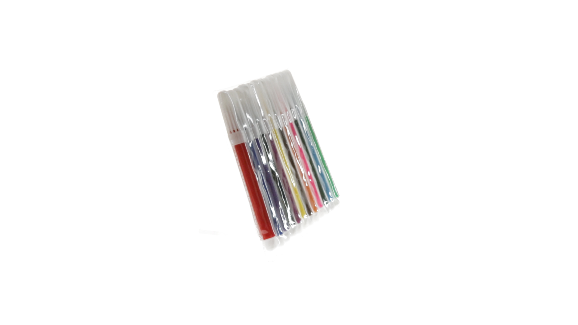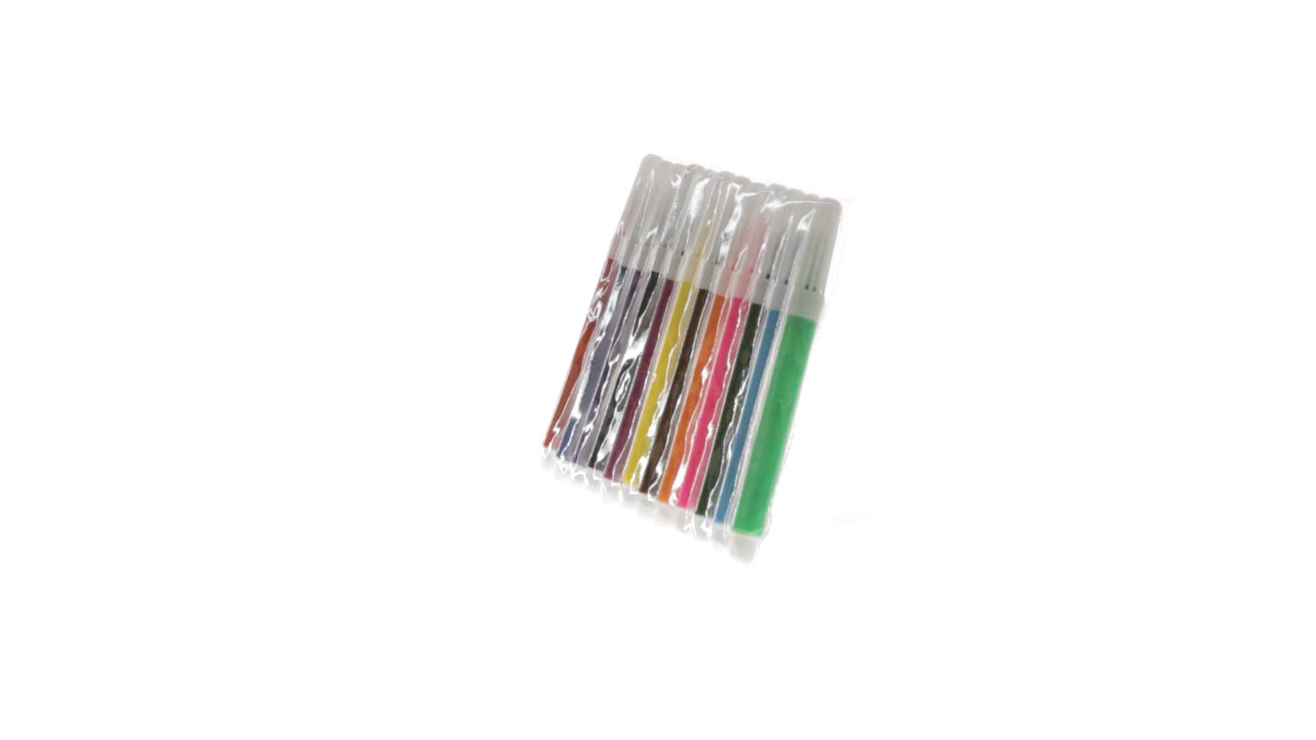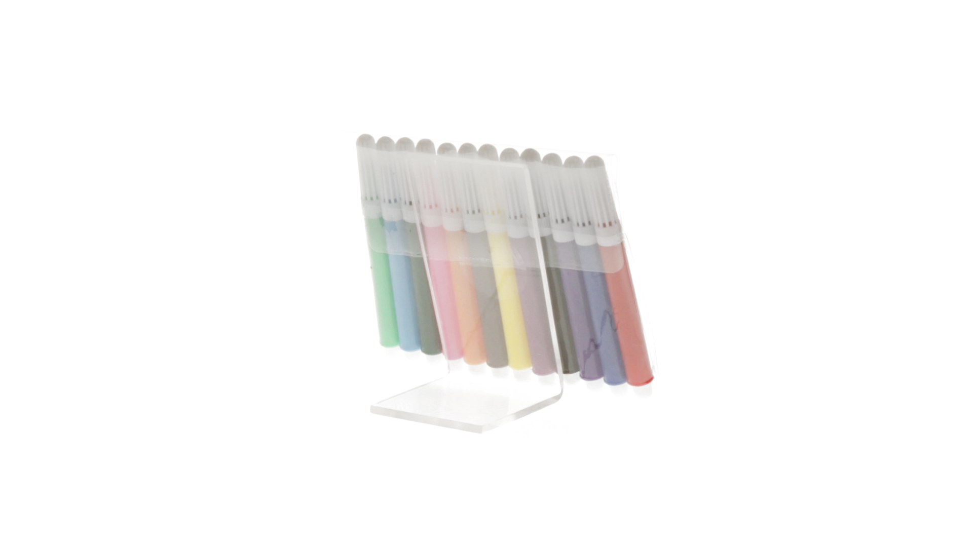Set aus 12 Filzstiften in vielen verschiedenen Farben. Präsentiert in einer transparenten PVC-Schachtel.