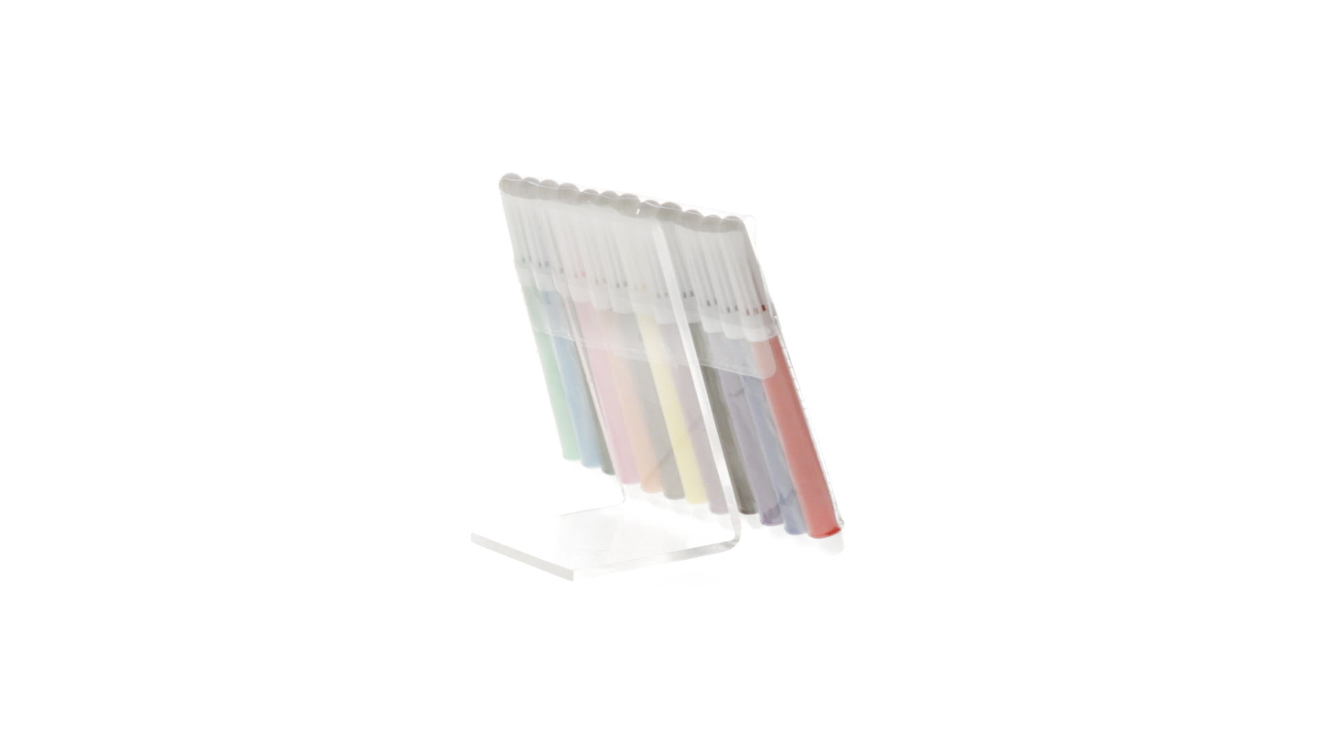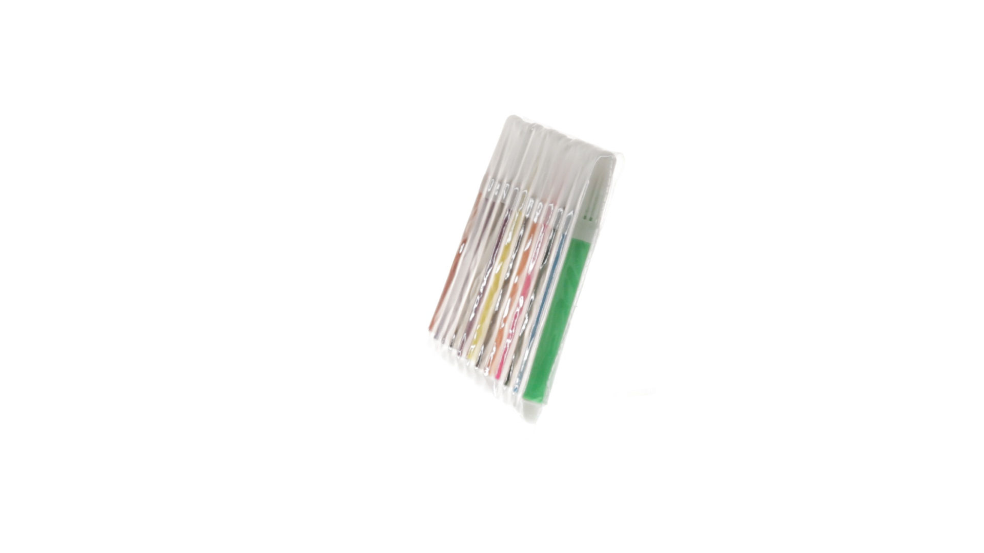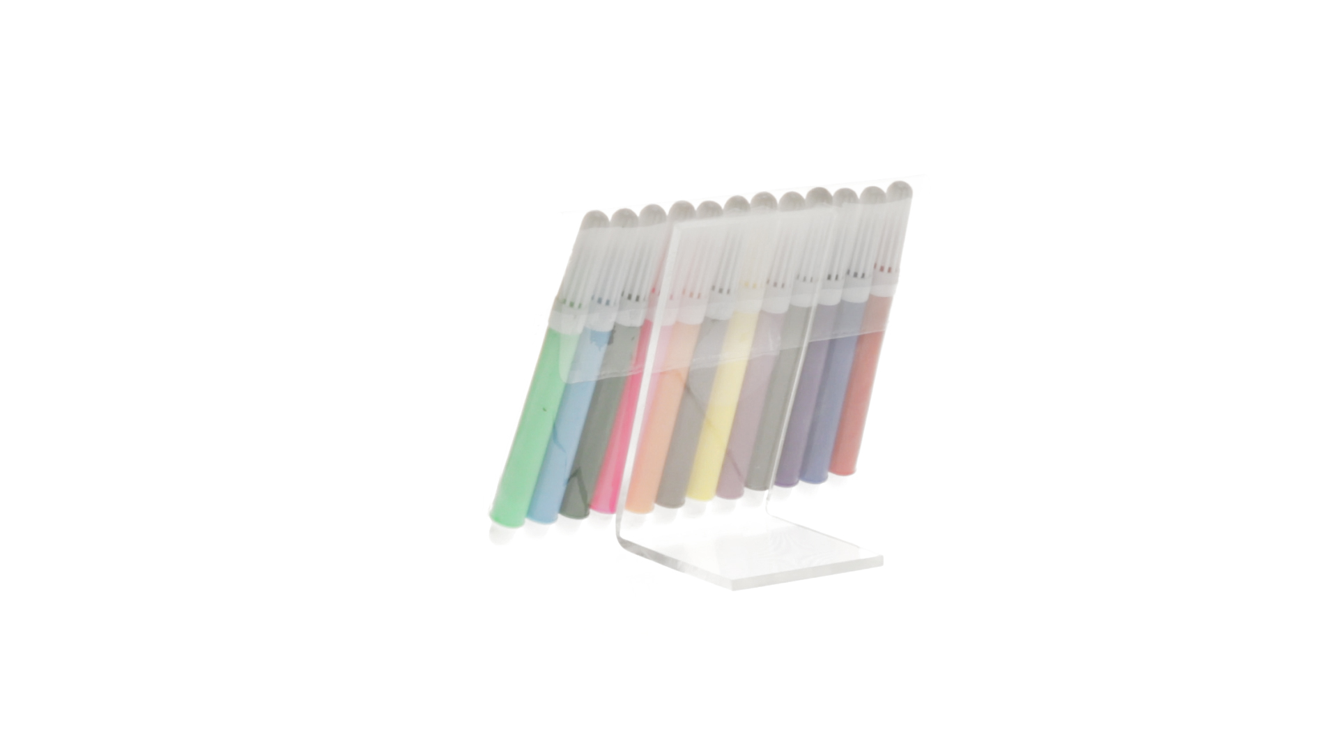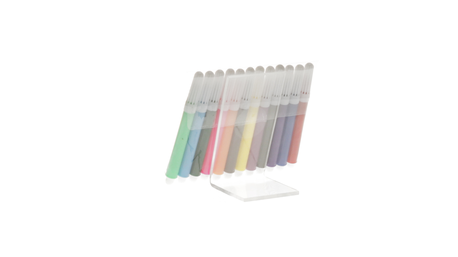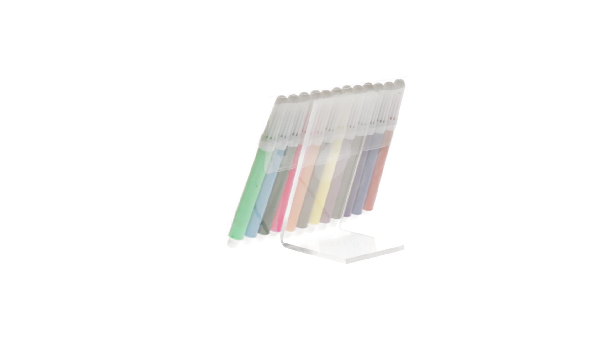 Set aus 12 Filzstiften in vielen verschiedenen Farben. Präsentiert in einer transparenten PVC-Schachtel.