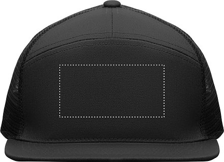 Kappe mit flachem Schirm. 7 Panels. Baumwoll-Twill 235 g/m² mit Polyester-Mesh-Rückseite und Kunststoffverschluss.