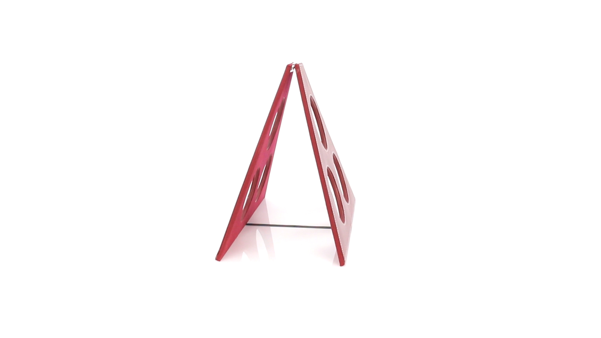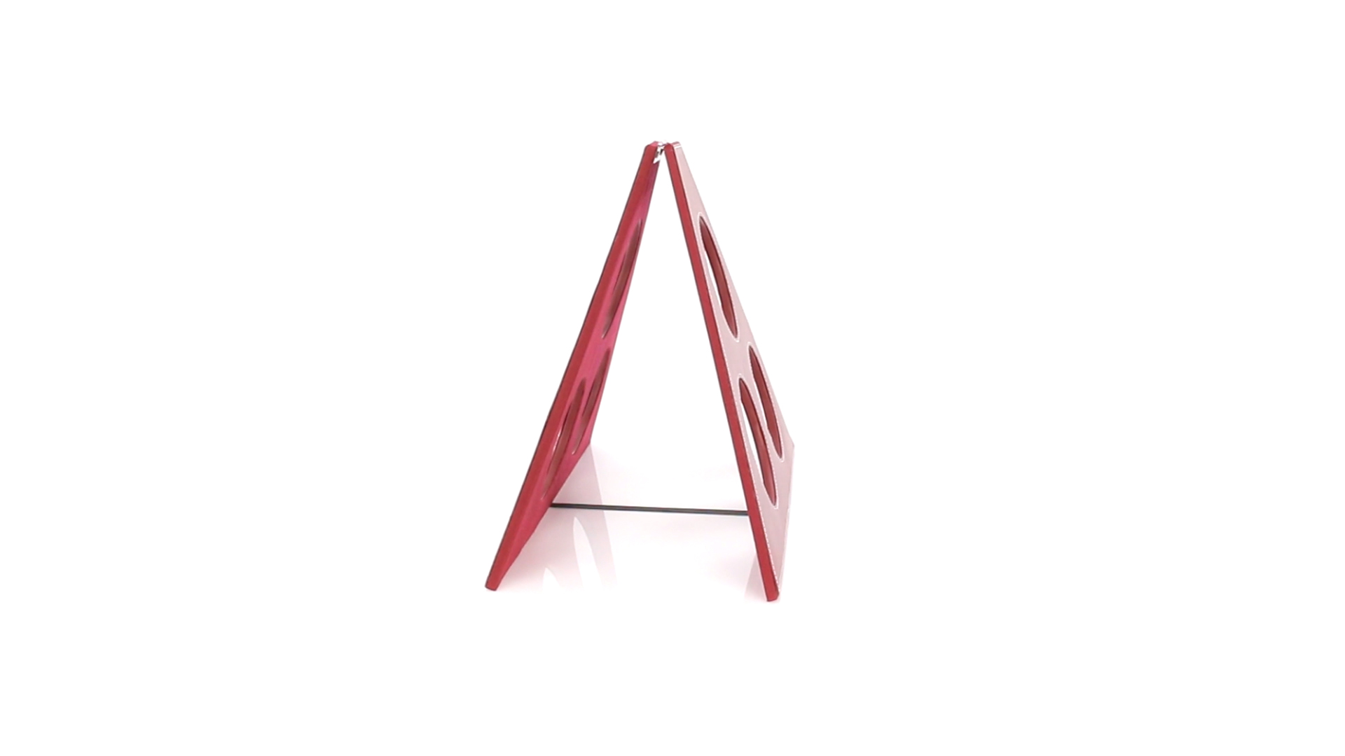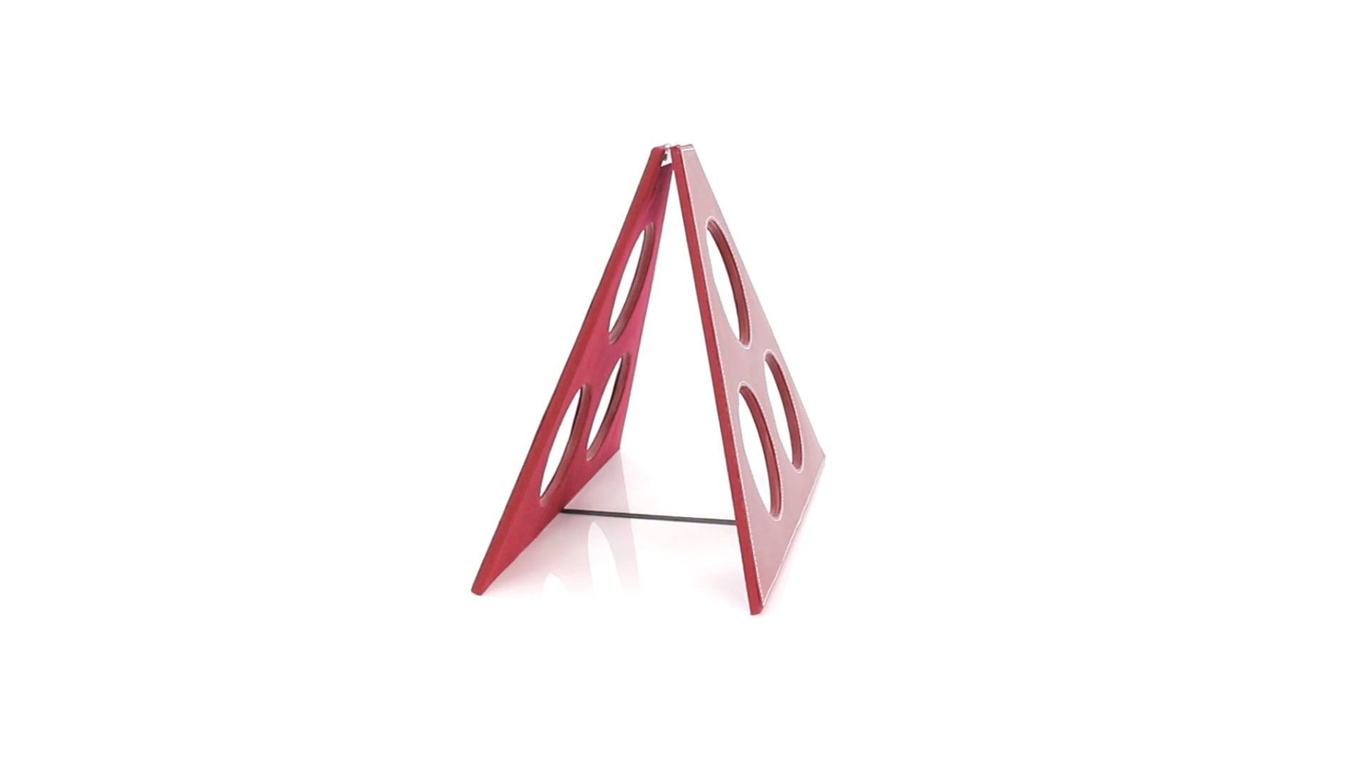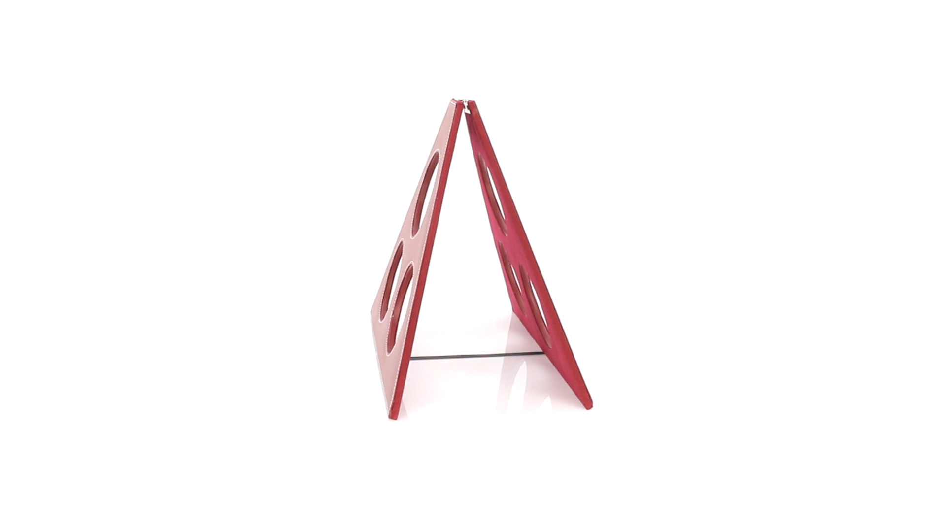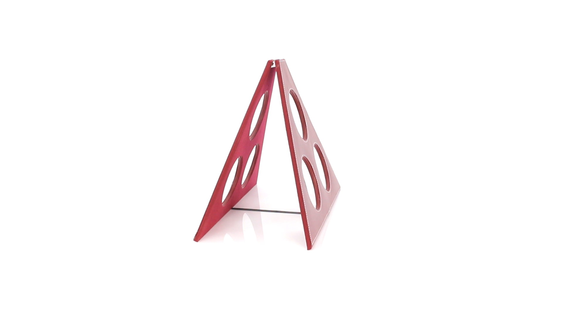 Klappbarer Flaschenständer für 3 Flaschen aus elegantem Kunstleder in schlichten Rosé- und Rottönen. Mit Verstärkungsnähten in Weiss.