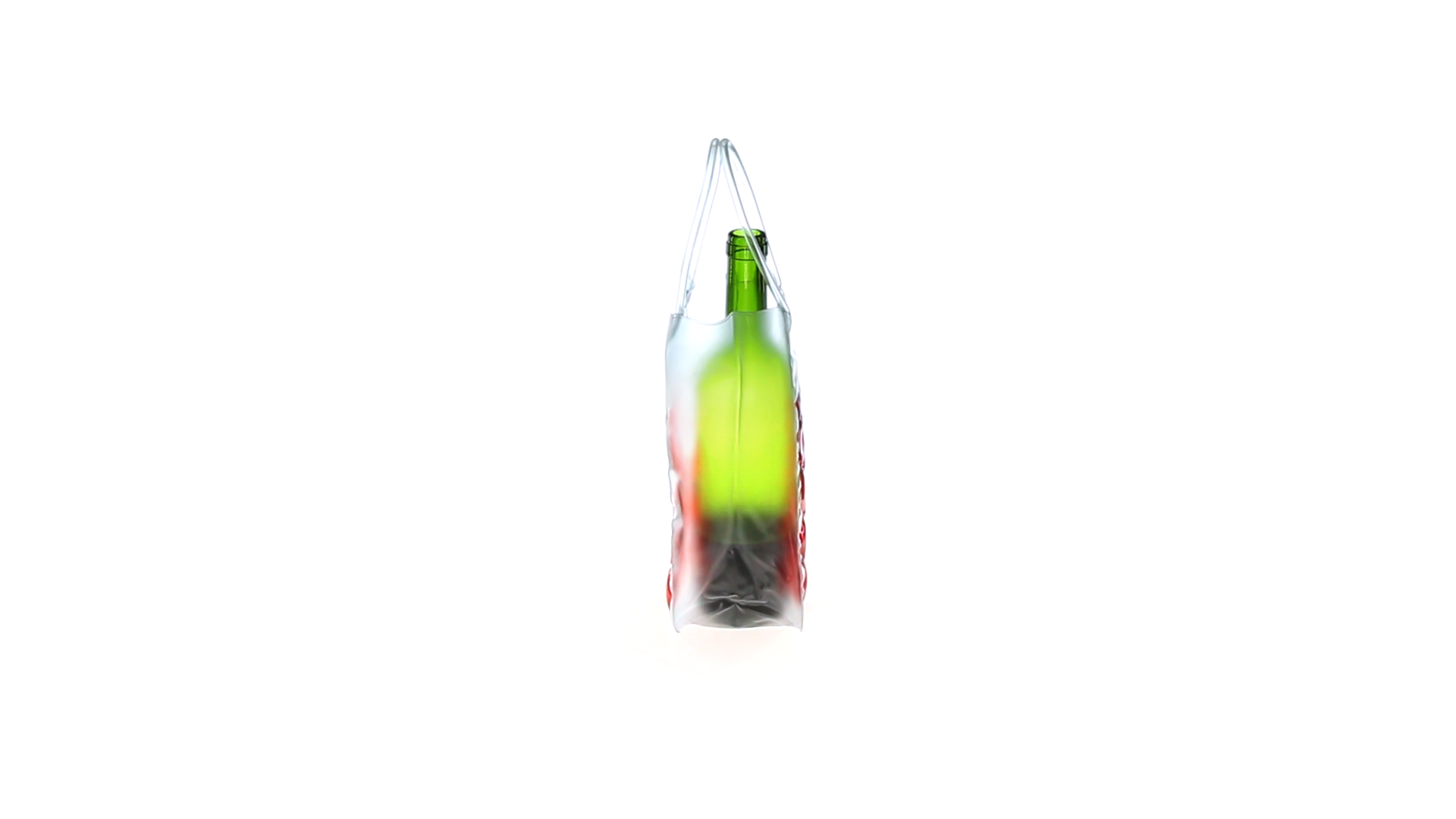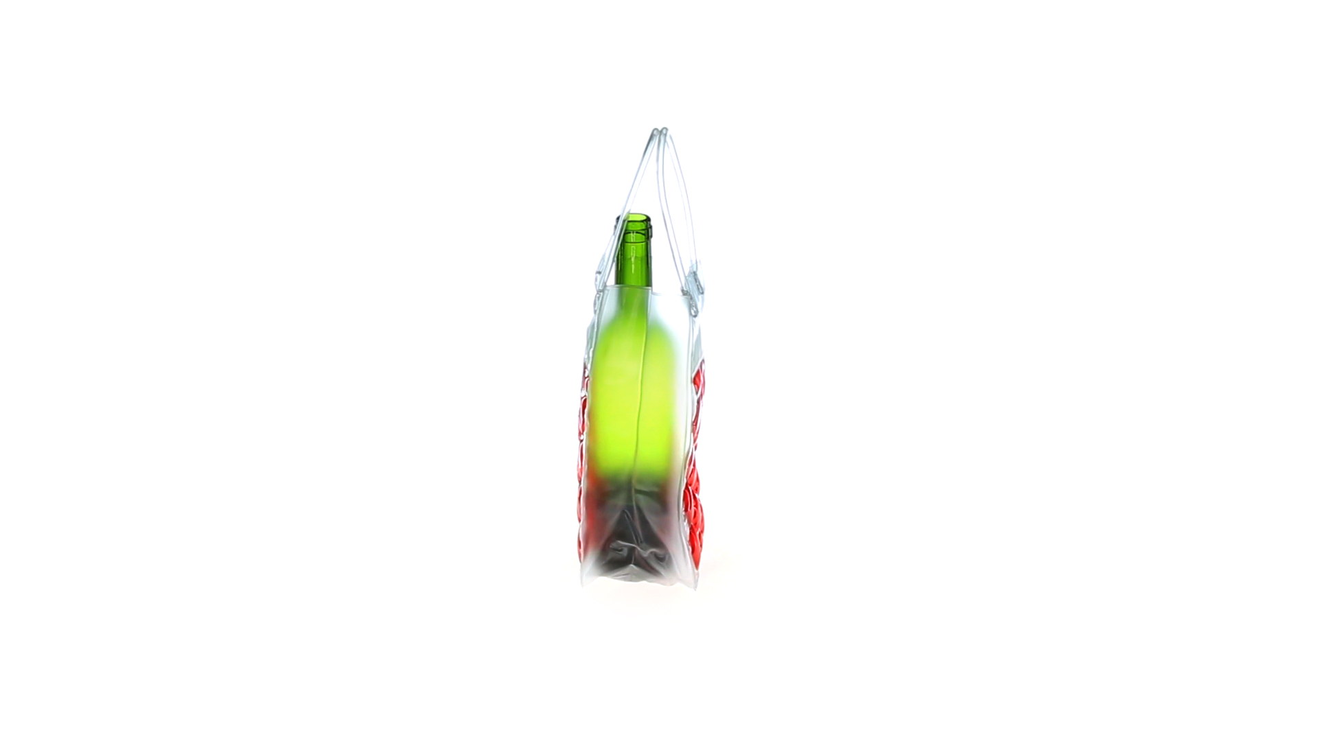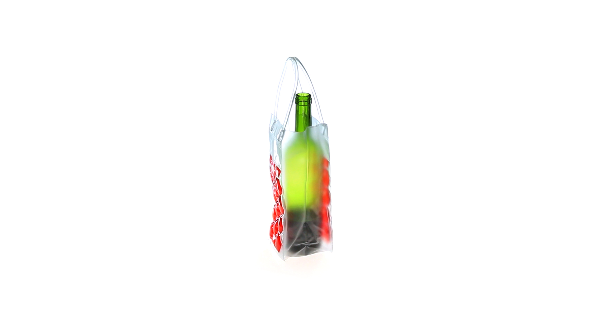 Originelle PVC-Kühltasche in verschiedenen lebendigen Farben mit robusten, verstärkten Griffen und Kammern mit Kühlflüssigkeit.