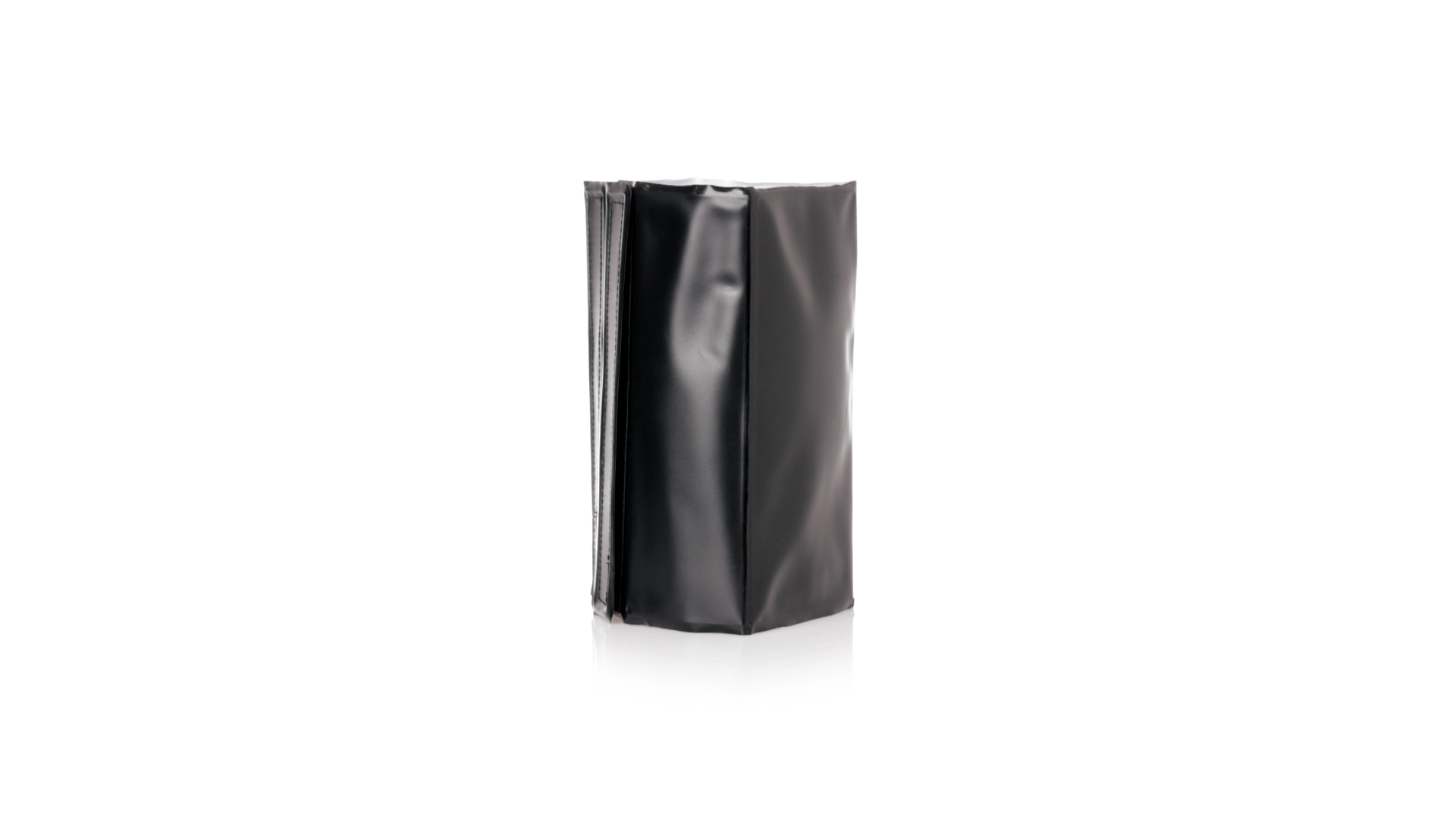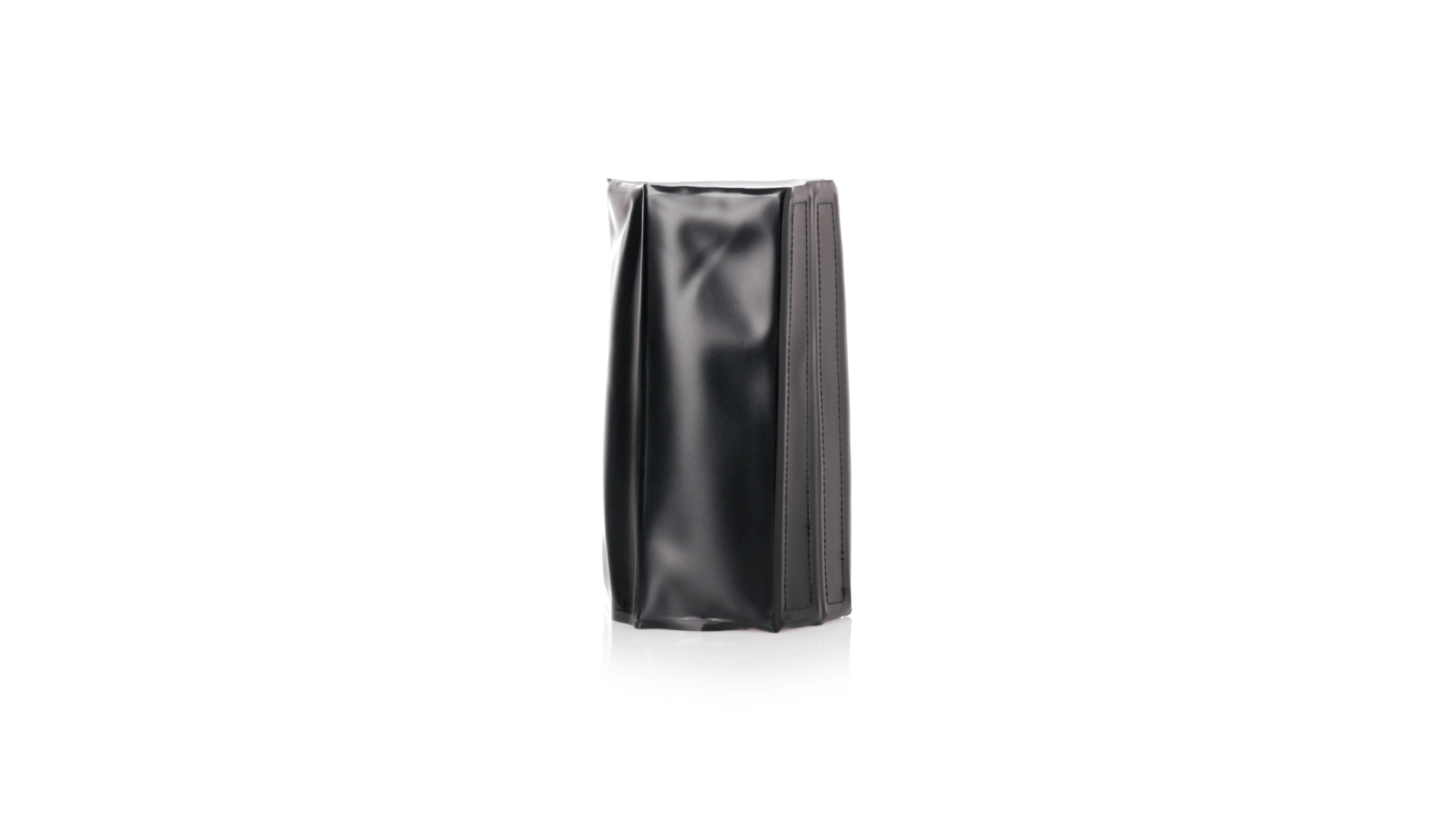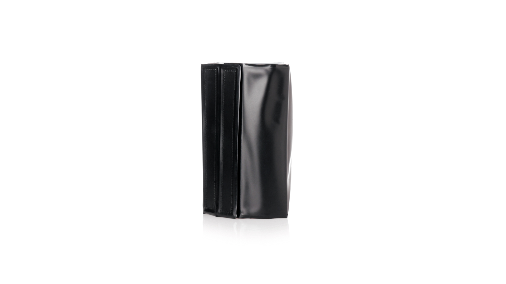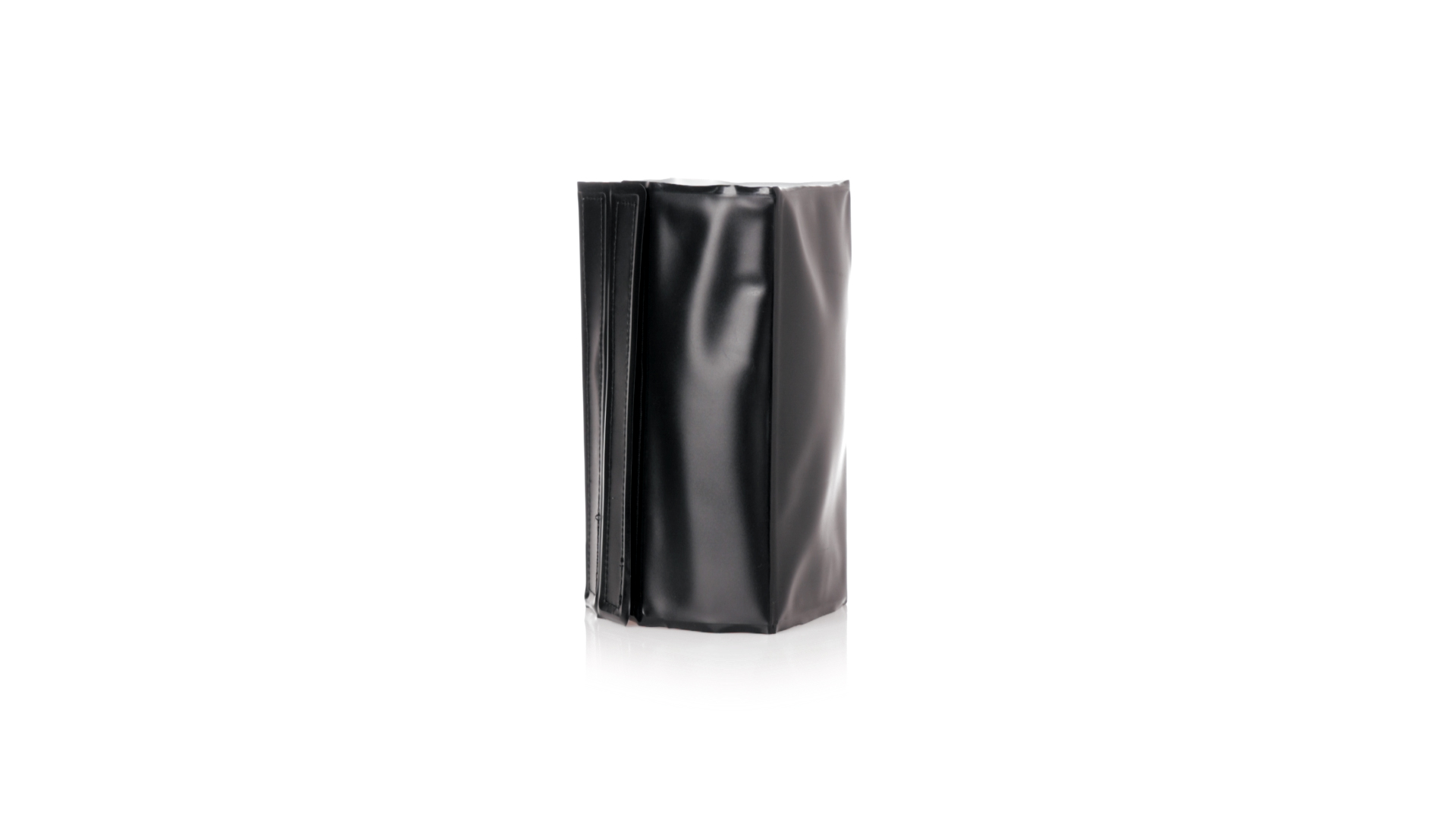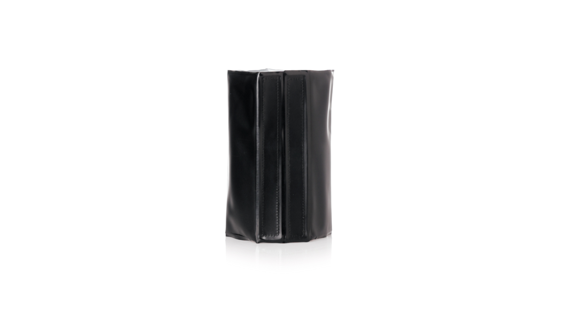 Kühler mit verstellbarem Klettverschluss, innen mit flüssigem Kühlmittel und aus mattschwarzem PVC.