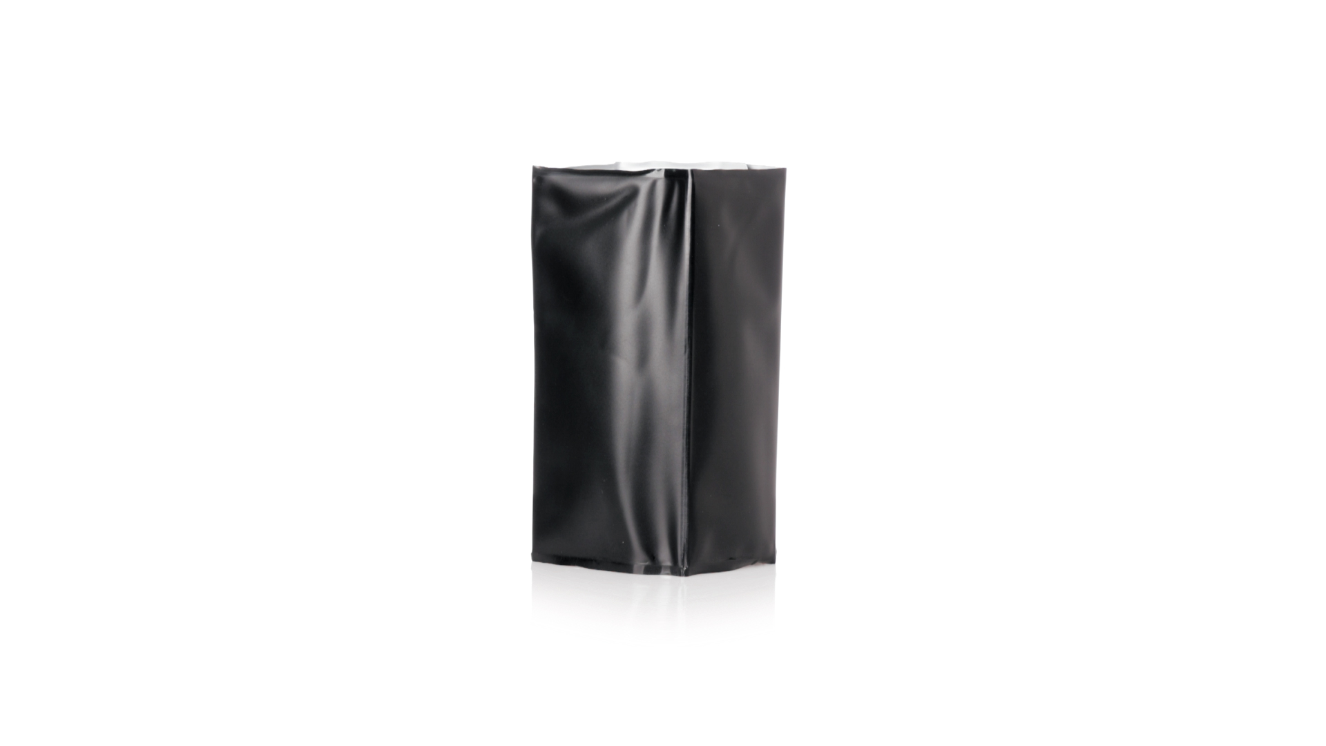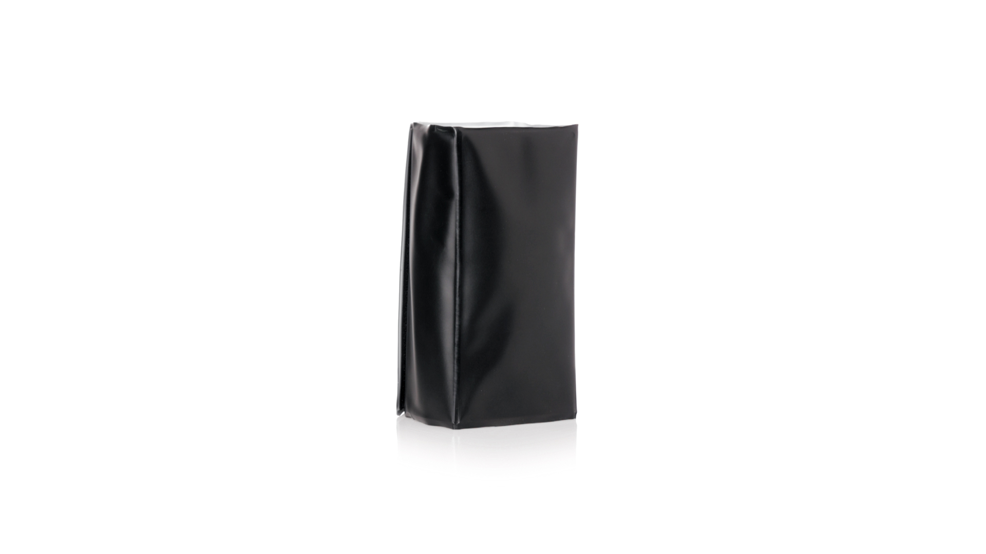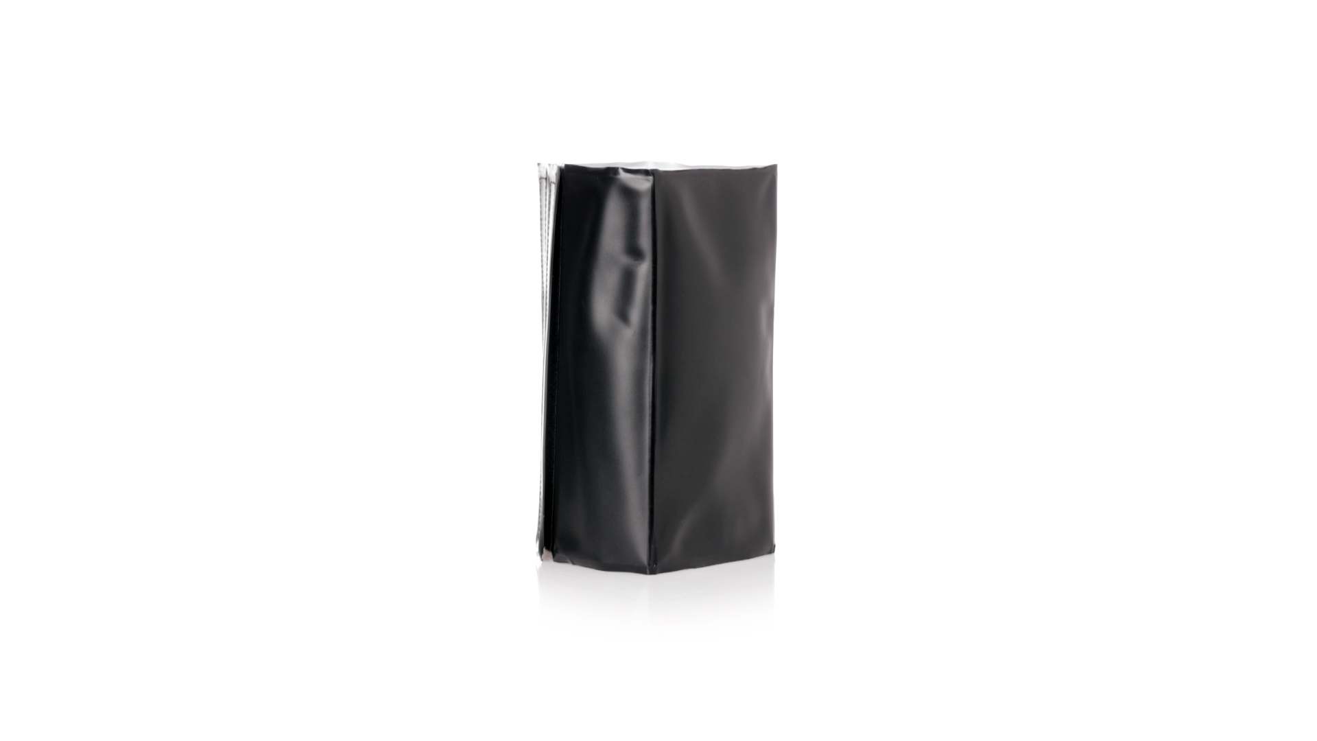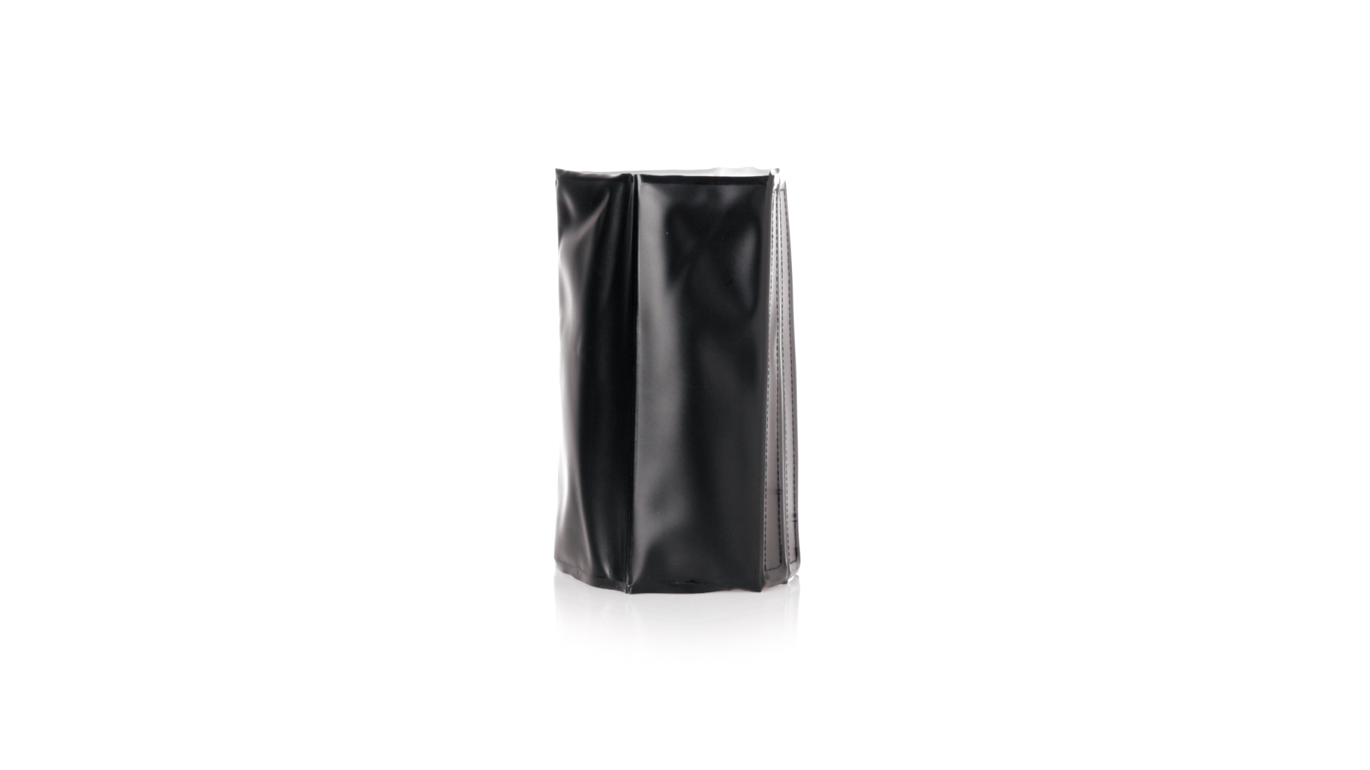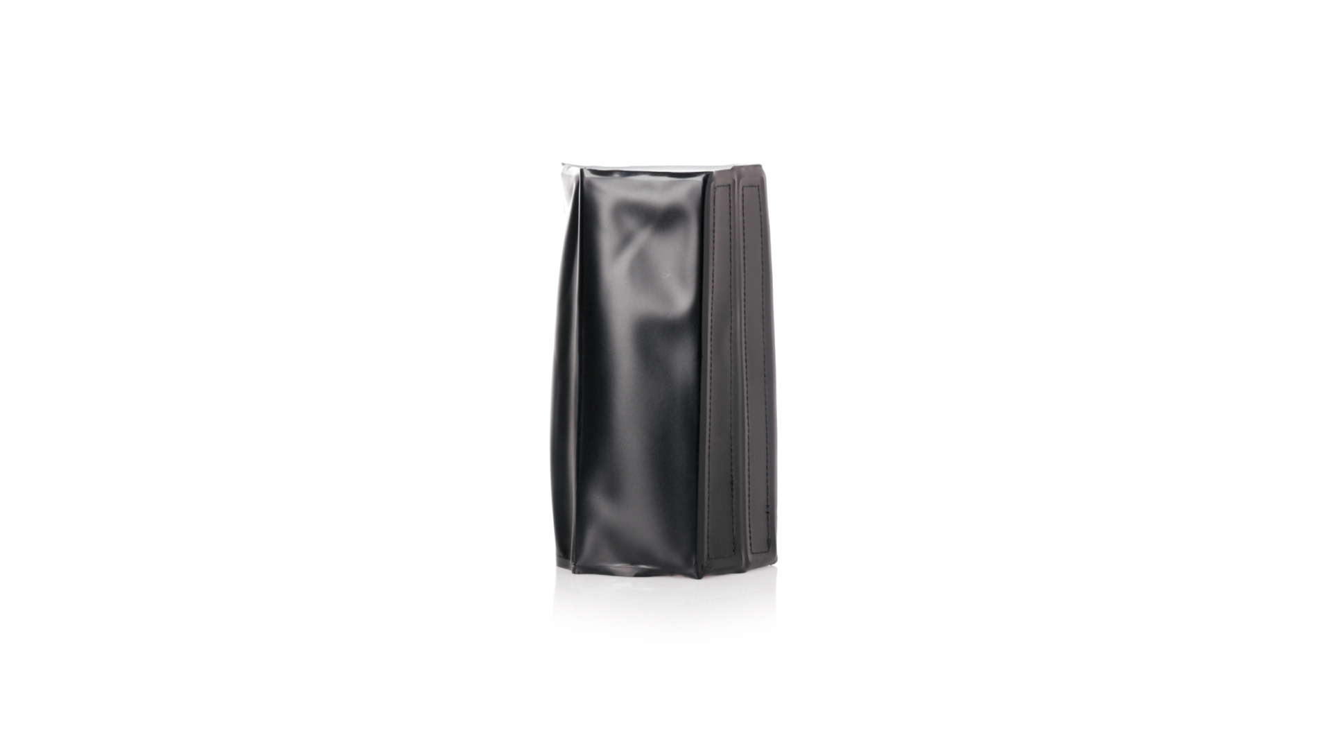 Kühler mit verstellbarem Klettverschluss, innen mit flüssigem Kühlmittel und aus mattschwarzem PVC.