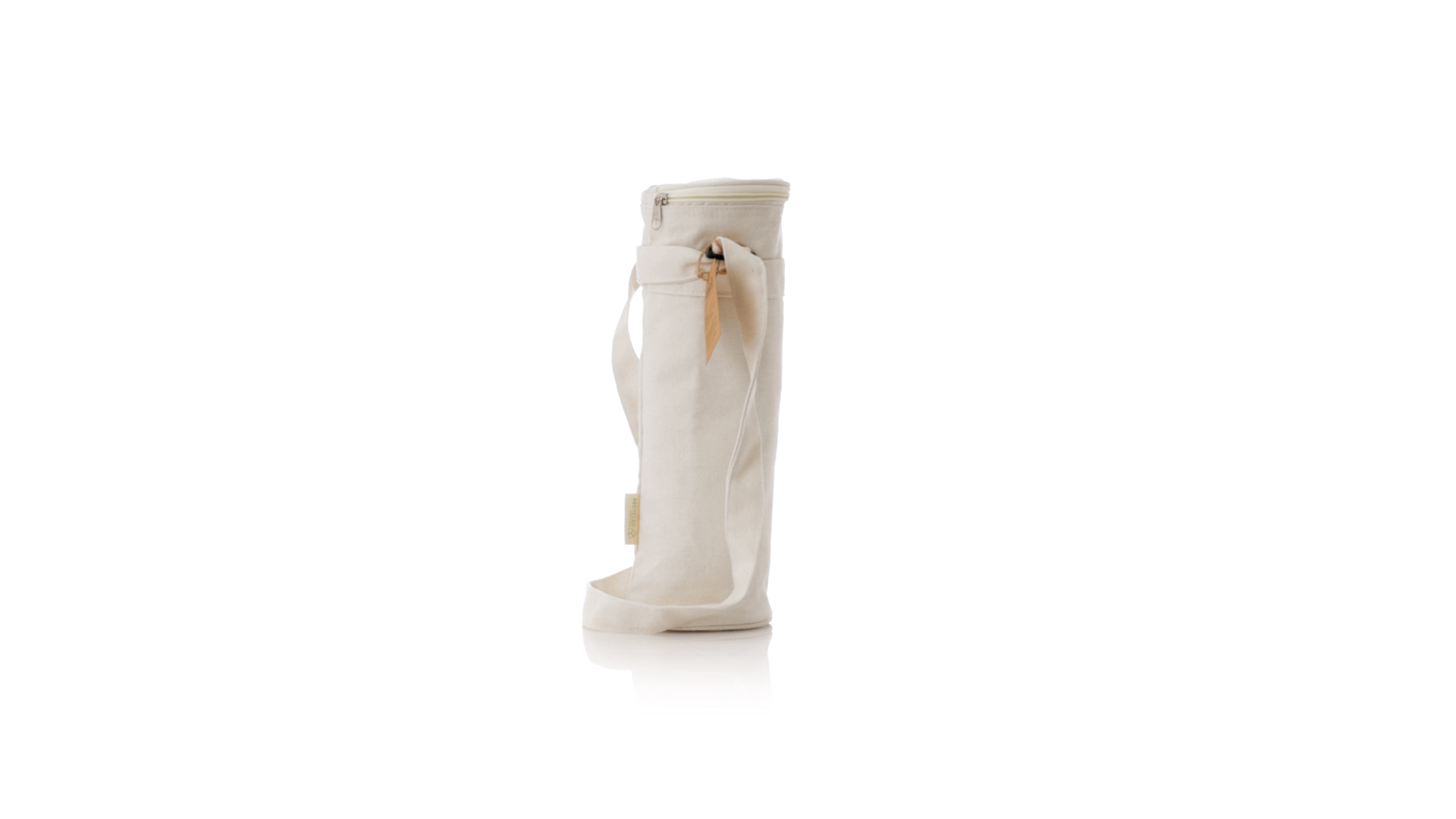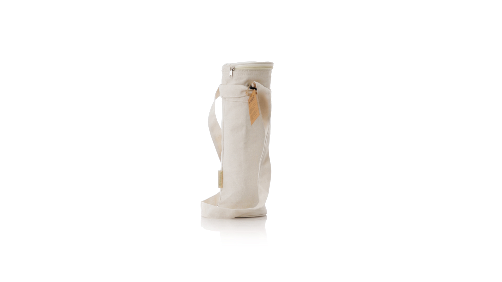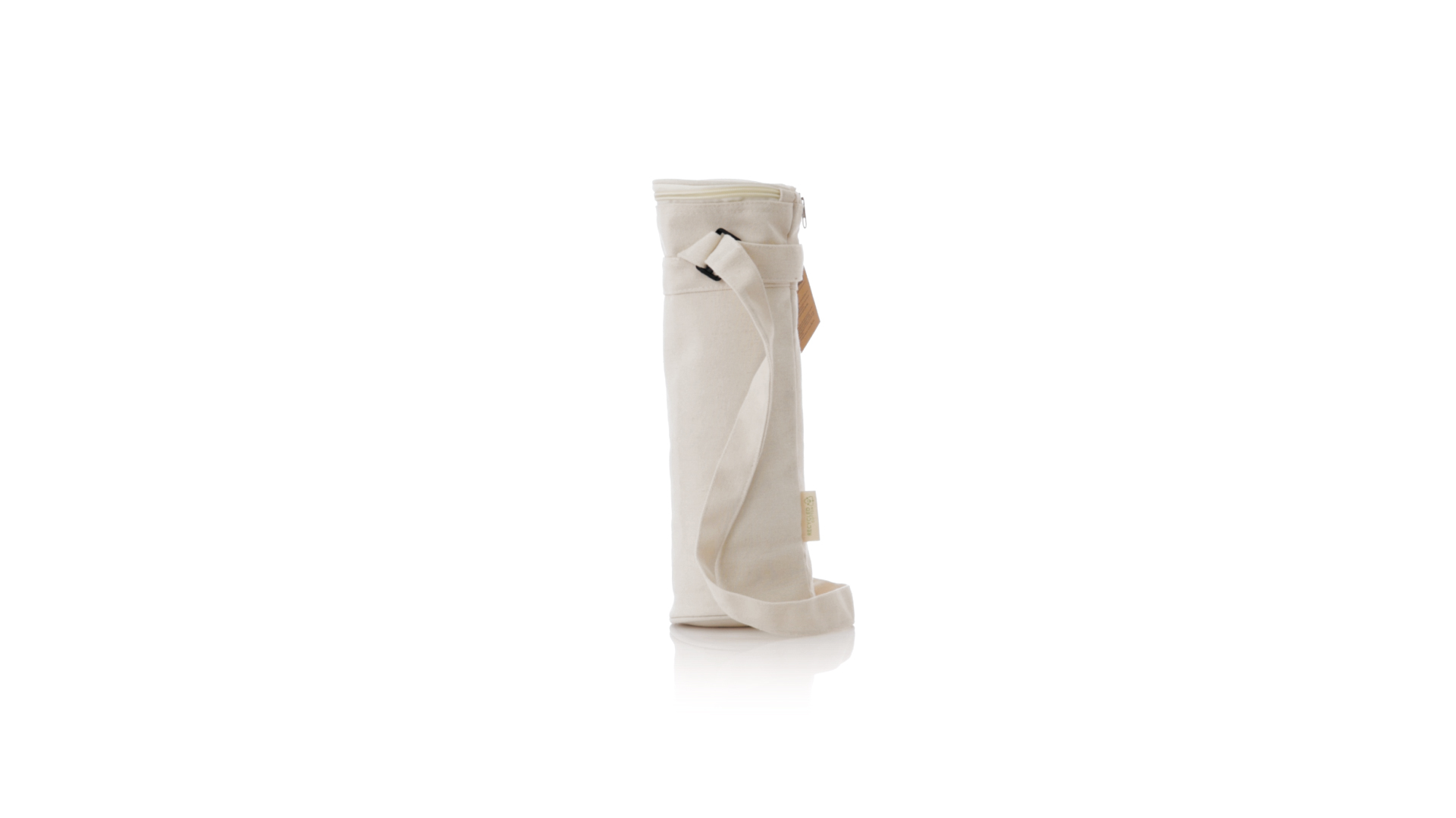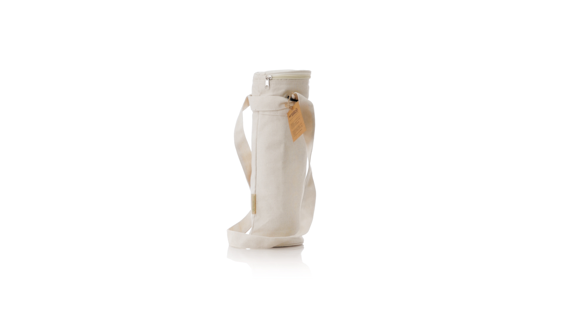 Thermotasche für den Transport von Flaschen bis zu 1,5 l, hergestellt aus 100 % recycelter Baumwolle. Es wird mit einem Reissverschluss geschlossen und mit dem verstellbaren Schultergurt in Naturton bequem getragen. Die Innenseite ist mit isothermischem Aluminiummaterial ausgekleidet und mit einem Etikett aus recycelter Baumwolle versehen. Einzeln in einer recycelten Tasche präsentiert.