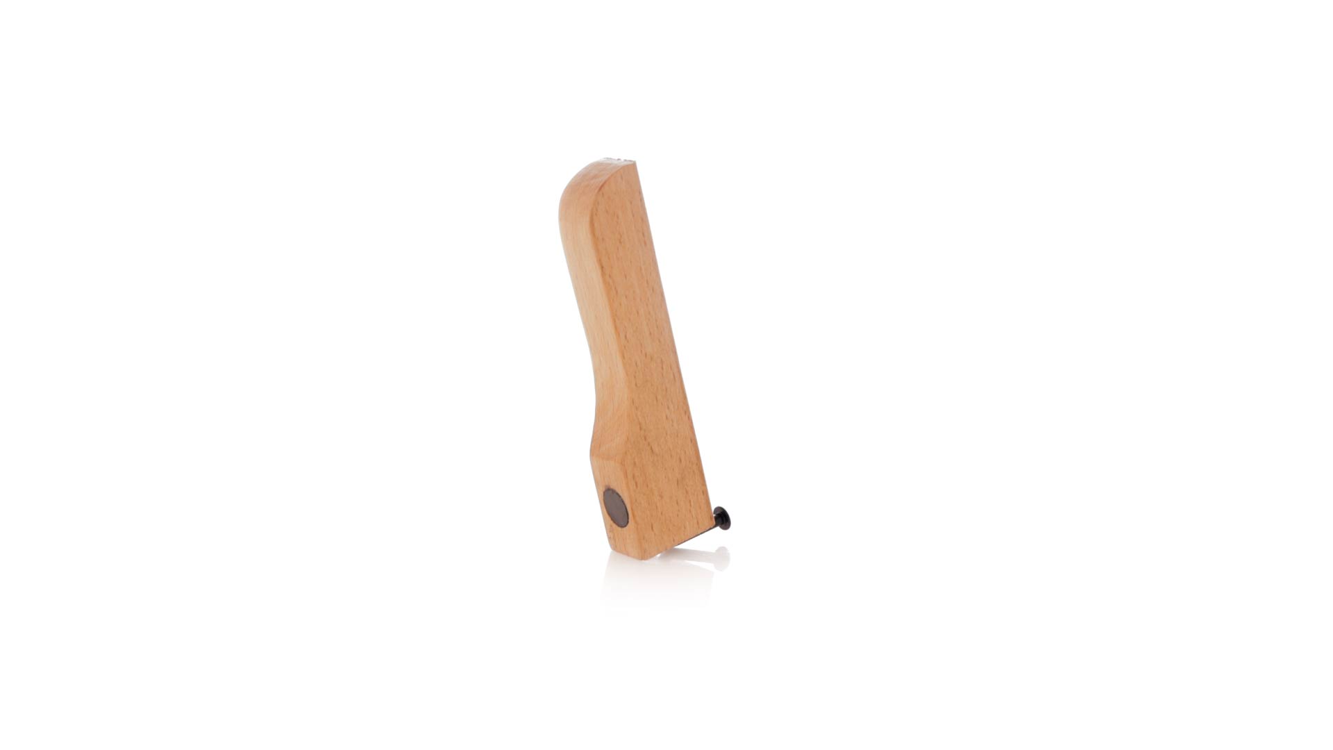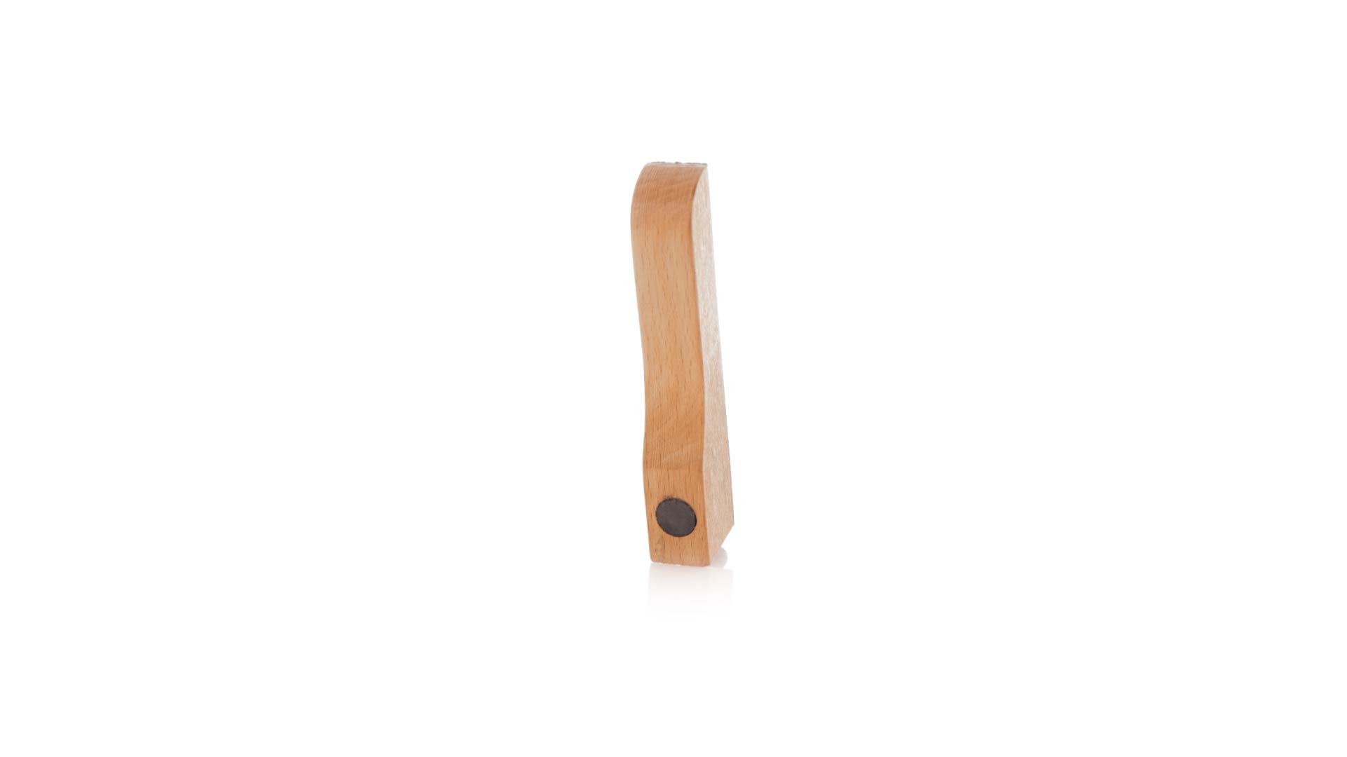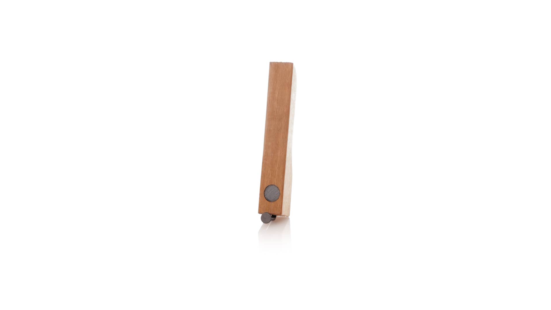 Echter Flaschenöffner aus Holz. Industriedesign aus weichem Naturholz mit nagelförmigem Öffner und praktischen Magneten zum Halten des Flaschenverschlusses und zum Platzieren auf jeder Metalloberfläche. Präsentiert in einer Kraft-Design-Box.