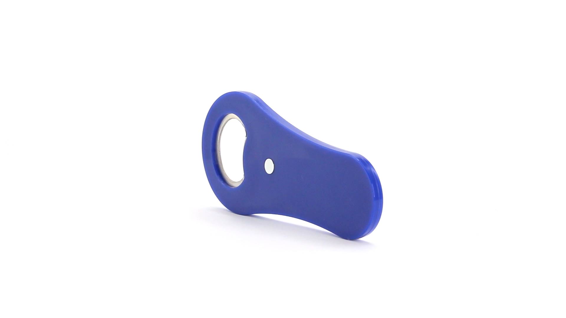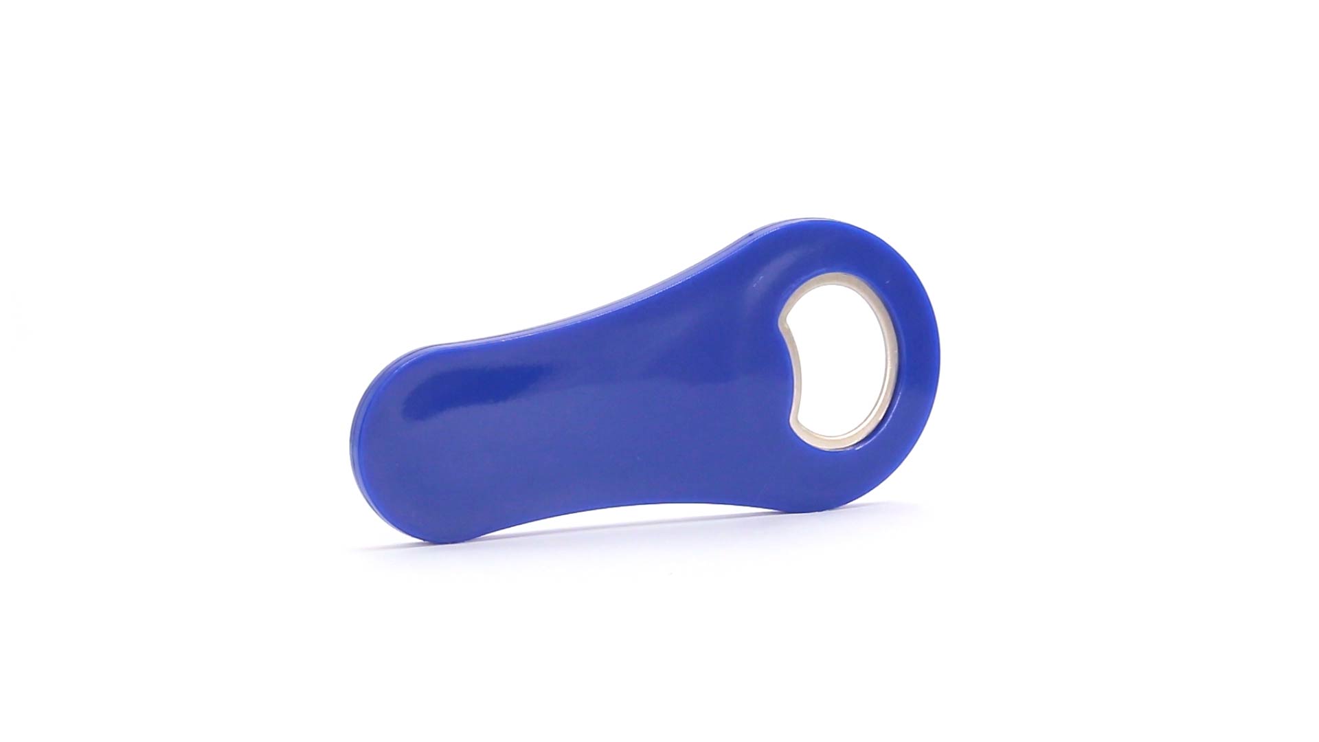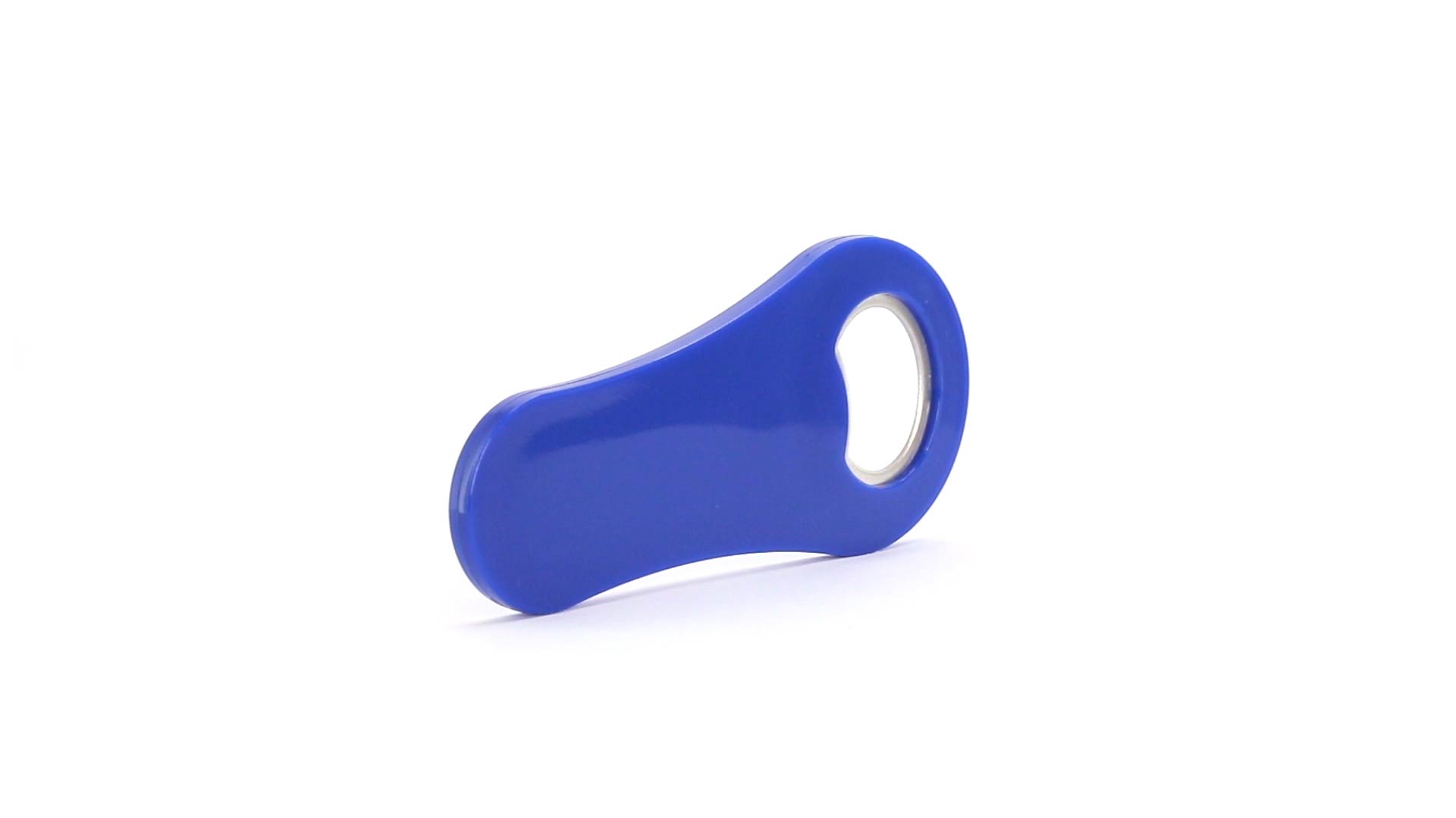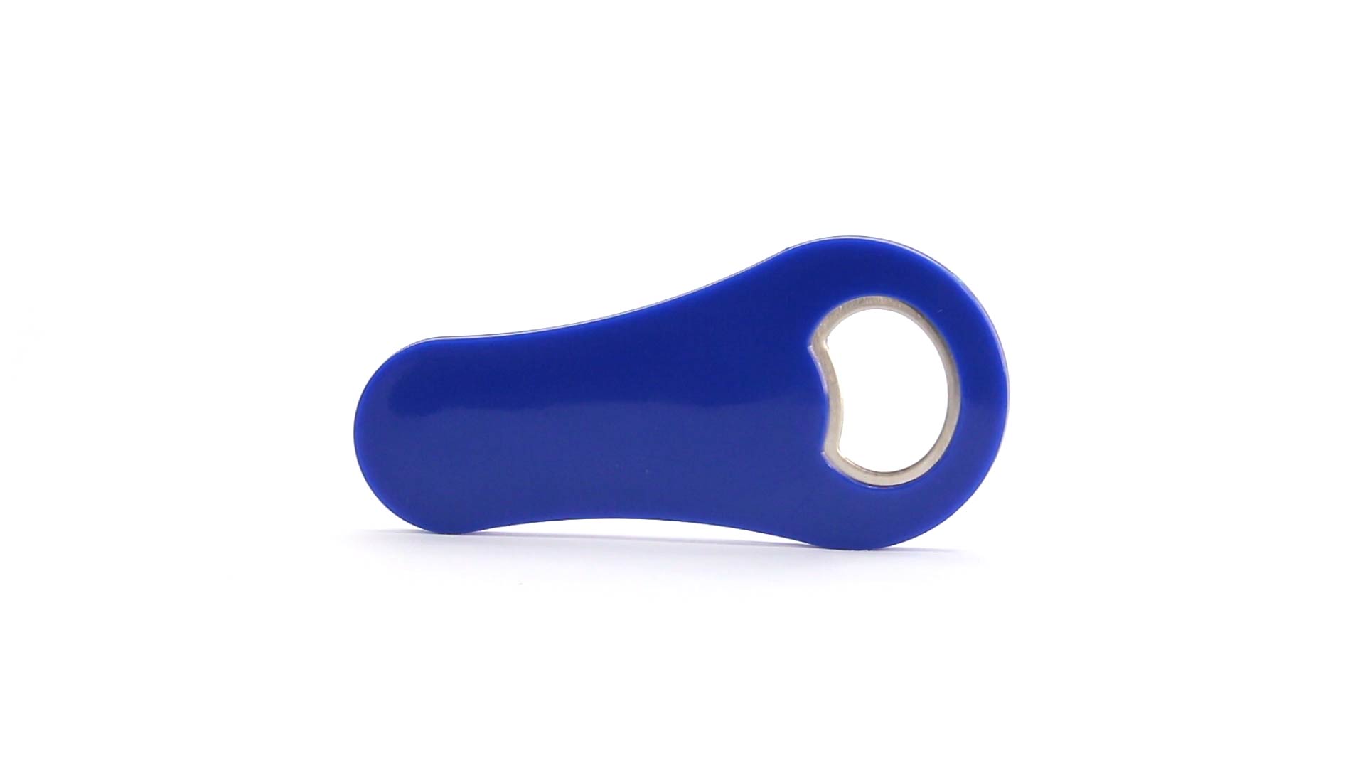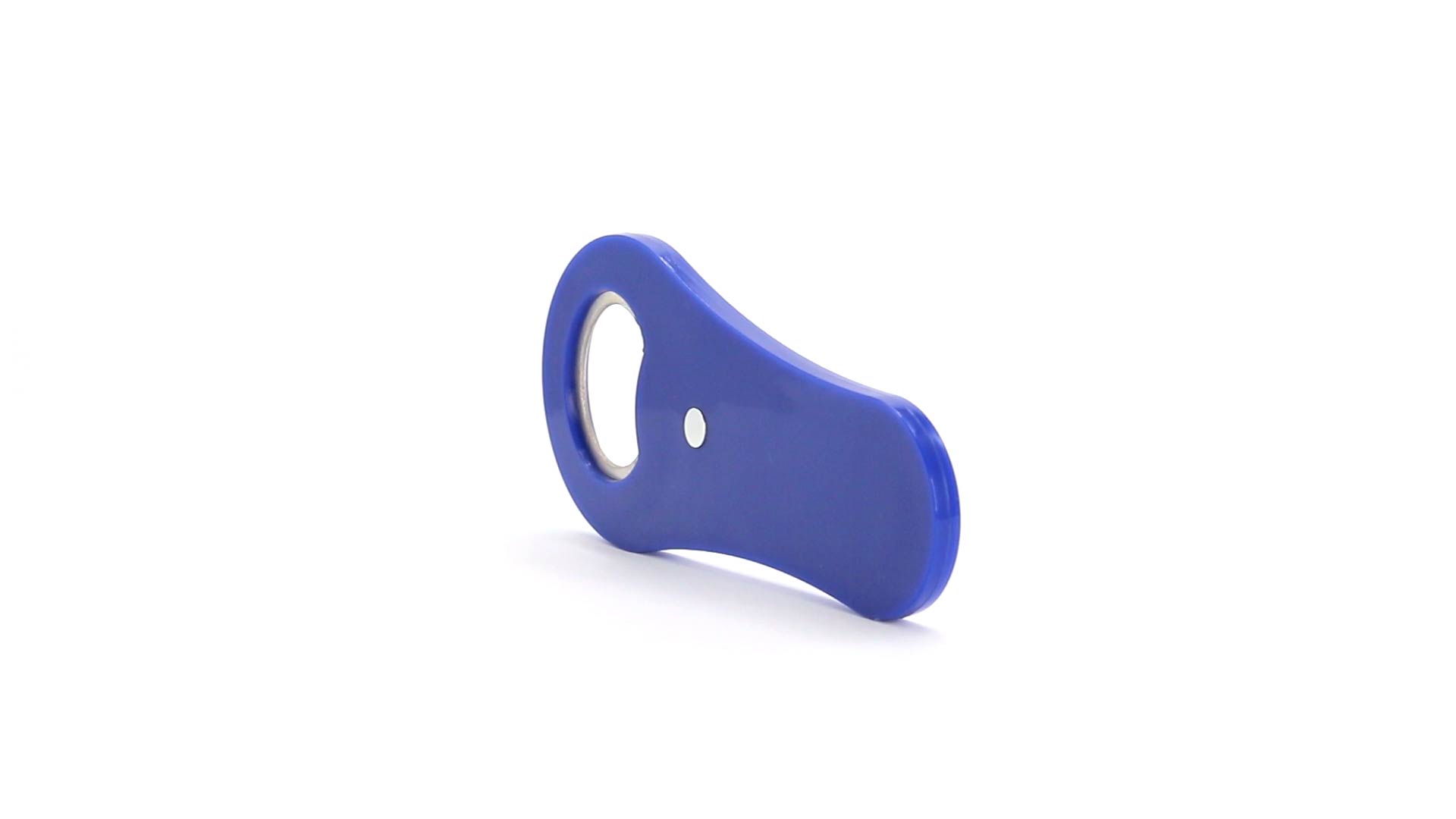 Magnetischer Flaschenöffner mit robustem Körper in verschiedenen Farben und Metallheber zum Öffnen.