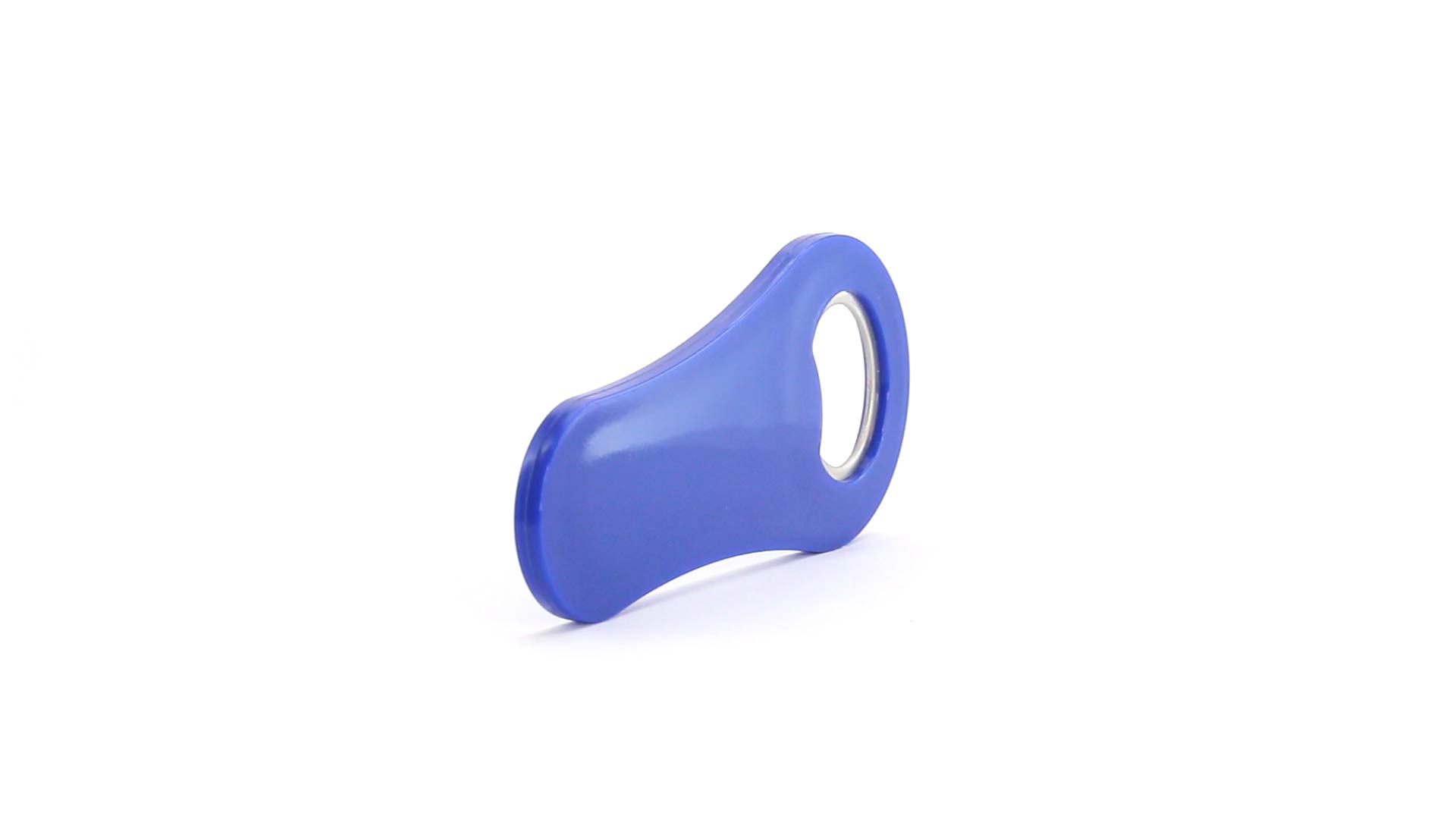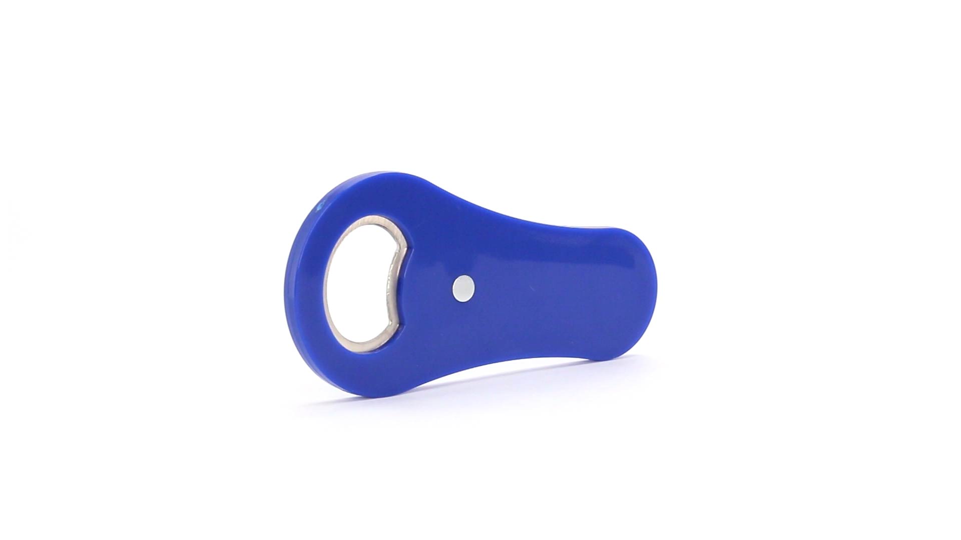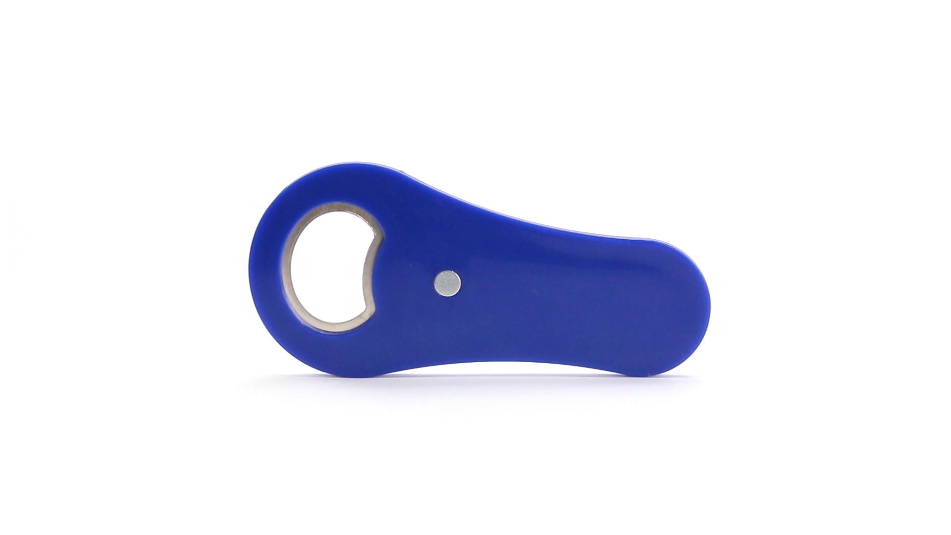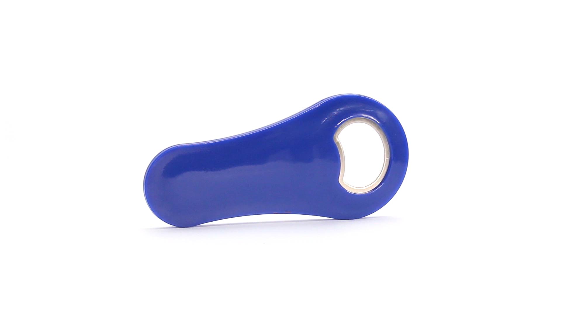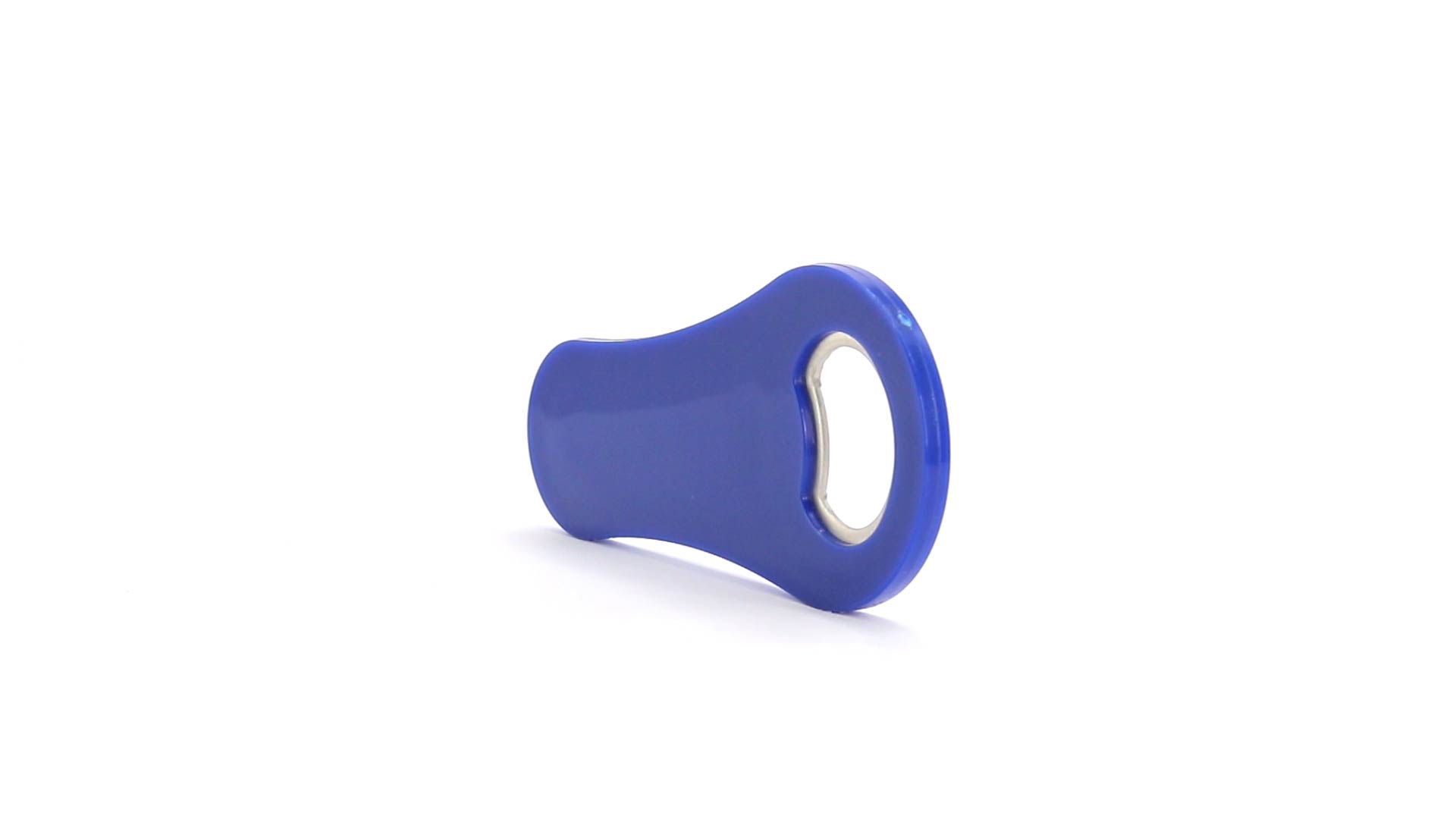 Magnetischer Flaschenöffner mit robustem Körper in verschiedenen Farben und Metallheber zum Öffnen.